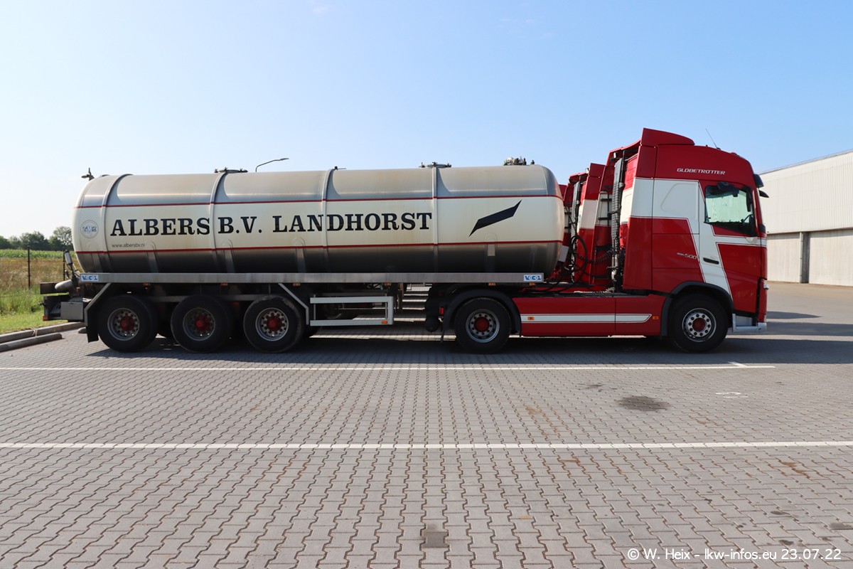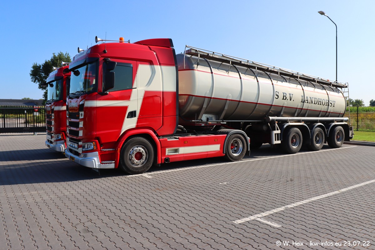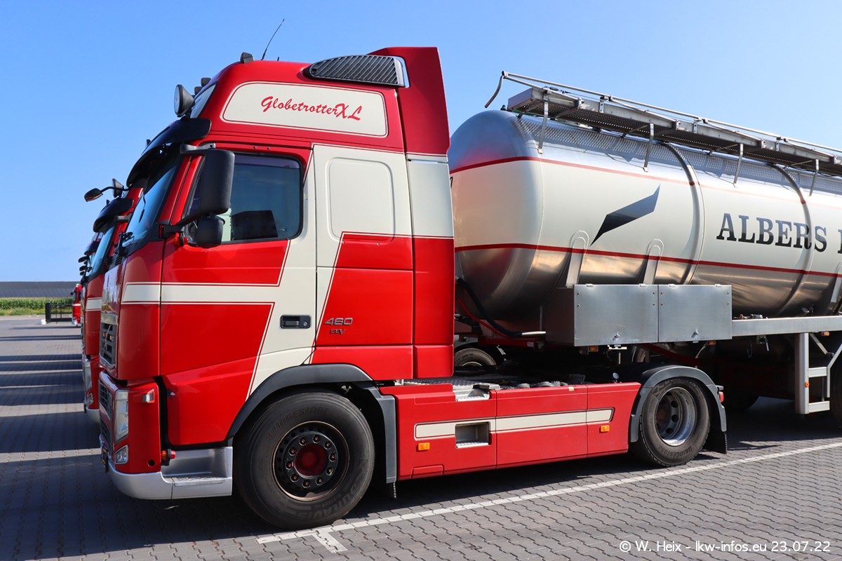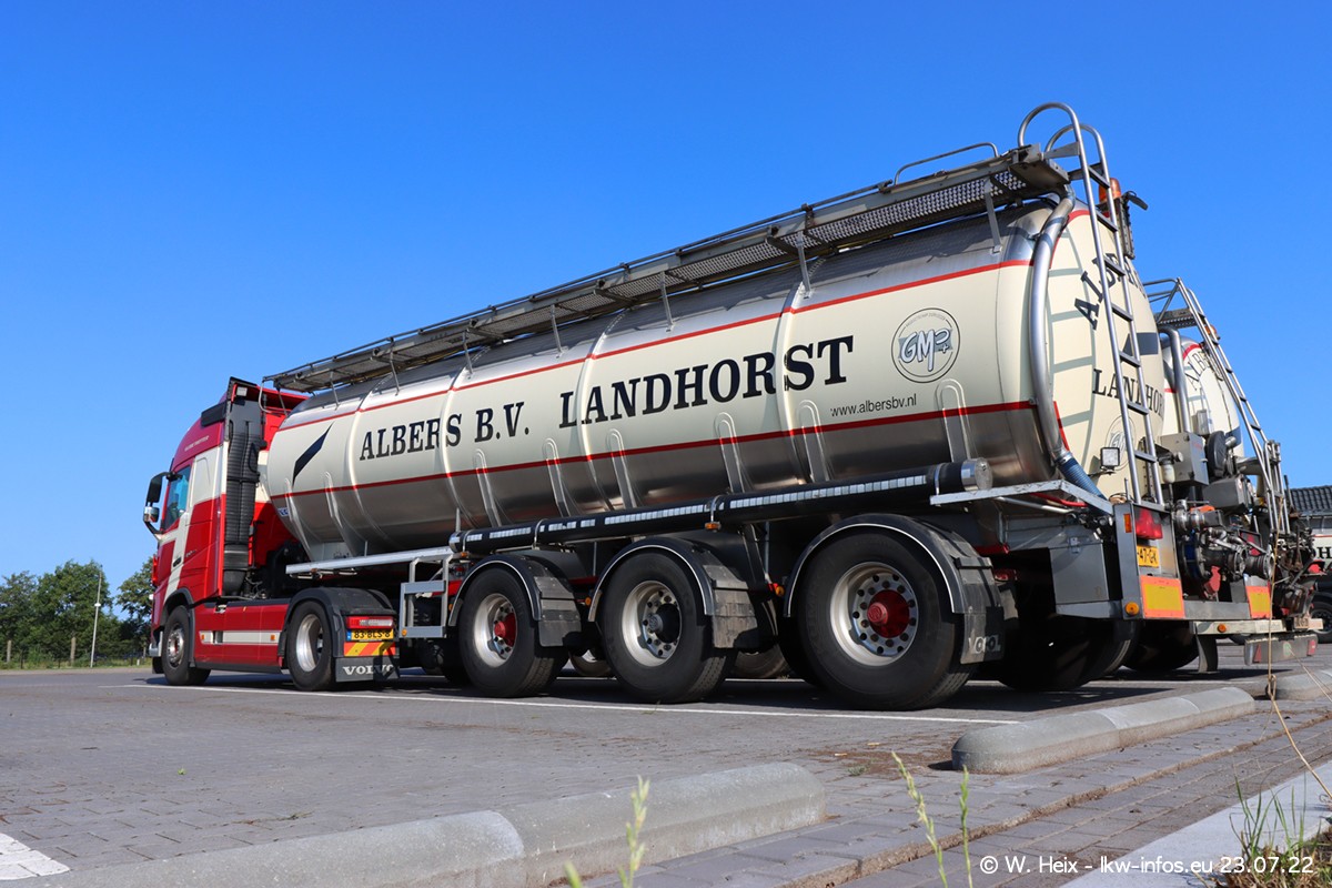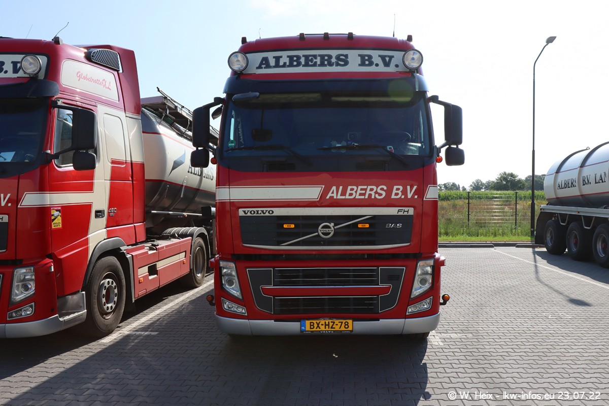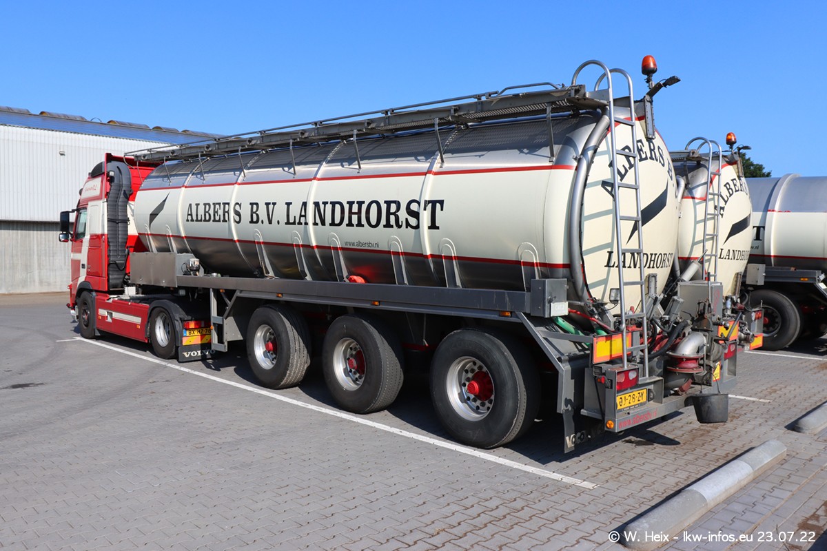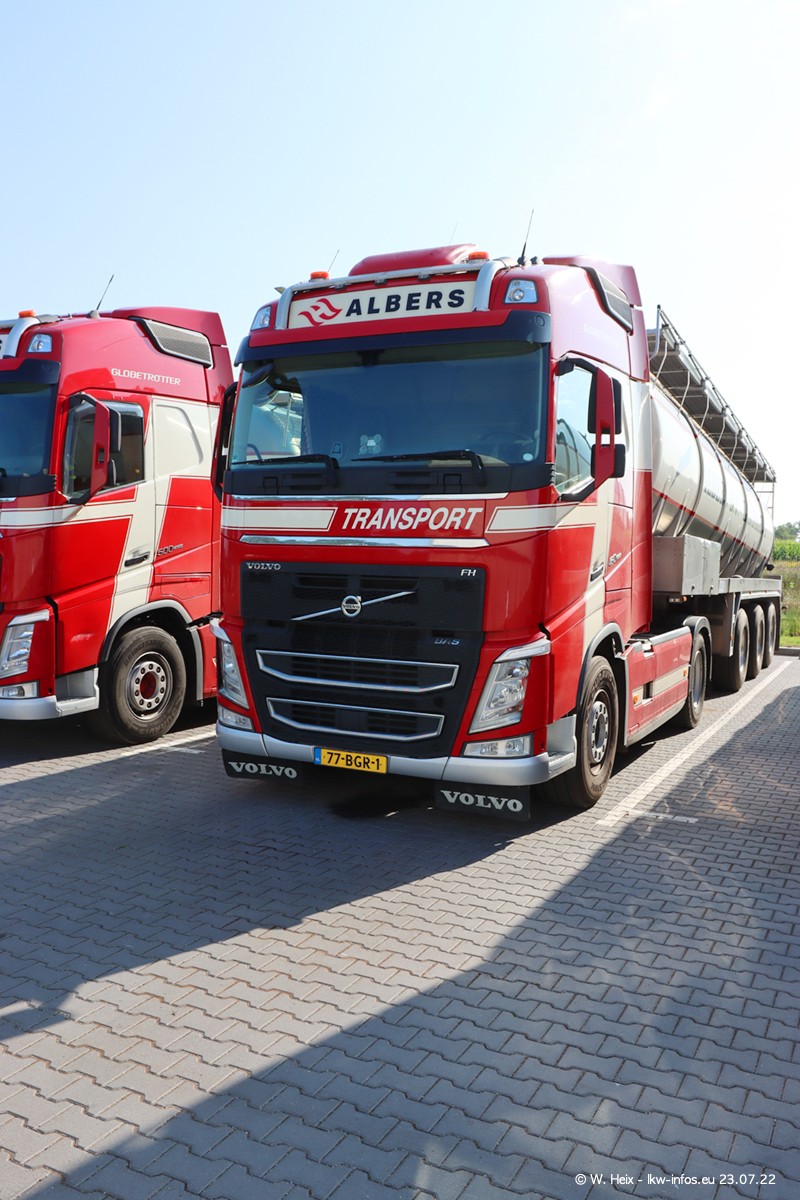 Ende 2021 ist der Fuhrpark von landhorst umgezogen nach Zeeland. Hier gibt es deutlich mehr Platz für die Fahrzeuge. Am Wochenende stehen alle LKW in einer Reihe, sortiert nach Hersteller und Alter. Ein großer Teil der LKW war zuhause. Schön, dass auch der alte VOLVO F10 samt passendem Auflieger mit auf dem Hof stand. Da die Fahrzeuge früh morgens wegen der Sonne genau falsch herum auf dem Gelände standen, war es etwas schwierig mit dem Fotografieren. Aber die Bilder sind trotzdem gut geworden.
