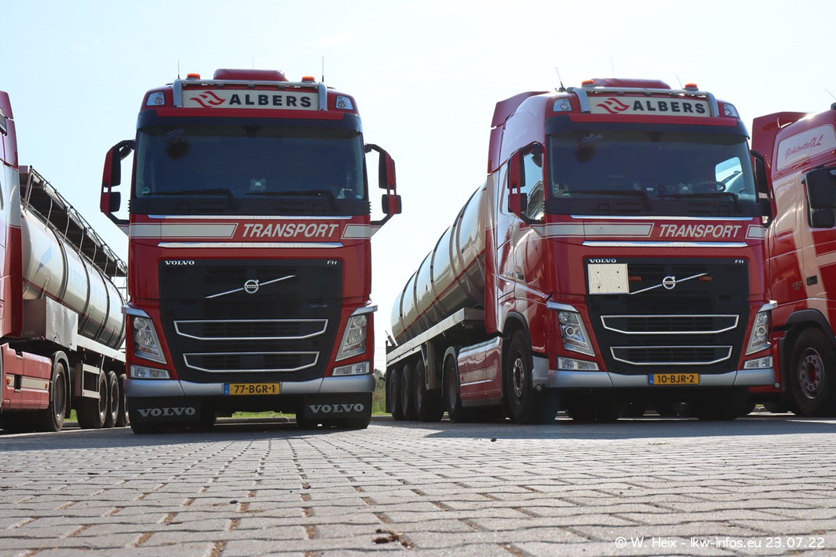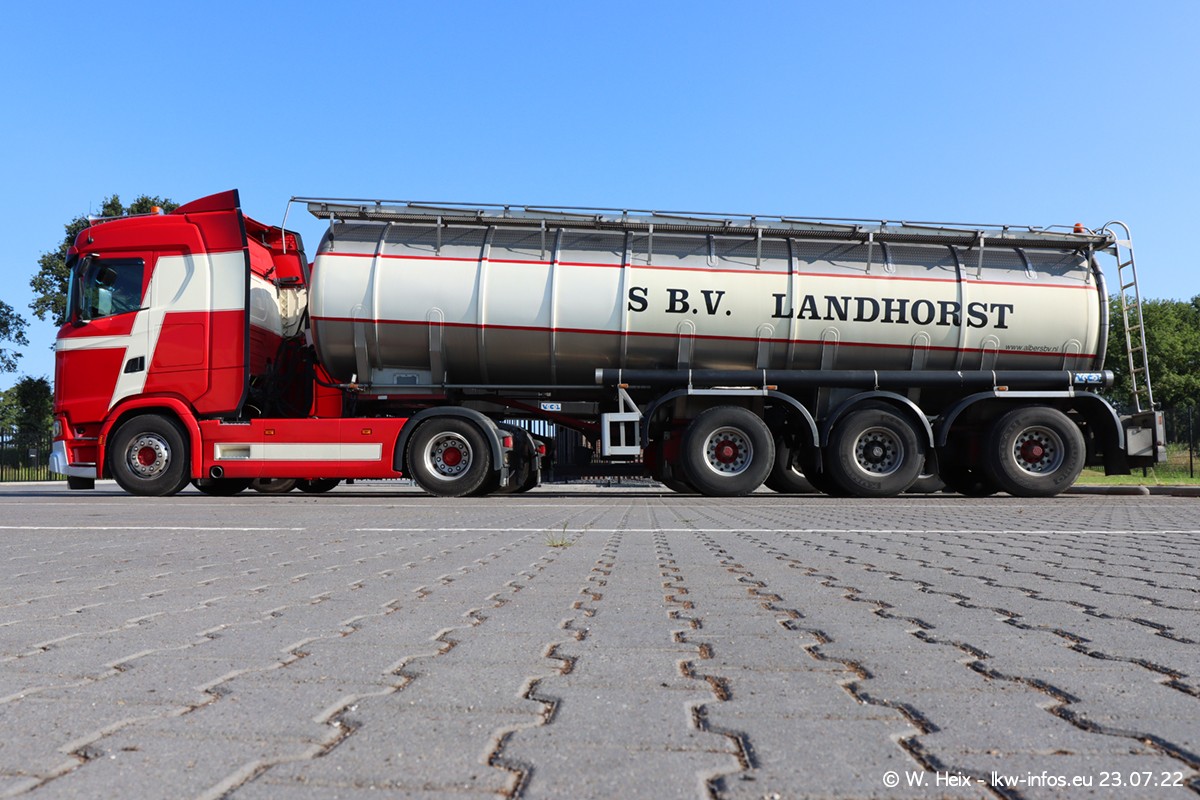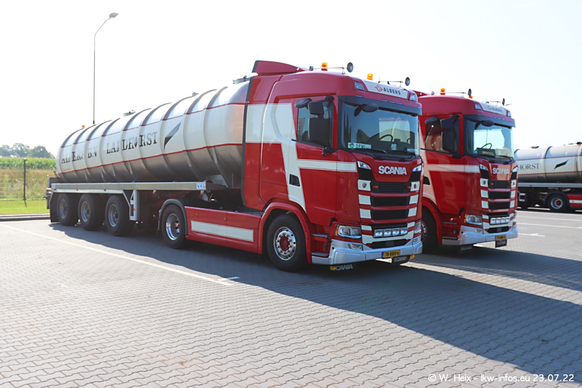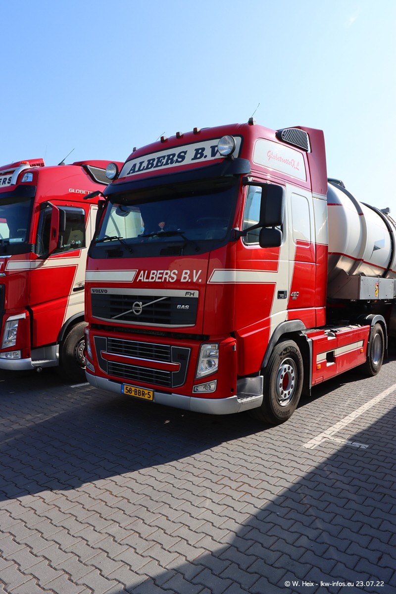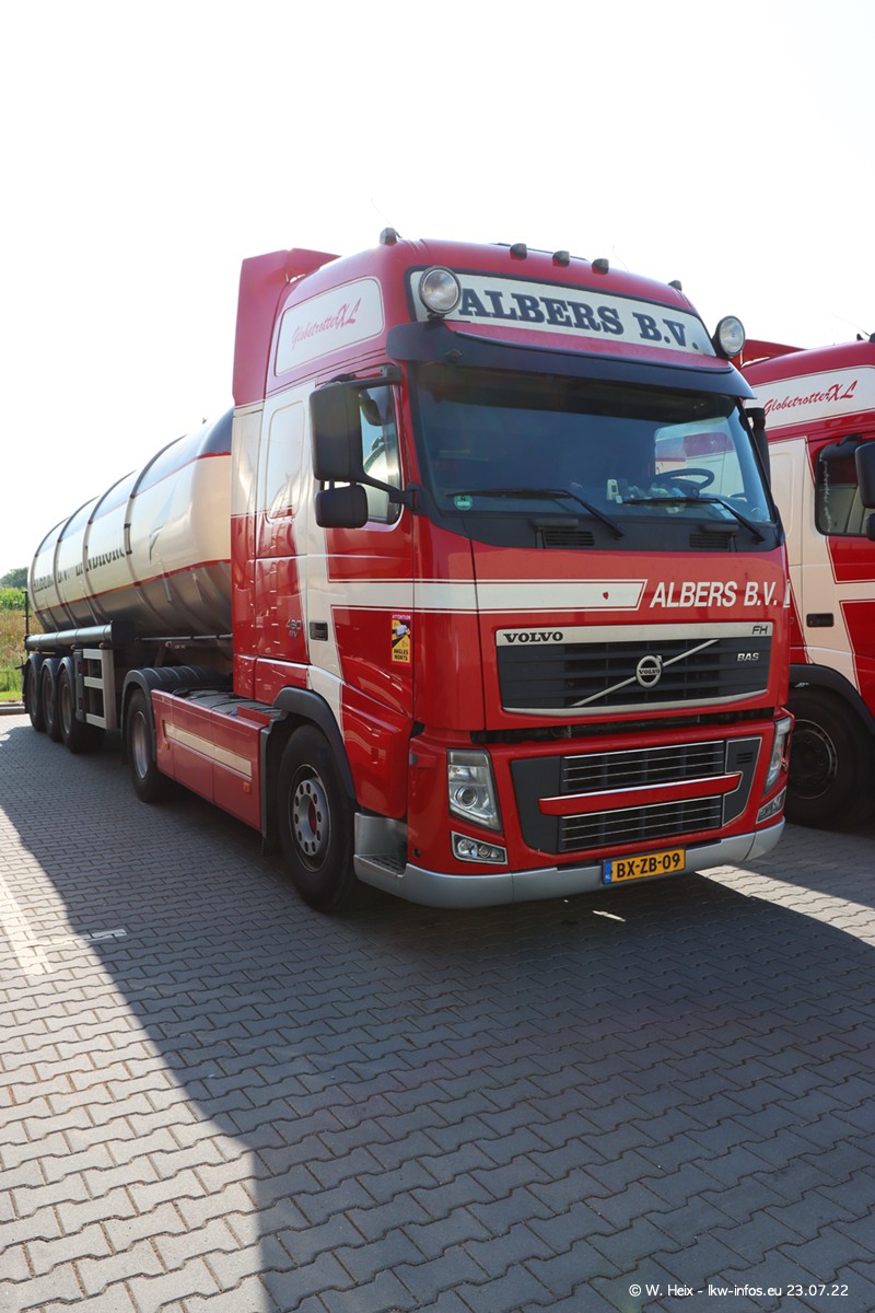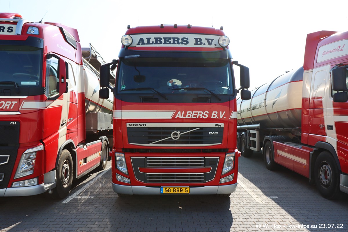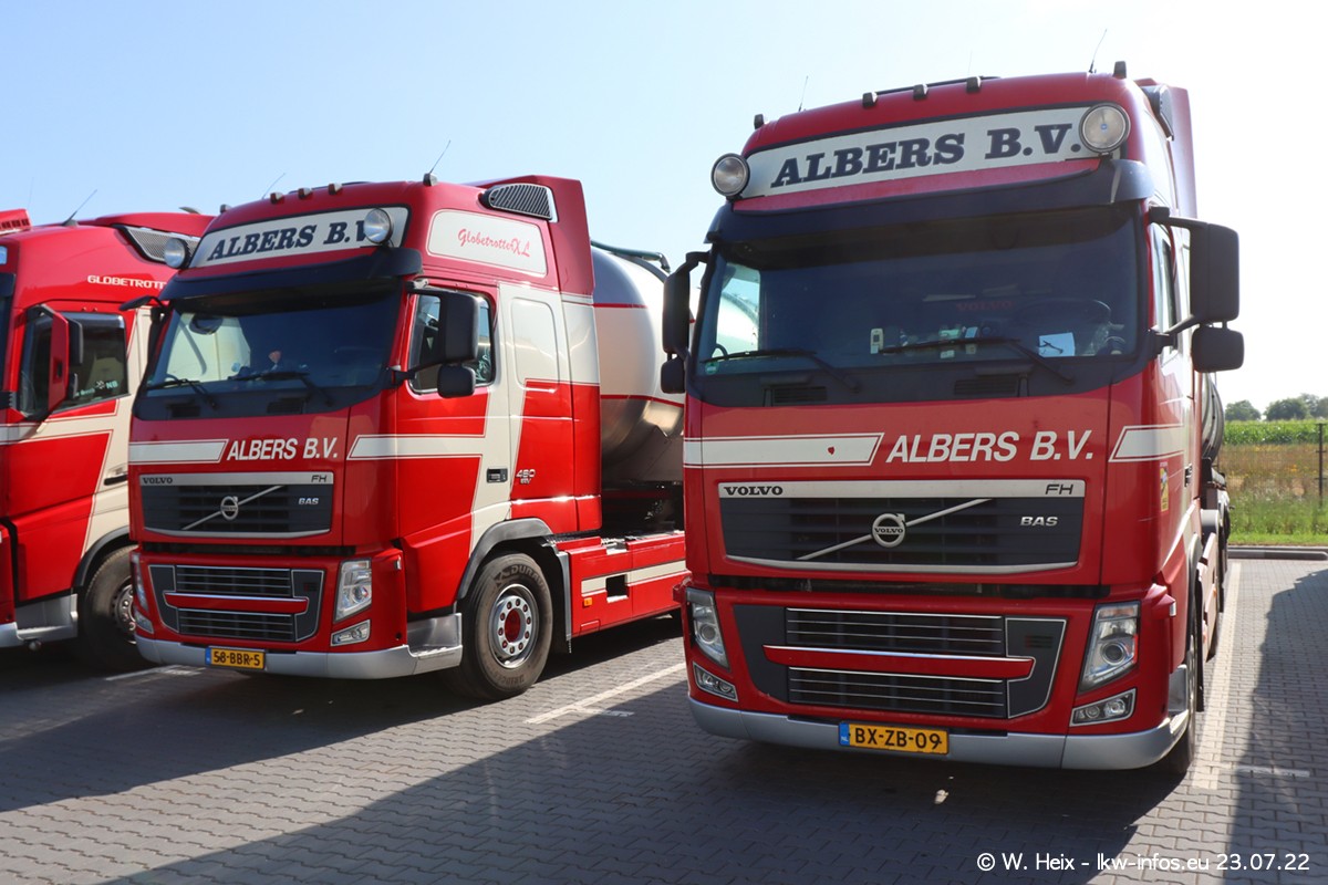 Ende 2021 ist der Fuhrpark von landhorst umgezogen nach Zeeland. Hier gibt es deutlich mehr Platz für die Fahrzeuge. Am Wochenende stehen alle LKW in einer Reihe, sortiert nach Hersteller und Alter. Ein großer Teil der LKW war zuhause. Schön, dass auch der alte VOLVO F10 samt passendem Auflieger mit auf dem Hof stand. Da die Fahrzeuge früh morgens wegen der Sonne genau falsch herum auf dem Gelände standen, war es etwas schwierig mit dem Fotografieren. Aber die Bilder sind trotzdem gut geworden.