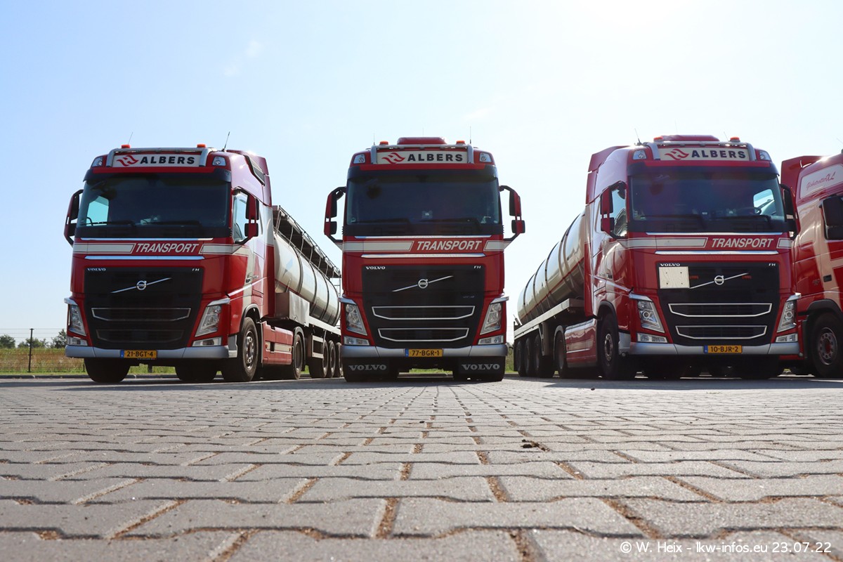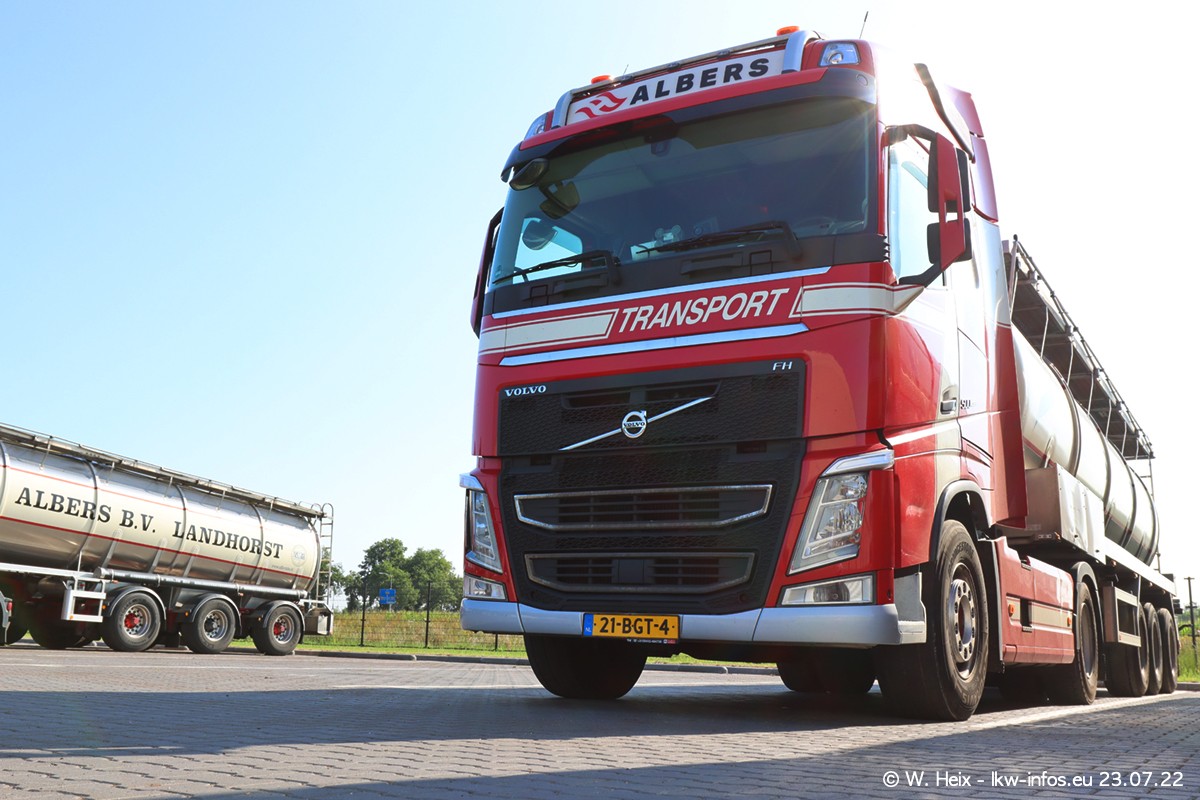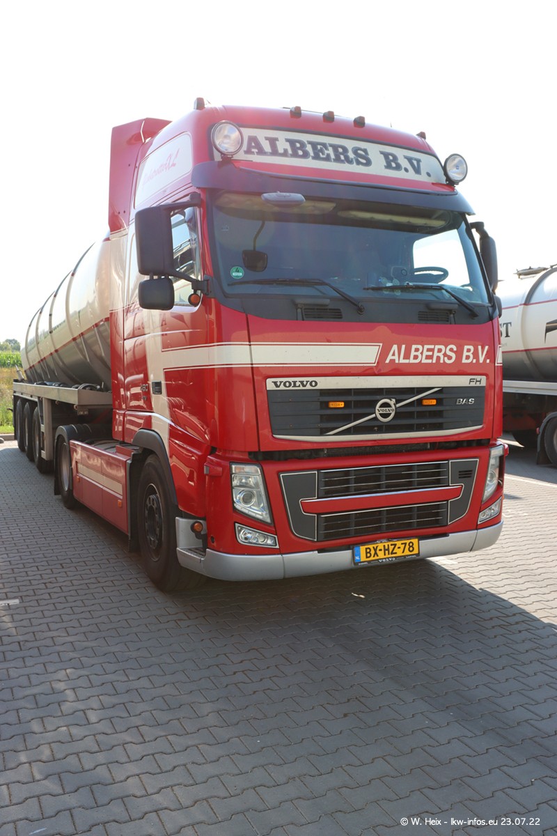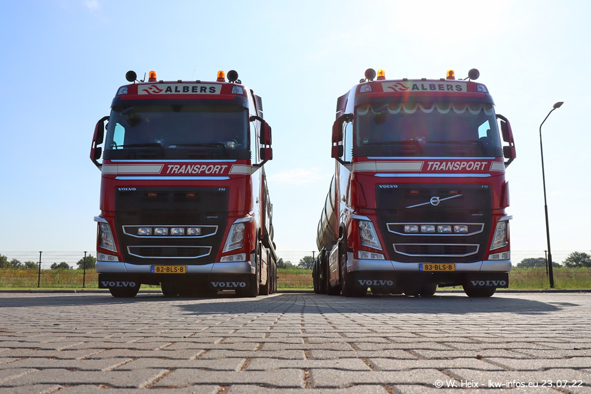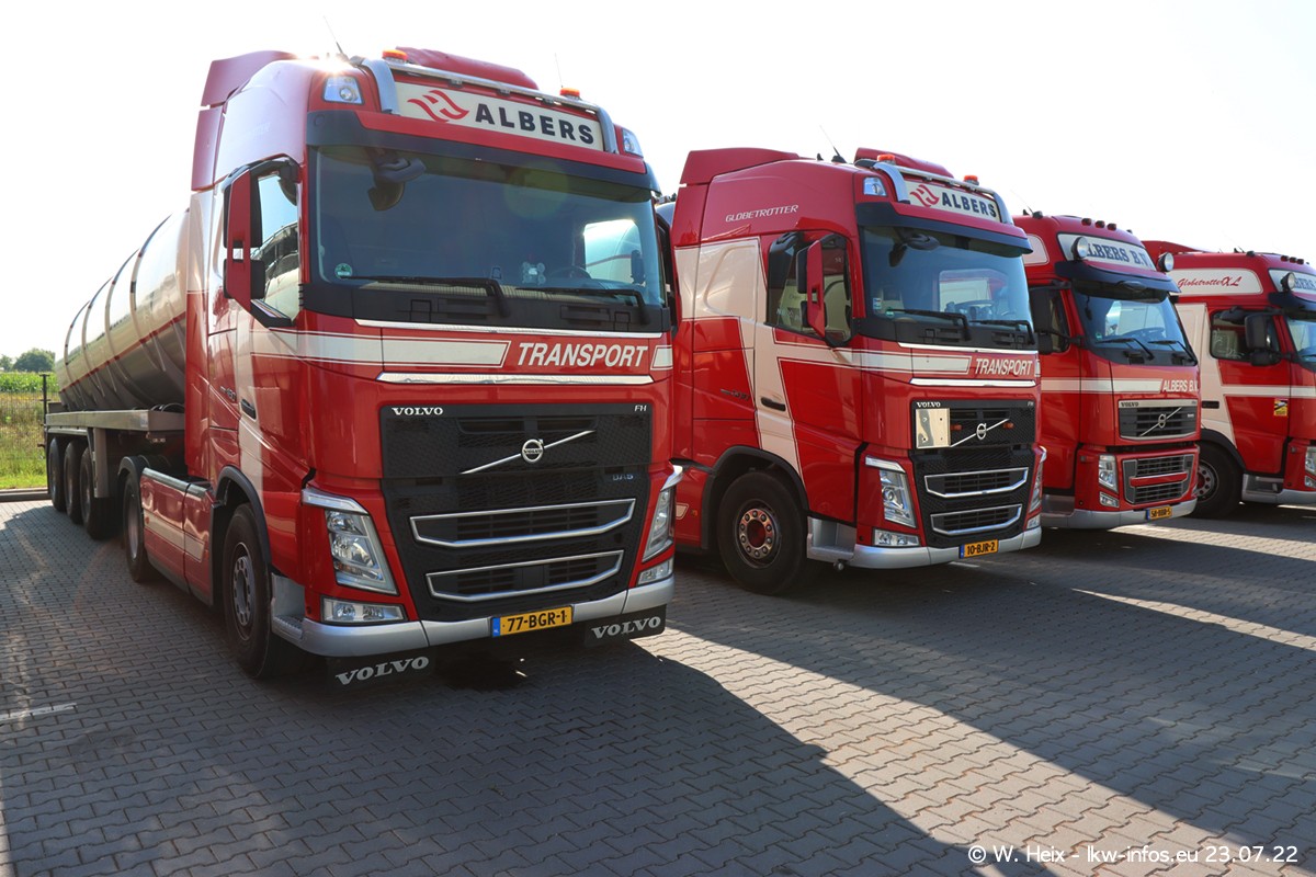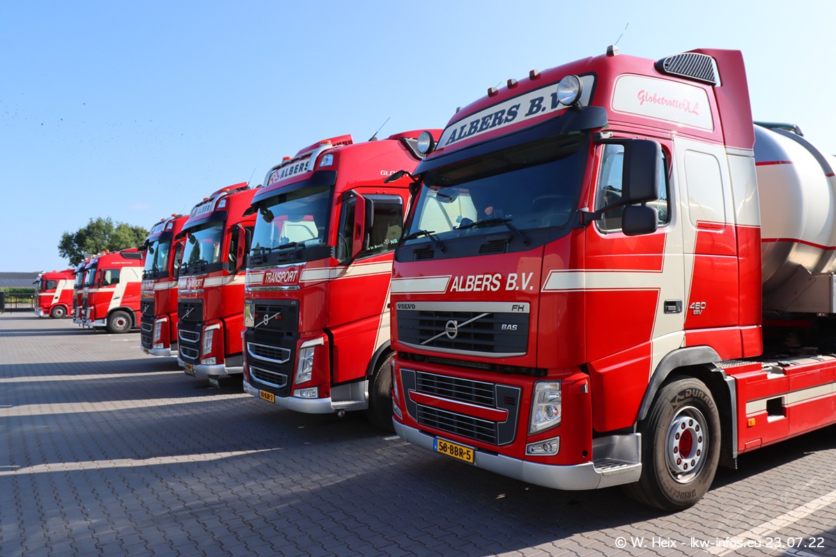 Ende 2021 ist der Fuhrpark von landhorst umgezogen nach Zeeland. Hier gibt es deutlich mehr Platz für die Fahrzeuge. Am Wochenende stehen alle LKW in einer Reihe, sortiert nach Hersteller und Alter. Ein großer Teil der LKW war zuhause. Schön, dass auch der alte VOLVO F10 samt passendem Auflieger mit auf dem Hof stand. Da die Fahrzeuge früh morgens wegen der Sonne genau falsch herum auf dem Gelände standen, war es etwas schwierig mit dem Fotografieren. Aber die Bilder sind trotzdem gut geworden.