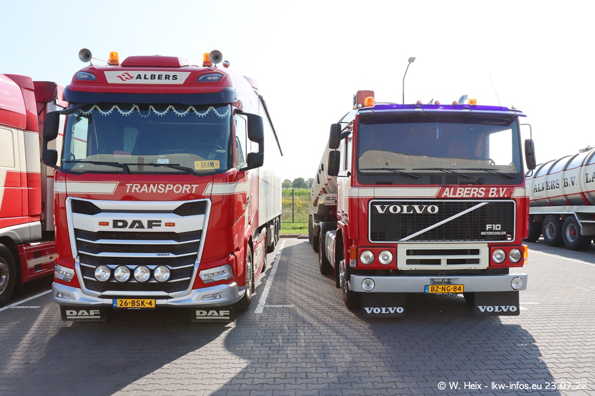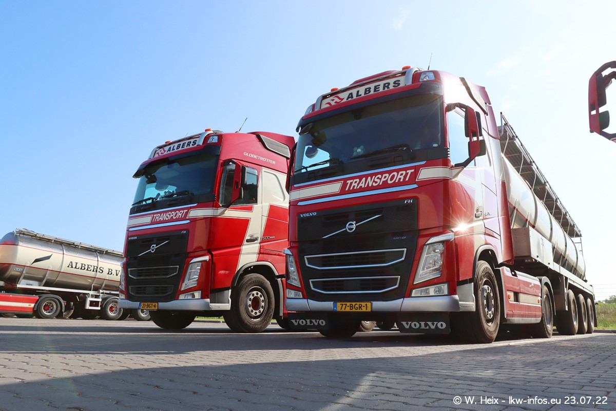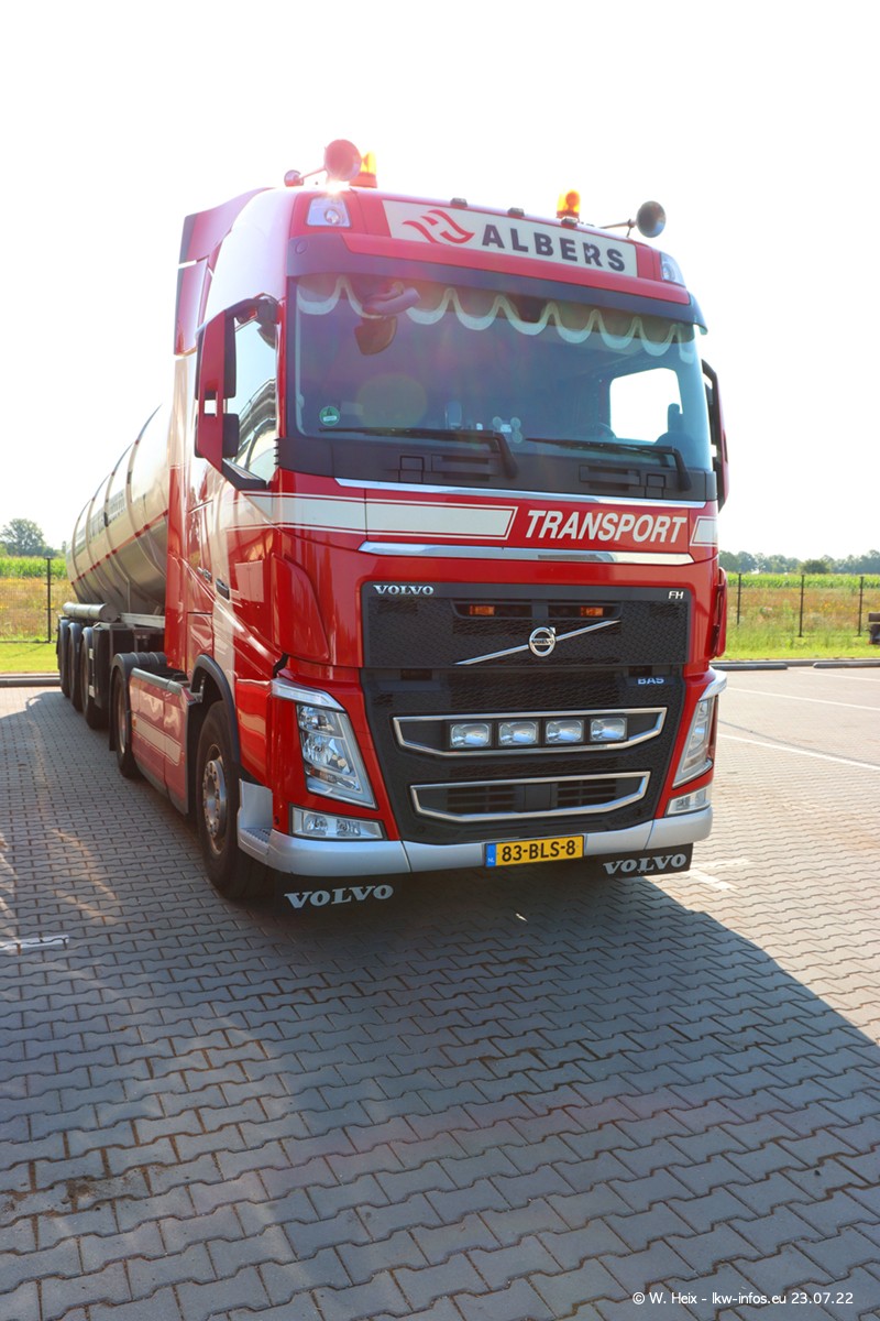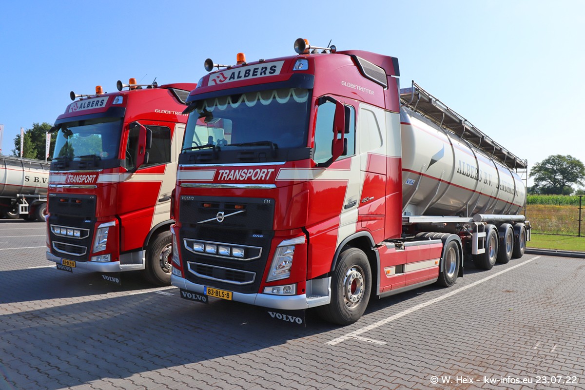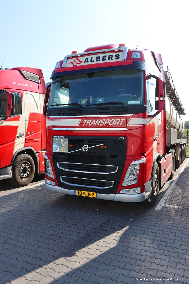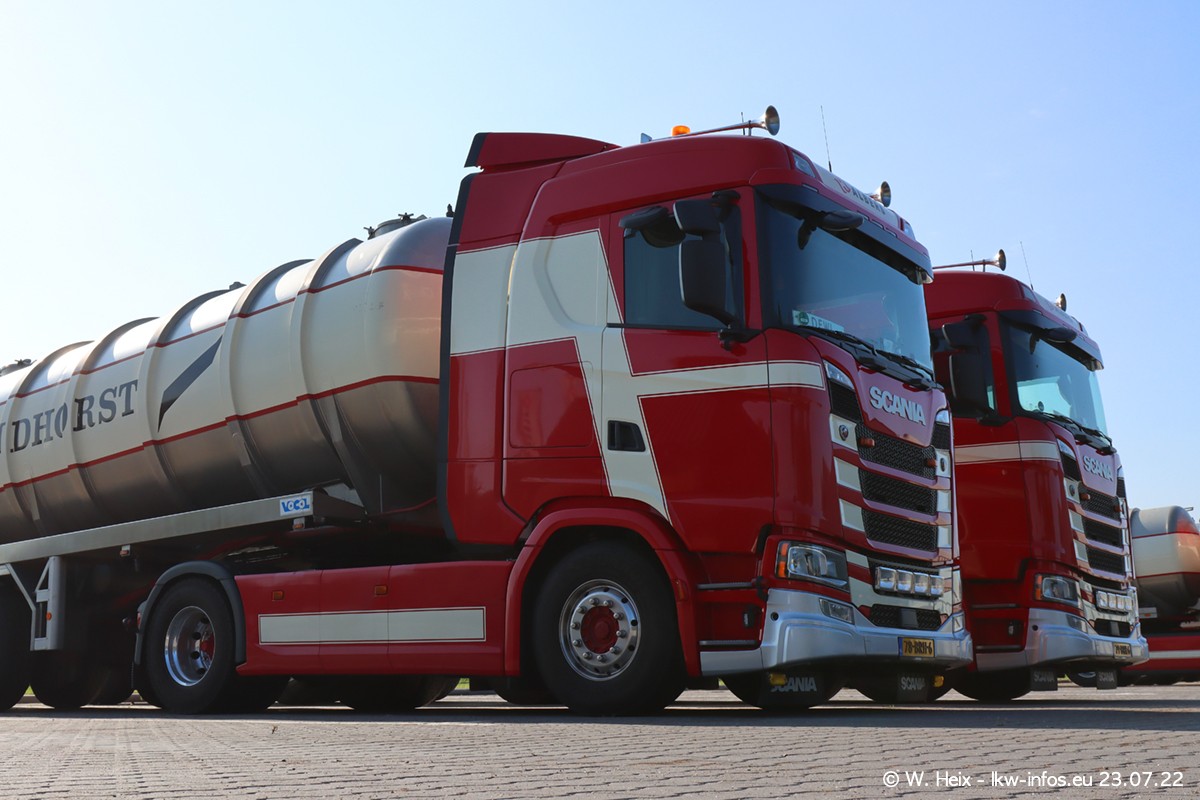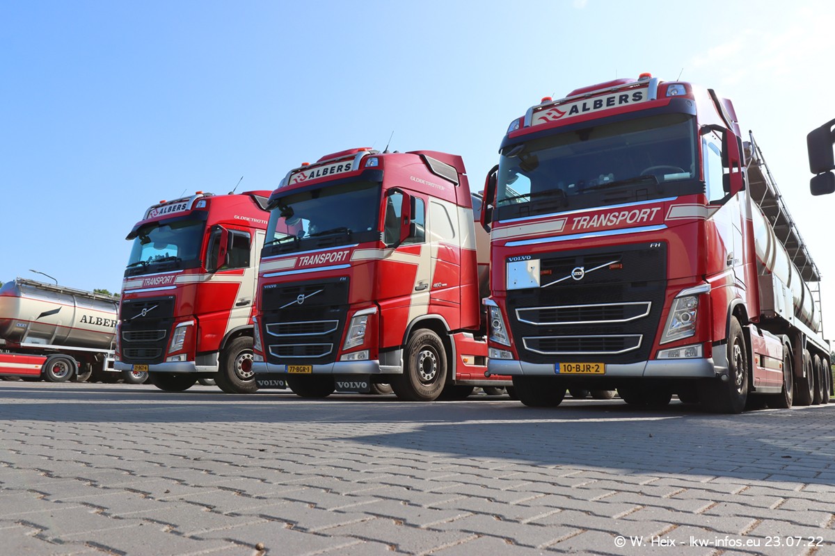 Ende 2021 ist der Fuhrpark von landhorst umgezogen nach Zeeland. Hier gibt es deutlich mehr Platz für die Fahrzeuge. Am Wochenende stehen alle LKW in einer Reihe, sortiert nach Hersteller und Alter. Ein großer Teil der LKW war zuhause. Schön, dass auch der alte VOLVO F10 samt passendem Auflieger mit auf dem Hof stand. Da die Fahrzeuge früh morgens wegen der Sonne genau falsch herum auf dem Gelände standen, war es etwas schwierig mit dem Fotografieren. Aber die Bilder sind trotzdem gut geworden.
