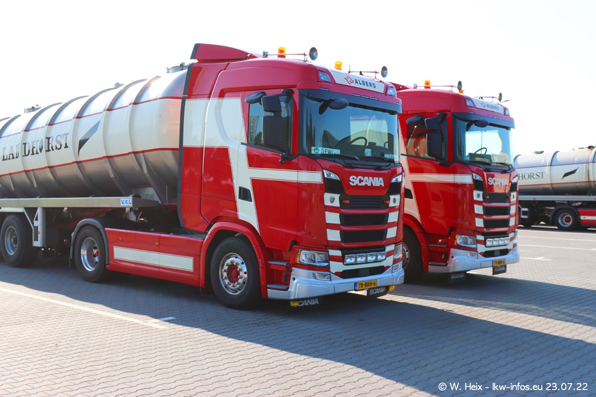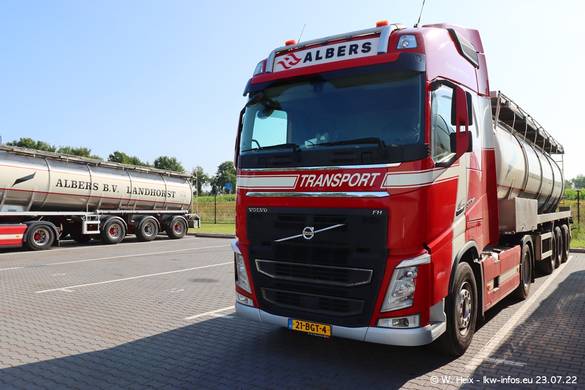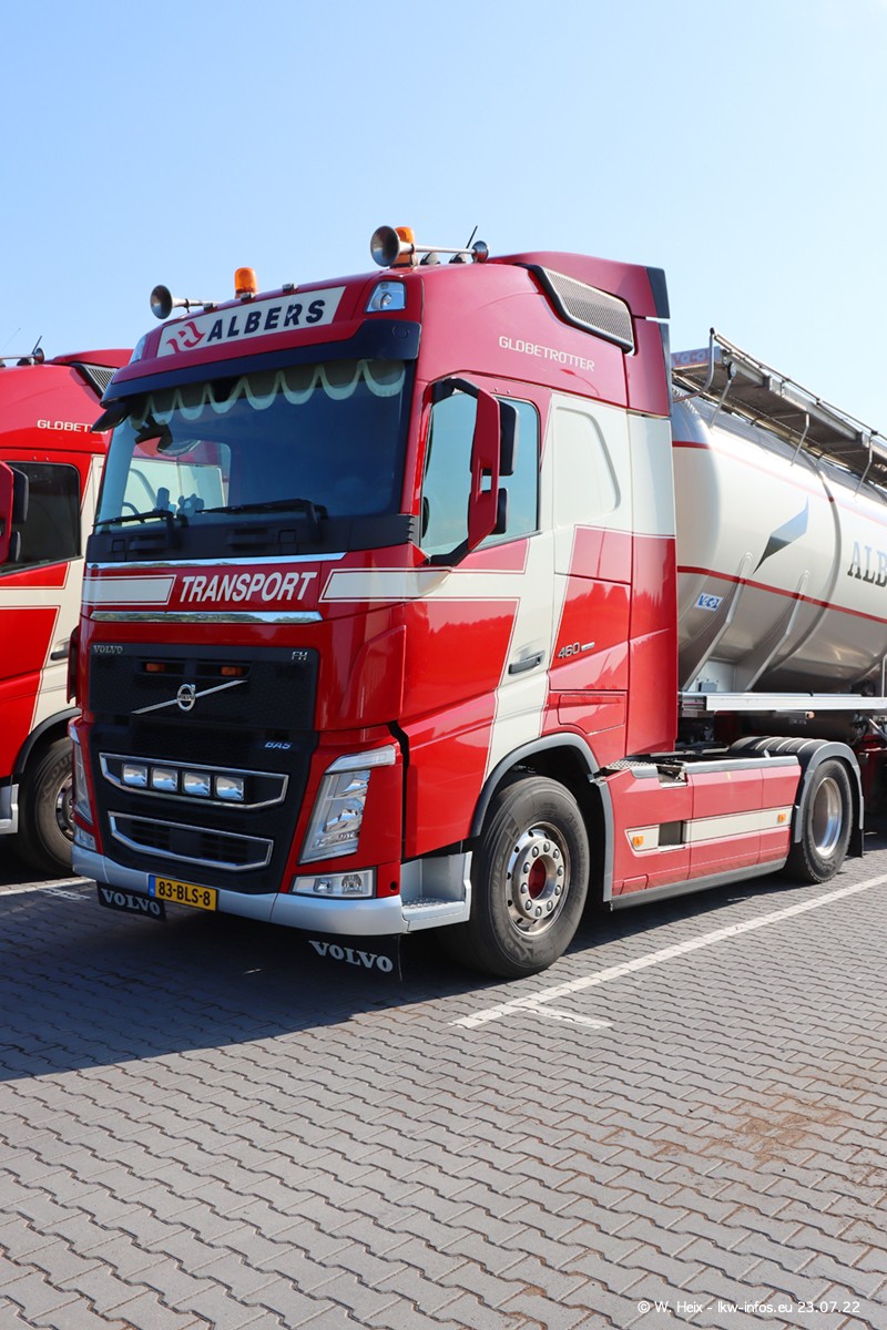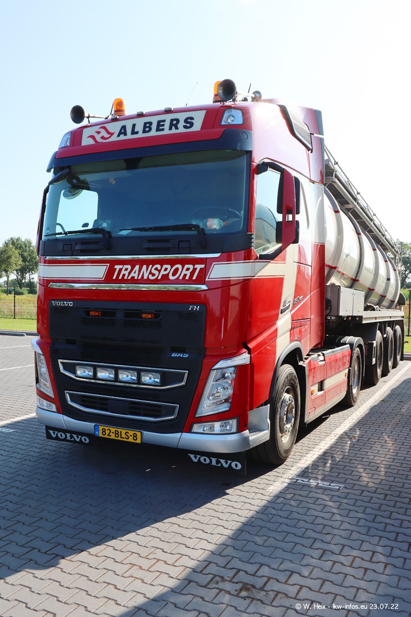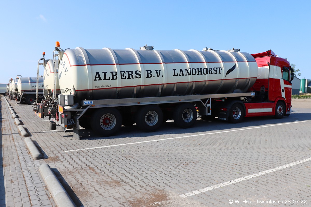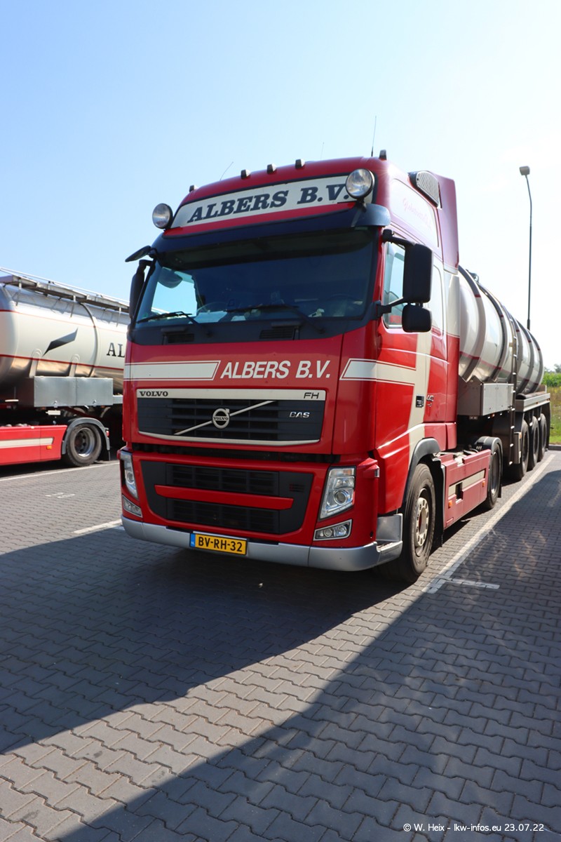 Ende 2021 ist der Fuhrpark von landhorst umgezogen nach Zeeland. Hier gibt es deutlich mehr Platz für die Fahrzeuge. Am Wochenende stehen alle LKW in einer Reihe, sortiert nach Hersteller und Alter. Ein großer Teil der LKW war zuhause. Schön, dass auch der alte VOLVO F10 samt passendem Auflieger mit auf dem Hof stand. Da die Fahrzeuge früh morgens wegen der Sonne genau falsch herum auf dem Gelände standen, war es etwas schwierig mit dem Fotografieren. Aber die Bilder sind trotzdem gut geworden.