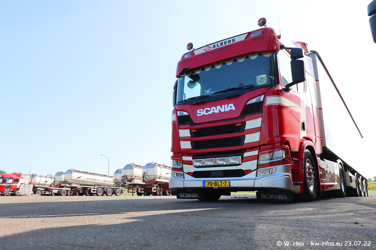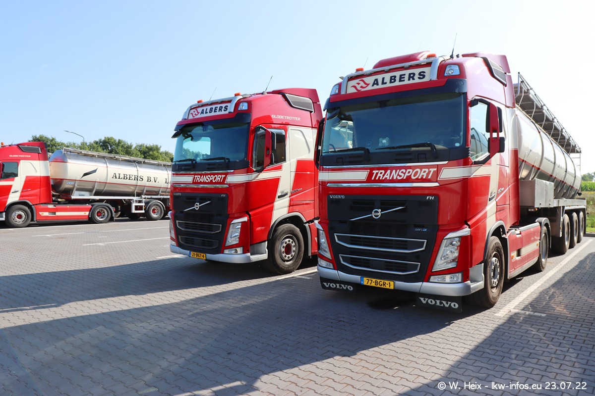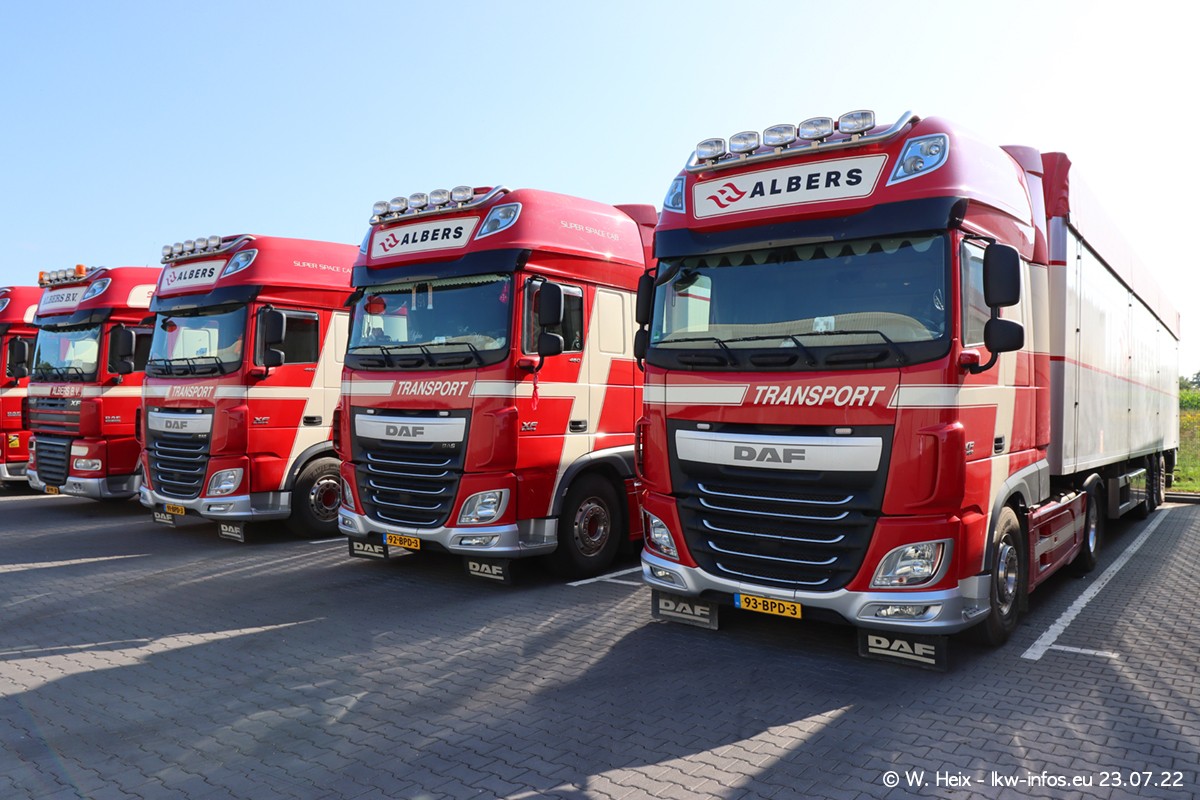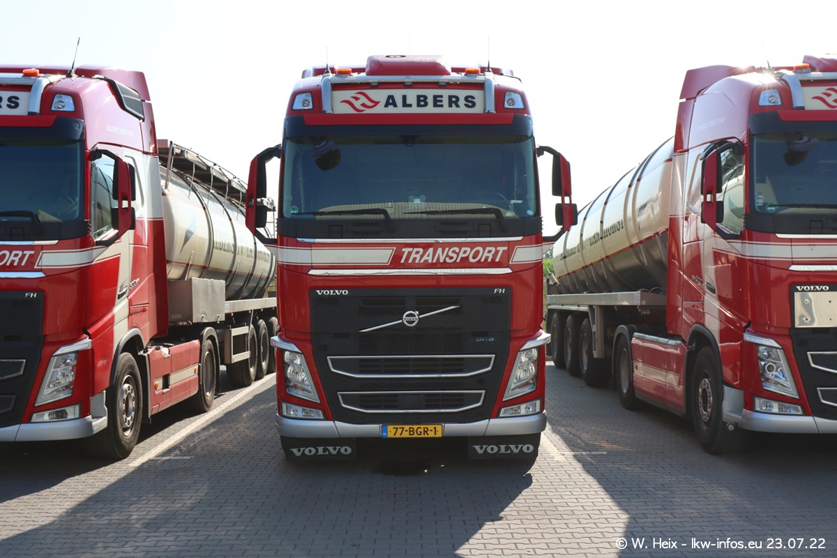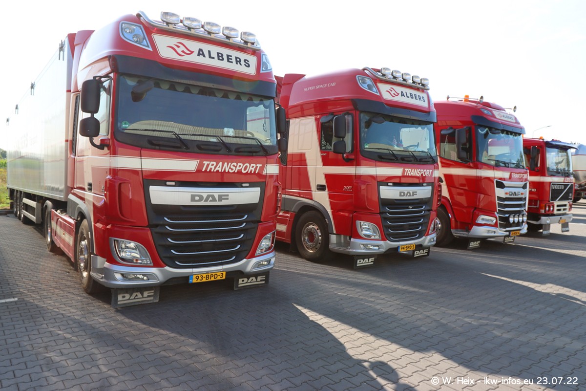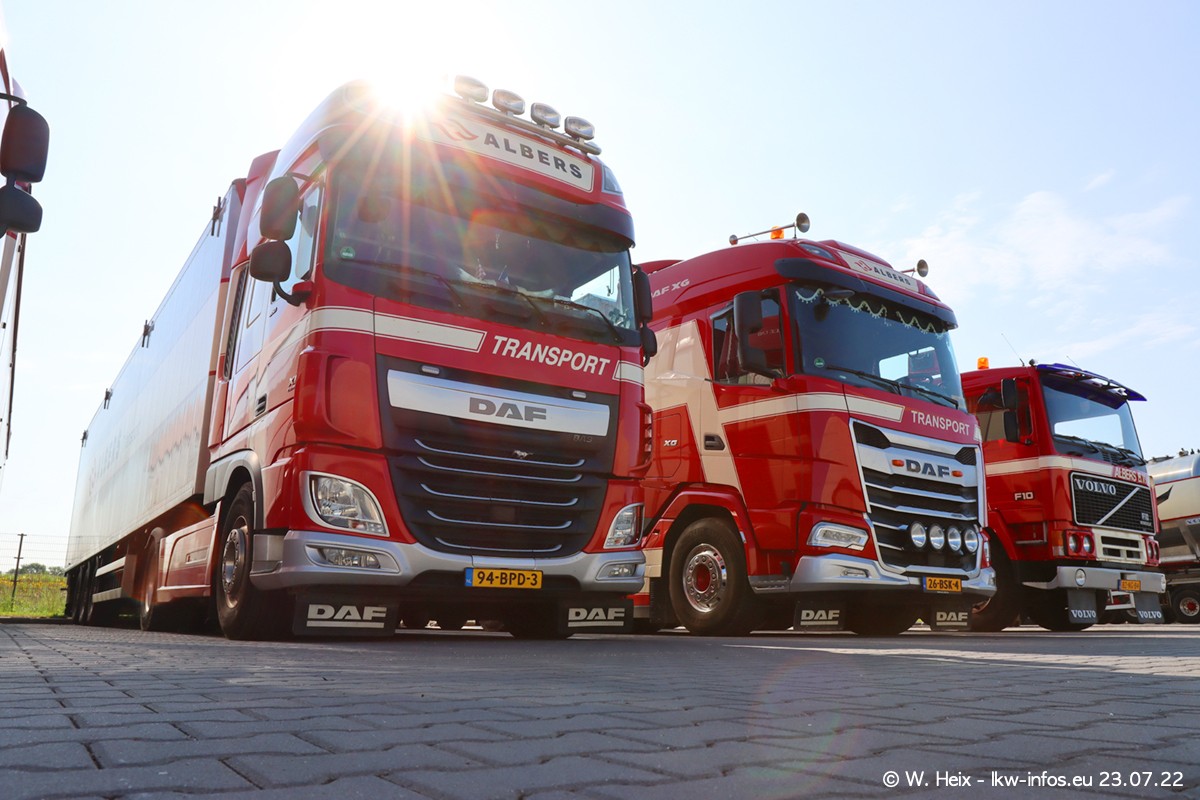 Ende 2021 ist der Fuhrpark von landhorst umgezogen nach Zeeland. Hier gibt es deutlich mehr Platz für die Fahrzeuge. Am Wochenende stehen alle LKW in einer Reihe, sortiert nach Hersteller und Alter. Ein großer Teil der LKW war zuhause. Schön, dass auch der alte VOLVO F10 samt passendem Auflieger mit auf dem Hof stand. Da die Fahrzeuge früh morgens wegen der Sonne genau falsch herum auf dem Gelände standen, war es etwas schwierig mit dem Fotografieren. Aber die Bilder sind trotzdem gut geworden.
