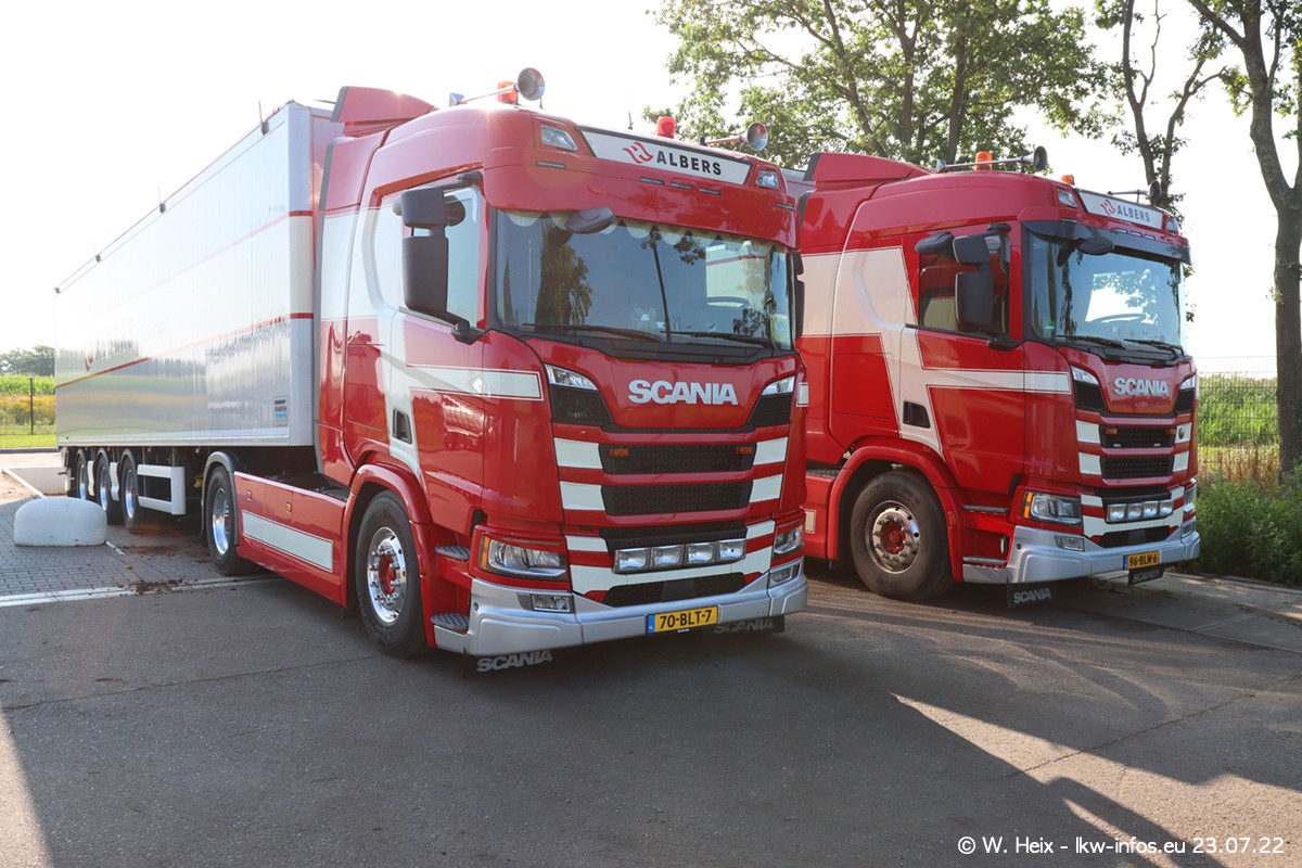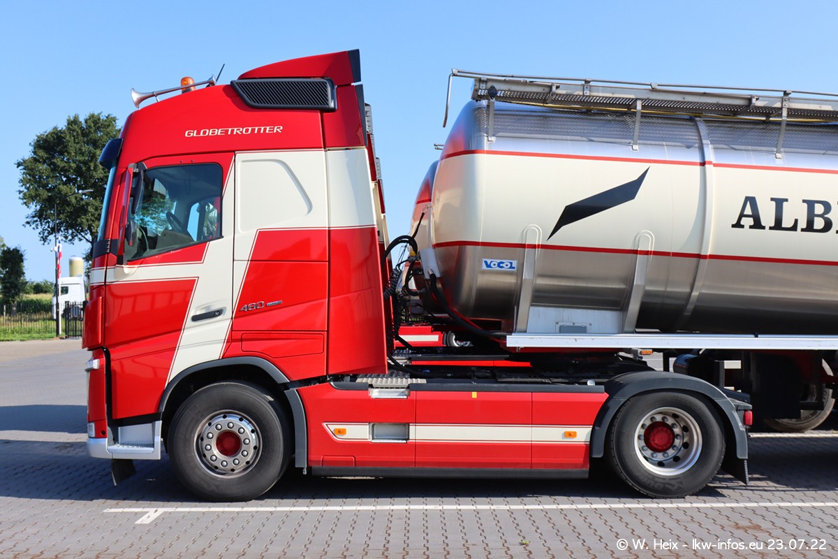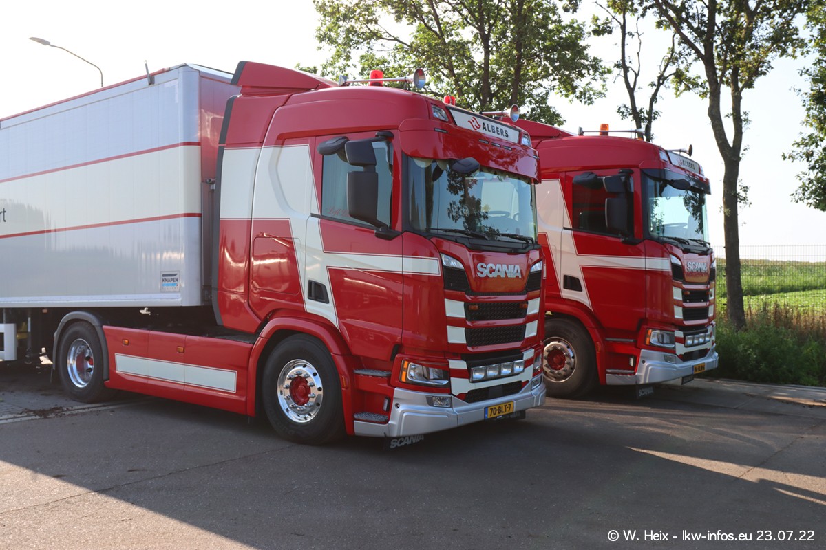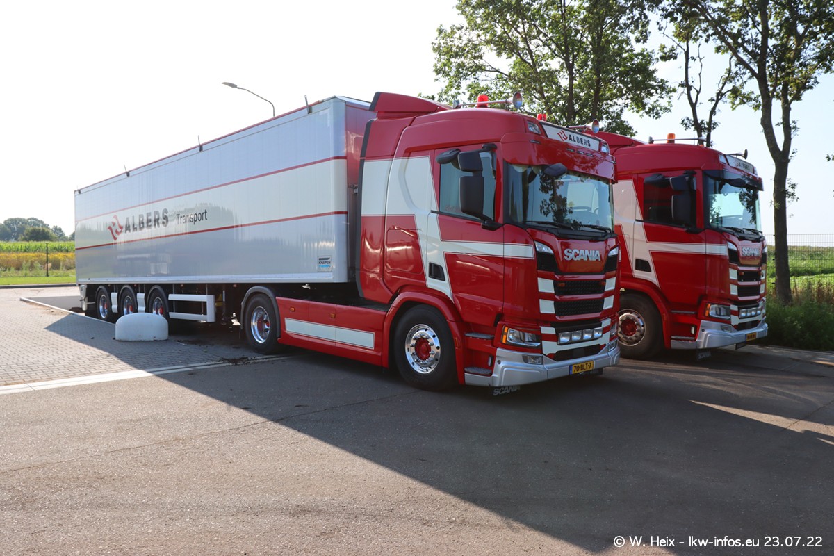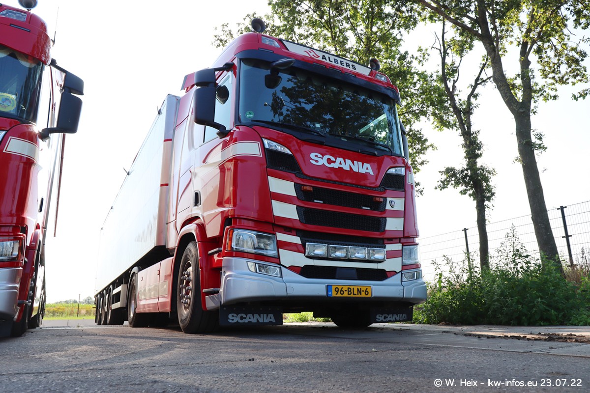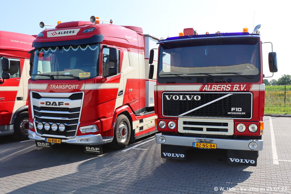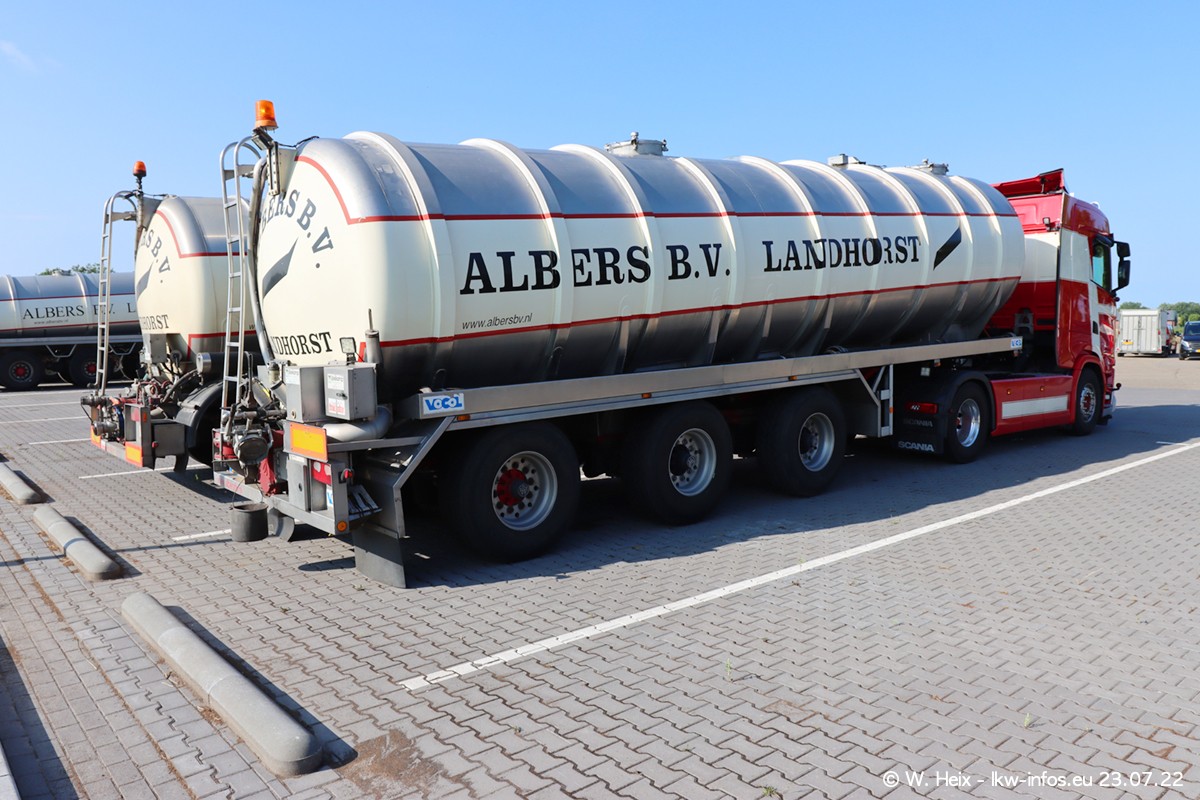 Ende 2021 ist der Fuhrpark von landhorst umgezogen nach Zeeland. Hier gibt es deutlich mehr Platz für die Fahrzeuge. Am Wochenende stehen alle LKW in einer Reihe, sortiert nach Hersteller und Alter. Ein großer Teil der LKW war zuhause. Schön, dass auch der alte VOLVO F10 samt passendem Auflieger mit auf dem Hof stand. Da die Fahrzeuge früh morgens wegen der Sonne genau falsch herum auf dem Gelände standen, war es etwas schwierig mit dem Fotografieren. Aber die Bilder sind trotzdem gut geworden.