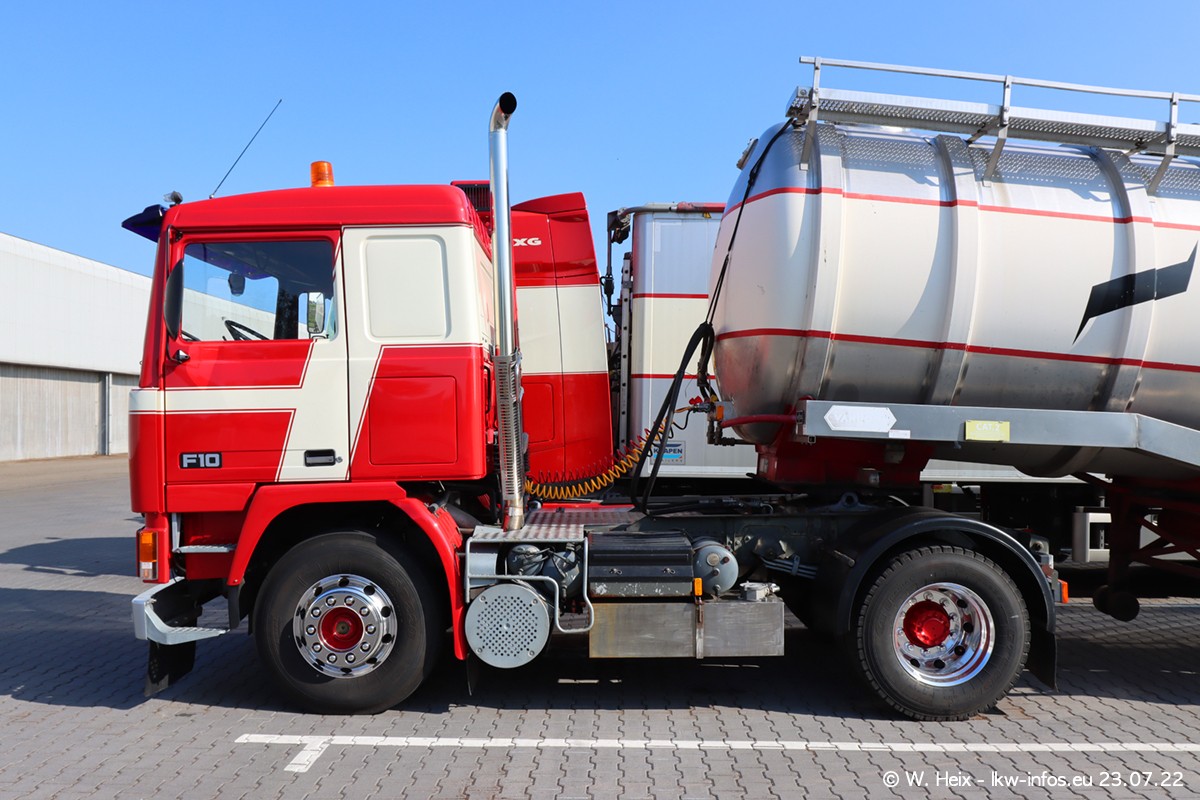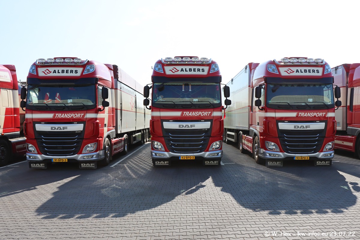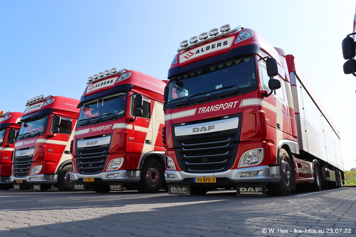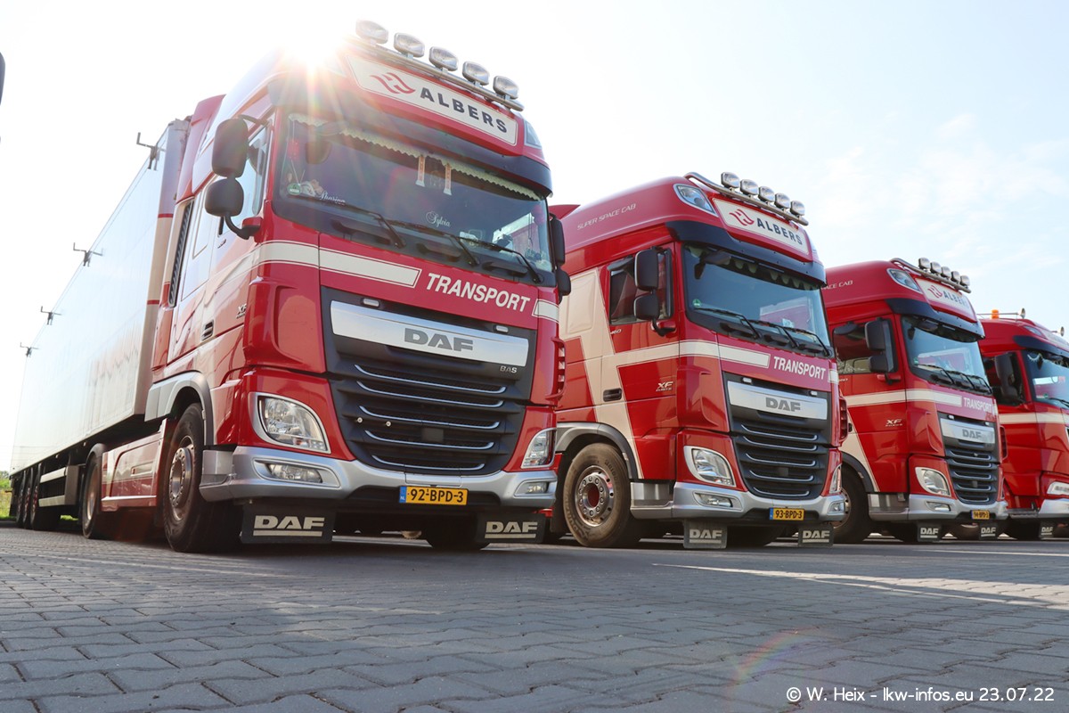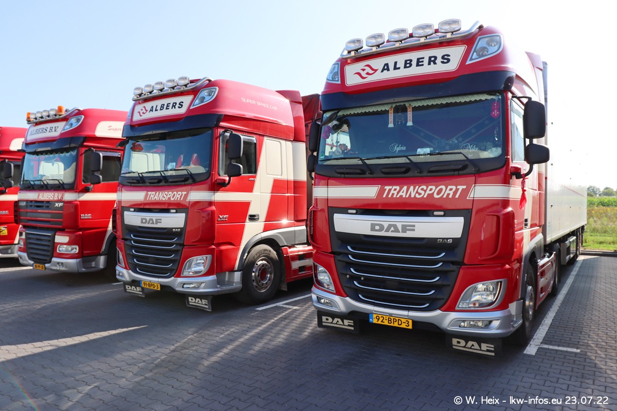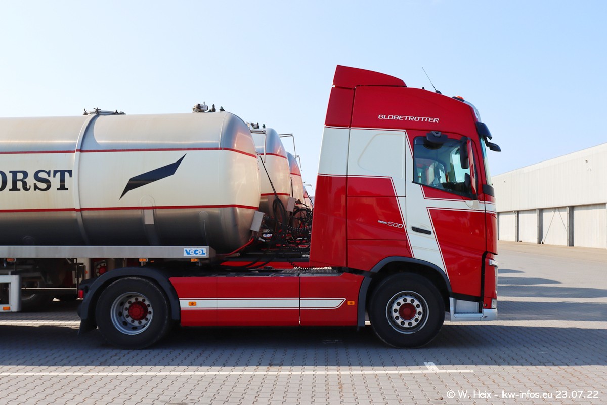 Ende 2021 ist der Fuhrpark von landhorst umgezogen nach Zeeland. Hier gibt es deutlich mehr Platz für die Fahrzeuge. Am Wochenende stehen alle LKW in einer Reihe, sortiert nach Hersteller und Alter. Ein großer Teil der LKW war zuhause. Schön, dass auch der alte VOLVO F10 samt passendem Auflieger mit auf dem Hof stand. Da die Fahrzeuge früh morgens wegen der Sonne genau falsch herum auf dem Gelände standen, war es etwas schwierig mit dem Fotografieren. Aber die Bilder sind trotzdem gut geworden.