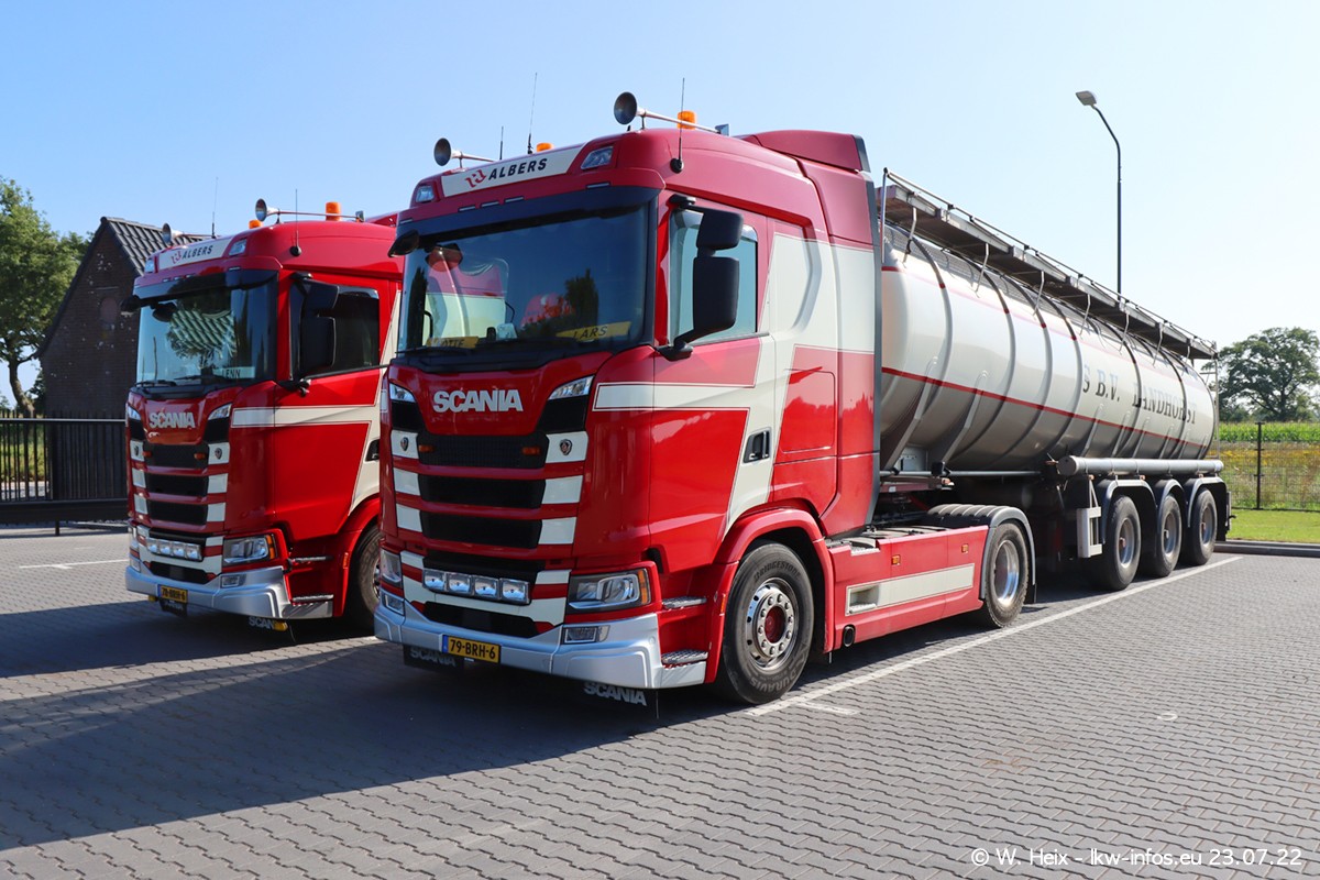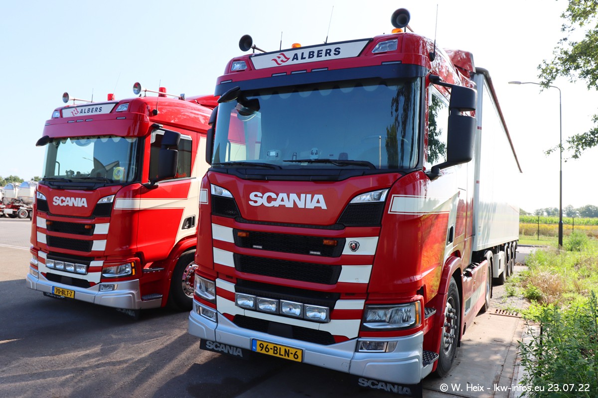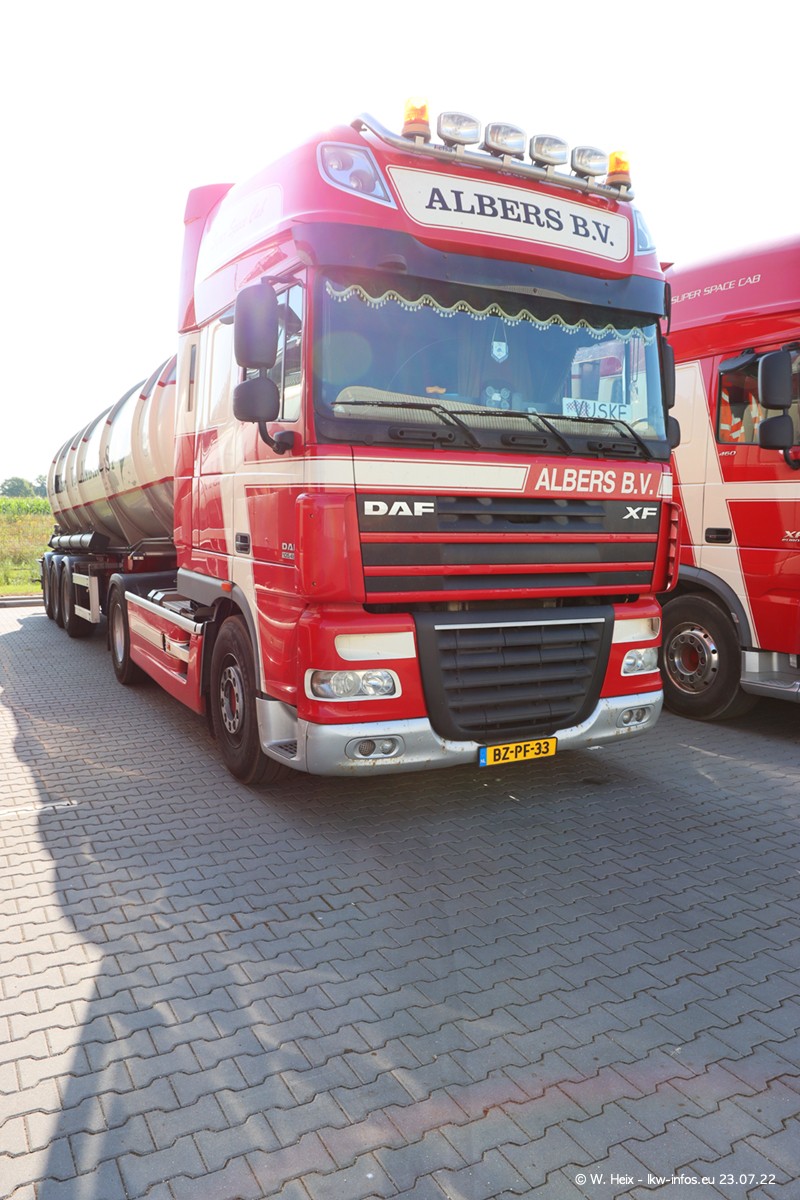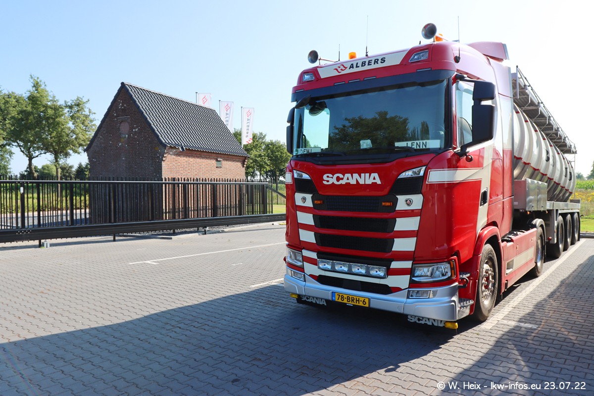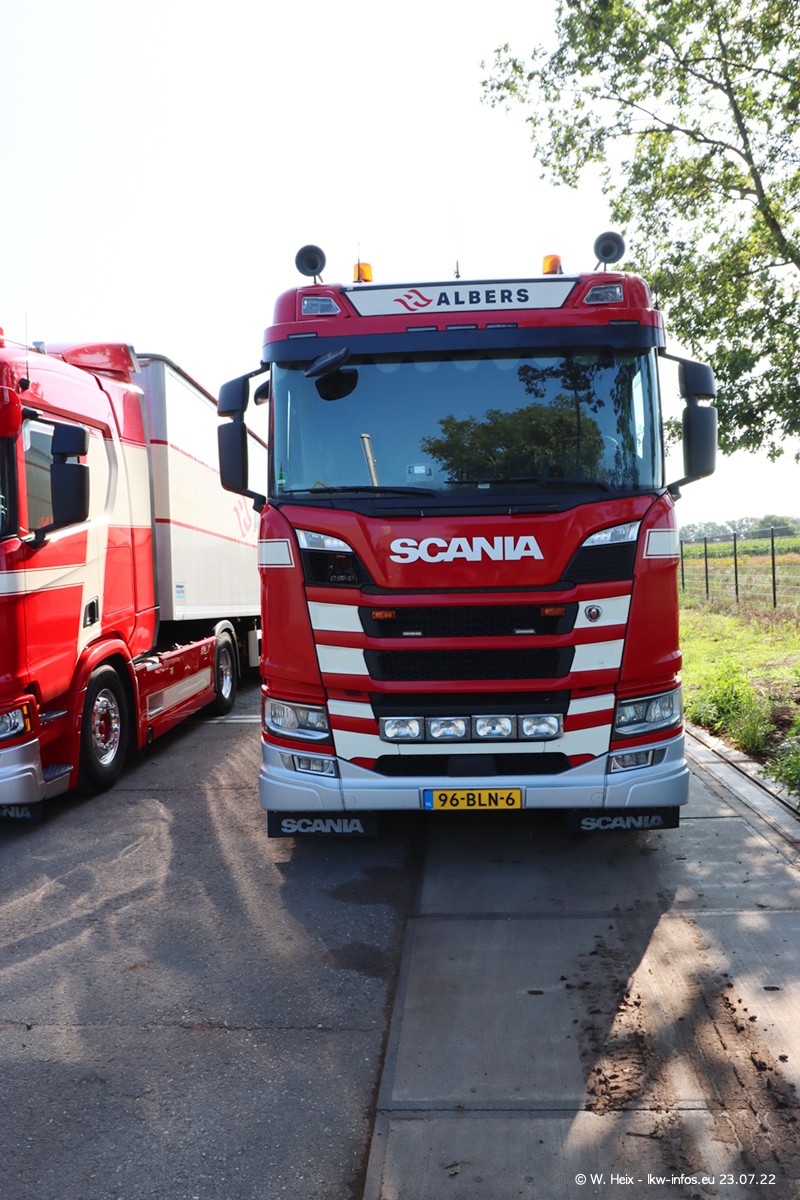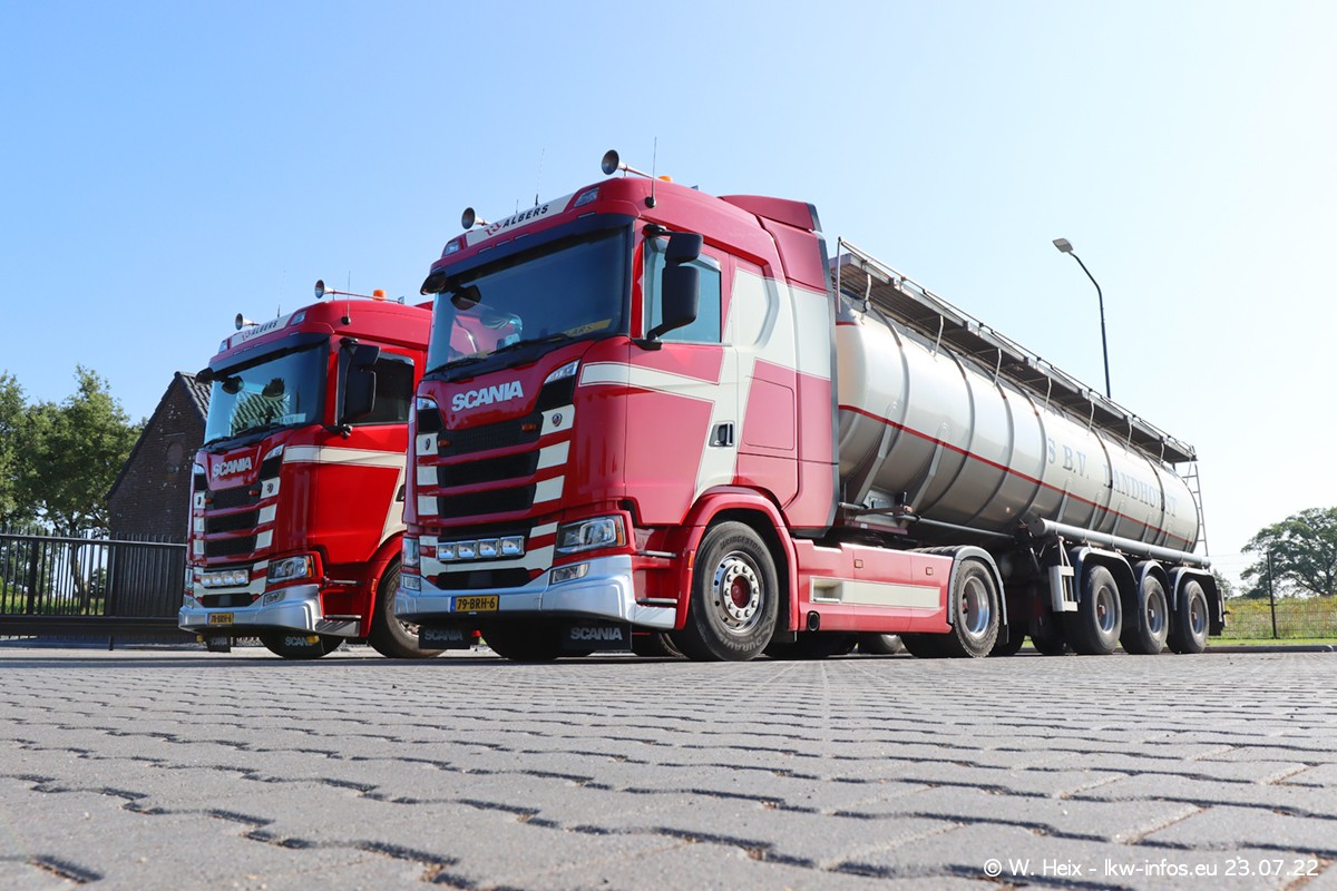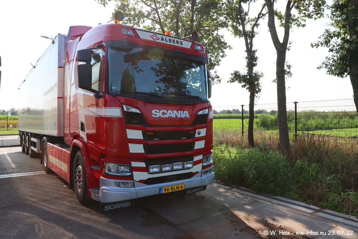 Ende 2021 ist der Fuhrpark von landhorst umgezogen nach Zeeland. Hier gibt es deutlich mehr Platz für die Fahrzeuge. Am Wochenende stehen alle LKW in einer Reihe, sortiert nach Hersteller und Alter. Ein großer Teil der LKW war zuhause. Schön, dass auch der alte VOLVO F10 samt passendem Auflieger mit auf dem Hof stand. Da die Fahrzeuge früh morgens wegen der Sonne genau falsch herum auf dem Gelände standen, war es etwas schwierig mit dem Fotografieren. Aber die Bilder sind trotzdem gut geworden.