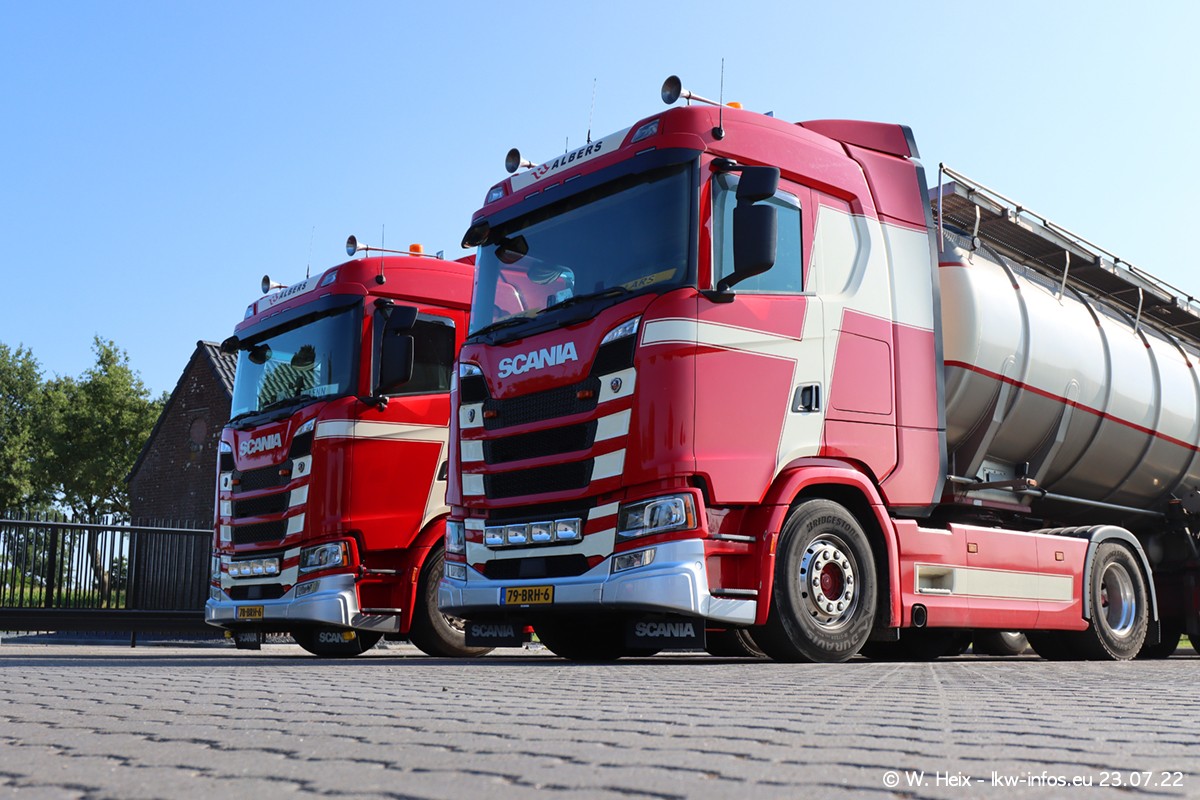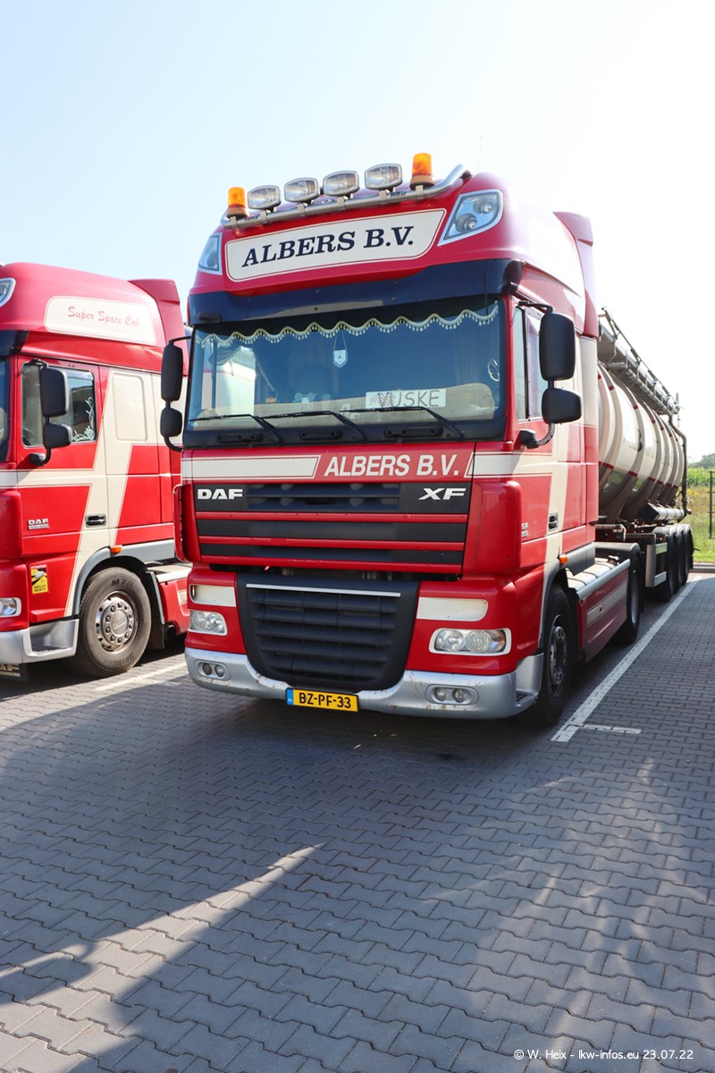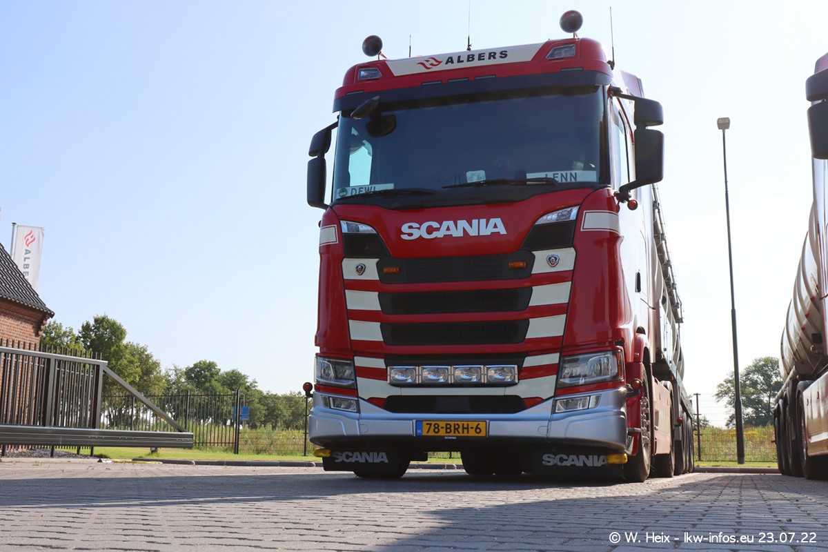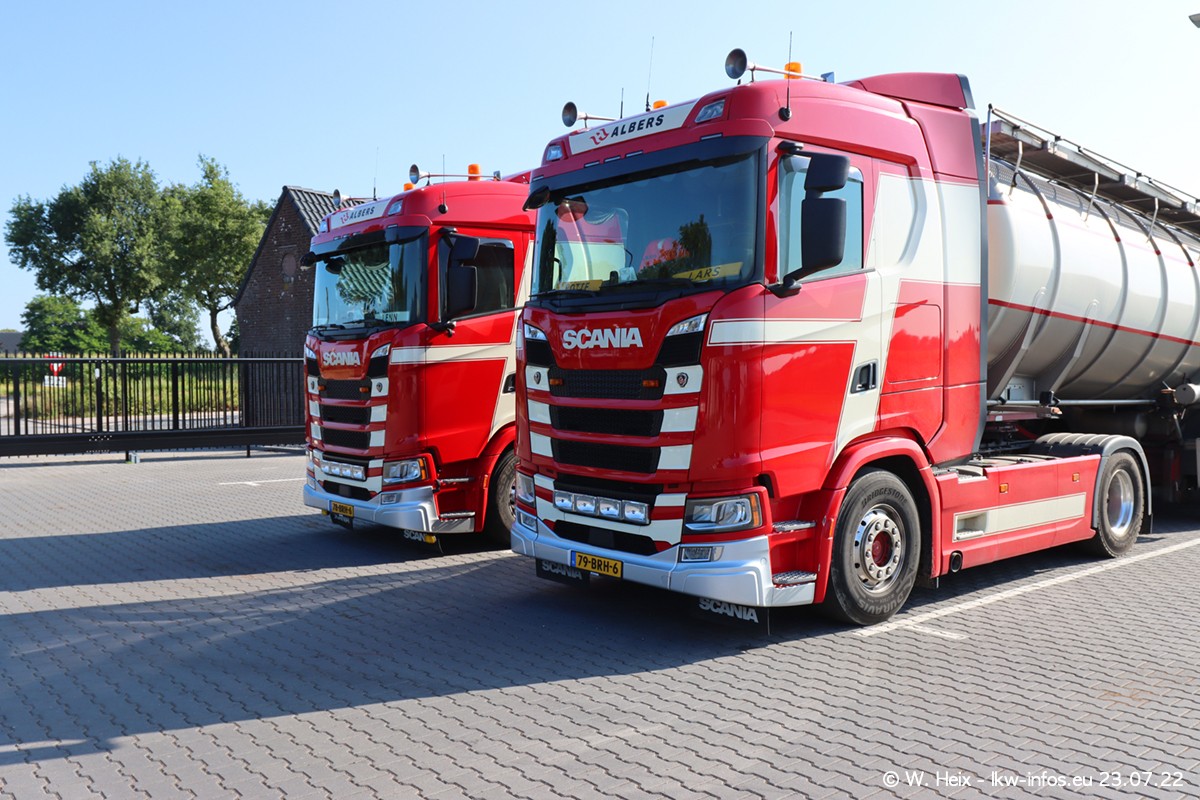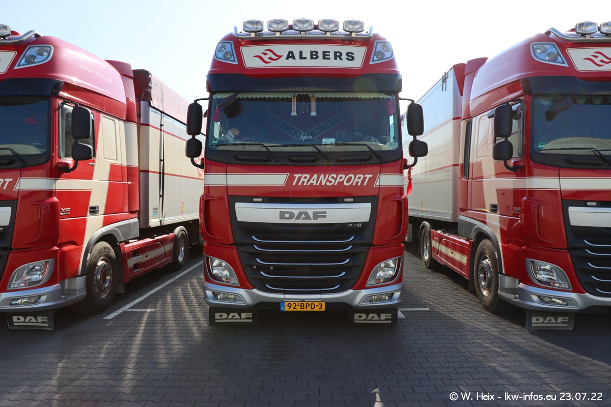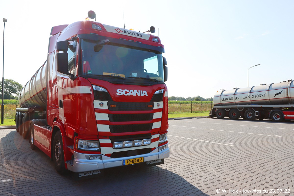 Ende 2021 ist der Fuhrpark von landhorst umgezogen nach Zeeland. Hier gibt es deutlich mehr Platz für die Fahrzeuge. Am Wochenende stehen alle LKW in einer Reihe, sortiert nach Hersteller und Alter. Ein großer Teil der LKW war zuhause. Schön, dass auch der alte VOLVO F10 samt passendem Auflieger mit auf dem Hof stand. Da die Fahrzeuge früh morgens wegen der Sonne genau falsch herum auf dem Gelände standen, war es etwas schwierig mit dem Fotografieren. Aber die Bilder sind trotzdem gut geworden.