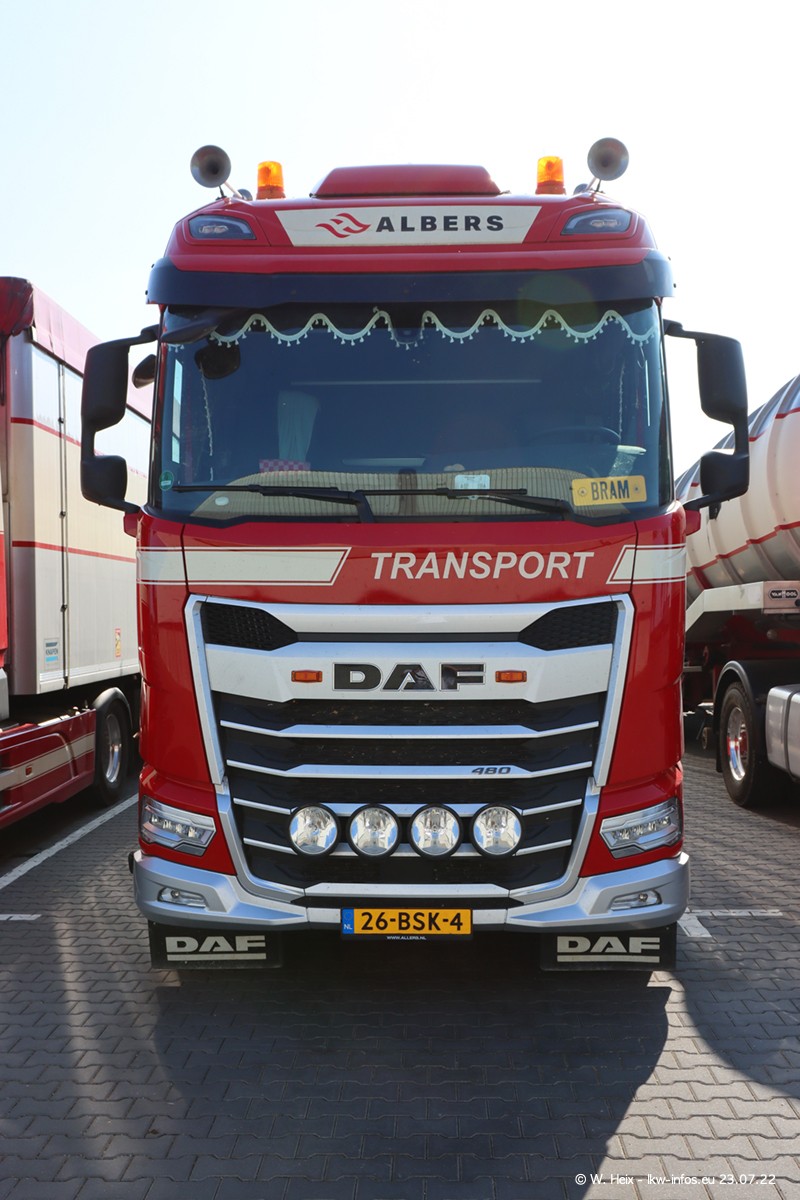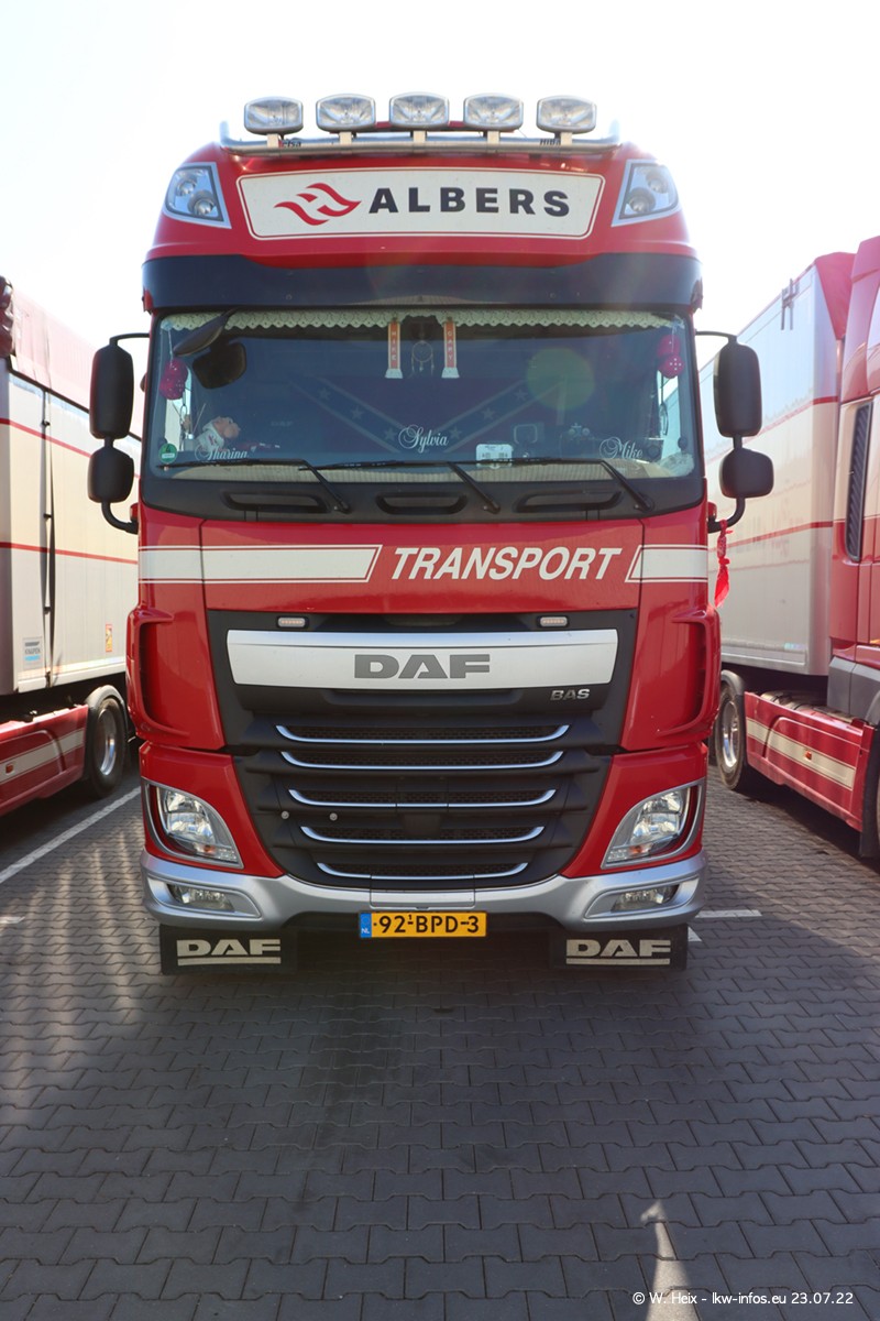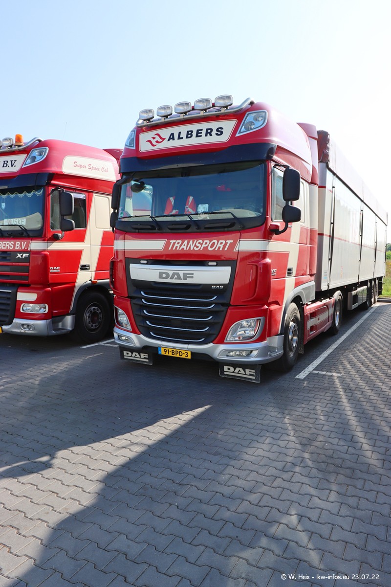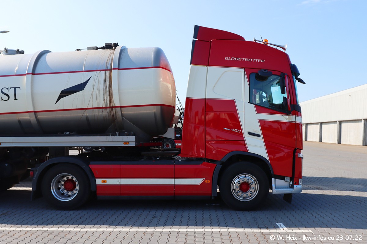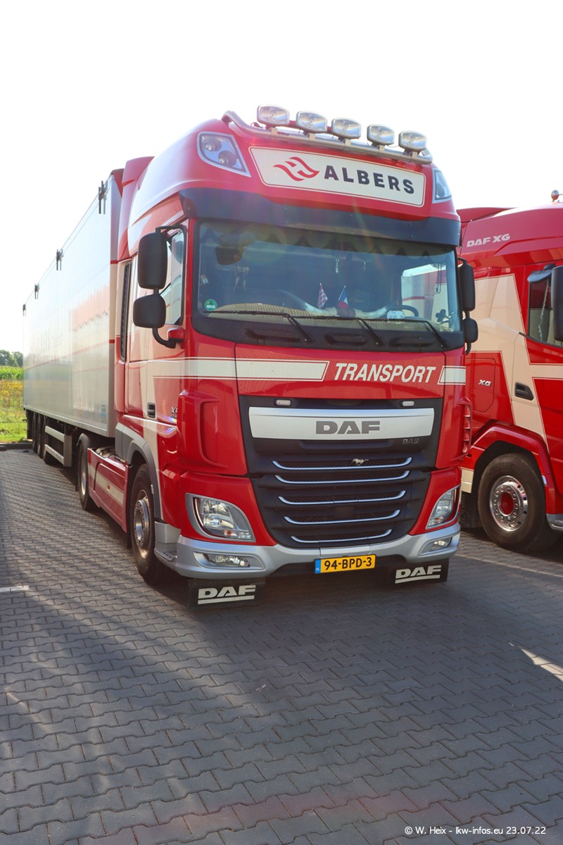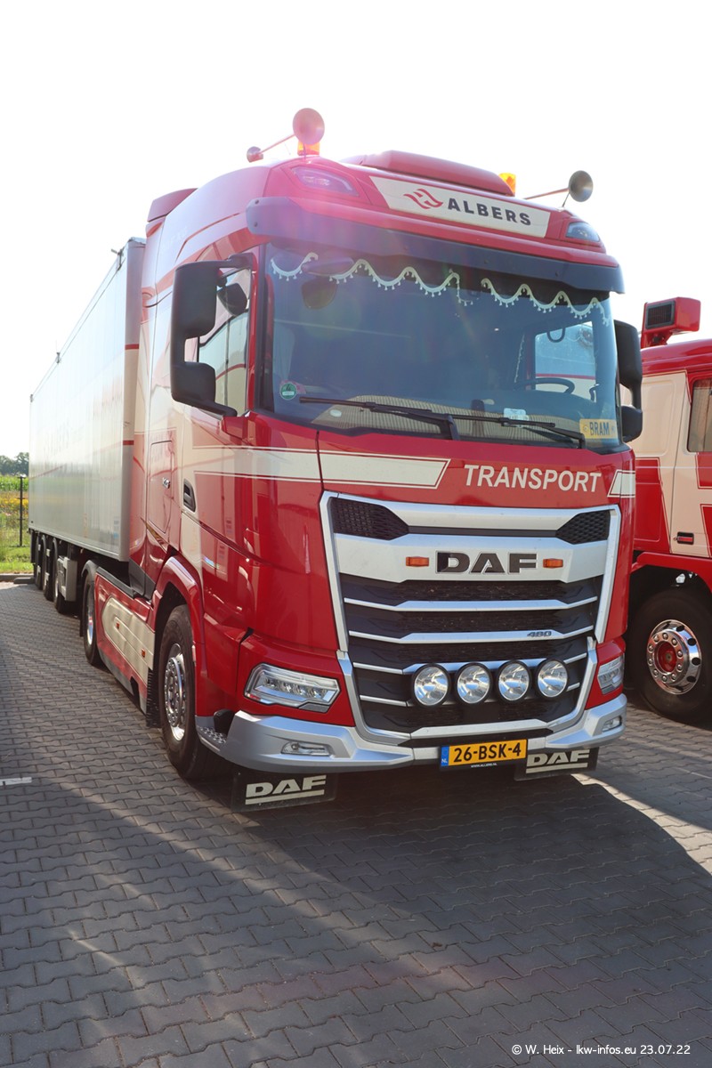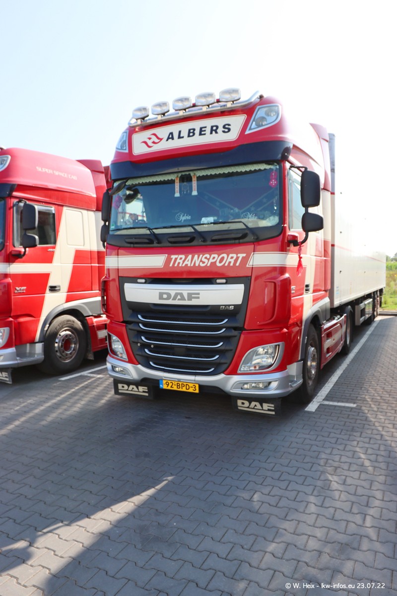 Ende 2021 ist der Fuhrpark von landhorst umgezogen nach Zeeland. Hier gibt es deutlich mehr Platz für die Fahrzeuge. Am Wochenende stehen alle LKW in einer Reihe, sortiert nach Hersteller und Alter. Ein großer Teil der LKW war zuhause. Schön, dass auch der alte VOLVO F10 samt passendem Auflieger mit auf dem Hof stand. Da die Fahrzeuge früh morgens wegen der Sonne genau falsch herum auf dem Gelände standen, war es etwas schwierig mit dem Fotografieren. Aber die Bilder sind trotzdem gut geworden.