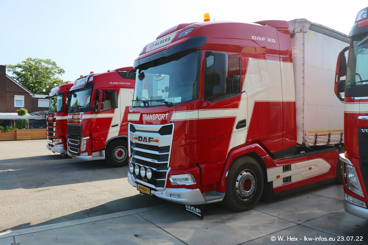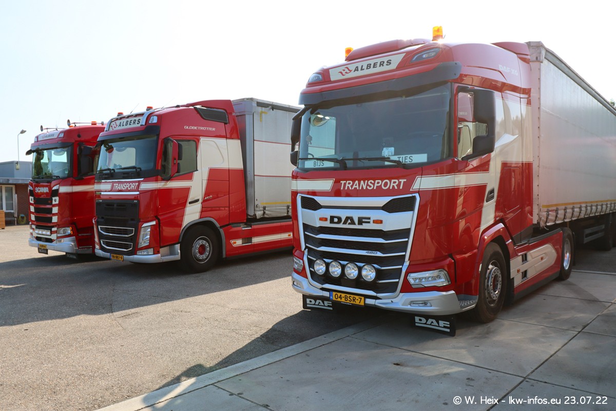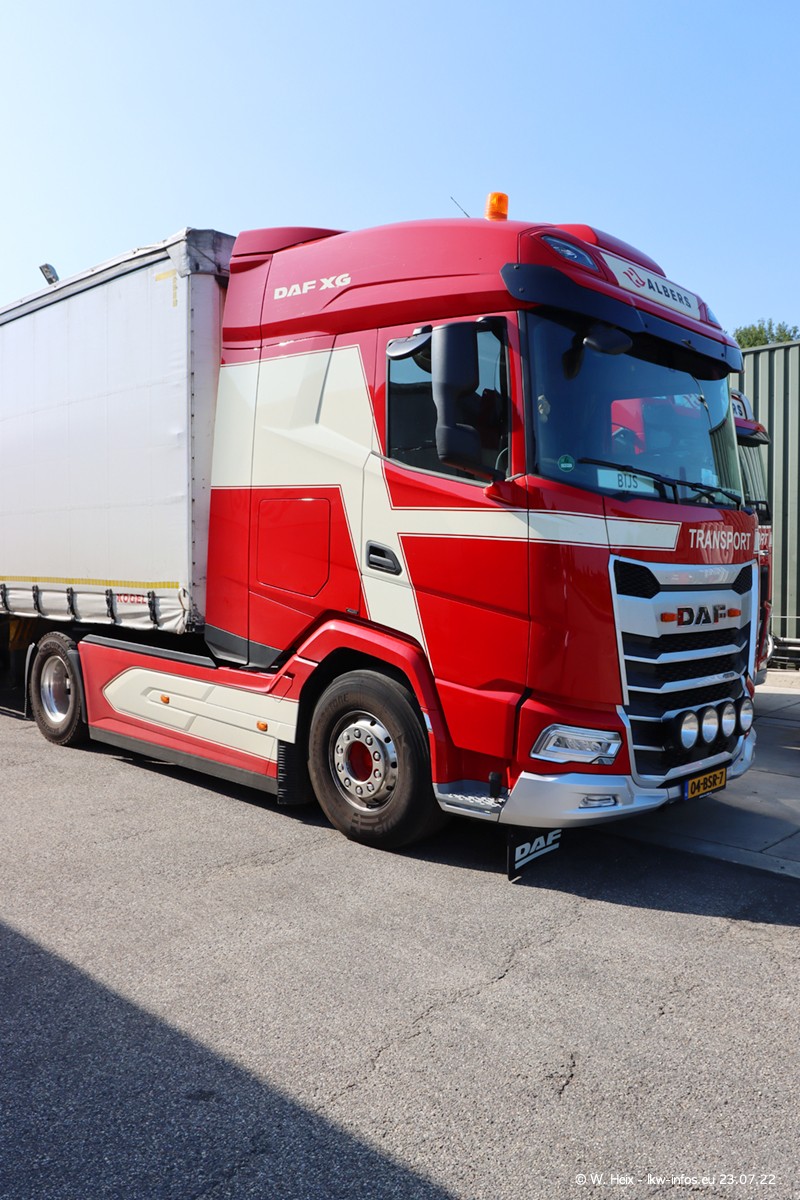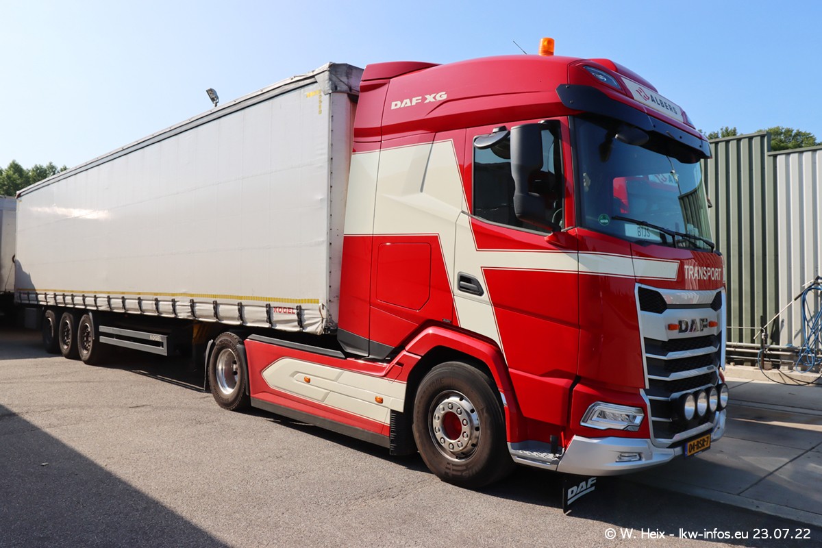 In Mill ist der Bereich Albers Transport zuhause. Hier stehen deutlich weniger LKW als in Zeeland. Neu am Standort Mill ist ein DAF XG. Das ist jetzt der zweite neue DAF XG bei Albers B.V.. Der stand einigermaßen gut für Fotos.