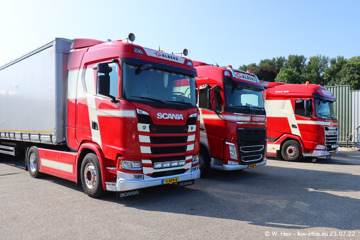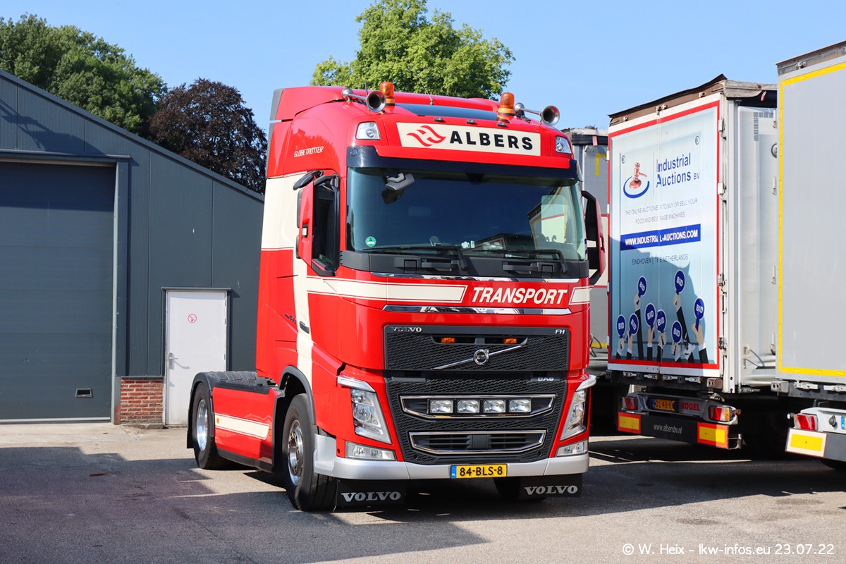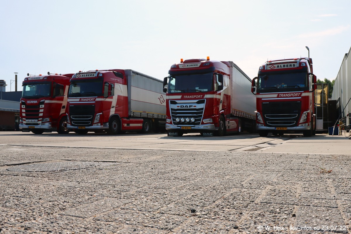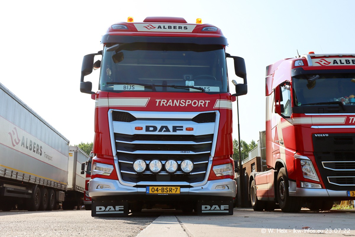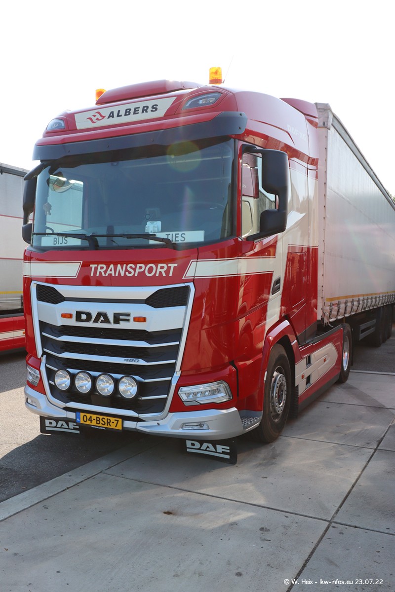 In Mill ist der Bereich Albers Transport zuhause. Hier stehen deutlich weniger LKW als in Zeeland. Neu am Standort Mill ist ein DAF XG. Das ist jetzt der zweite neue DAF XG bei Albers B.V.. Der stand einigermaßen gut für Fotos.