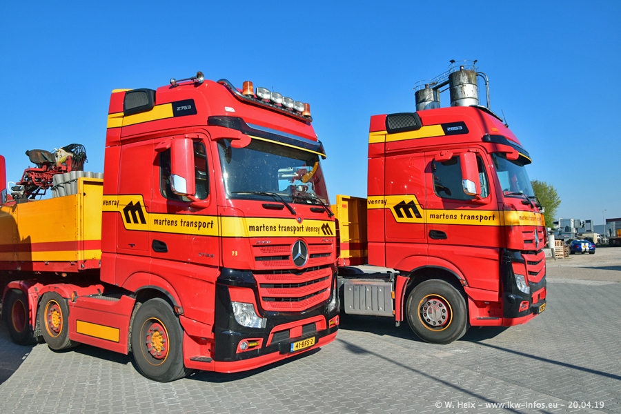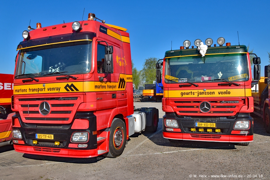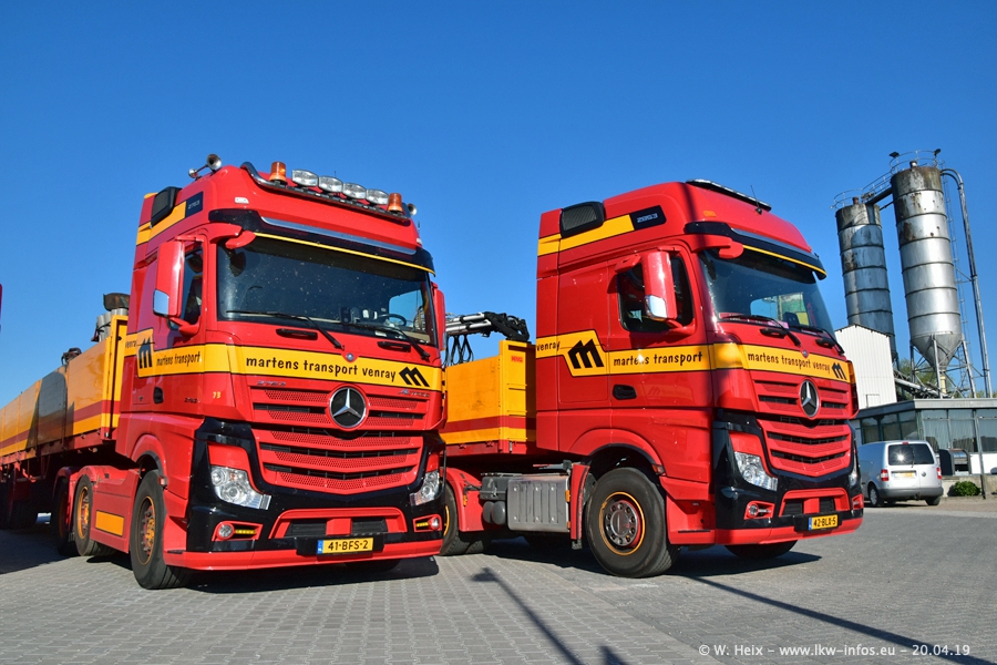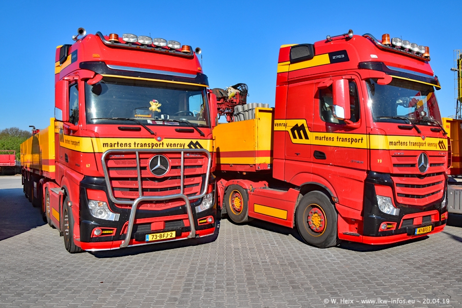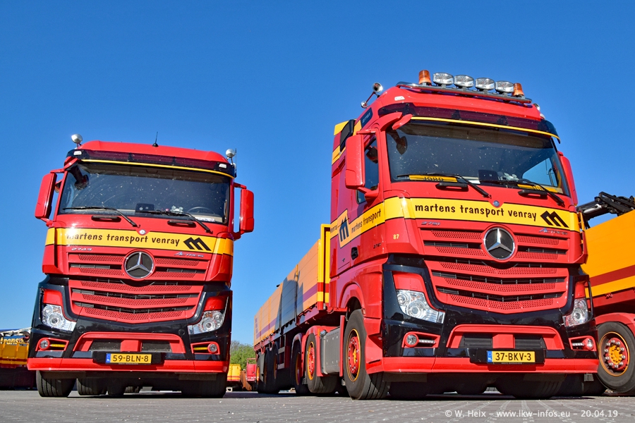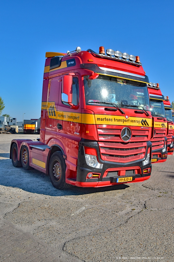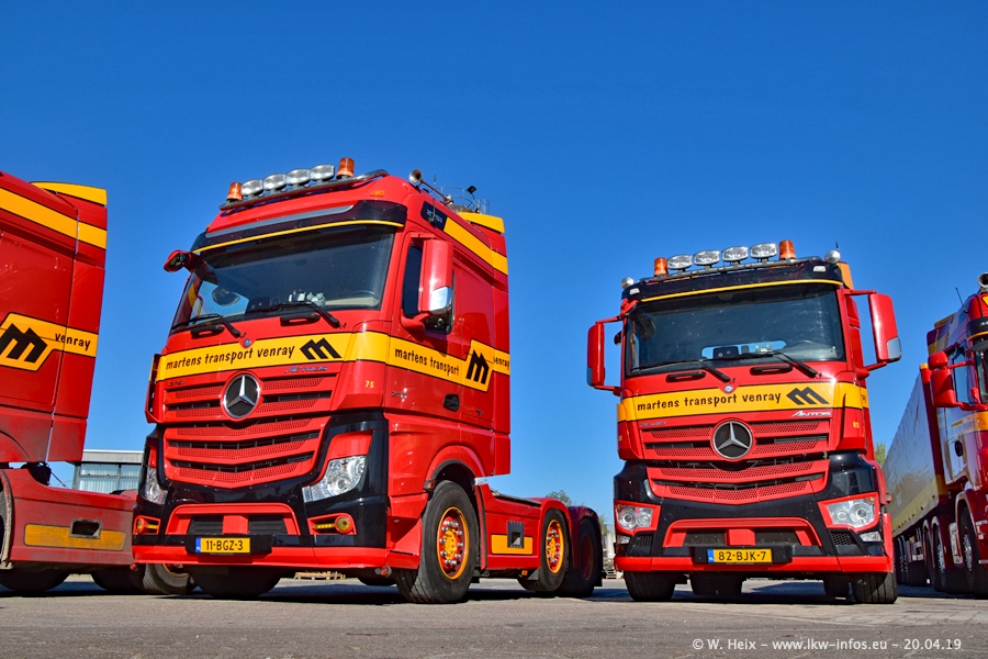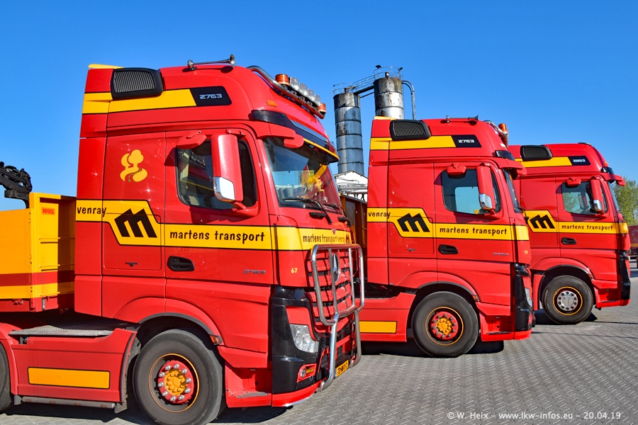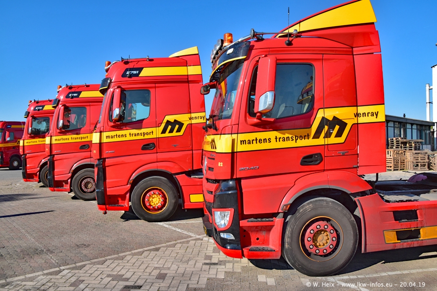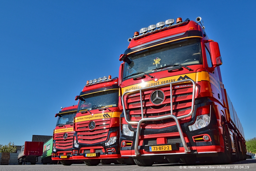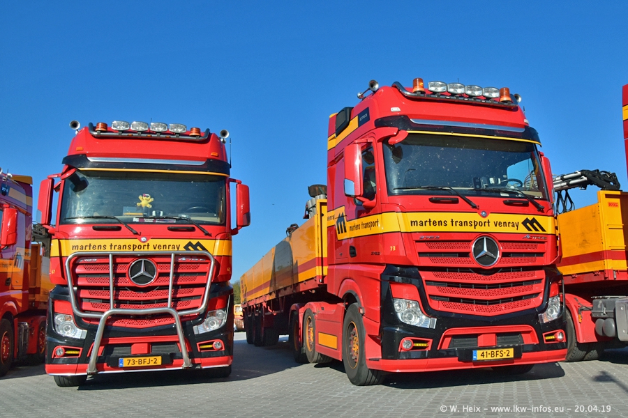 Der Fuhrpark von Martens Transport ist inzwischen auf 20 LKW angewachsen. Das sind bis auf zwei SCANIA alles Fahrzeuge von Mercedes-Benz und hier vor allem die Baureihe Actros 4. Neu sind die drei Actros 4 mit den Kennzeichen 37-BKV-3, 42-BLX-5, und 59-BLN-8.
