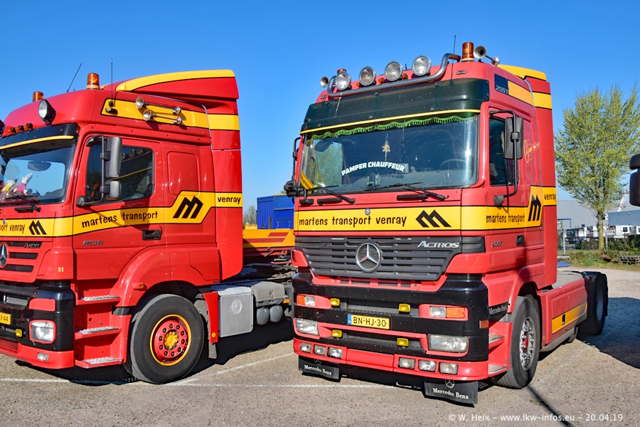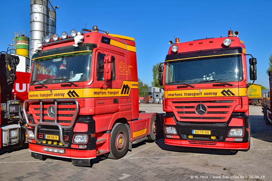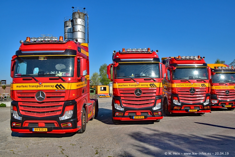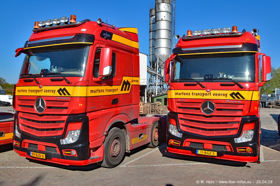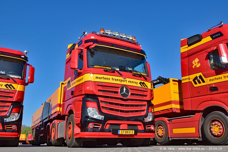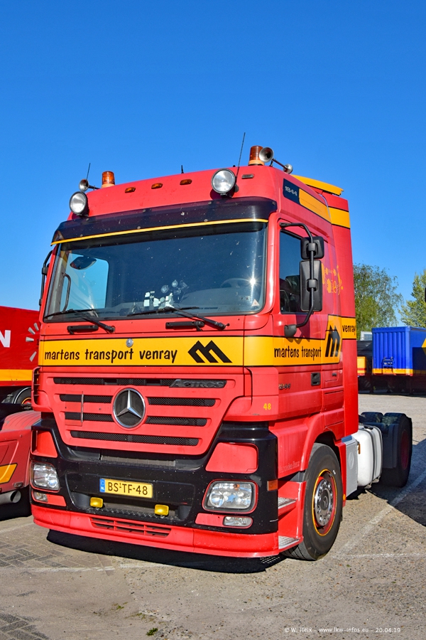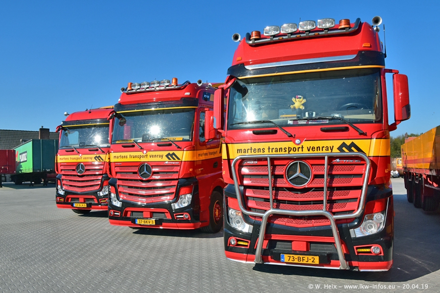 Der Fuhrpark von Martens Transport ist inzwischen auf 20 LKW angewachsen. Das sind bis auf zwei SCANIA alles Fahrzeuge von Mercedes-Benz und hier vor allem die Baureihe Actros 4. Neu sind die drei Actros 4 mit den Kennzeichen 37-BKV-3, 42-BLX-5, und 59-BLN-8.