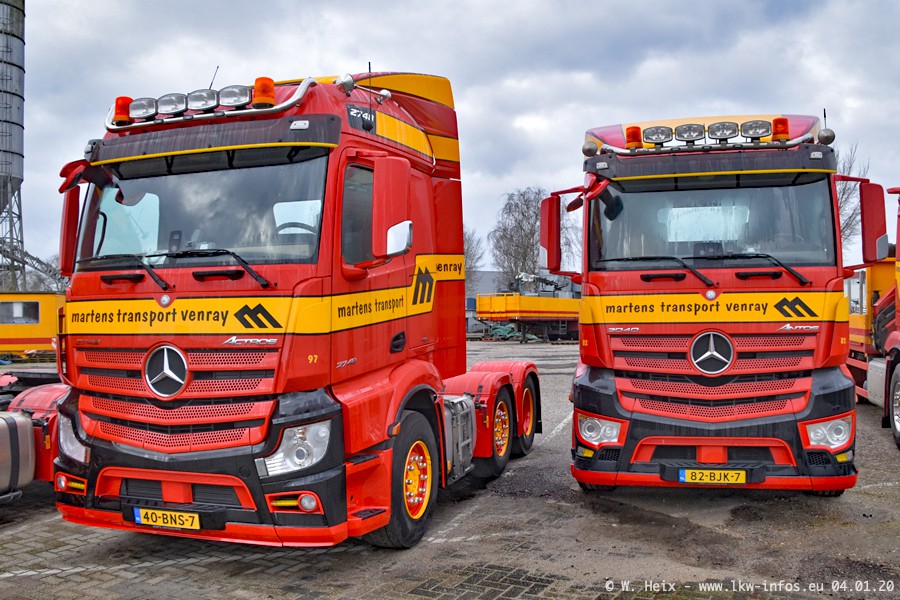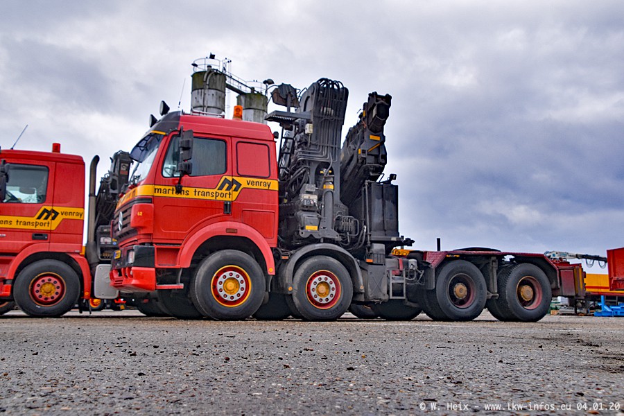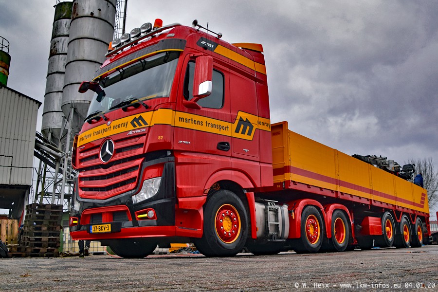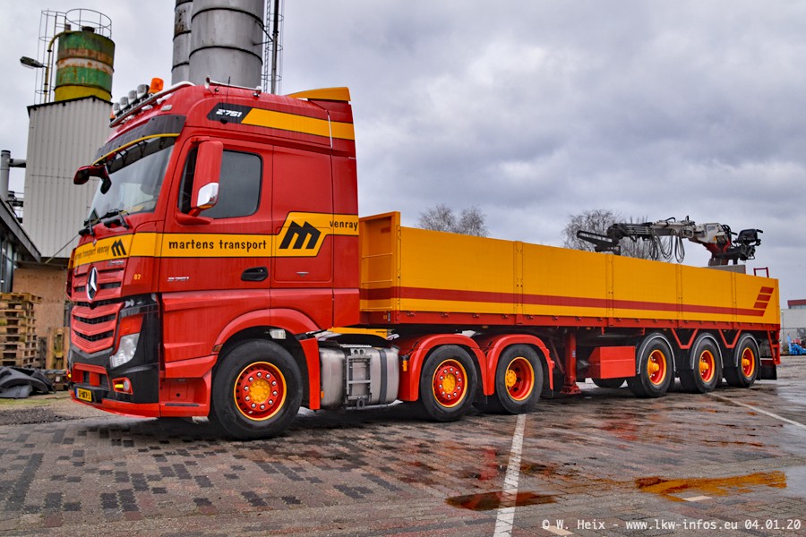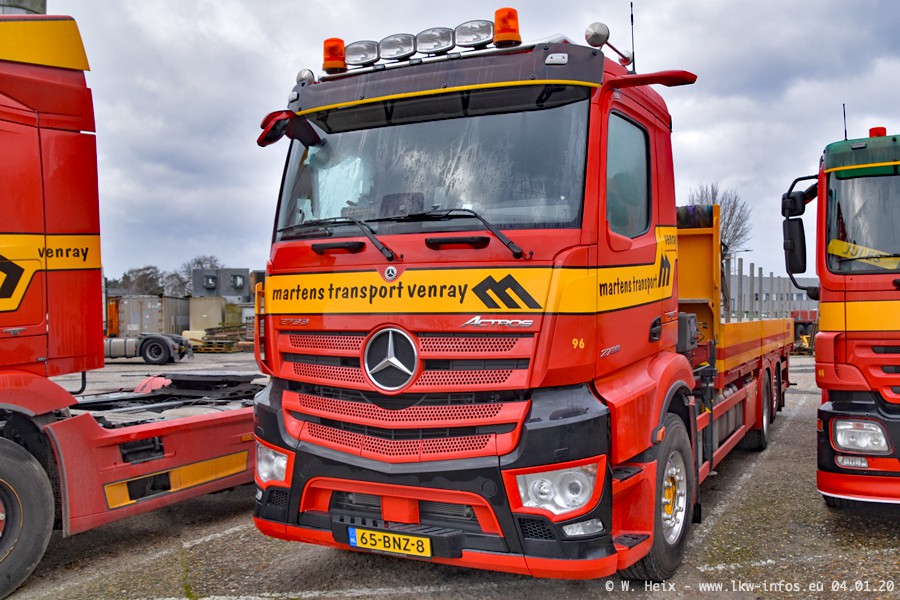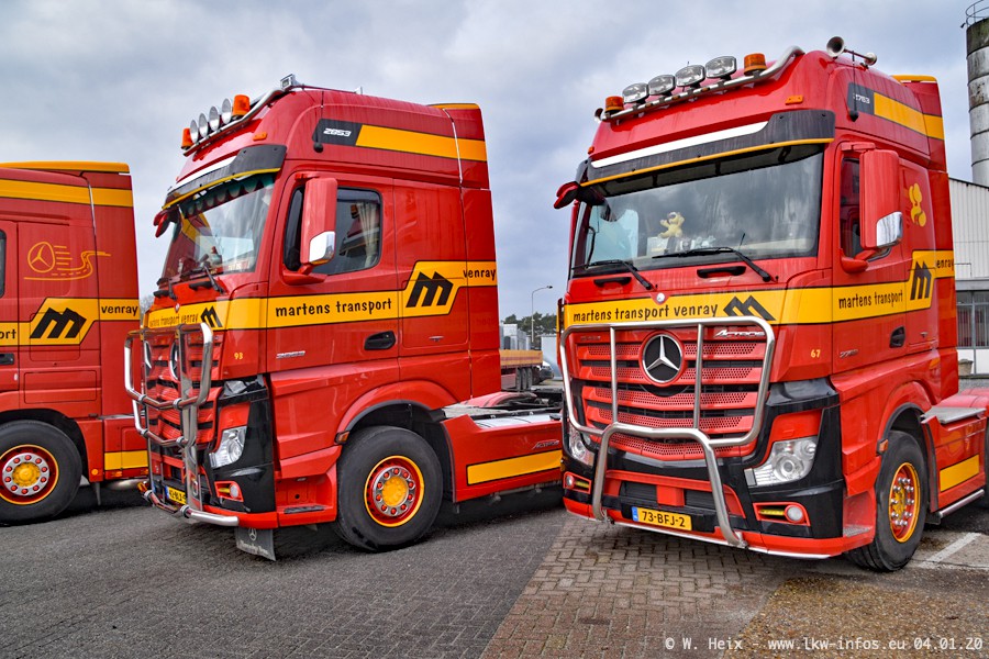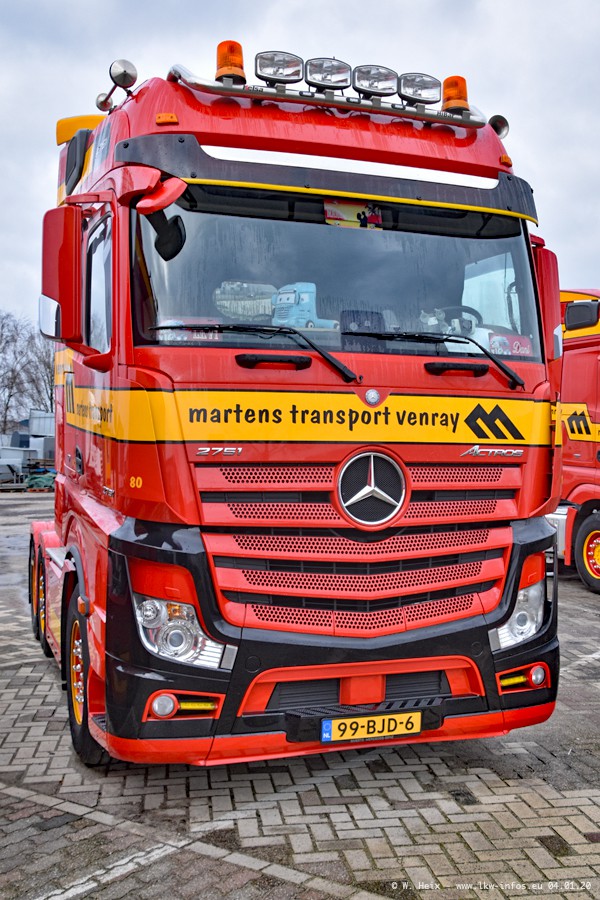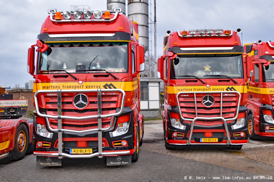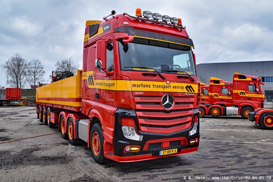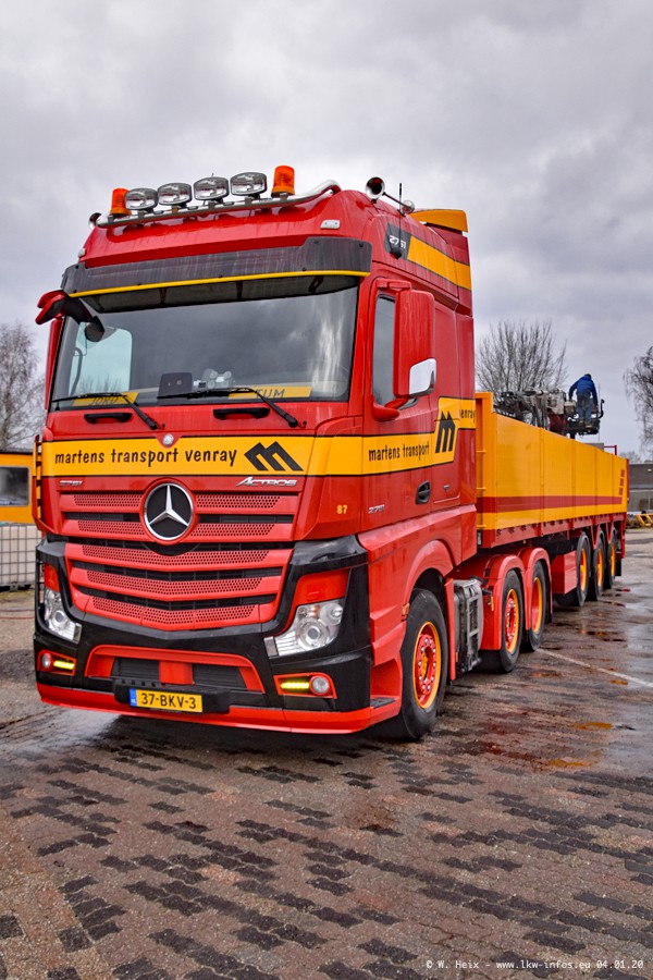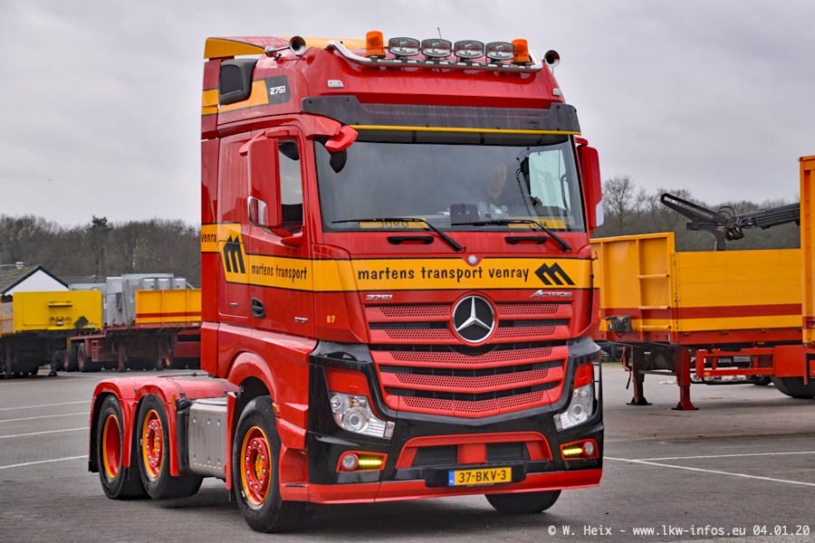 Dies war ein "verspäteter" Weihnachtsbesuch bei Martens. 19 der insgesamt 20 LKW waren zuhause und standen in einer Reihe nebeneinander. Anfang Dezember 2019 gab es auch bei Martens den ersten Mercedes-Benz New Actros 4 (ohne Spiegel). Das ist ein 2733. Mittlerweile gibt es nur noch einen SCANIA 114 im Fuhrpark (der blaue). Der Rest ist komplett von Mercedes-Benz.