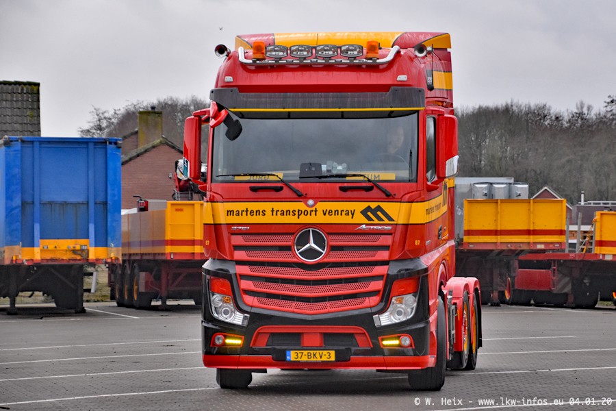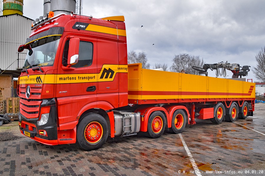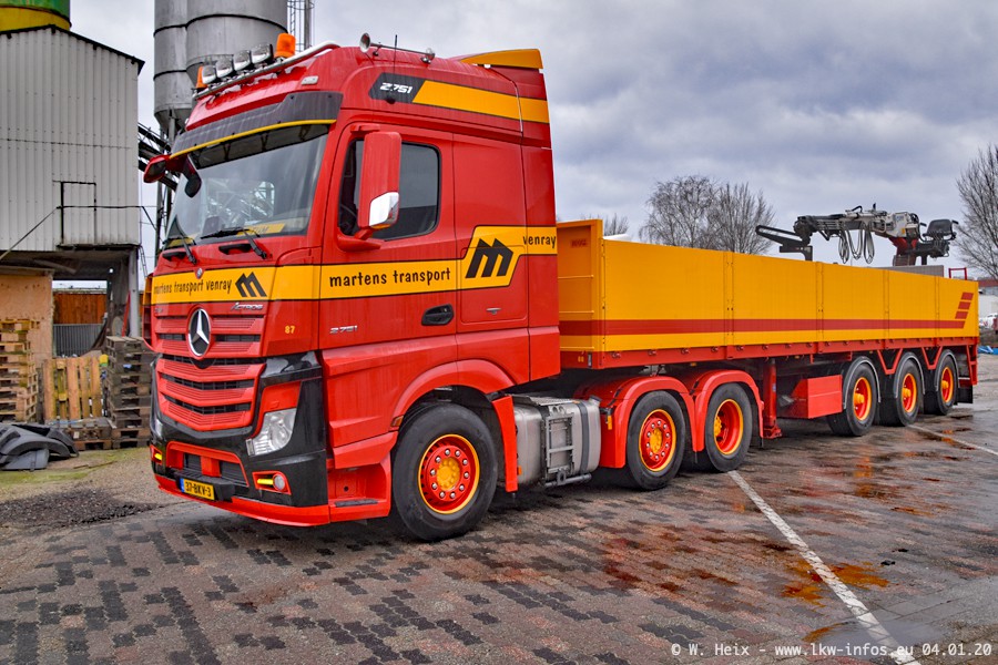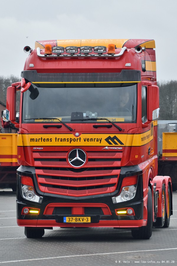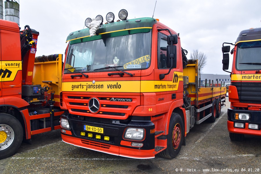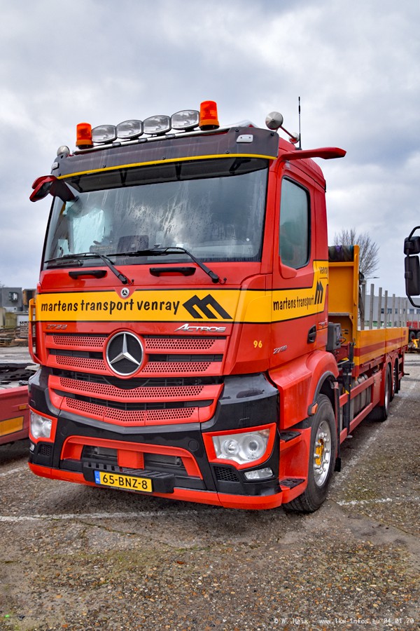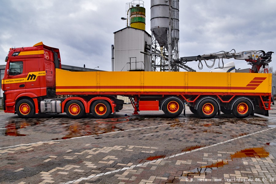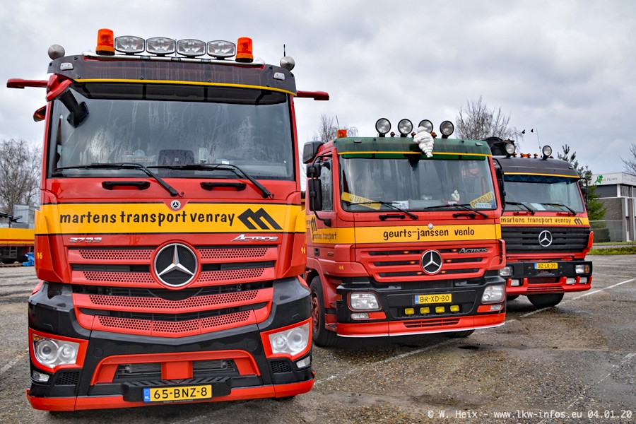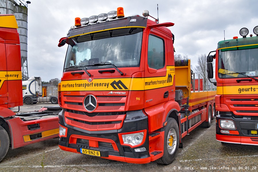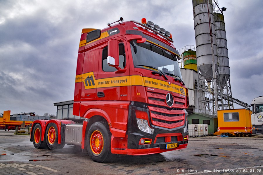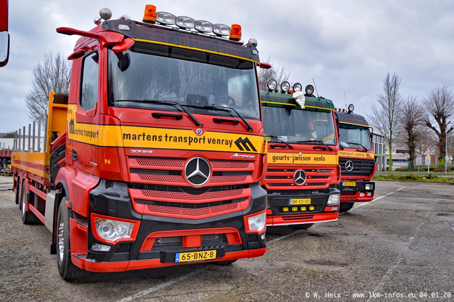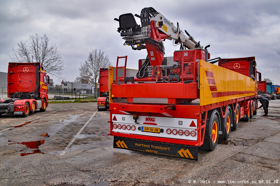 Dies war ein "verspäteter" Weihnachtsbesuch bei Martens. 19 der insgesamt 20 LKW waren zuhause und standen in einer Reihe nebeneinander. Anfang Dezember 2019 gab es auch bei Martens den ersten Mercedes-Benz New Actros 4 (ohne Spiegel). Das ist ein 2733. Mittlerweile gibt es nur noch einen SCANIA 114 im Fuhrpark (der blaue). Der Rest ist komplett von Mercedes-Benz.