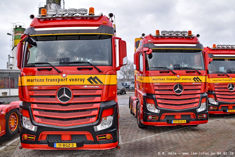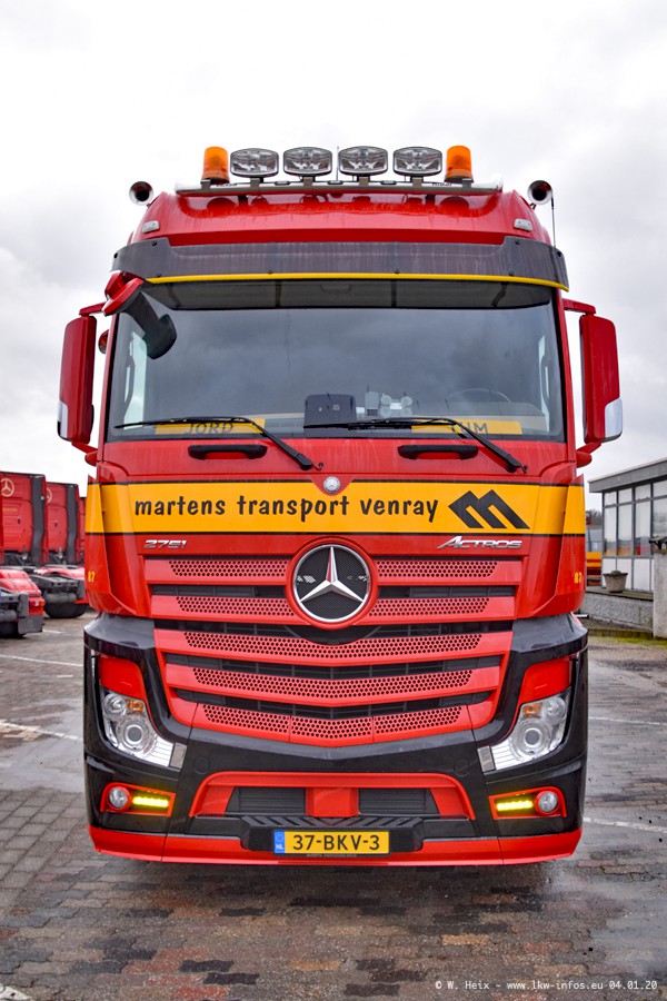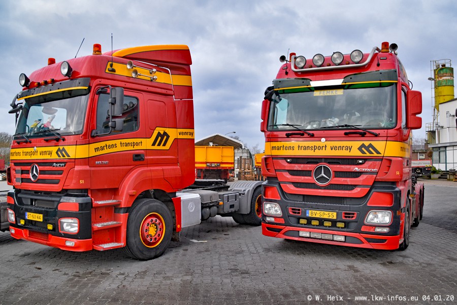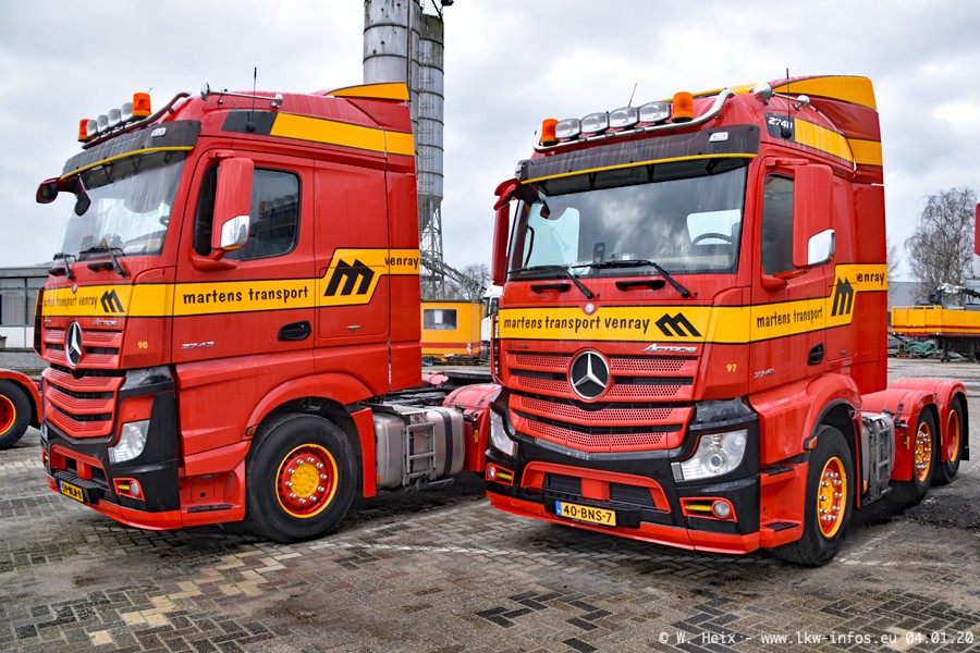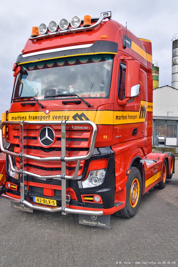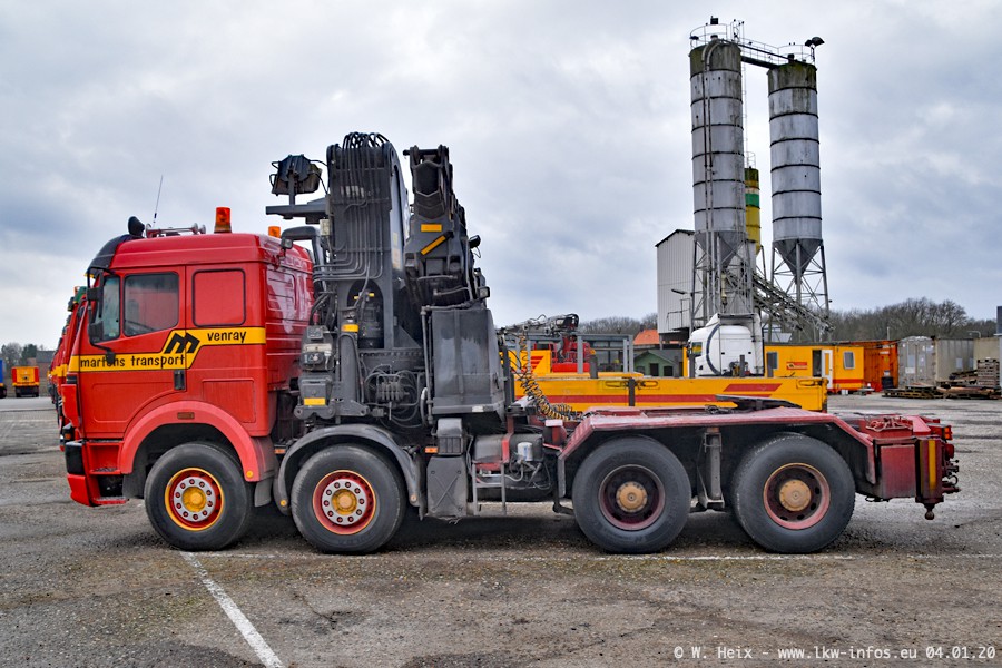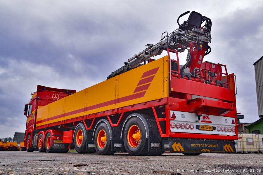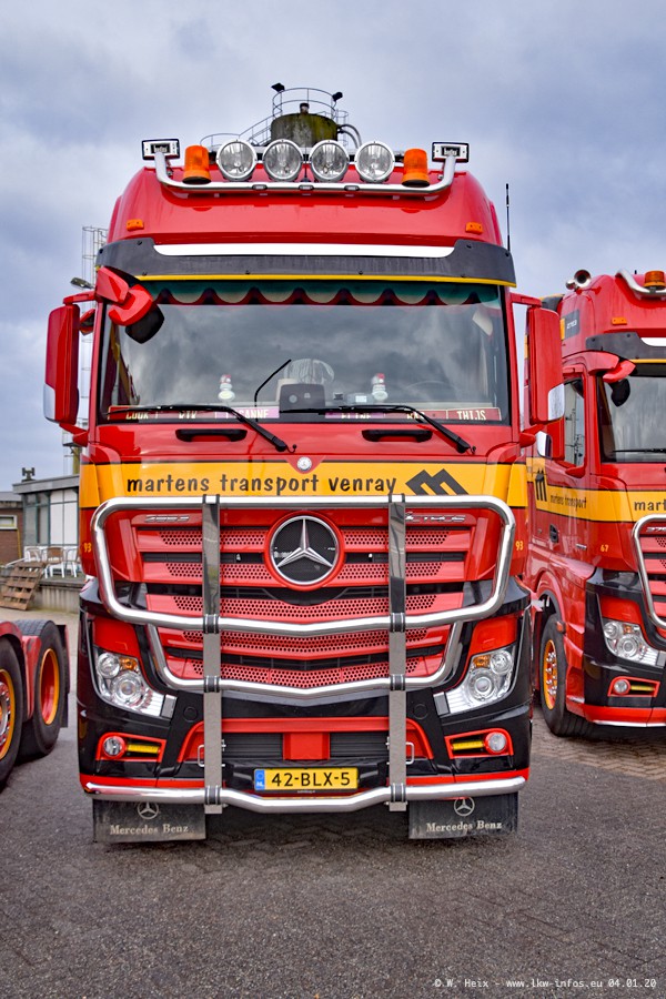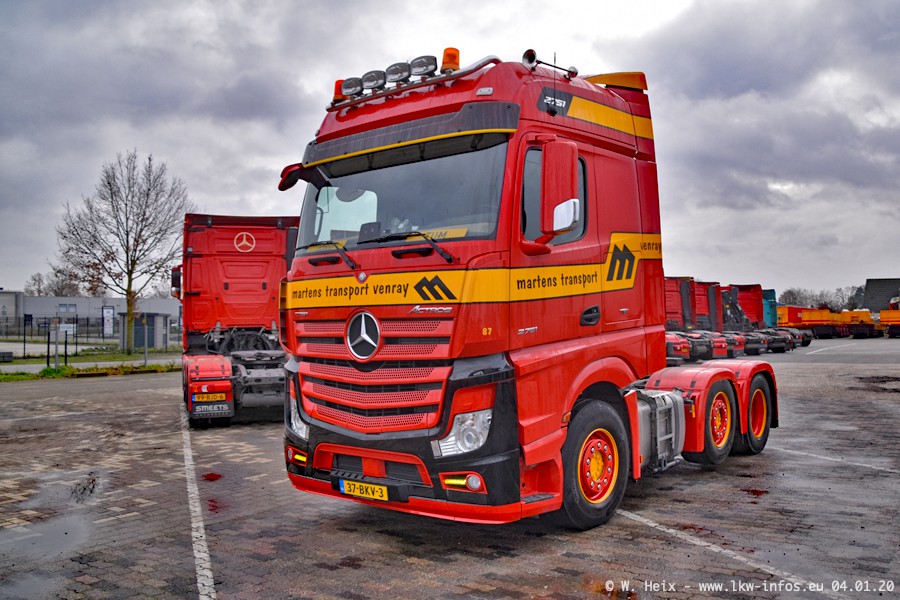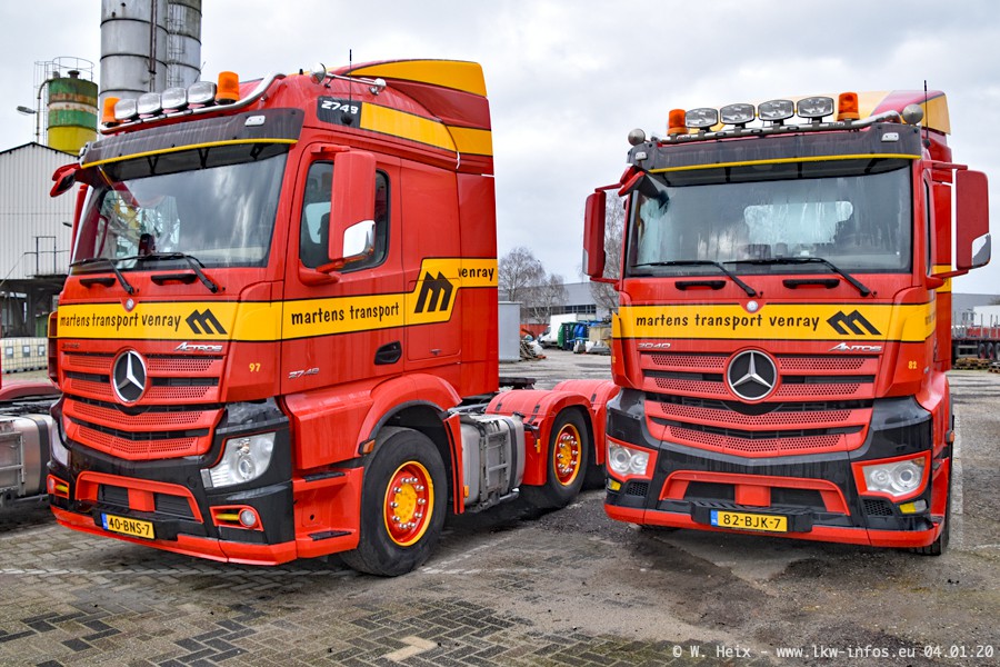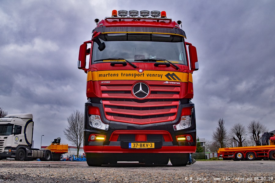 Dies war ein "verspäteter" Weihnachtsbesuch bei Martens. 19 der insgesamt 20 LKW waren zuhause und standen in einer Reihe nebeneinander. Anfang Dezember 2019 gab es auch bei Martens den ersten Mercedes-Benz New Actros 4 (ohne Spiegel). Das ist ein 2733. Mittlerweile gibt es nur noch einen SCANIA 114 im Fuhrpark (der blaue). Der Rest ist komplett von Mercedes-Benz.