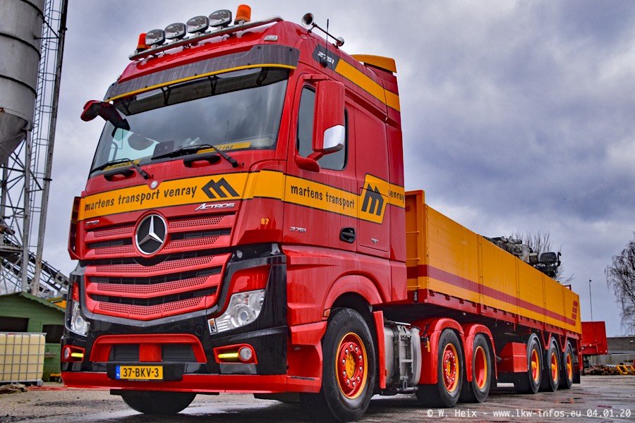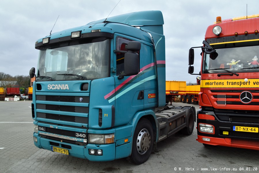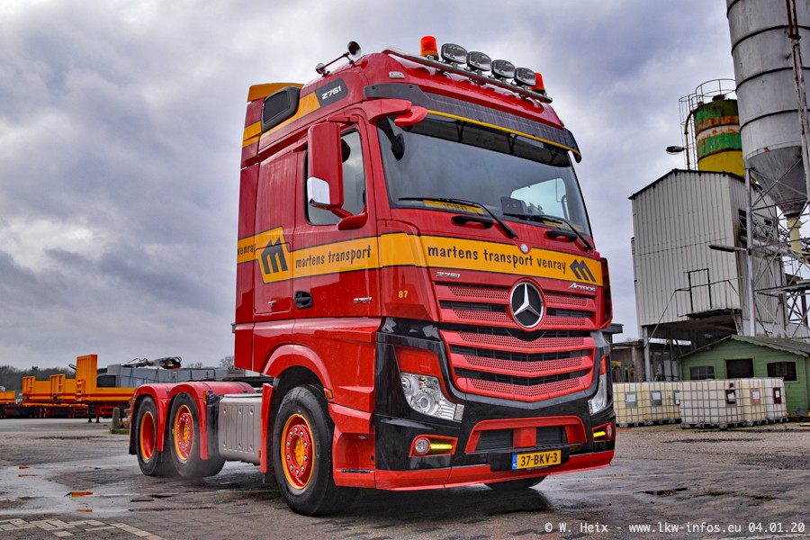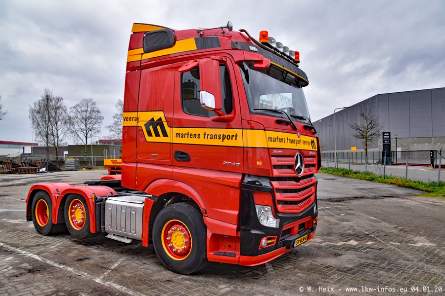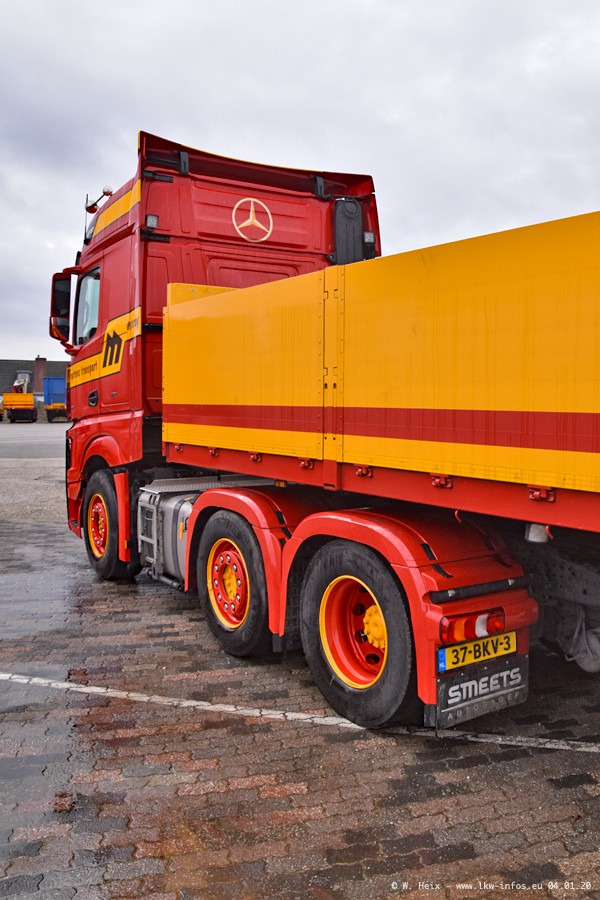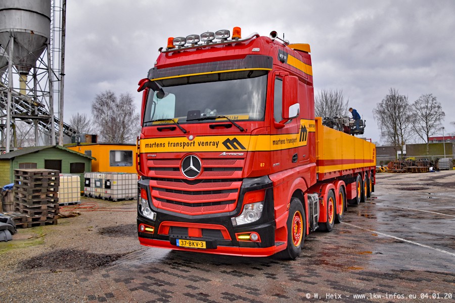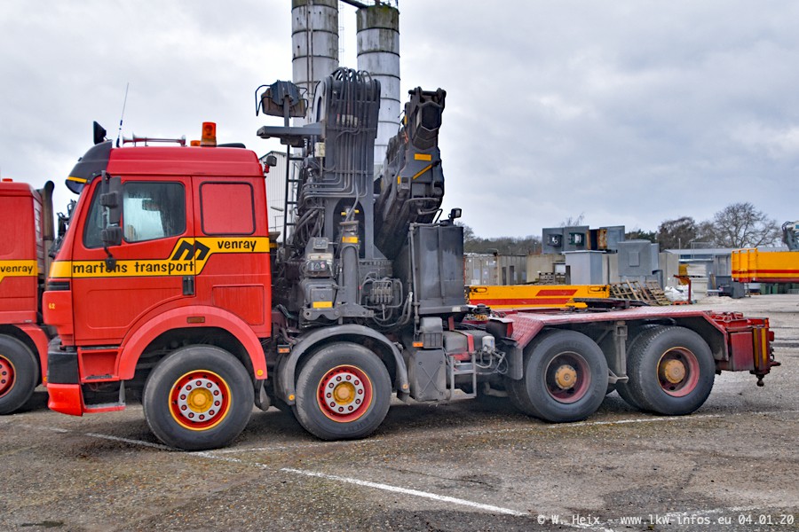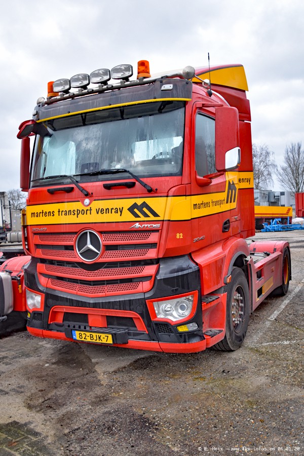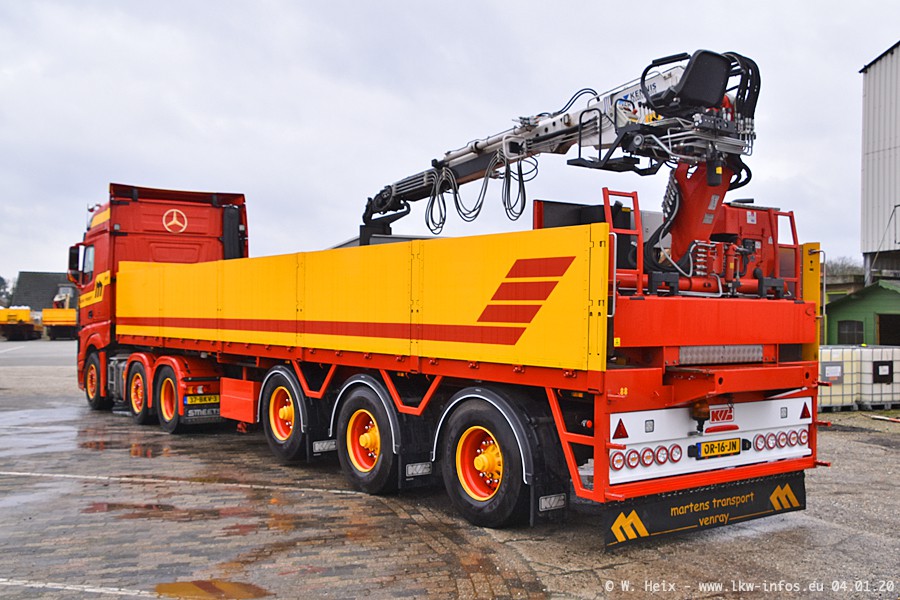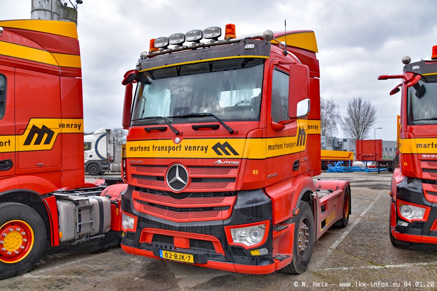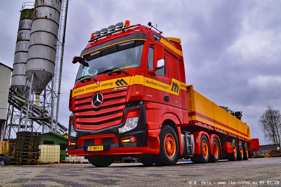 Dies war ein "verspäteter" Weihnachtsbesuch bei Martens. 19 der insgesamt 20 LKW waren zuhause und standen in einer Reihe nebeneinander. Anfang Dezember 2019 gab es auch bei Martens den ersten Mercedes-Benz New Actros 4 (ohne Spiegel). Das ist ein 2733. Mittlerweile gibt es nur noch einen SCANIA 114 im Fuhrpark (der blaue). Der Rest ist komplett von Mercedes-Benz.