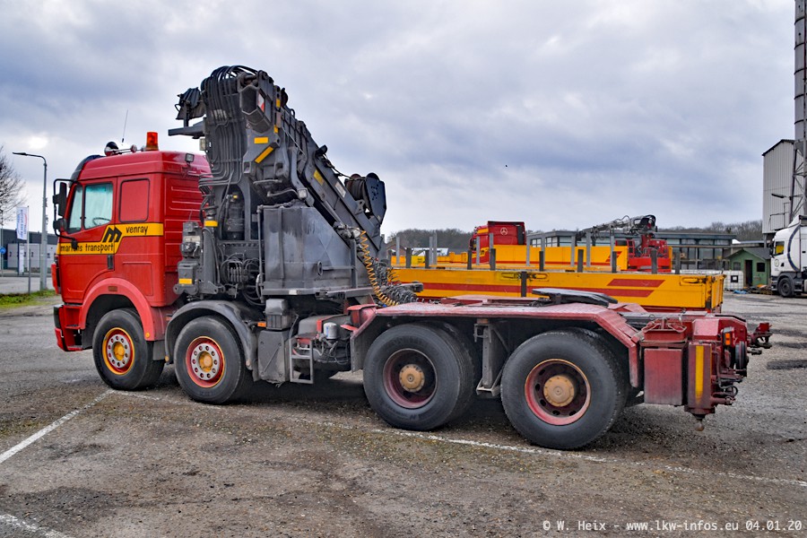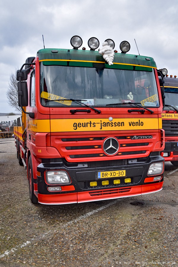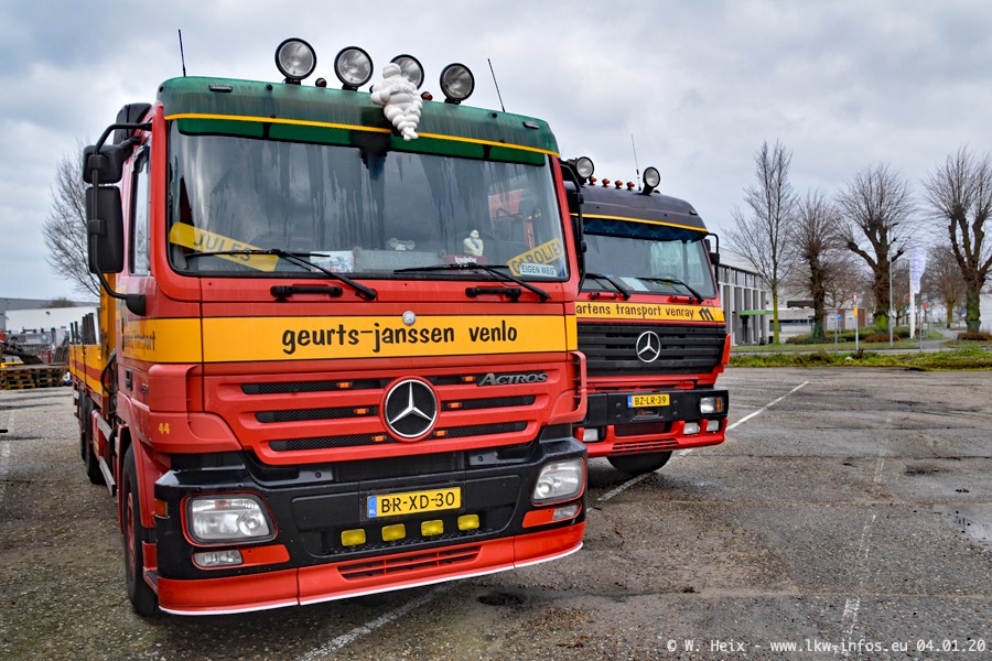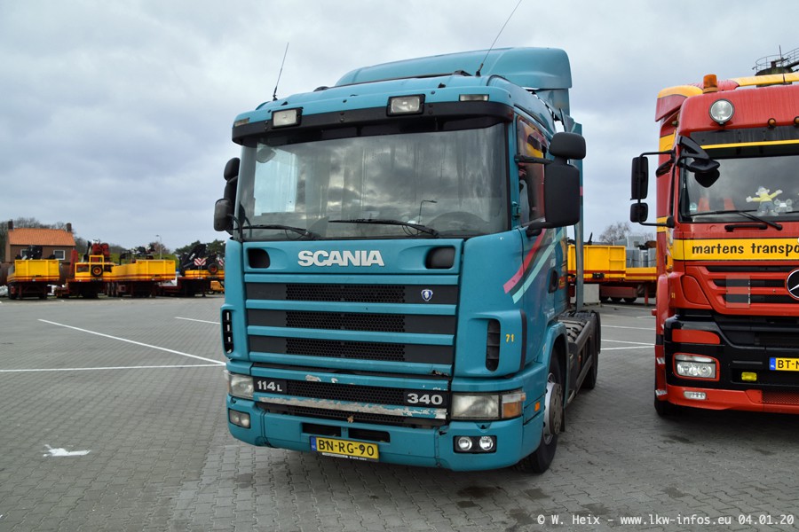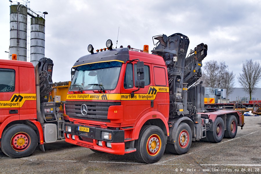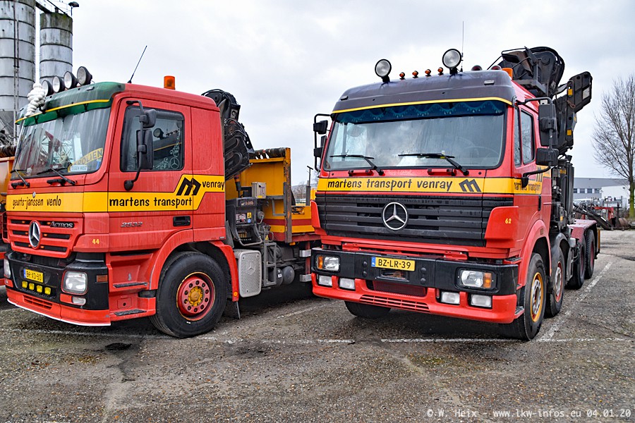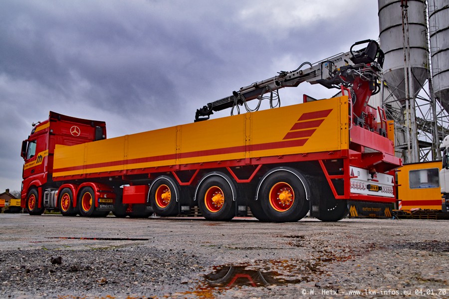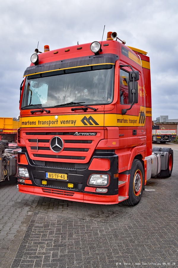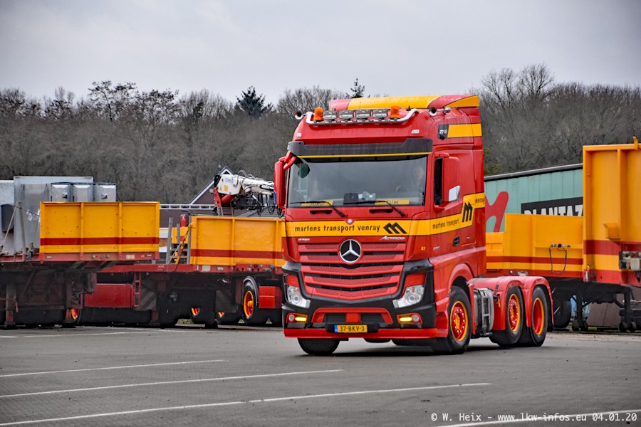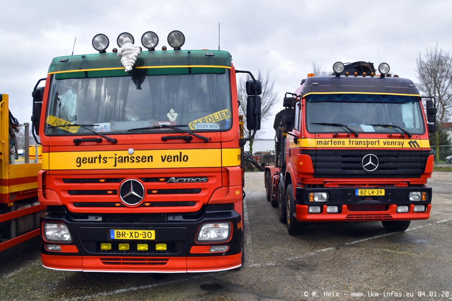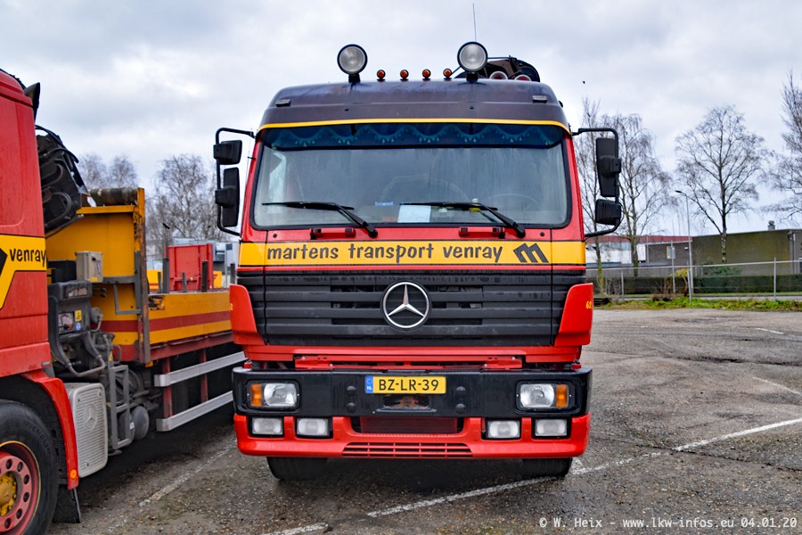 Dies war ein "verspäteter" Weihnachtsbesuch bei Martens. 19 der insgesamt 20 LKW waren zuhause und standen in einer Reihe nebeneinander. Anfang Dezember 2019 gab es auch bei Martens den ersten Mercedes-Benz New Actros 4 (ohne Spiegel). Das ist ein 2733. Mittlerweile gibt es nur noch einen SCANIA 114 im Fuhrpark (der blaue). Der Rest ist komplett von Mercedes-Benz.