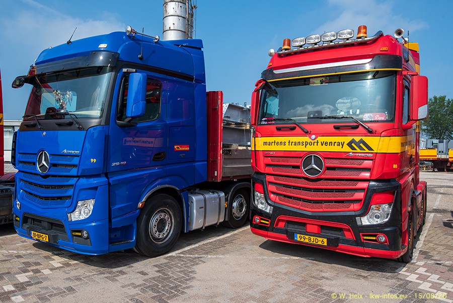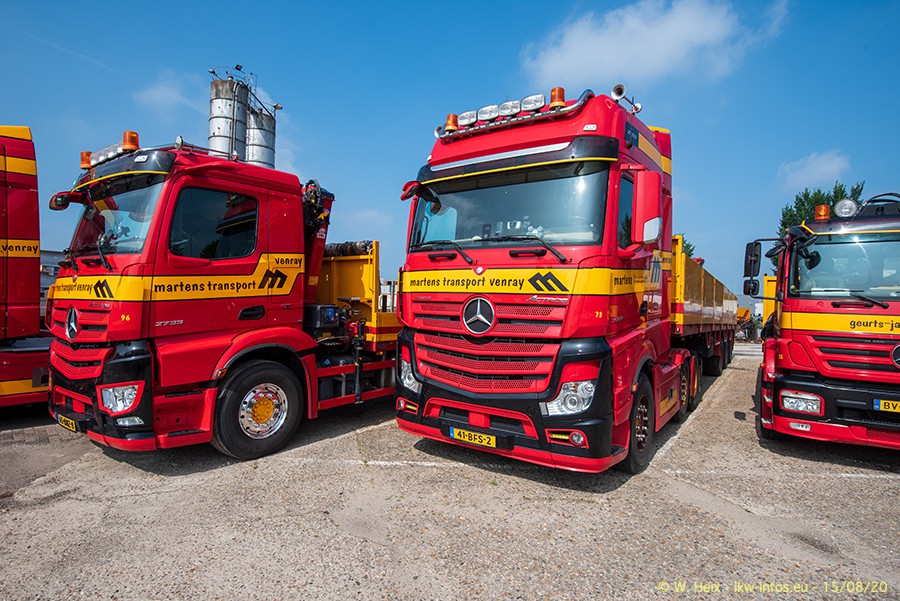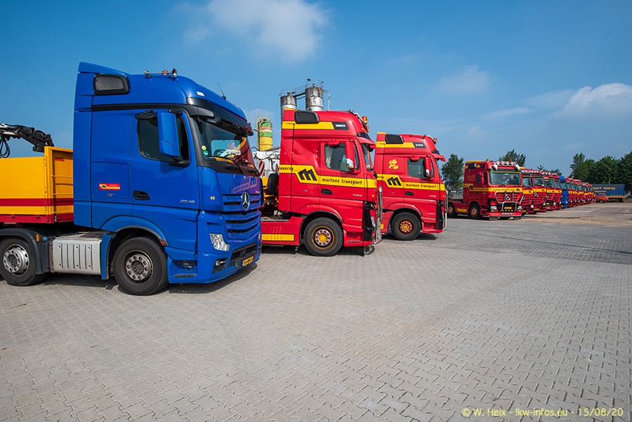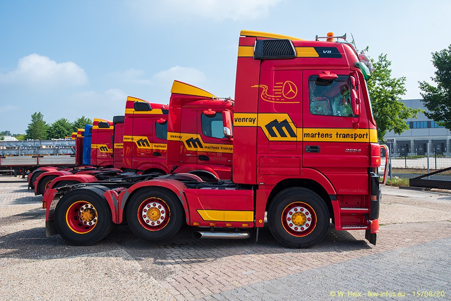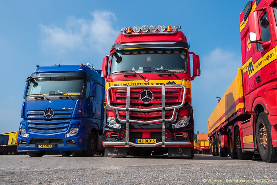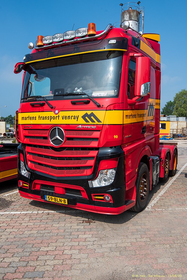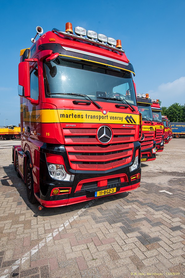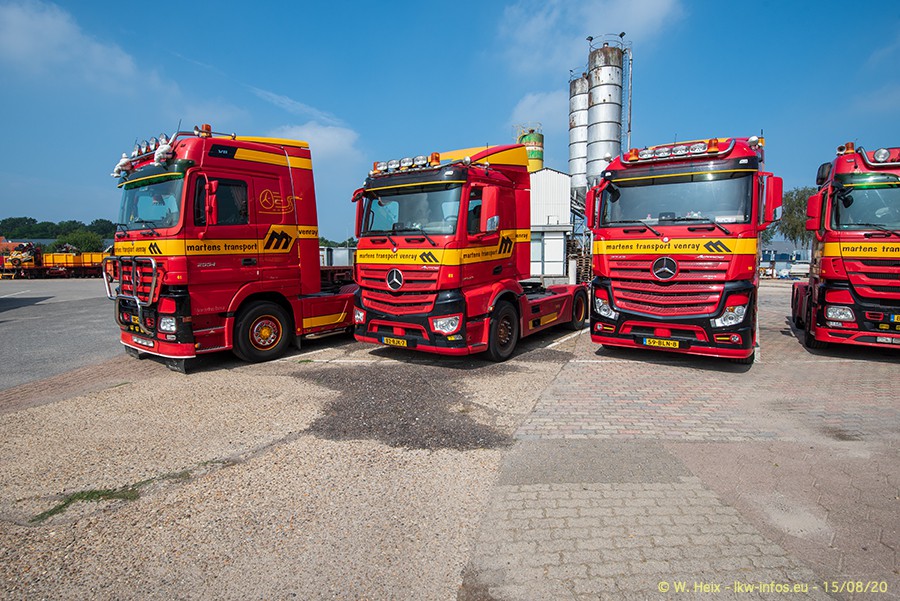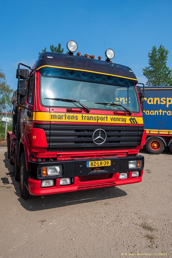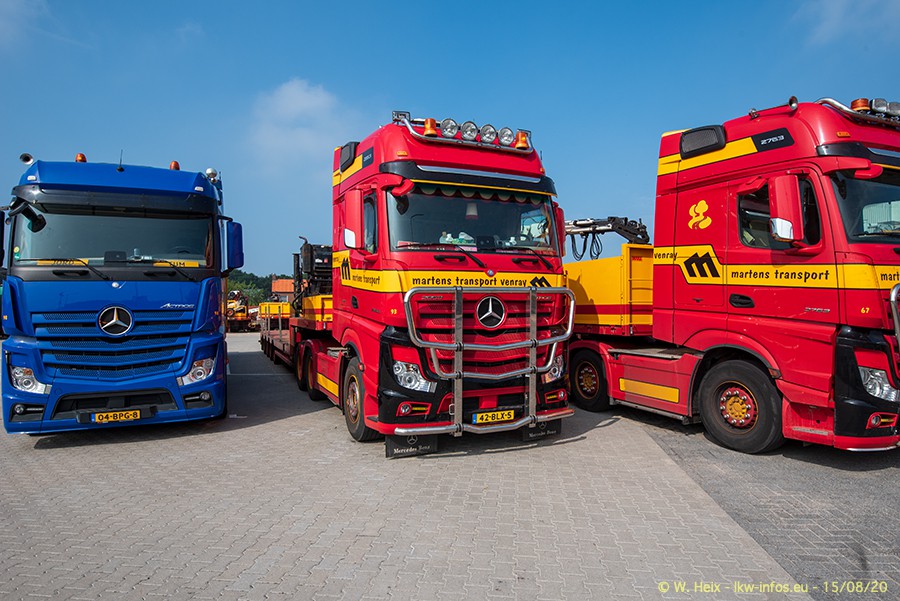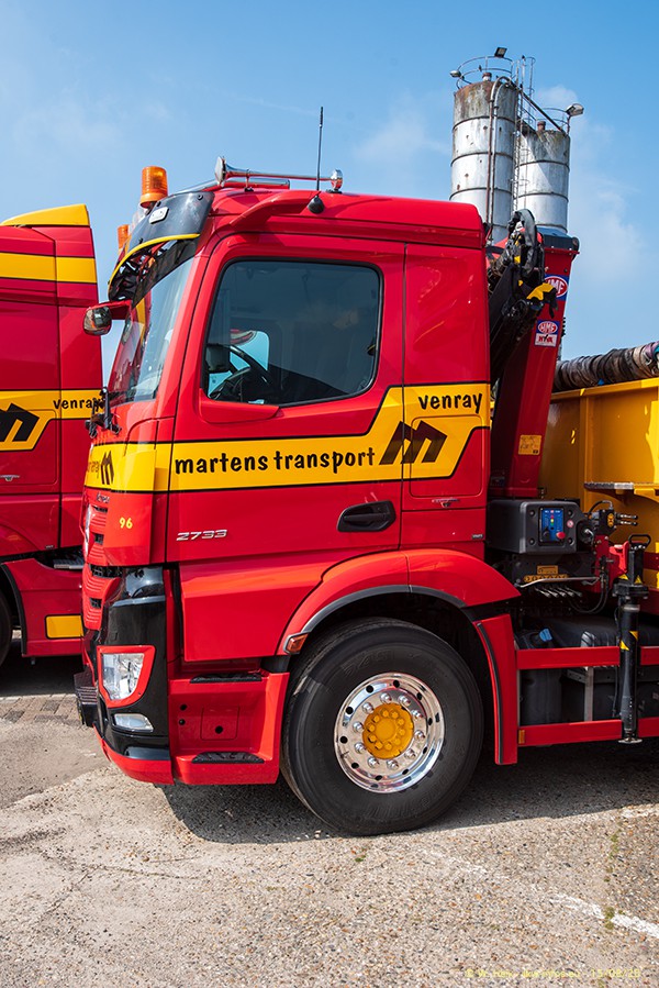 An diesem Wochenende hätte eigentlich die Truckshow in Liessel stattgefunden, wo auch LKW von Martens dabei gewesen wären. Aber wegen der Corona-Krise, die immer noch andauert, kommt alles anders. Somit habe ich Zeit, auch Martens in Venray wieder zu besuchen. Der komplette Fuhrpark ist zuhause. Im März wurden zwei gebrauchte Mercedes-Benz Actros 4 gekauft. Das sind die beiden blauen Zugmaschinnen, die demnächst aber auch in den Farben von Martens lackiert werden.