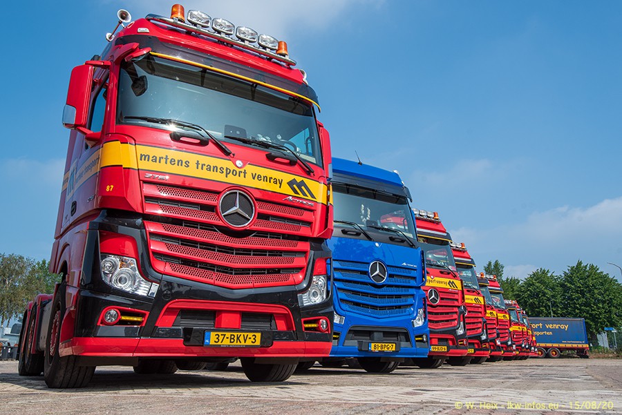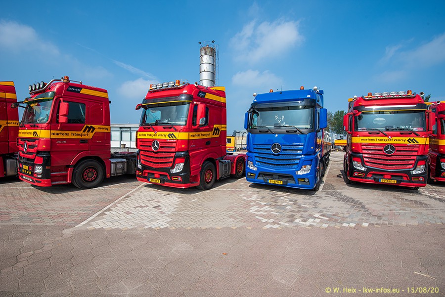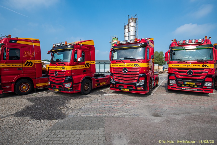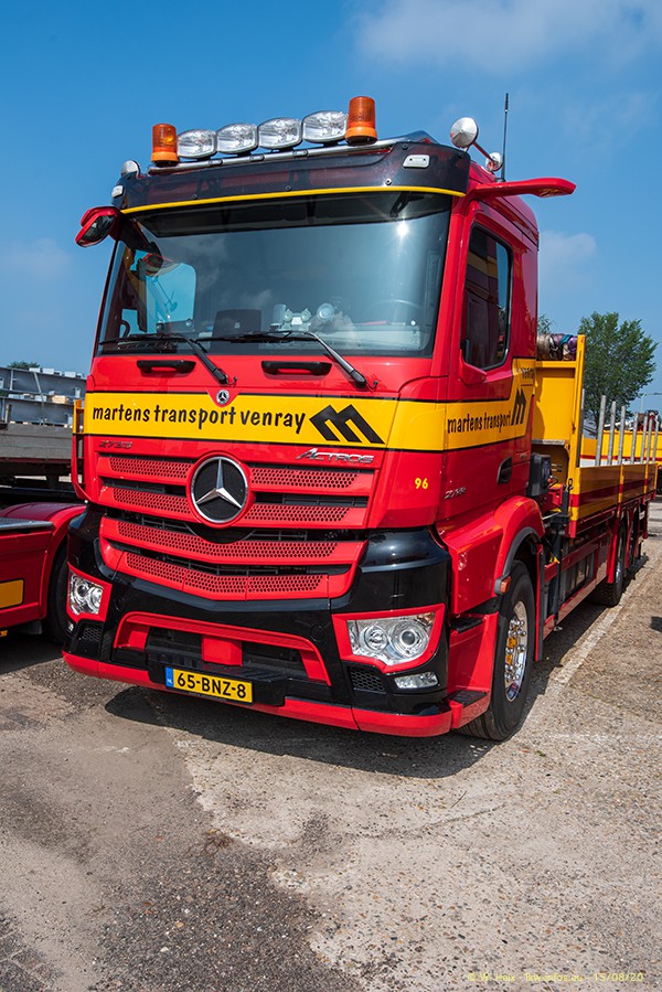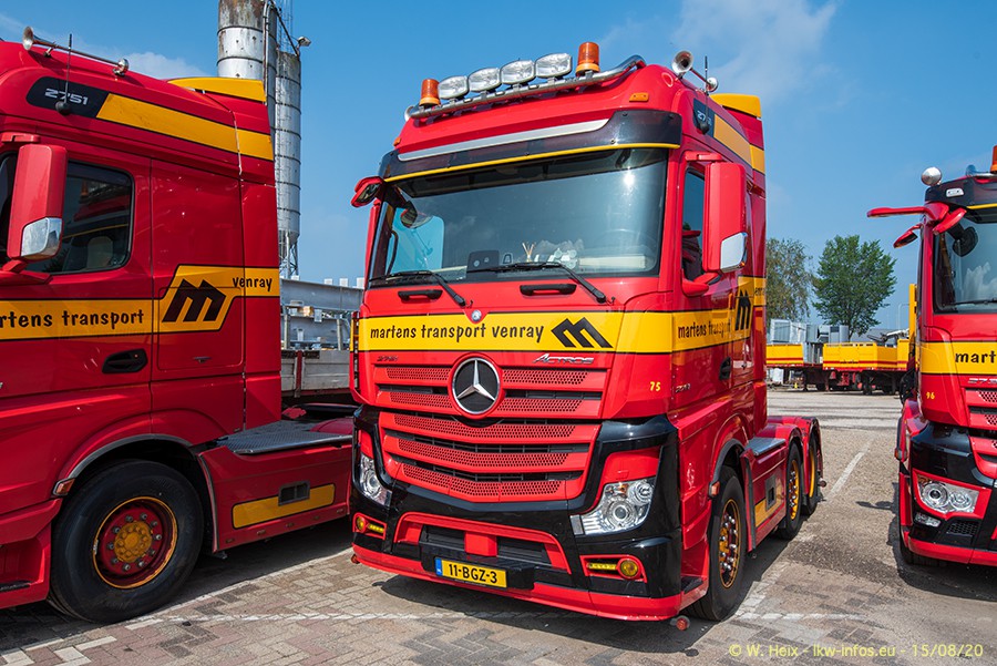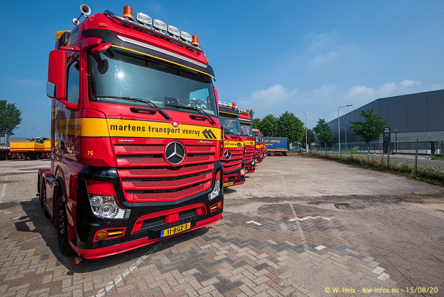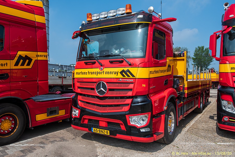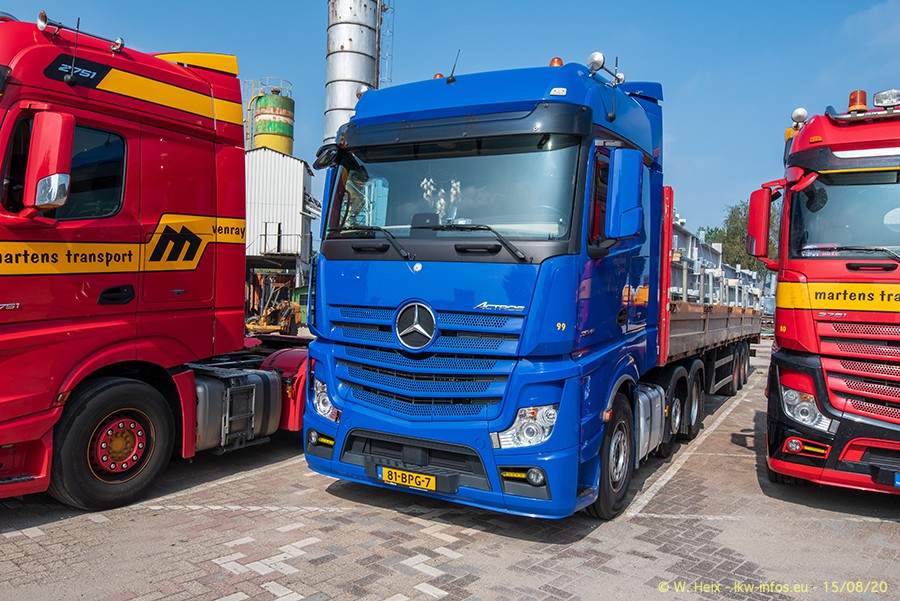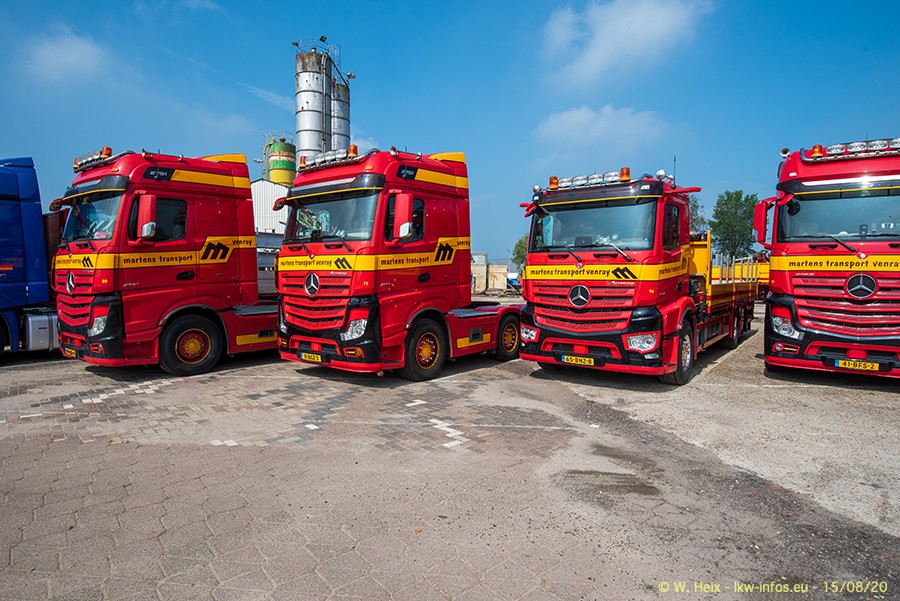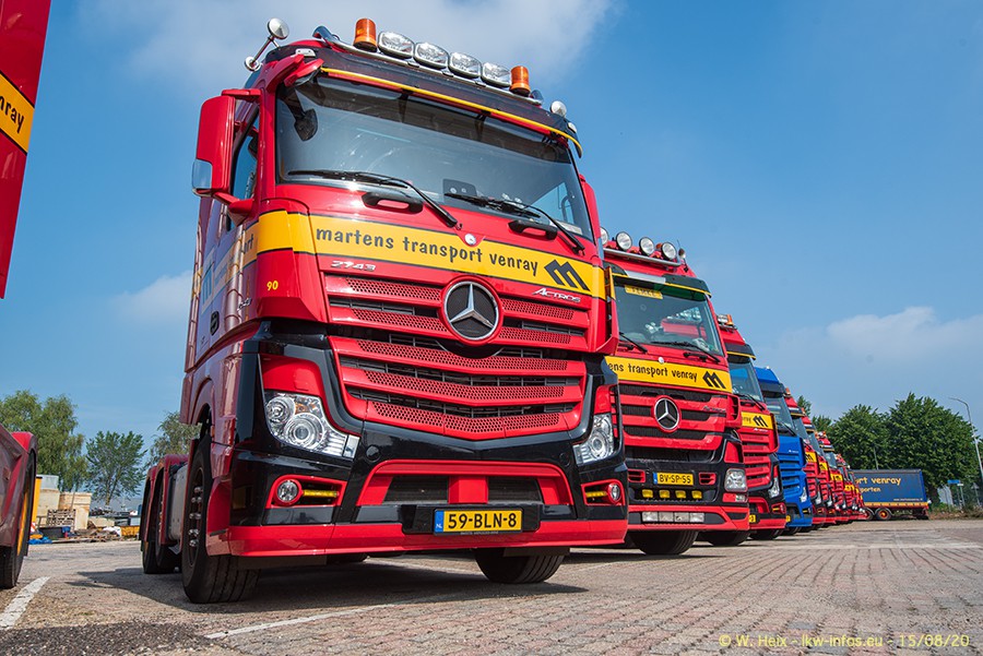 An diesem Wochenende hätte eigentlich die Truckshow in Liessel stattgefunden, wo auch LKW von Martens dabei gewesen wären. Aber wegen der Corona-Krise, die immer noch andauert, kommt alles anders. Somit habe ich Zeit, auch Martens in Venray wieder zu besuchen. Der komplette Fuhrpark ist zuhause. Im März wurden zwei gebrauchte Mercedes-Benz Actros 4 gekauft. Das sind die beiden blauen Zugmaschinnen, die demnächst aber auch in den Farben von Martens lackiert werden.