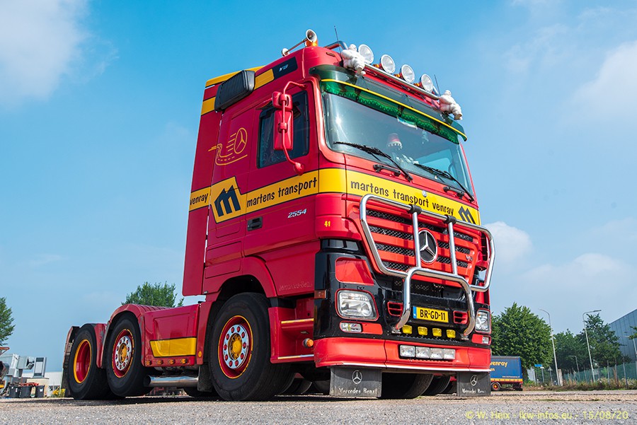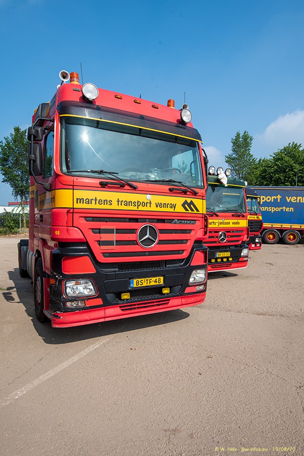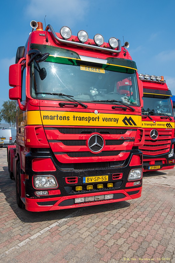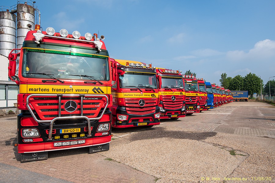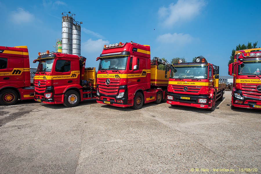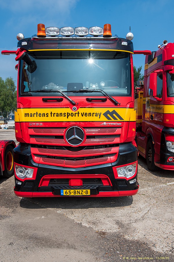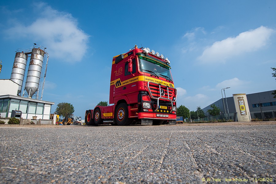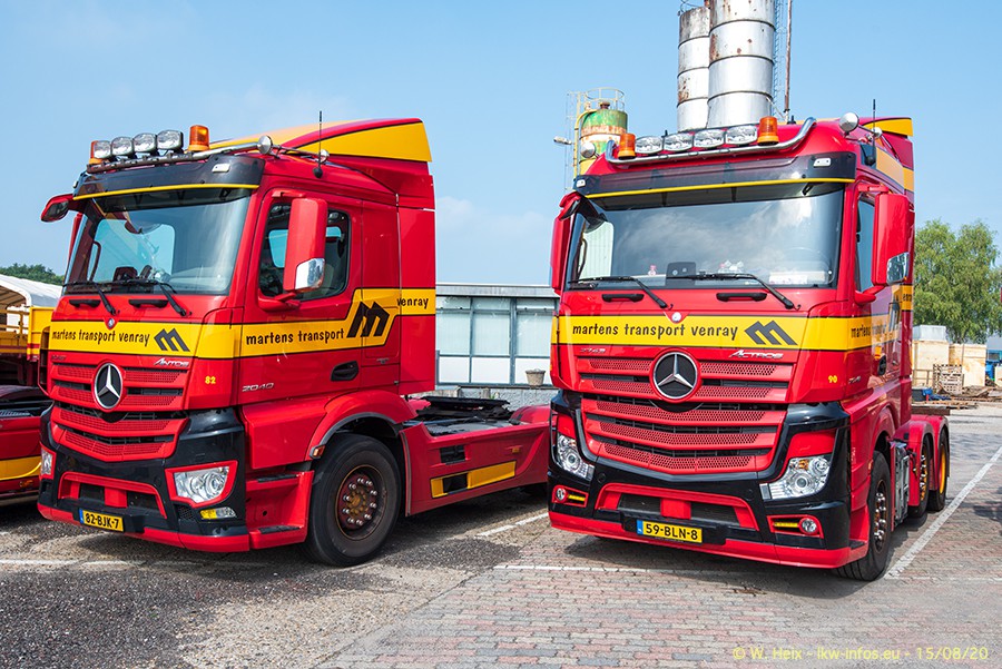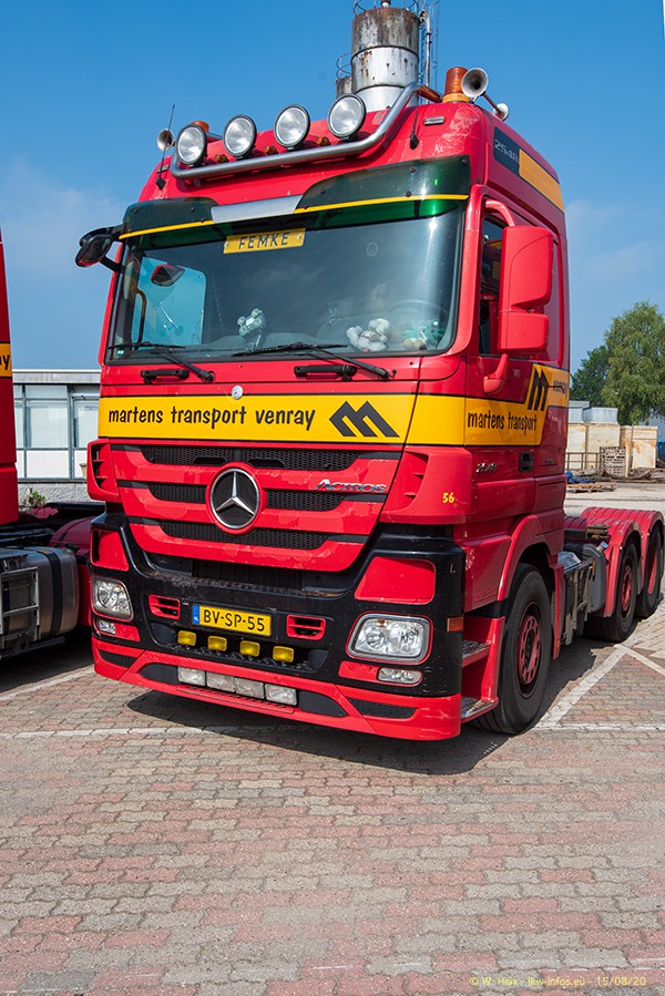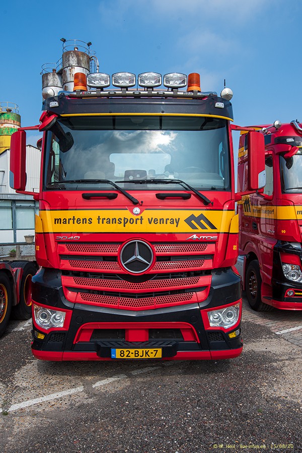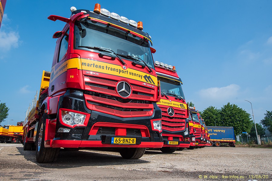 An diesem Wochenende hätte eigentlich die Truckshow in Liessel stattgefunden, wo auch LKW von Martens dabei gewesen wären. Aber wegen der Corona-Krise, die immer noch andauert, kommt alles anders. Somit habe ich Zeit, auch Martens in Venray wieder zu besuchen. Der komplette Fuhrpark ist zuhause. Im März wurden zwei gebrauchte Mercedes-Benz Actros 4 gekauft. Das sind die beiden blauen Zugmaschinnen, die demnächst aber auch in den Farben von Martens lackiert werden.