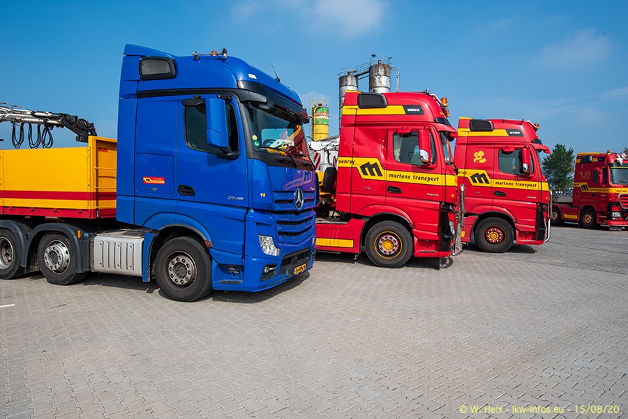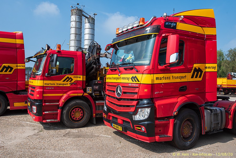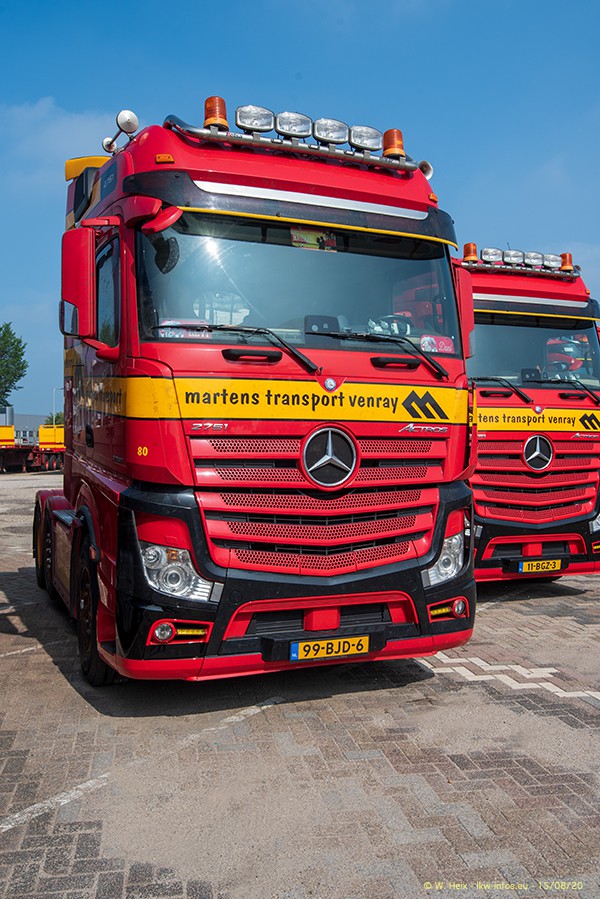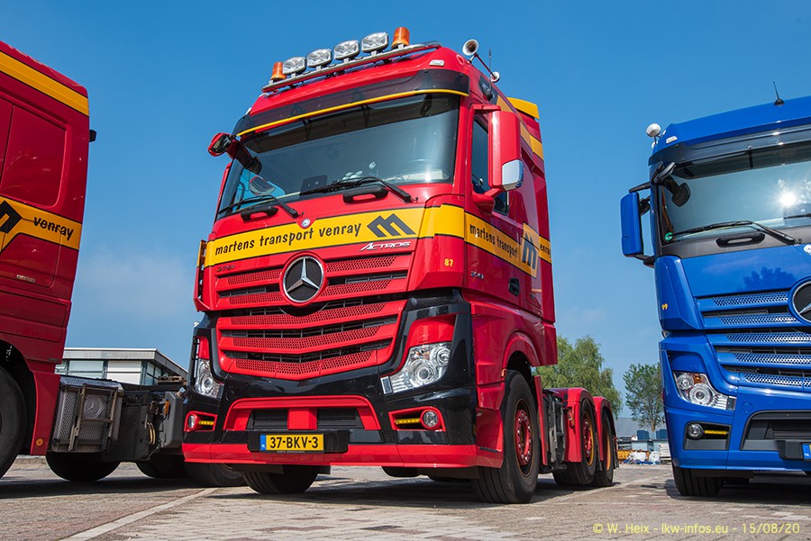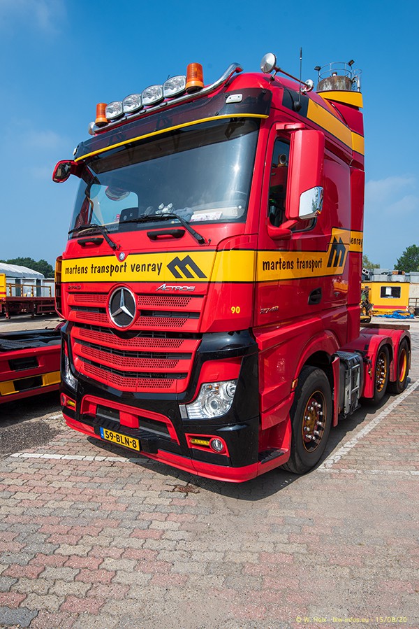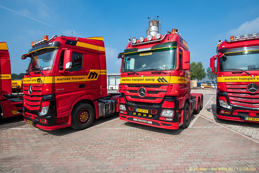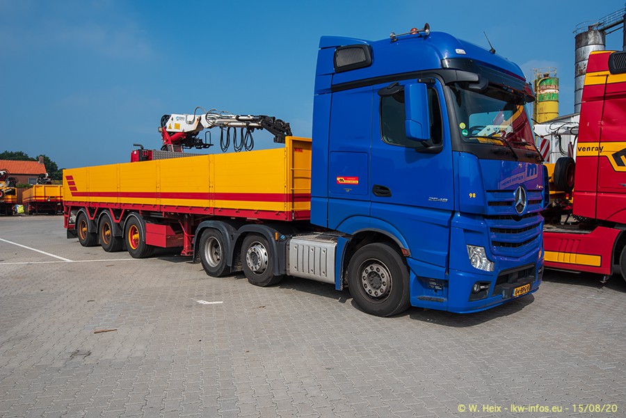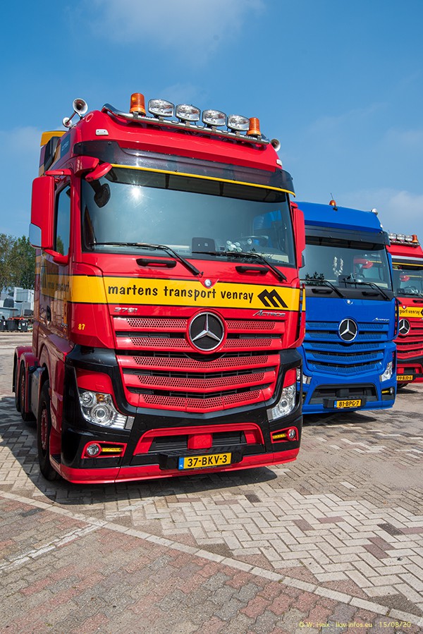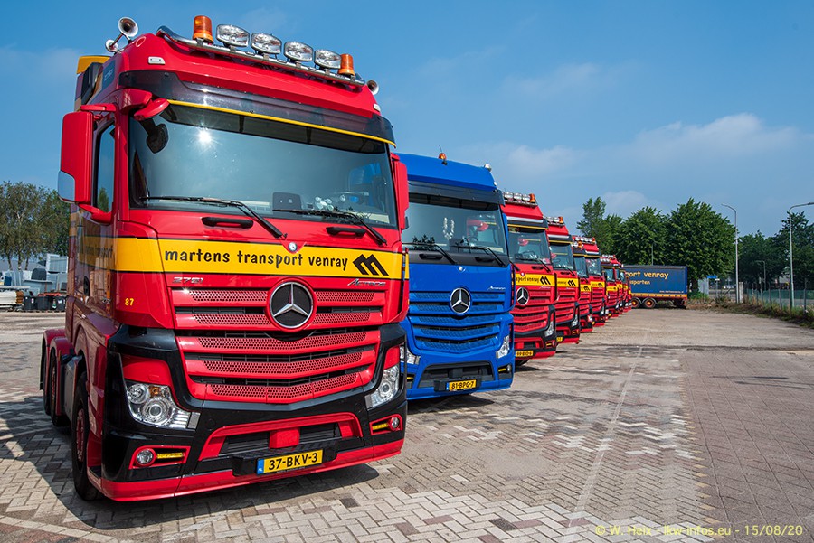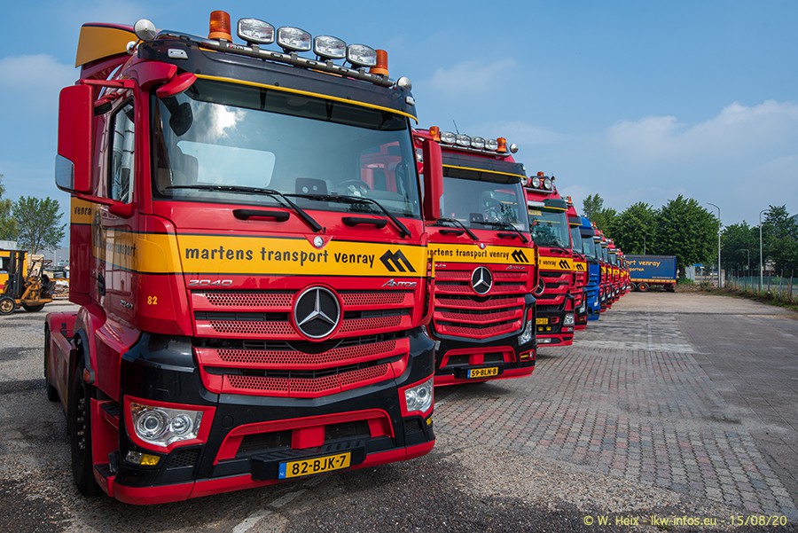 An diesem Wochenende hätte eigentlich die Truckshow in Liessel stattgefunden, wo auch LKW von Martens dabei gewesen wären. Aber wegen der Corona-Krise, die immer noch andauert, kommt alles anders. Somit habe ich Zeit, auch Martens in Venray wieder zu besuchen. Der komplette Fuhrpark ist zuhause. Im März wurden zwei gebrauchte Mercedes-Benz Actros 4 gekauft. Das sind die beiden blauen Zugmaschinnen, die demnächst aber auch in den Farben von Martens lackiert werden.