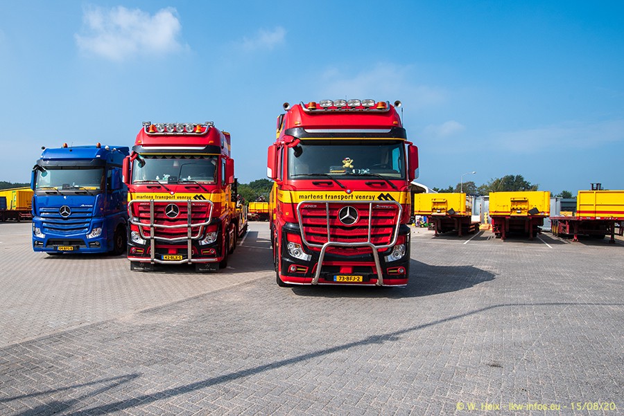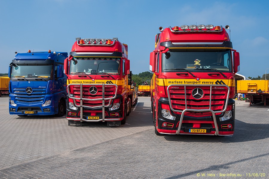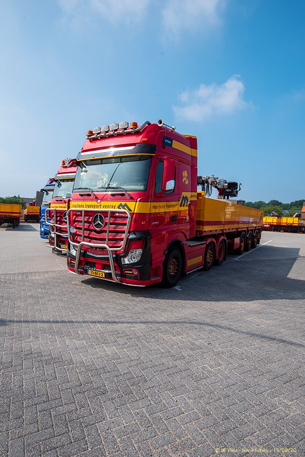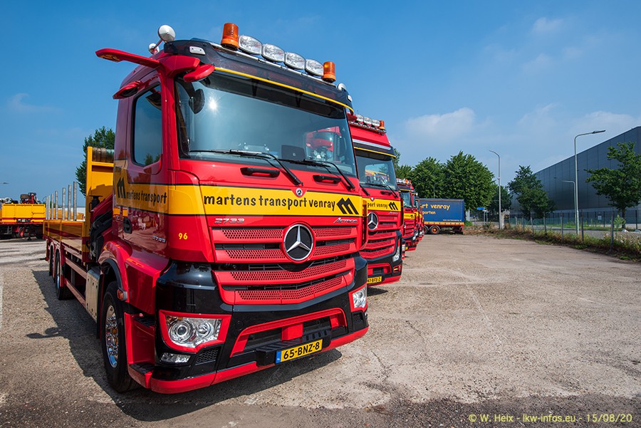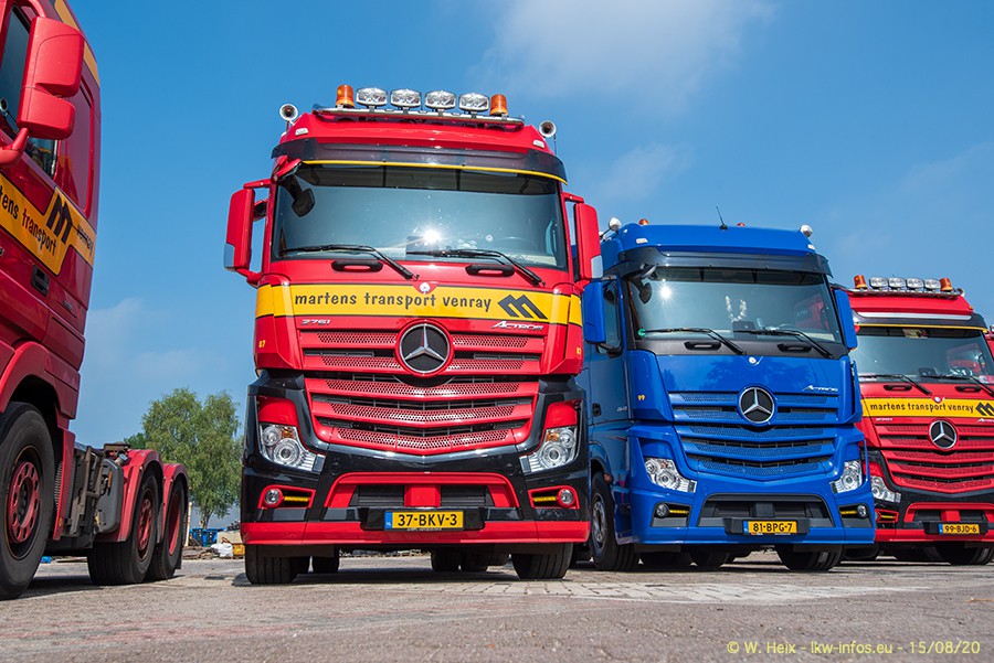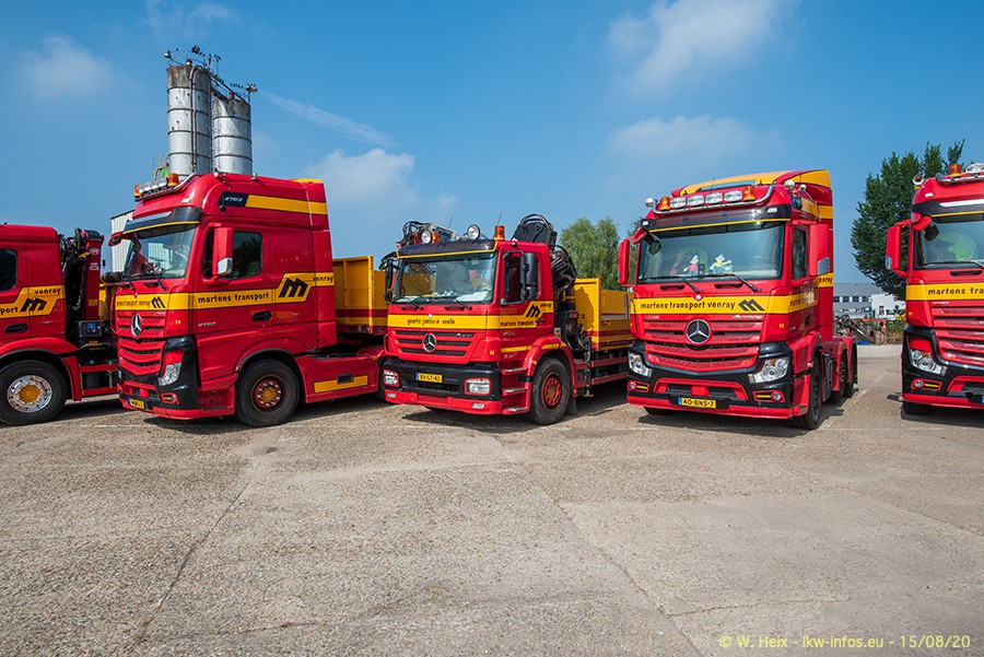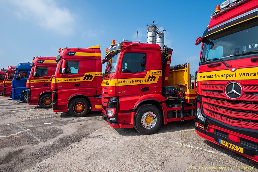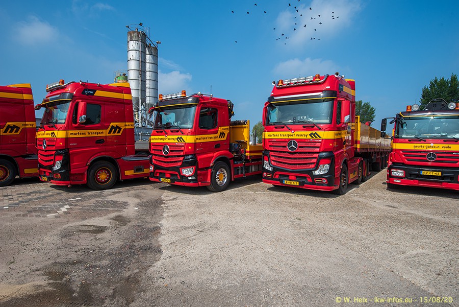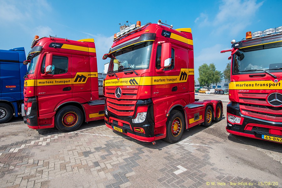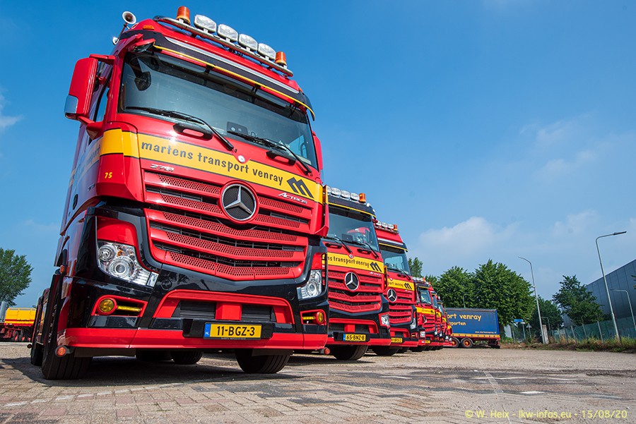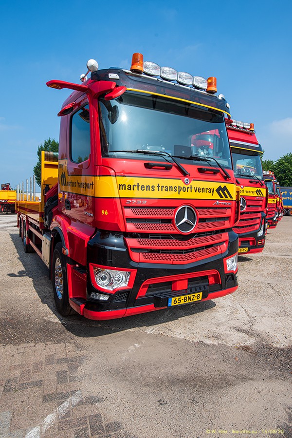 An diesem Wochenende hätte eigentlich die Truckshow in Liessel stattgefunden, wo auch LKW von Martens dabei gewesen wären. Aber wegen der Corona-Krise, die immer noch andauert, kommt alles anders. Somit habe ich Zeit, auch Martens in Venray wieder zu besuchen. Der komplette Fuhrpark ist zuhause. Im März wurden zwei gebrauchte Mercedes-Benz Actros 4 gekauft. Das sind die beiden blauen Zugmaschinnen, die demnächst aber auch in den Farben von Martens lackiert werden.