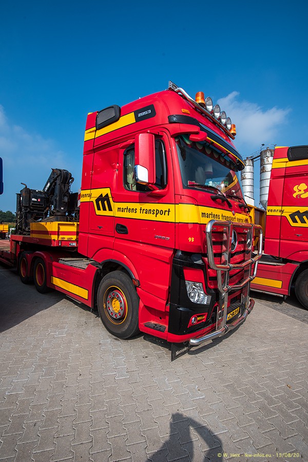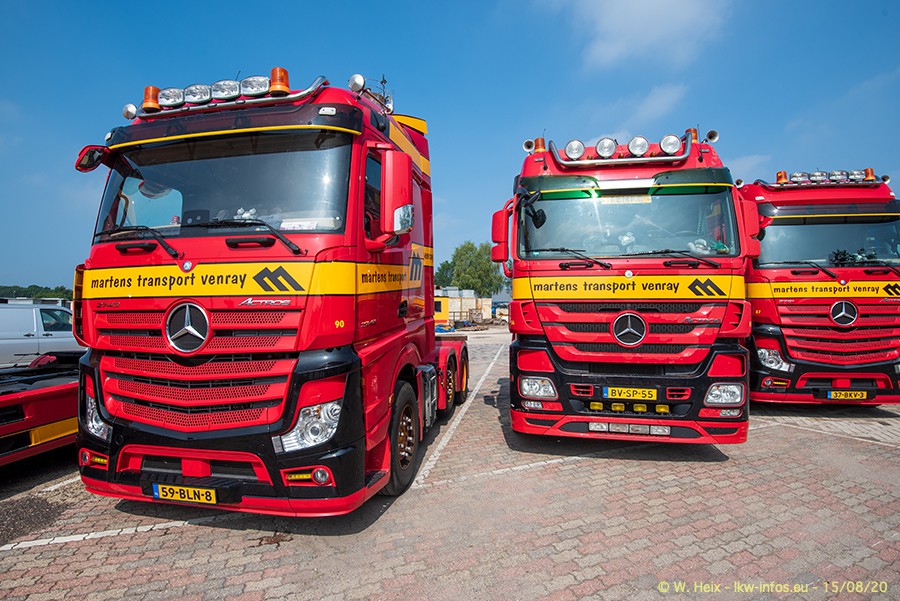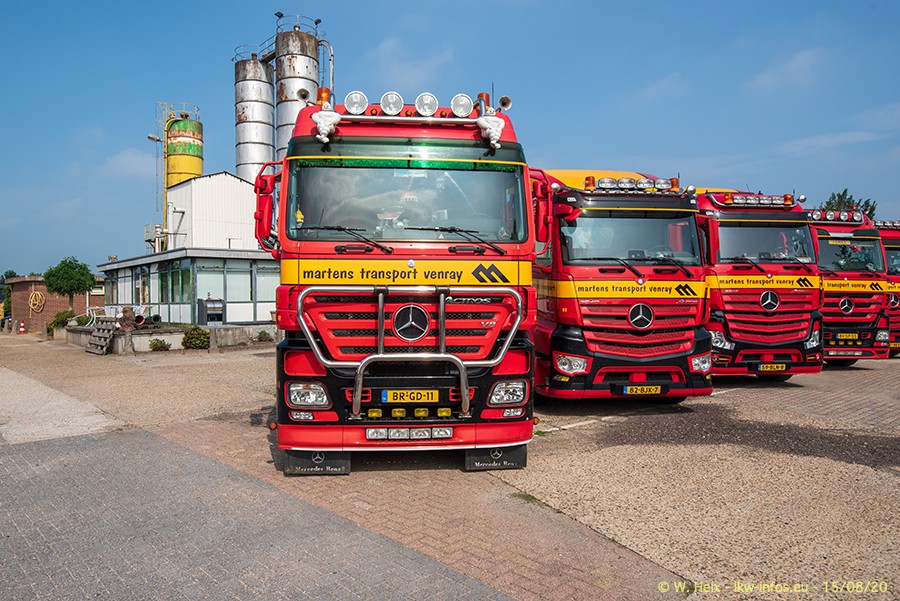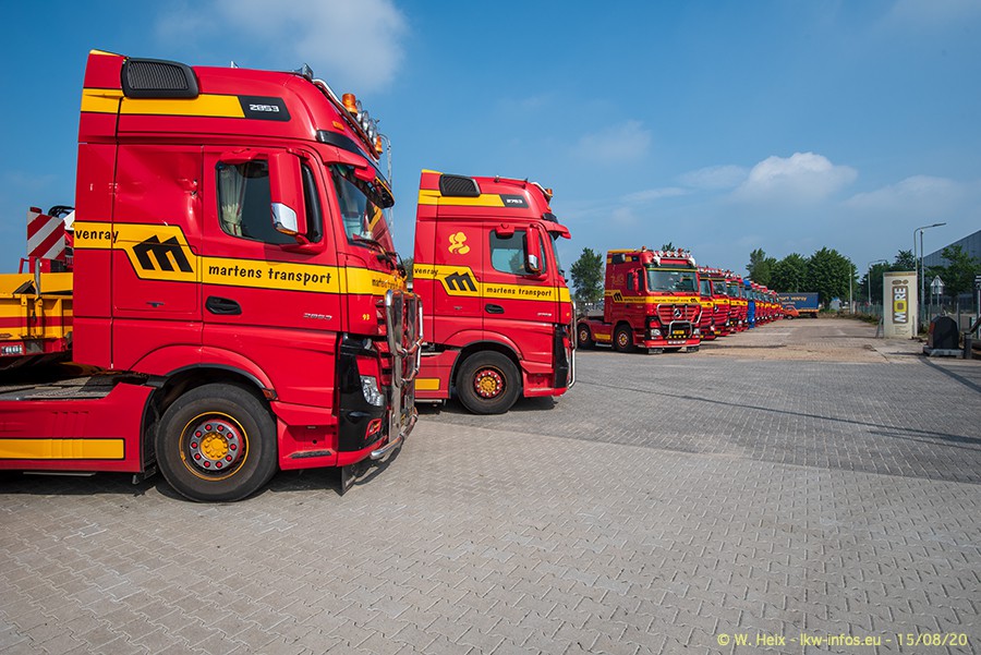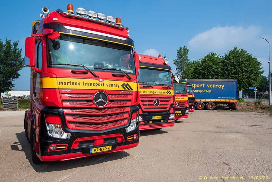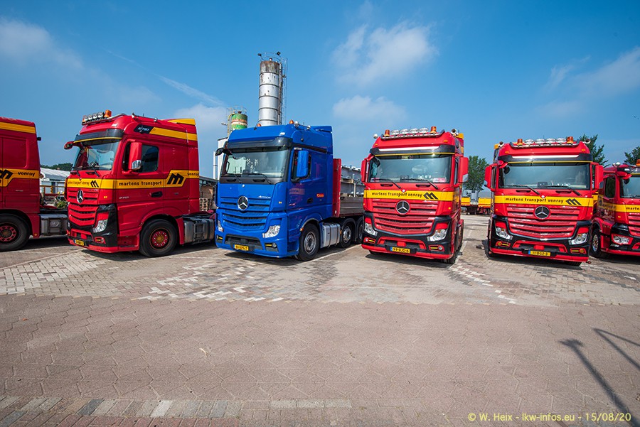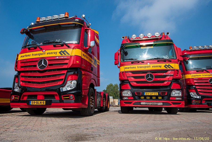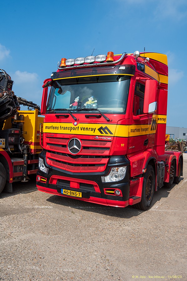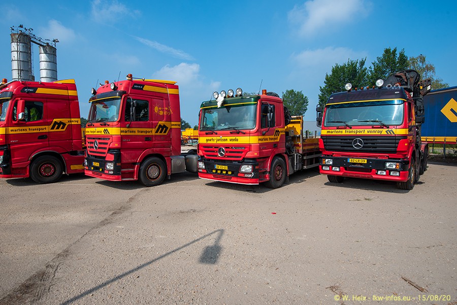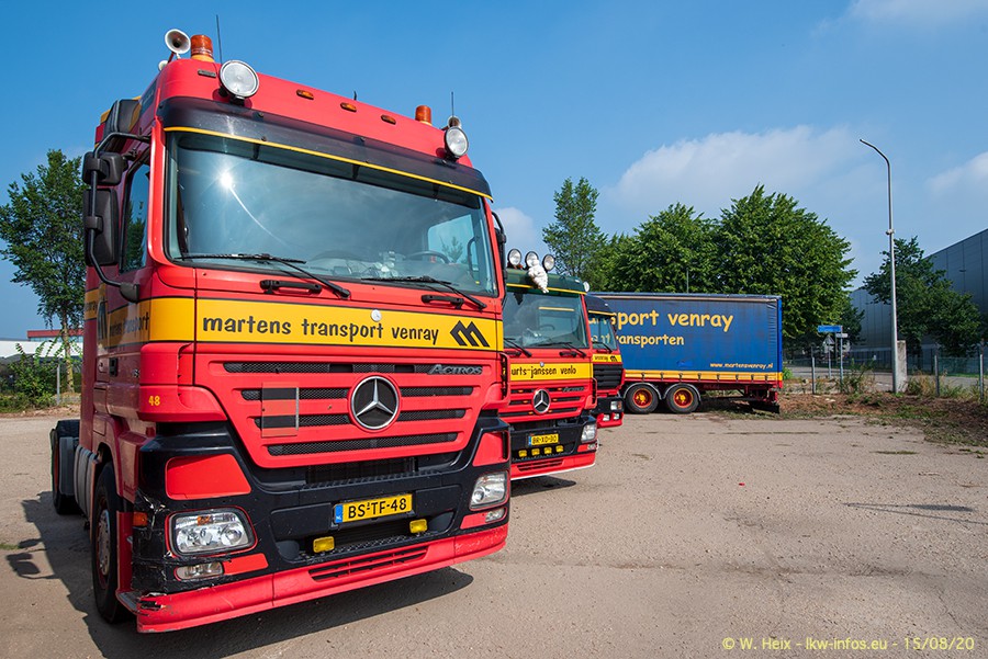 An diesem Wochenende hätte eigentlich die Truckshow in Liessel stattgefunden, wo auch LKW von Martens dabei gewesen wären. Aber wegen der Corona-Krise, die immer noch andauert, kommt alles anders. Somit habe ich Zeit, auch Martens in Venray wieder zu besuchen. Der komplette Fuhrpark ist zuhause. Im März wurden zwei gebrauchte Mercedes-Benz Actros 4 gekauft. Das sind die beiden blauen Zugmaschinnen, die demnächst aber auch in den Farben von Martens lackiert werden.