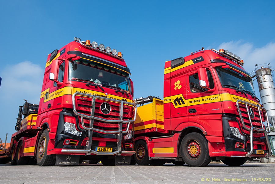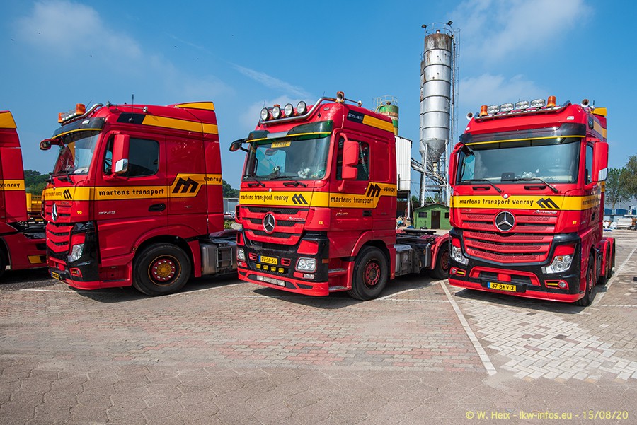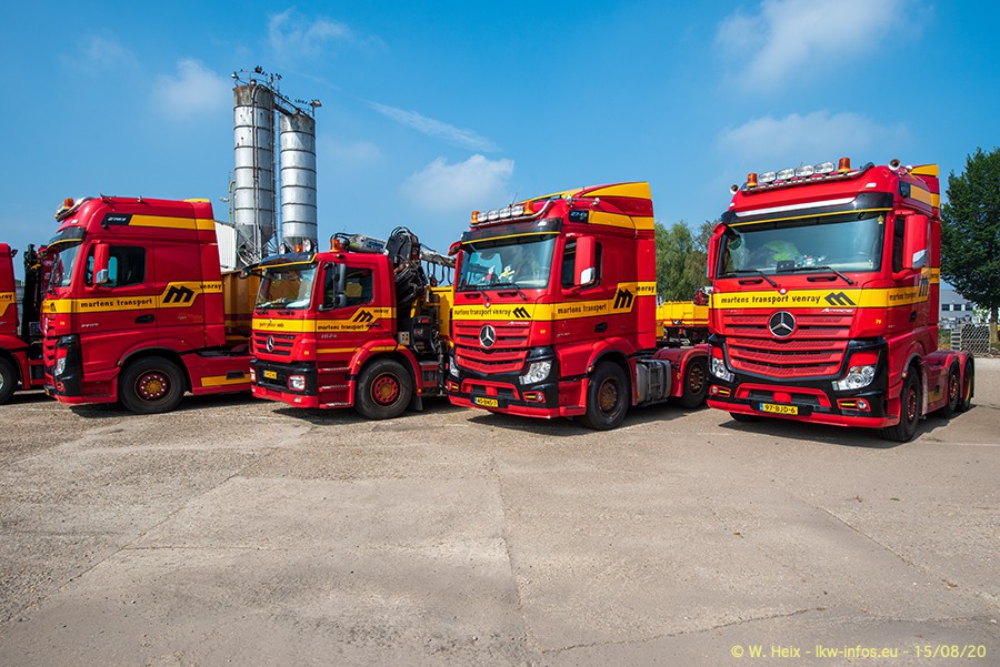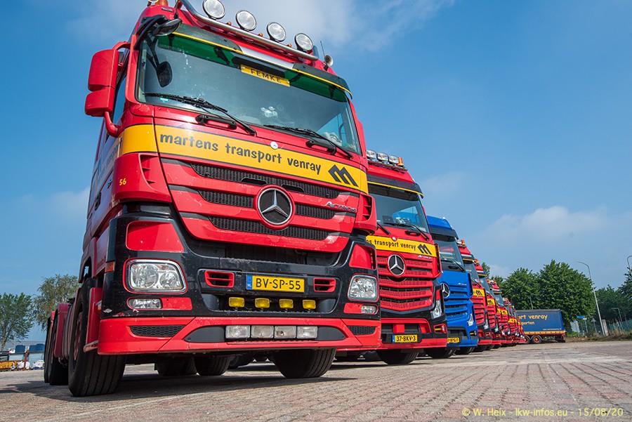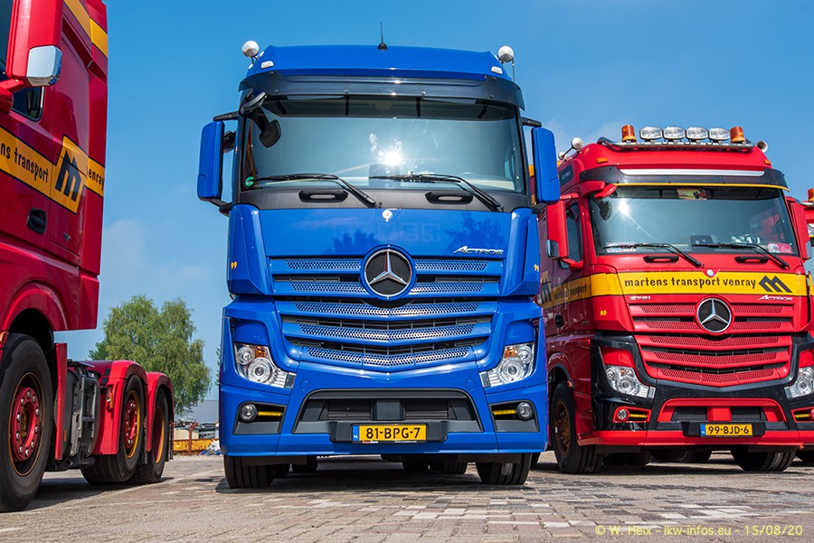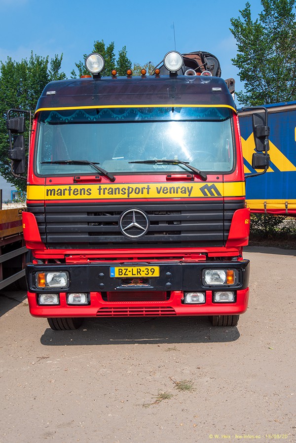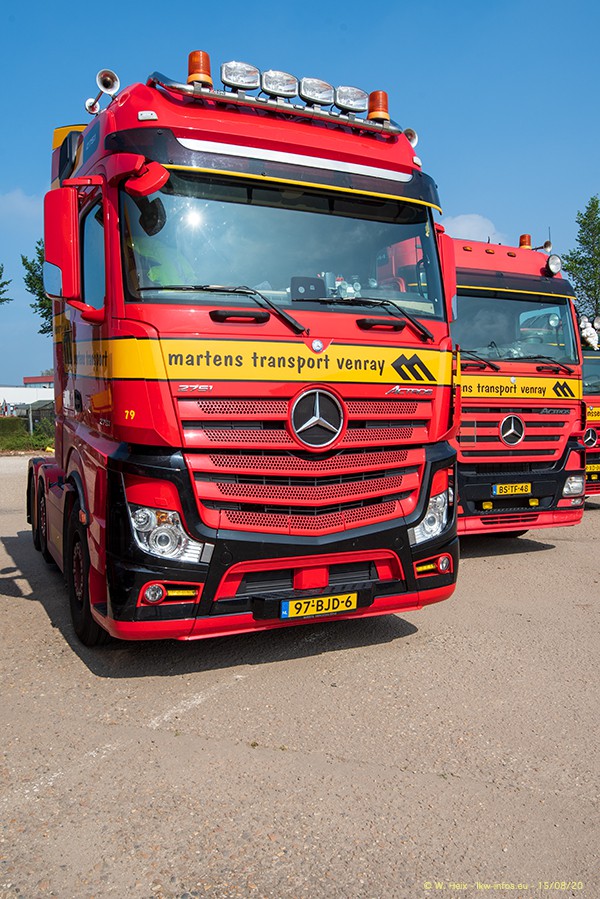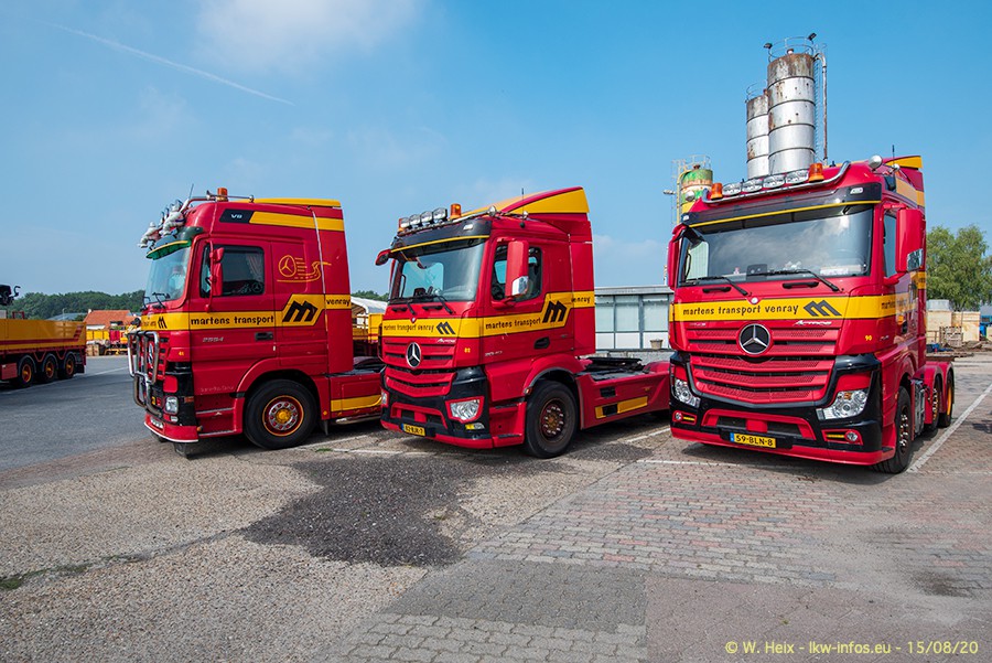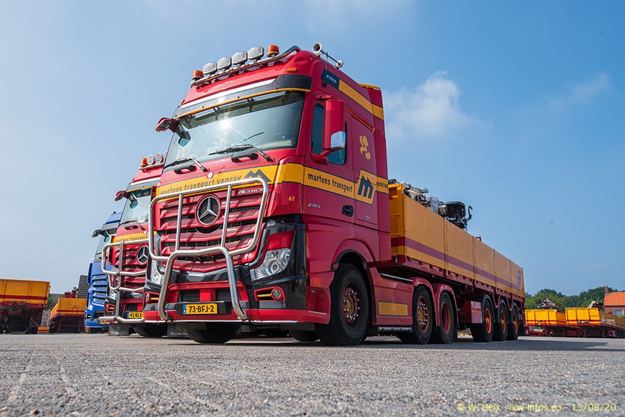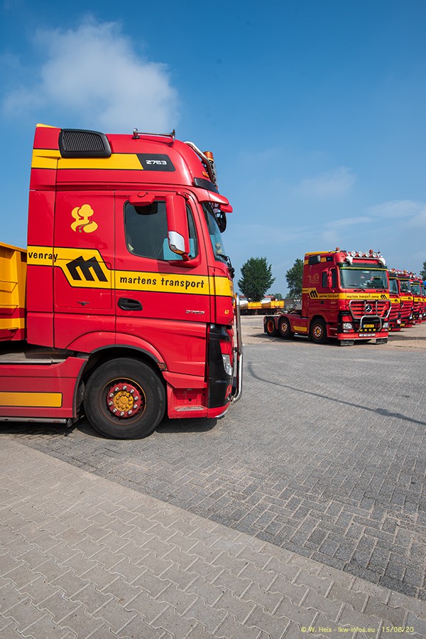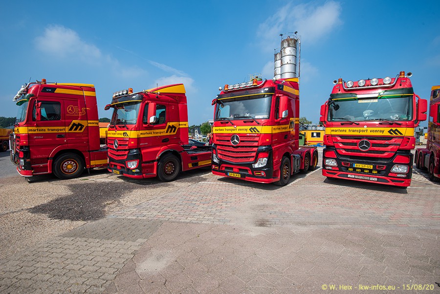 An diesem Wochenende hätte eigentlich die Truckshow in Liessel stattgefunden, wo auch LKW von Martens dabei gewesen wären. Aber wegen der Corona-Krise, die immer noch andauert, kommt alles anders. Somit habe ich Zeit, auch Martens in Venray wieder zu besuchen. Der komplette Fuhrpark ist zuhause. Im März wurden zwei gebrauchte Mercedes-Benz Actros 4 gekauft. Das sind die beiden blauen Zugmaschinnen, die demnächst aber auch in den Farben von Martens lackiert werden.