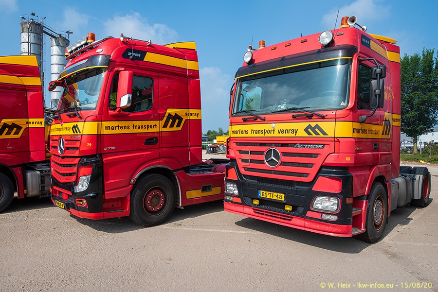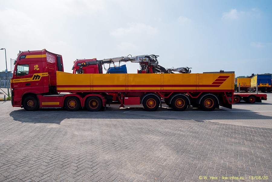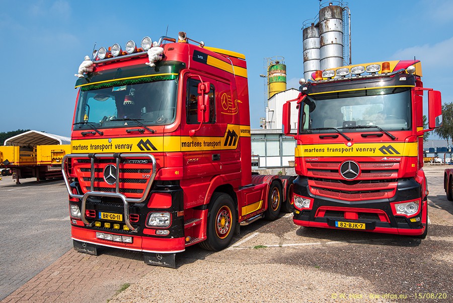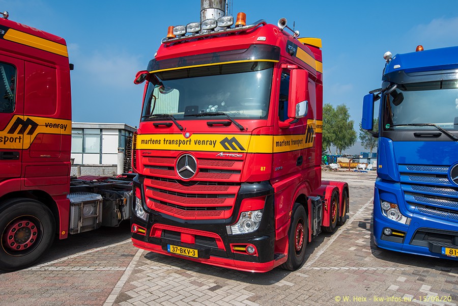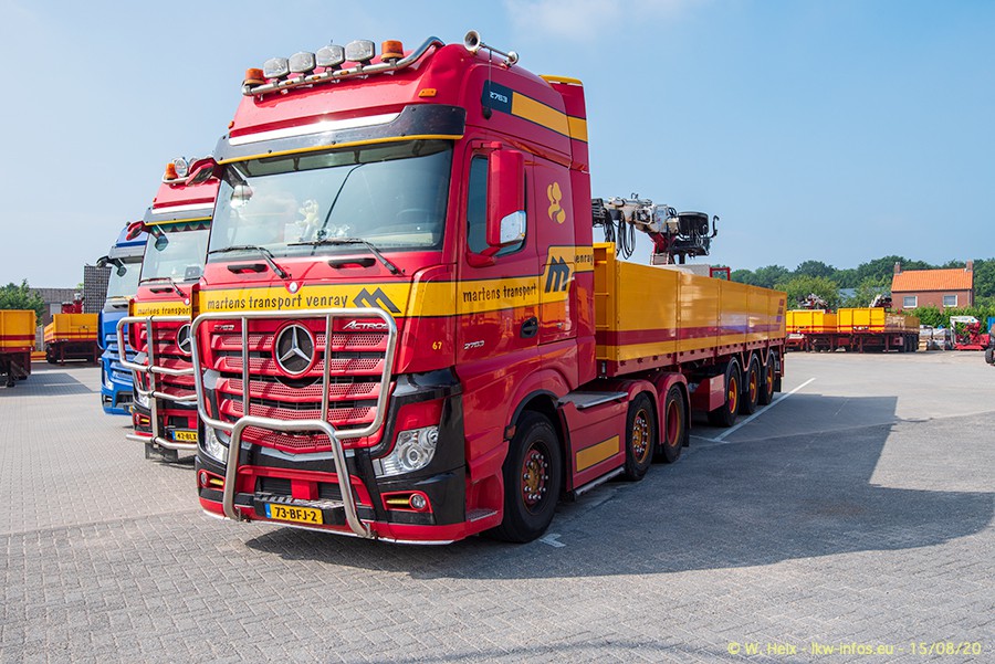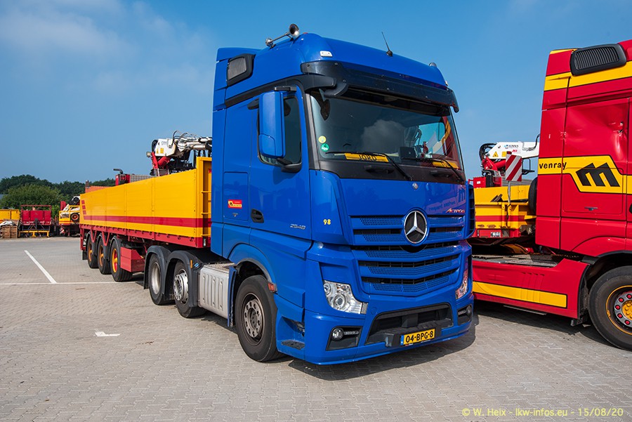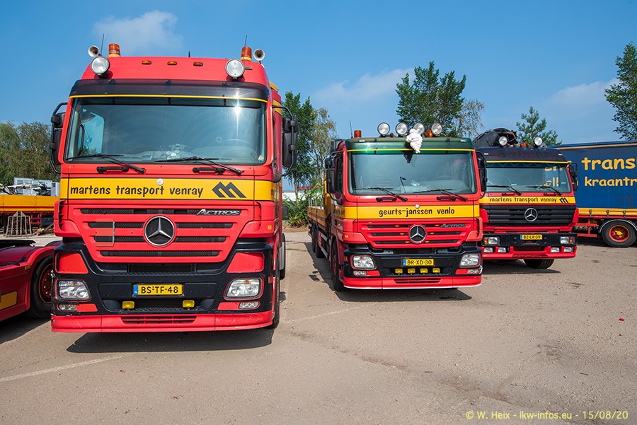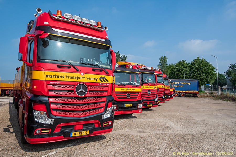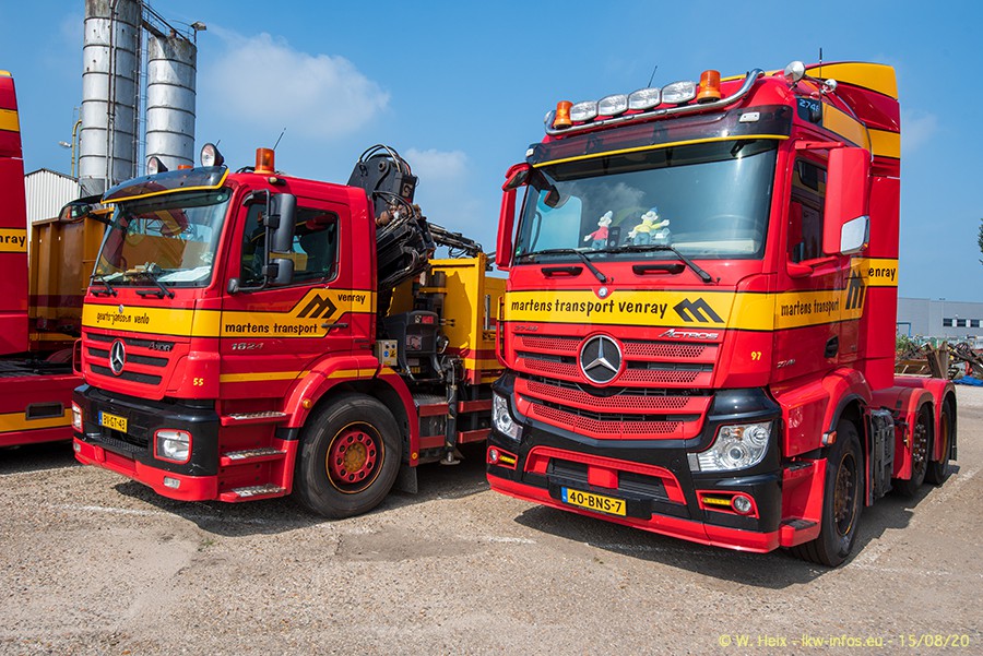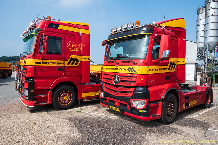 An diesem Wochenende hätte eigentlich die Truckshow in Liessel stattgefunden, wo auch LKW von Martens dabei gewesen wären. Aber wegen der Corona-Krise, die immer noch andauert, kommt alles anders. Somit habe ich Zeit, auch Martens in Venray wieder zu besuchen. Der komplette Fuhrpark ist zuhause. Im März wurden zwei gebrauchte Mercedes-Benz Actros 4 gekauft. Das sind die beiden blauen Zugmaschinnen, die demnächst aber auch in den Farben von Martens lackiert werden.