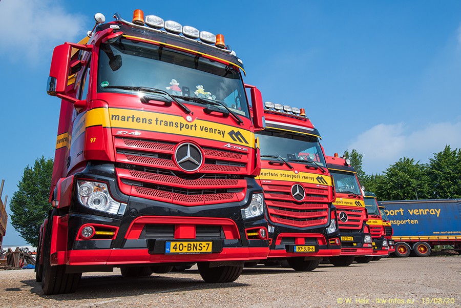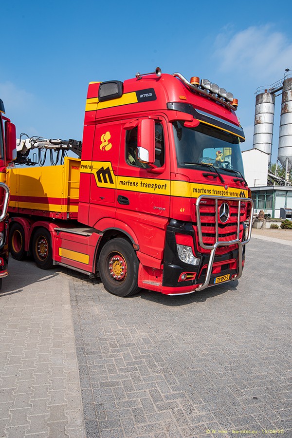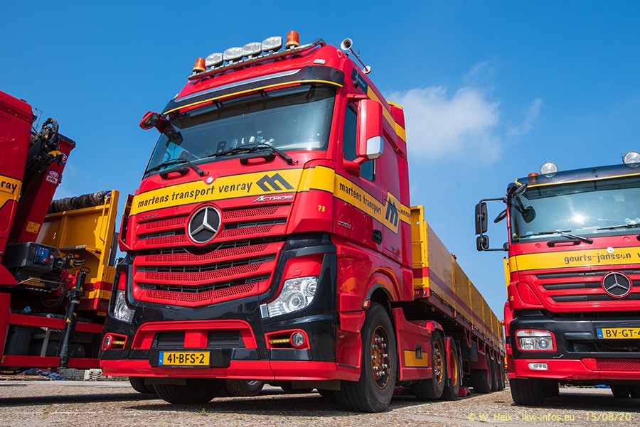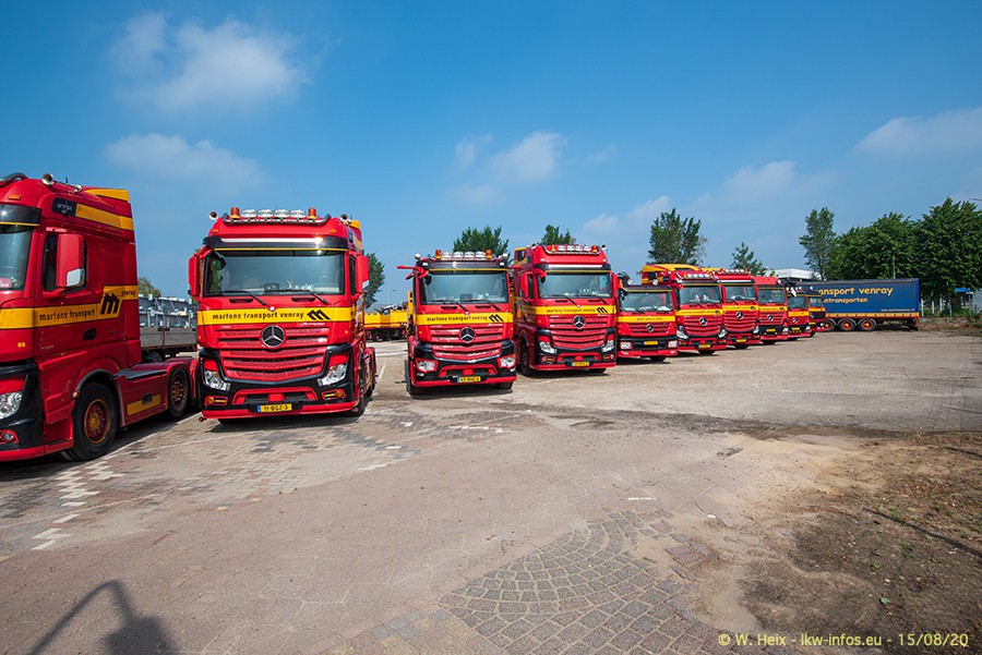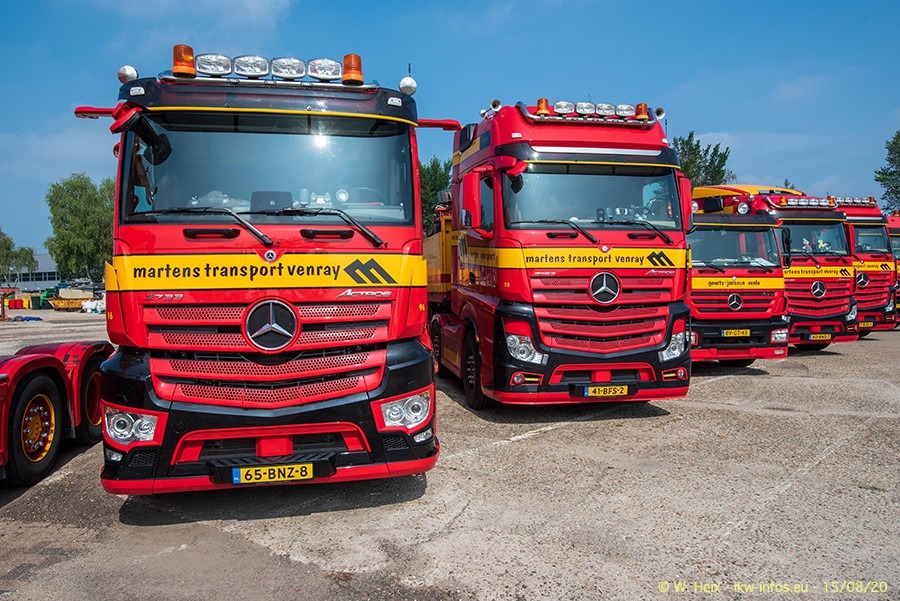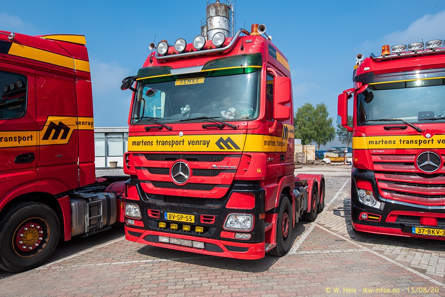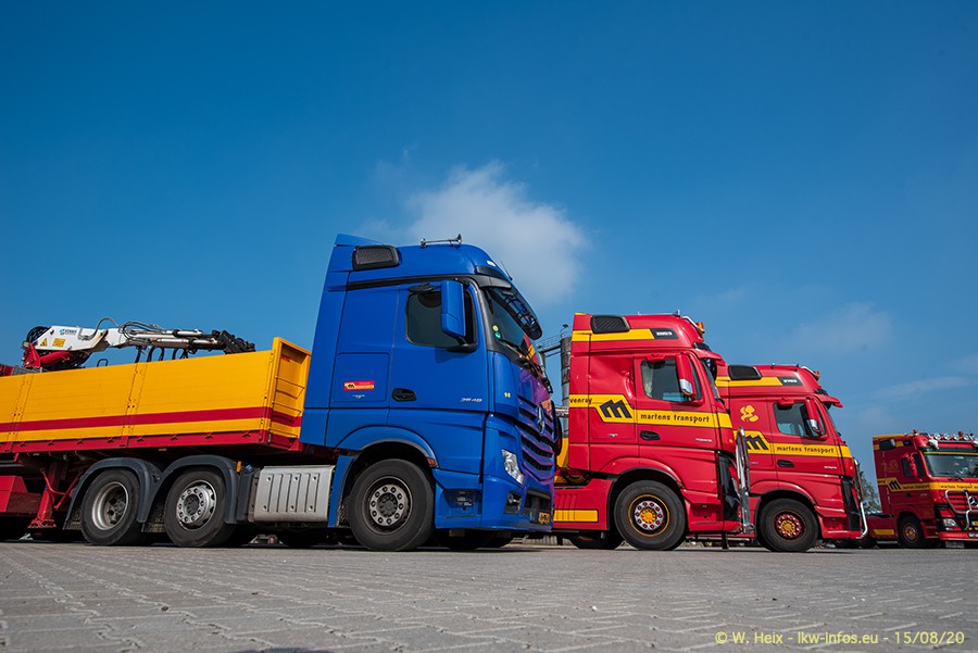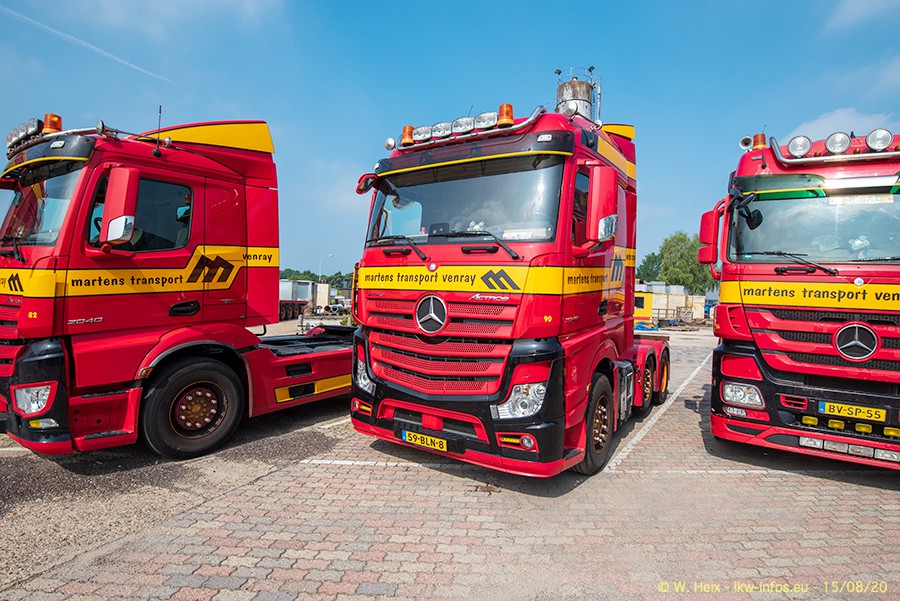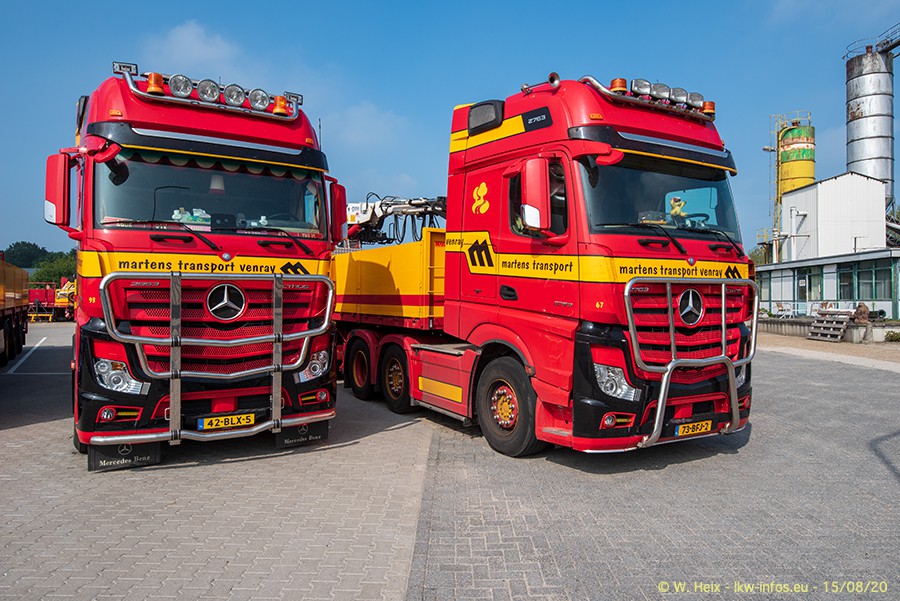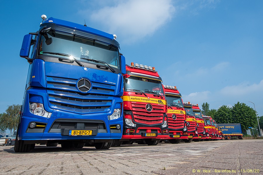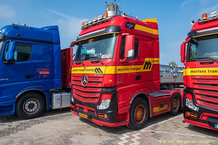 An diesem Wochenende hätte eigentlich die Truckshow in Liessel stattgefunden, wo auch LKW von Martens dabei gewesen wären. Aber wegen der Corona-Krise, die immer noch andauert, kommt alles anders. Somit habe ich Zeit, auch Martens in Venray wieder zu besuchen. Der komplette Fuhrpark ist zuhause. Im März wurden zwei gebrauchte Mercedes-Benz Actros 4 gekauft. Das sind die beiden blauen Zugmaschinnen, die demnächst aber auch in den Farben von Martens lackiert werden.
