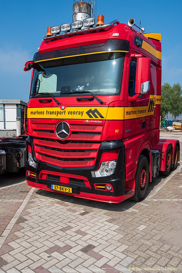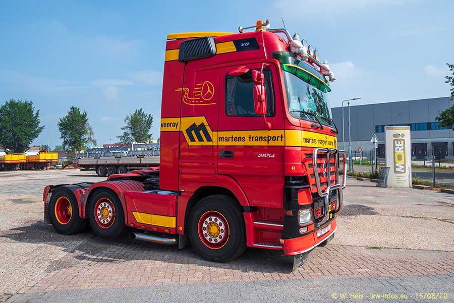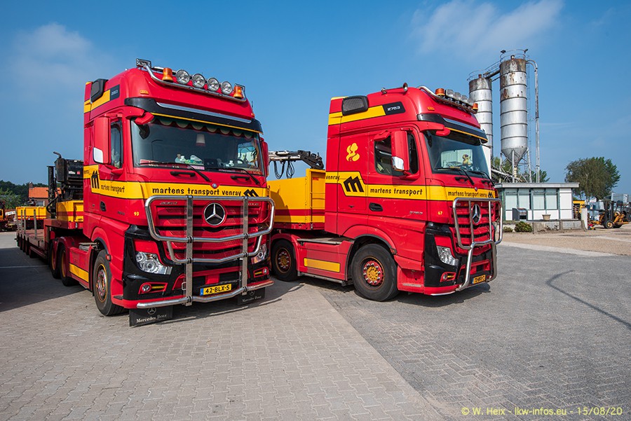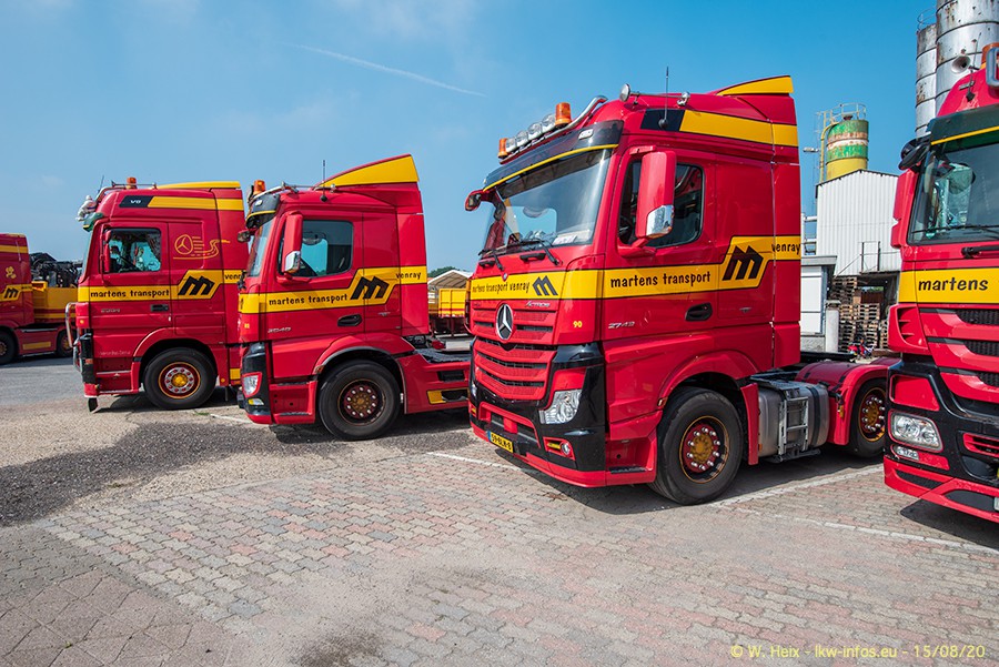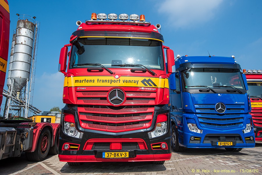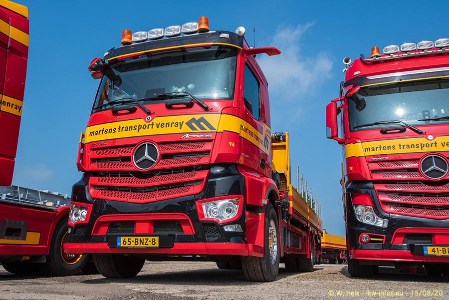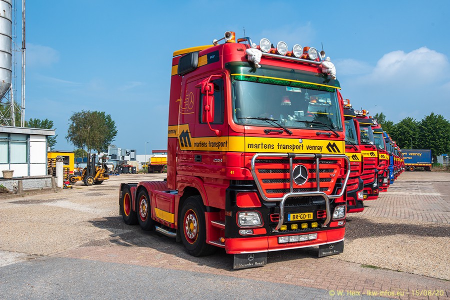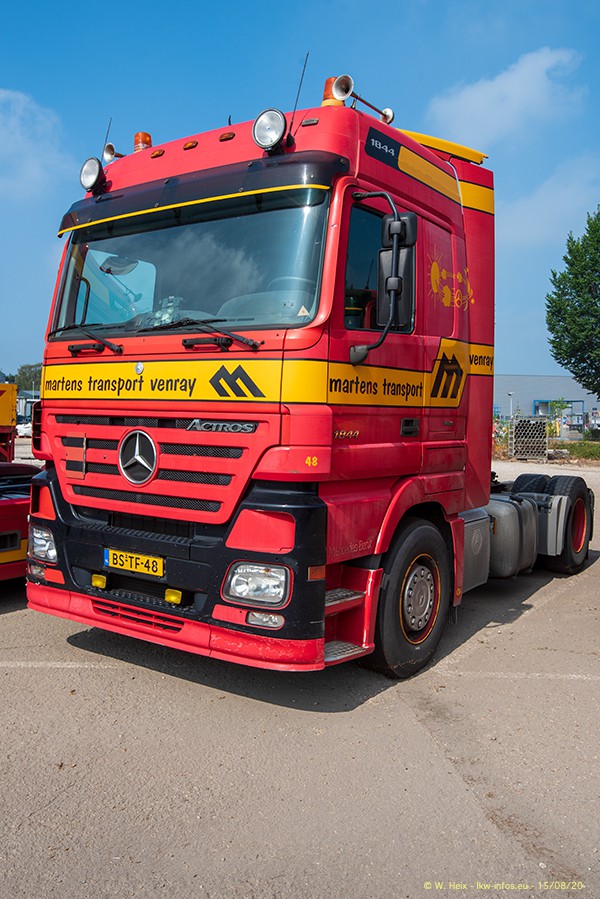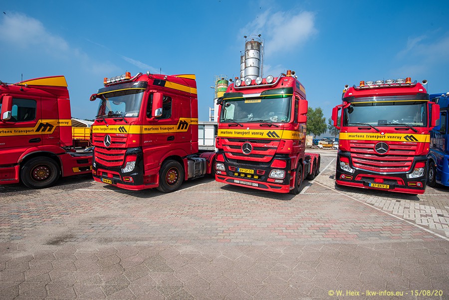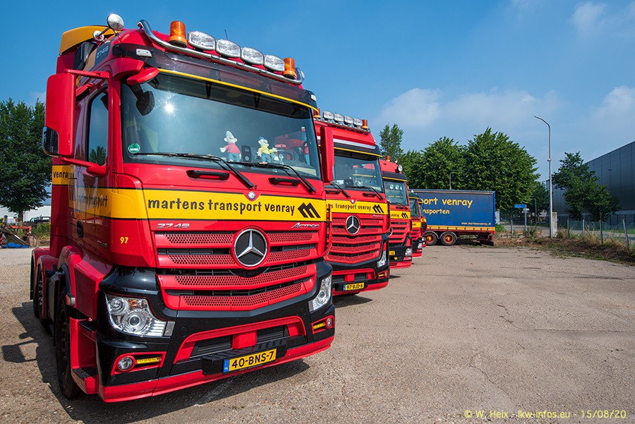 An diesem Wochenende hätte eigentlich die Truckshow in Liessel stattgefunden, wo auch LKW von Martens dabei gewesen wären. Aber wegen der Corona-Krise, die immer noch andauert, kommt alles anders. Somit habe ich Zeit, auch Martens in Venray wieder zu besuchen. Der komplette Fuhrpark ist zuhause. Im März wurden zwei gebrauchte Mercedes-Benz Actros 4 gekauft. Das sind die beiden blauen Zugmaschinnen, die demnächst aber auch in den Farben von Martens lackiert werden.