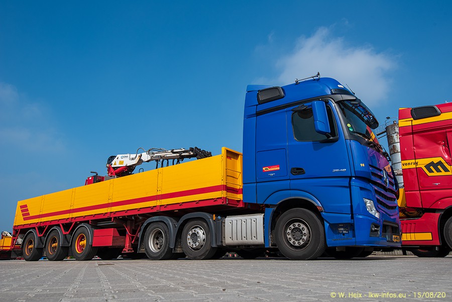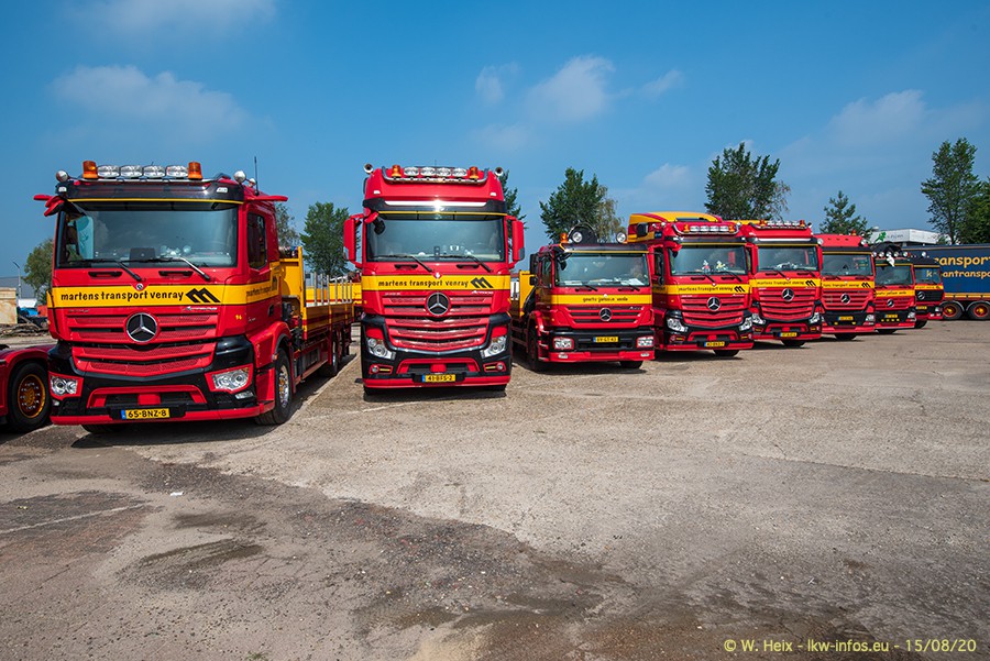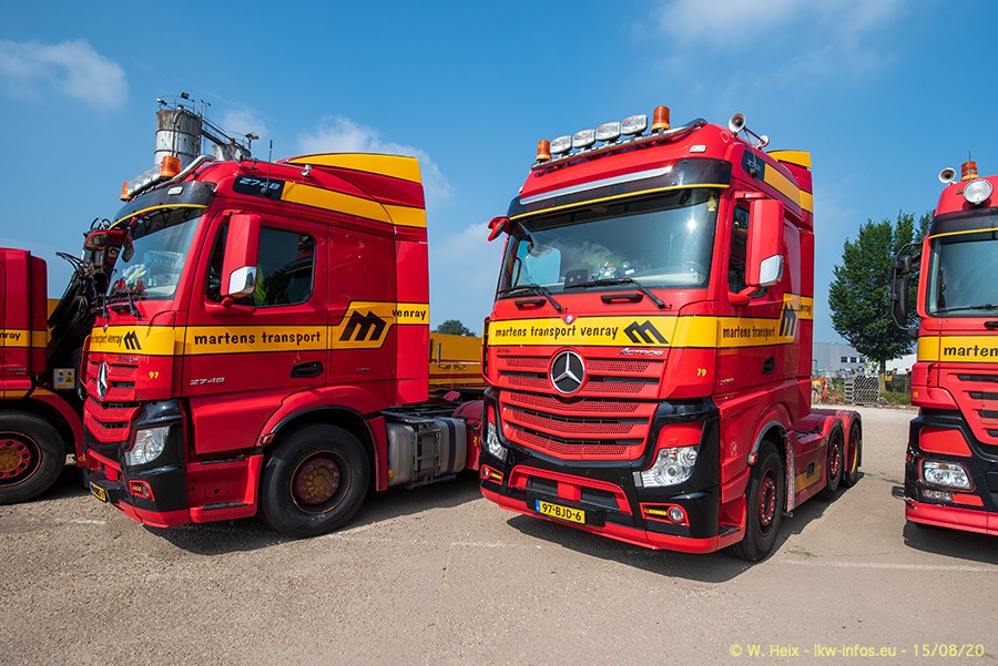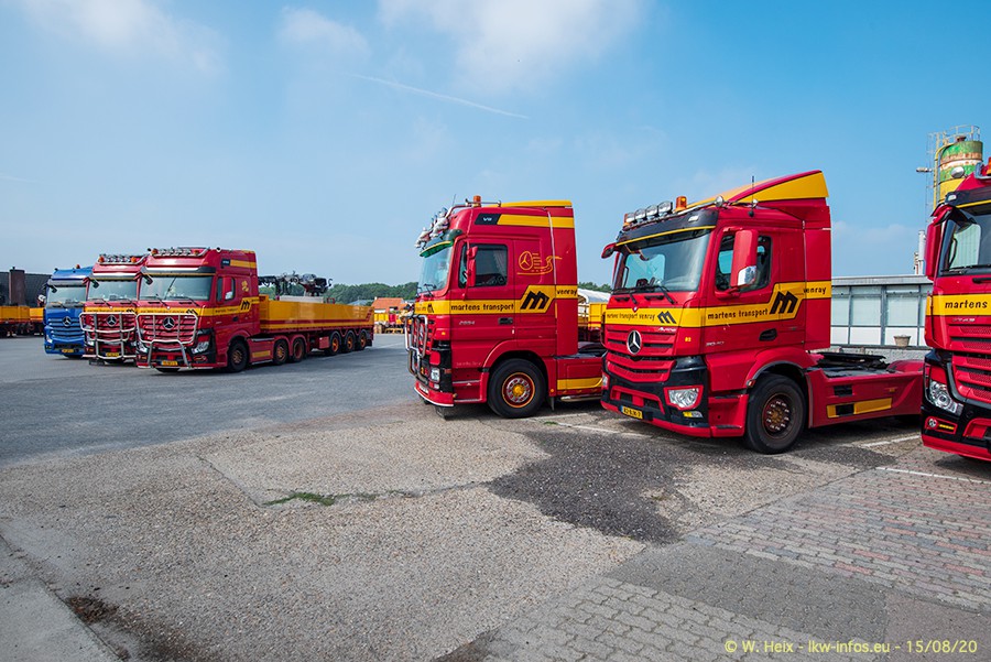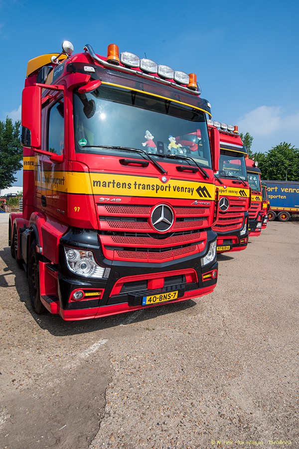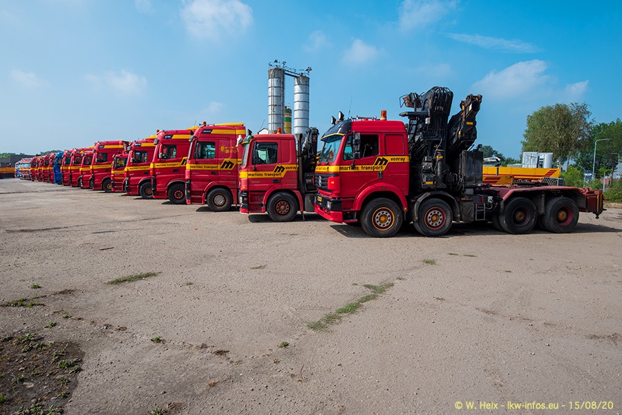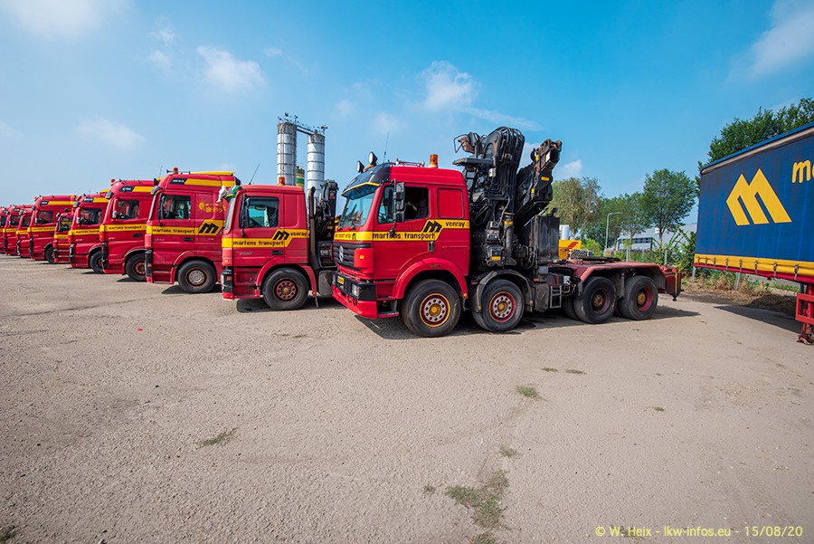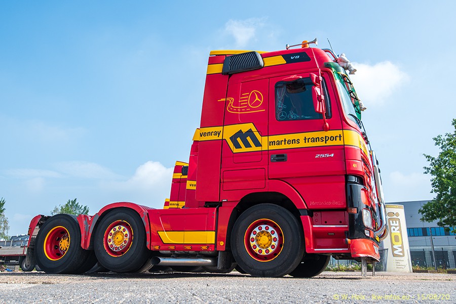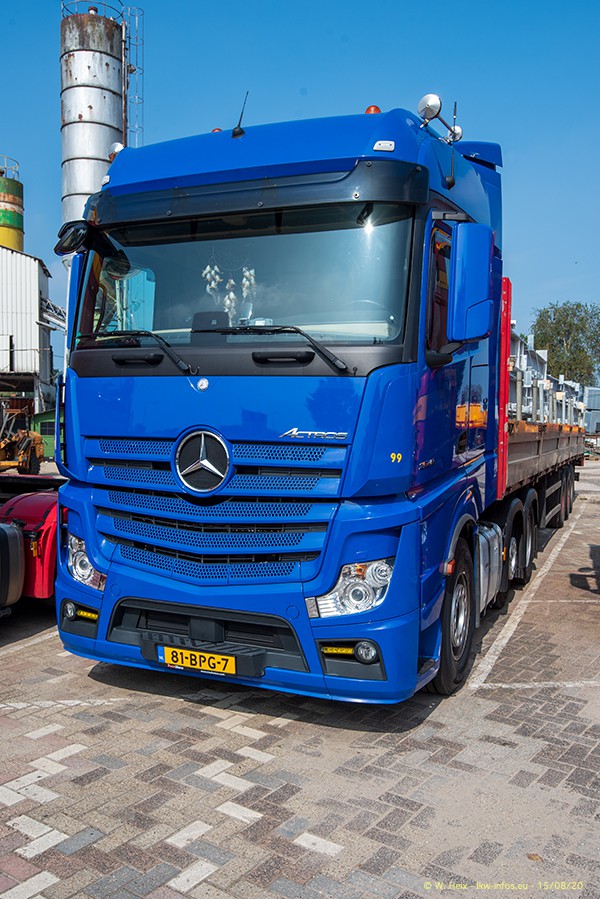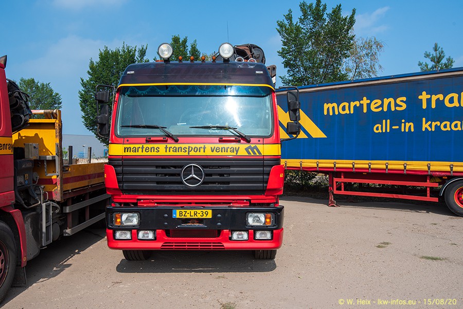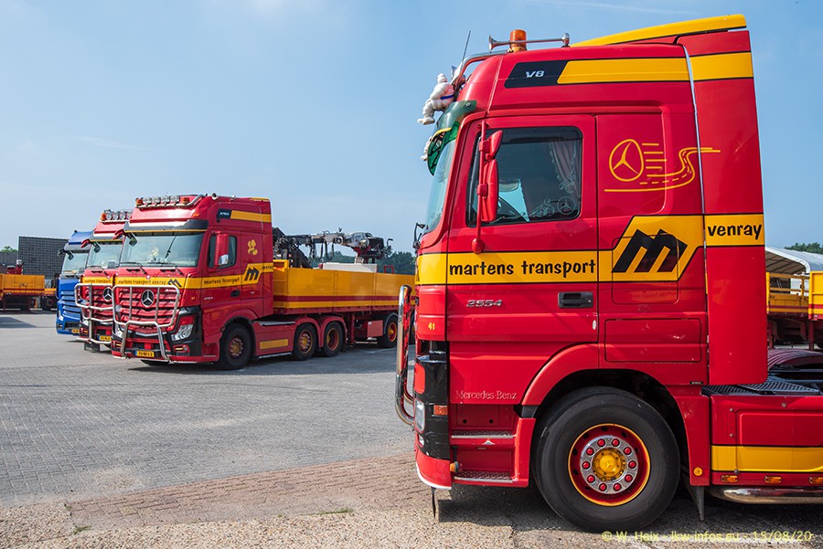 An diesem Wochenende hätte eigentlich die Truckshow in Liessel stattgefunden, wo auch LKW von Martens dabei gewesen wären. Aber wegen der Corona-Krise, die immer noch andauert, kommt alles anders. Somit habe ich Zeit, auch Martens in Venray wieder zu besuchen. Der komplette Fuhrpark ist zuhause. Im März wurden zwei gebrauchte Mercedes-Benz Actros 4 gekauft. Das sind die beiden blauen Zugmaschinnen, die demnächst aber auch in den Farben von Martens lackiert werden.