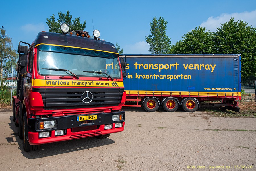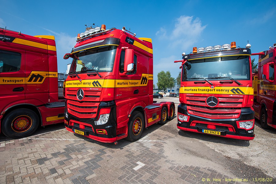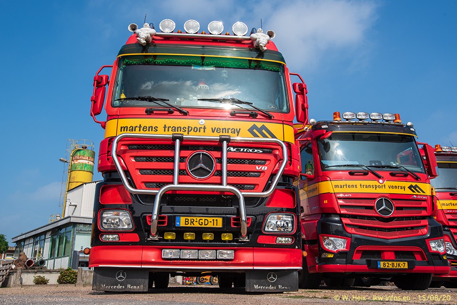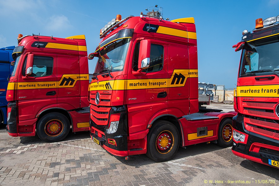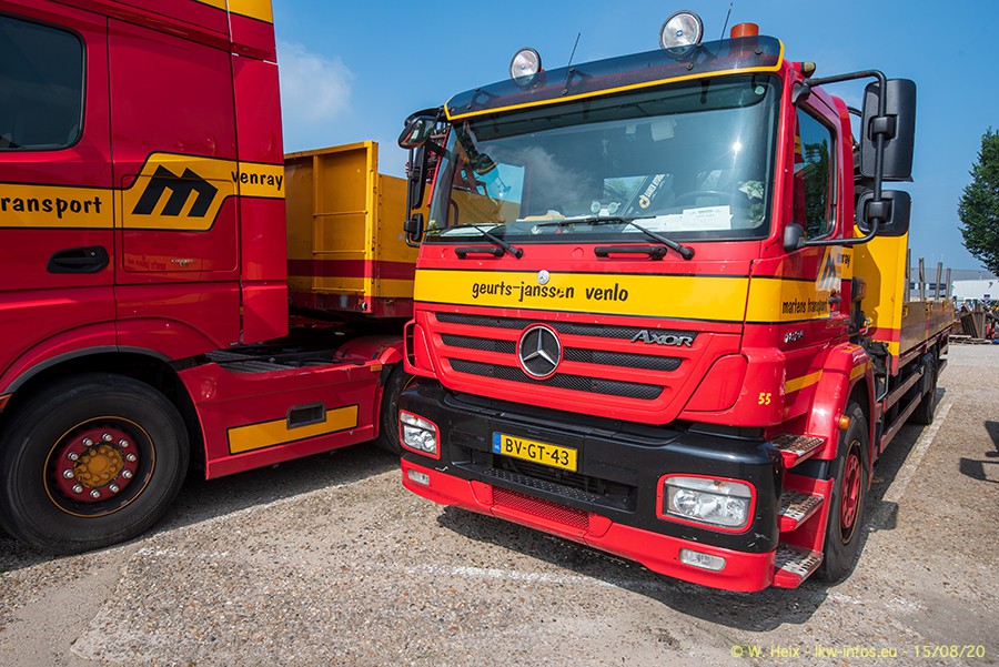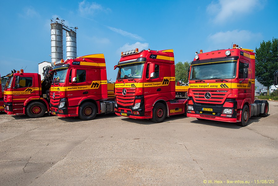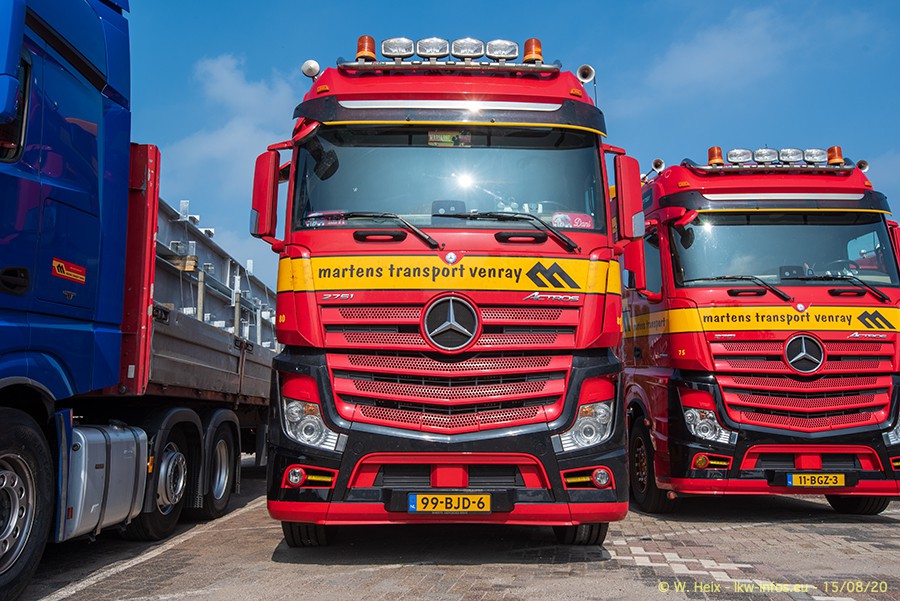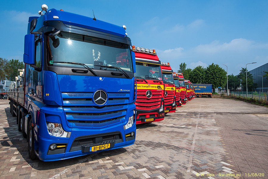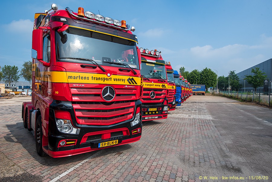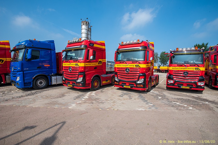 An diesem Wochenende hätte eigentlich die Truckshow in Liessel stattgefunden, wo auch LKW von Martens dabei gewesen wären. Aber wegen der Corona-Krise, die immer noch andauert, kommt alles anders. Somit habe ich Zeit, auch Martens in Venray wieder zu besuchen. Der komplette Fuhrpark ist zuhause. Im März wurden zwei gebrauchte Mercedes-Benz Actros 4 gekauft. Das sind die beiden blauen Zugmaschinnen, die demnächst aber auch in den Farben von Martens lackiert werden.