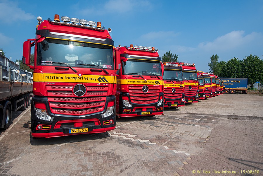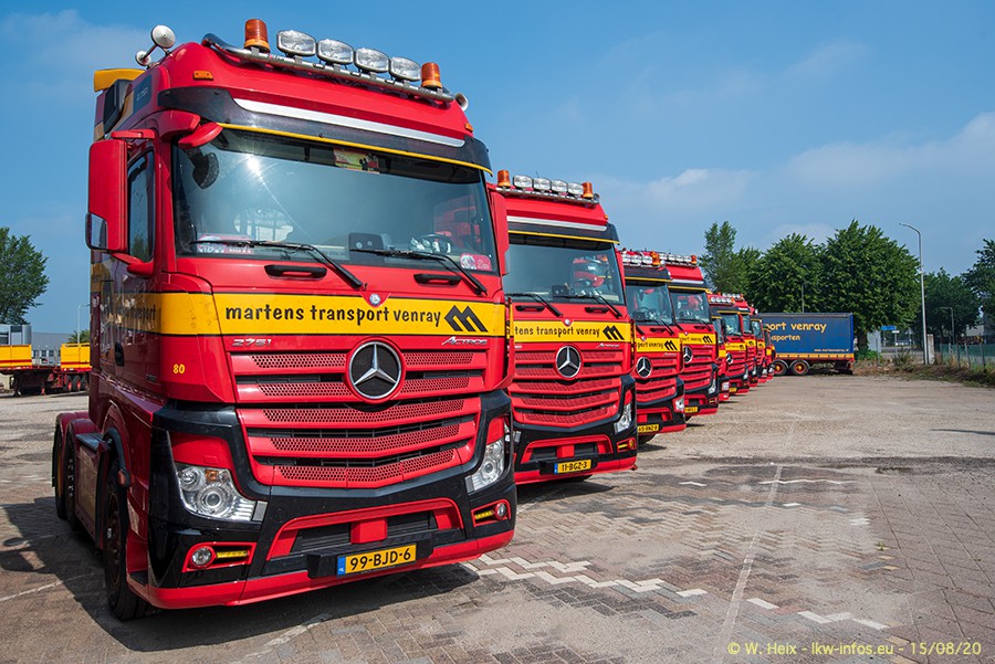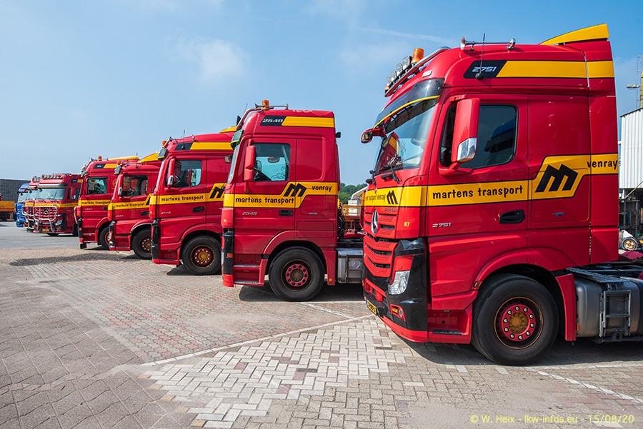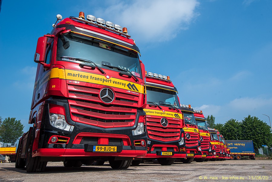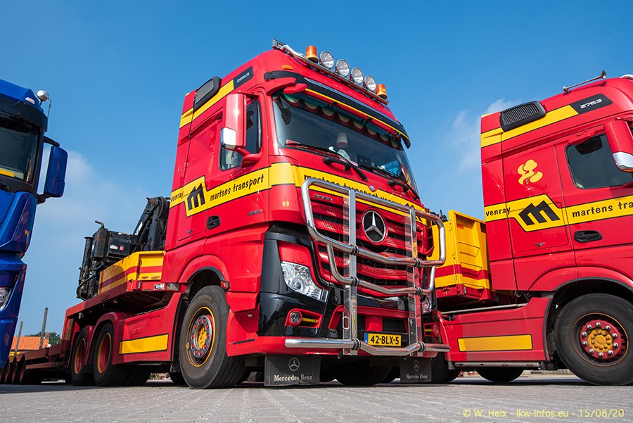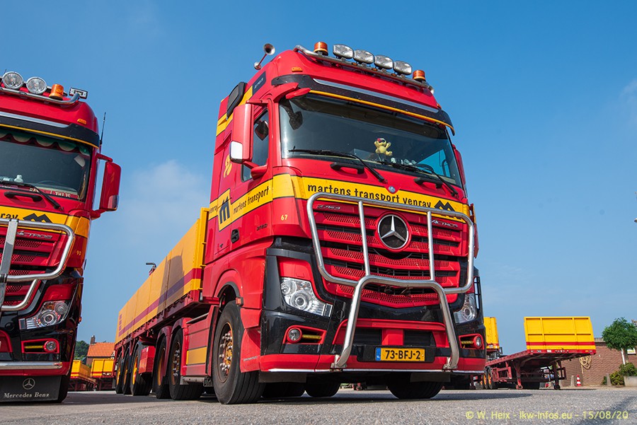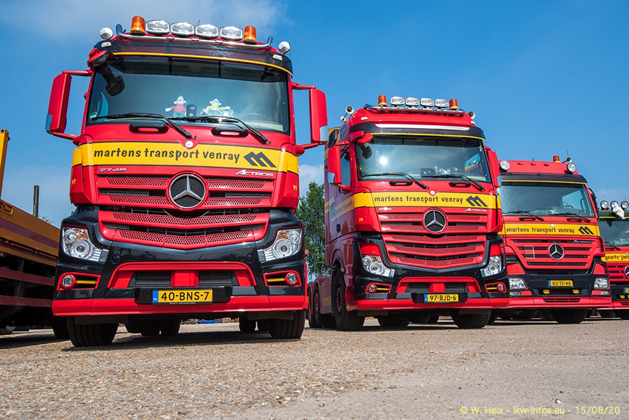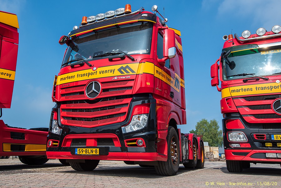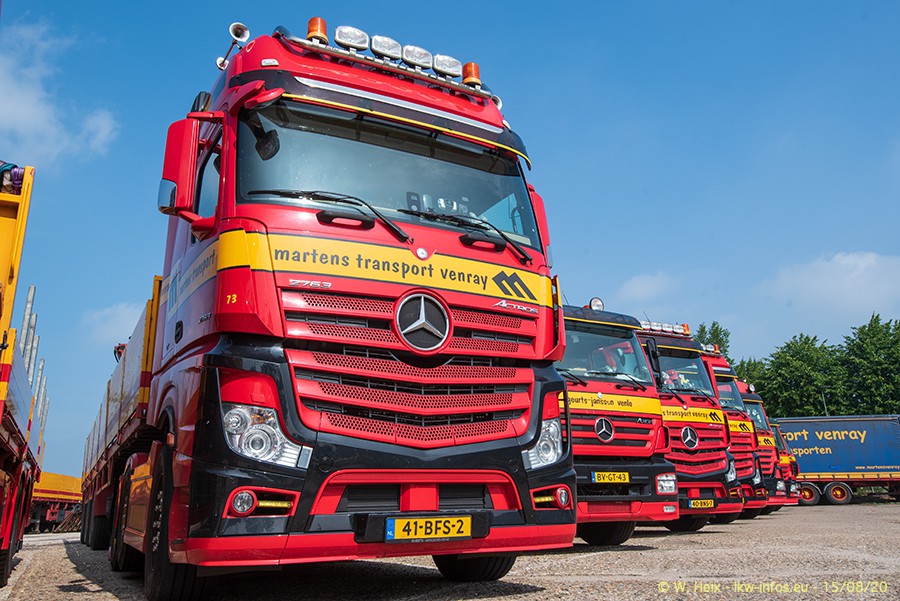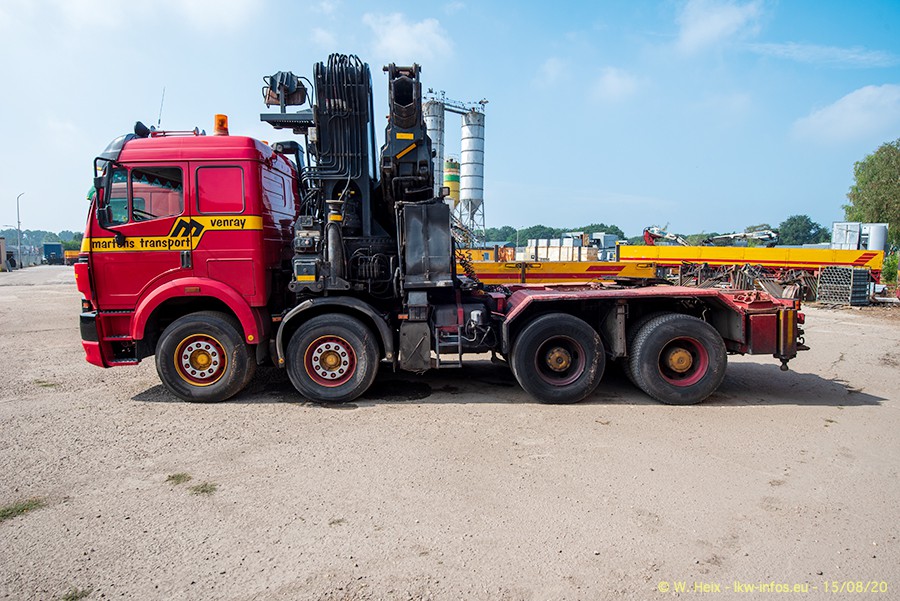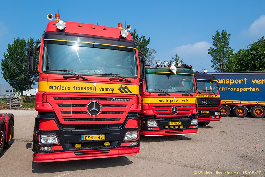 An diesem Wochenende hätte eigentlich die Truckshow in Liessel stattgefunden, wo auch LKW von Martens dabei gewesen wären. Aber wegen der Corona-Krise, die immer noch andauert, kommt alles anders. Somit habe ich Zeit, auch Martens in Venray wieder zu besuchen. Der komplette Fuhrpark ist zuhause. Im März wurden zwei gebrauchte Mercedes-Benz Actros 4 gekauft. Das sind die beiden blauen Zugmaschinnen, die demnächst aber auch in den Farben von Martens lackiert werden.