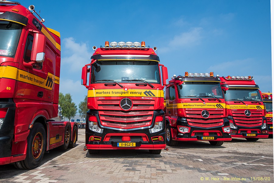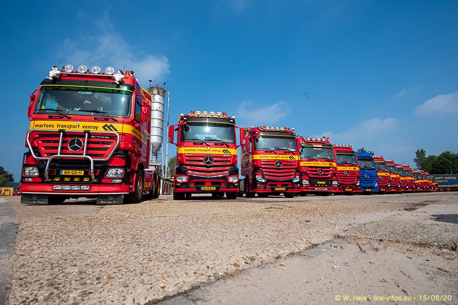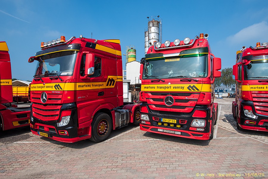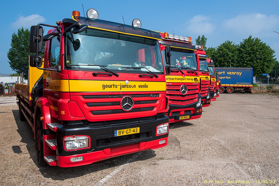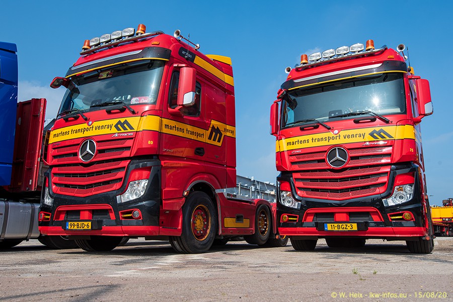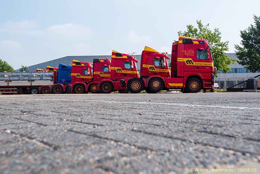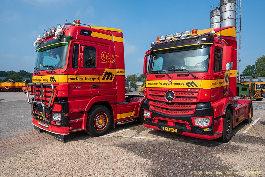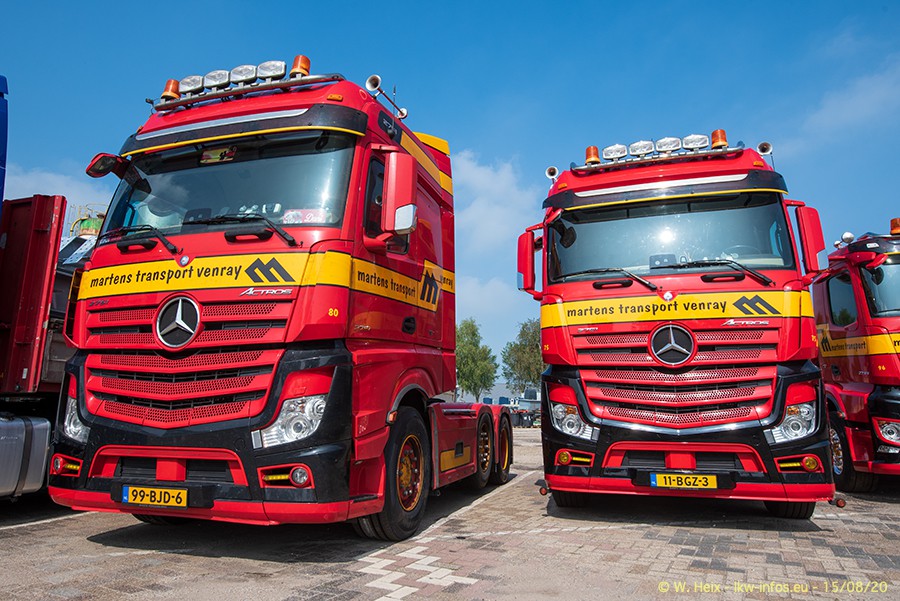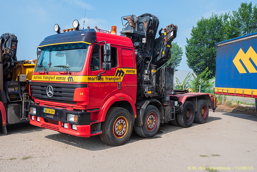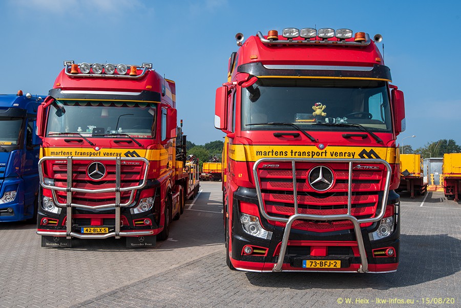 An diesem Wochenende hätte eigentlich die Truckshow in Liessel stattgefunden, wo auch LKW von Martens dabei gewesen wären. Aber wegen der Corona-Krise, die immer noch andauert, kommt alles anders. Somit habe ich Zeit, auch Martens in Venray wieder zu besuchen. Der komplette Fuhrpark ist zuhause. Im März wurden zwei gebrauchte Mercedes-Benz Actros 4 gekauft. Das sind die beiden blauen Zugmaschinnen, die demnächst aber auch in den Farben von Martens lackiert werden.