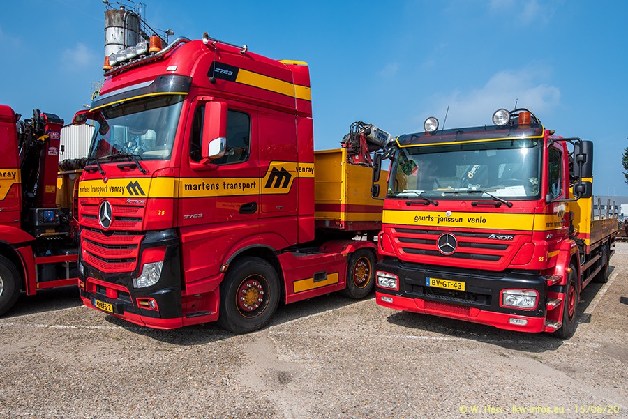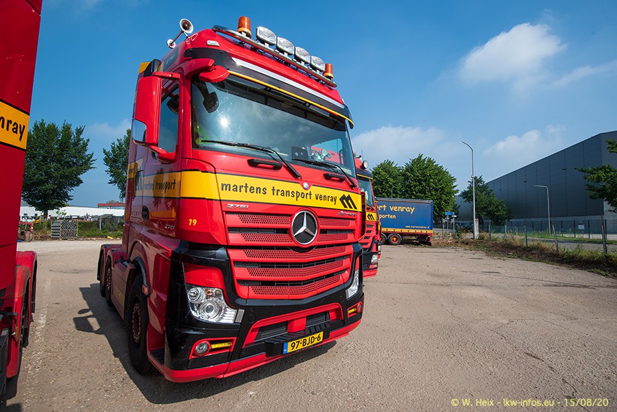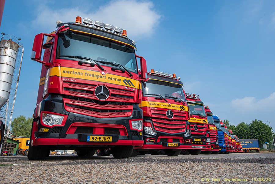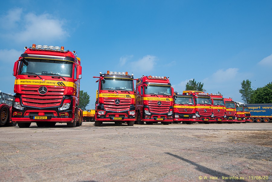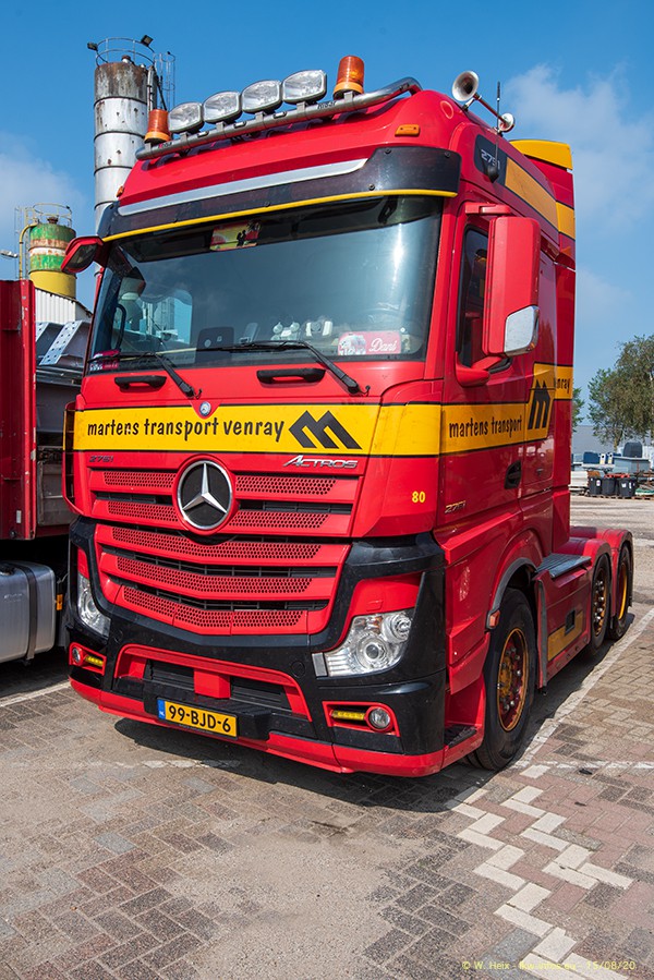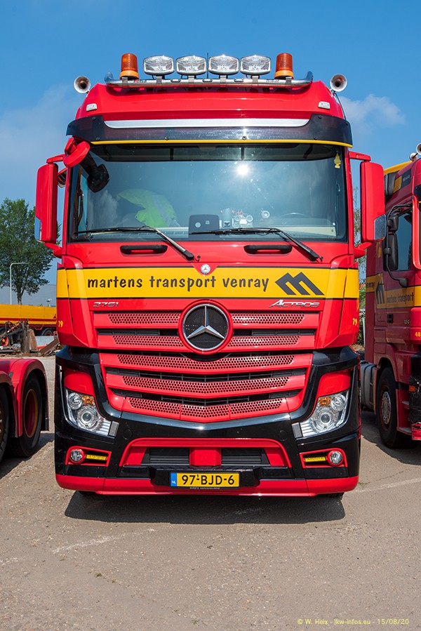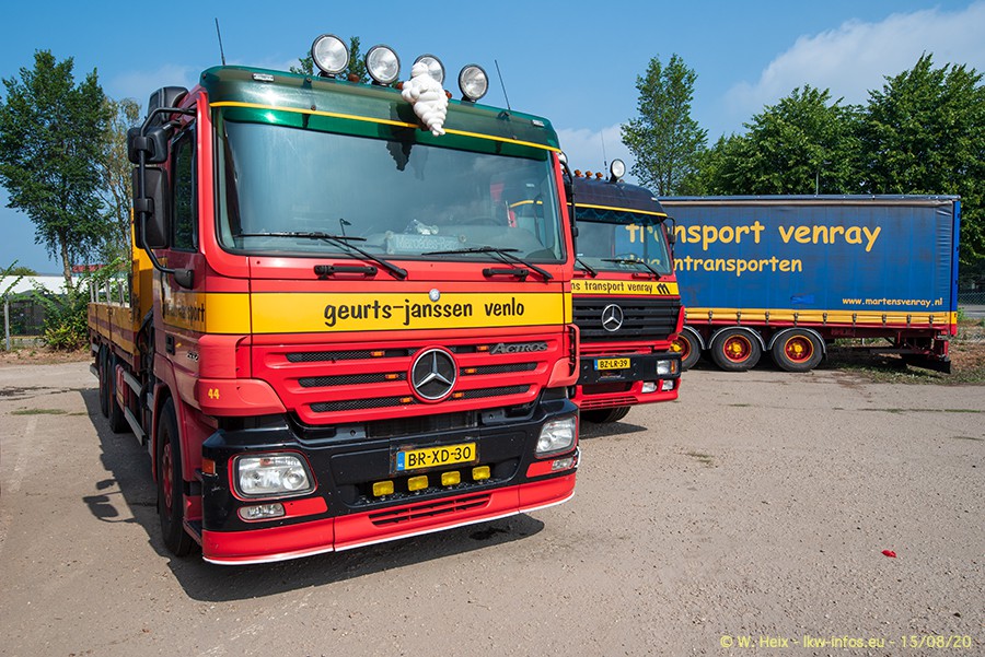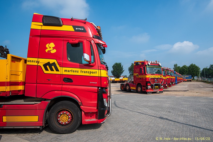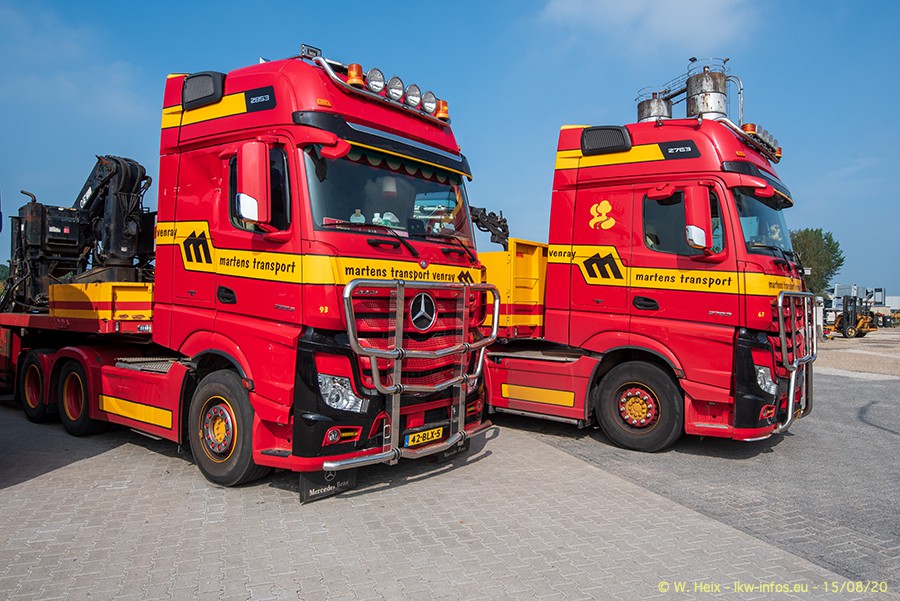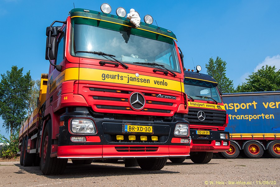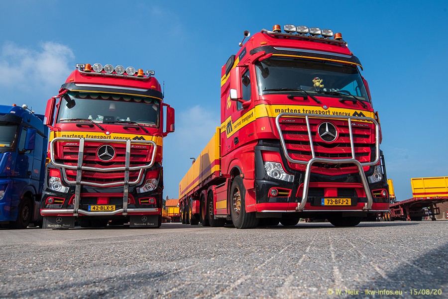 An diesem Wochenende hätte eigentlich die Truckshow in Liessel stattgefunden, wo auch LKW von Martens dabei gewesen wären. Aber wegen der Corona-Krise, die immer noch andauert, kommt alles anders. Somit habe ich Zeit, auch Martens in Venray wieder zu besuchen. Der komplette Fuhrpark ist zuhause. Im März wurden zwei gebrauchte Mercedes-Benz Actros 4 gekauft. Das sind die beiden blauen Zugmaschinnen, die demnächst aber auch in den Farben von Martens lackiert werden.