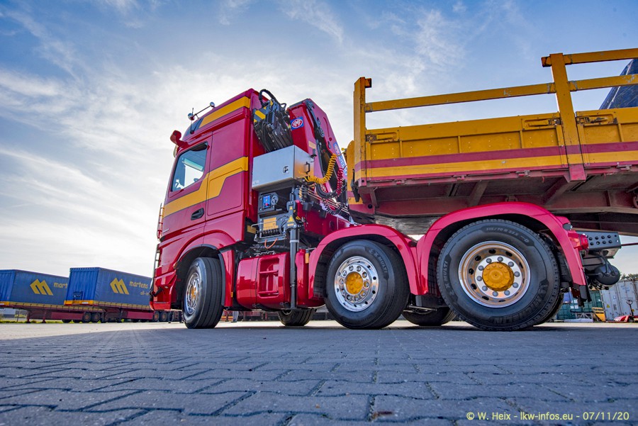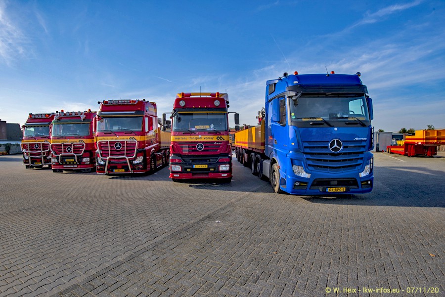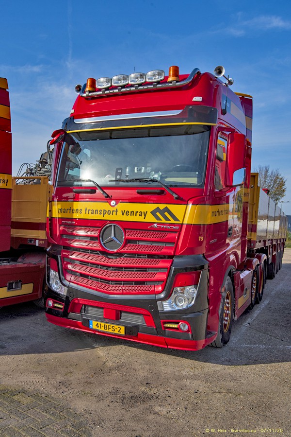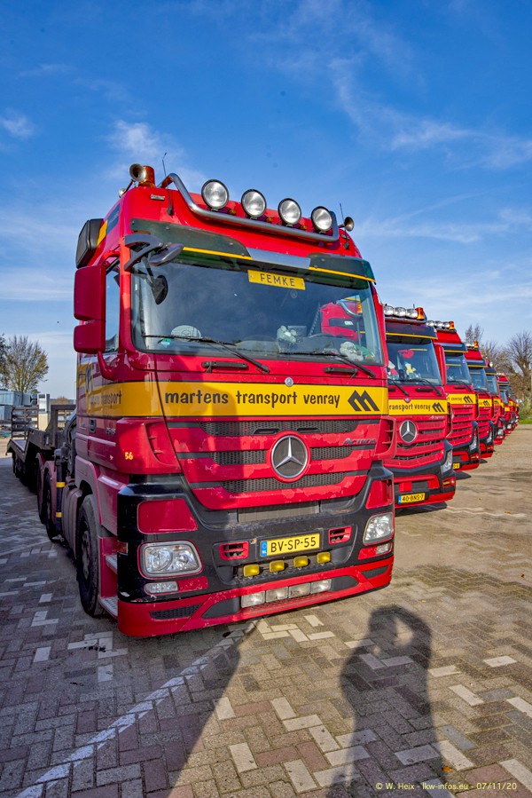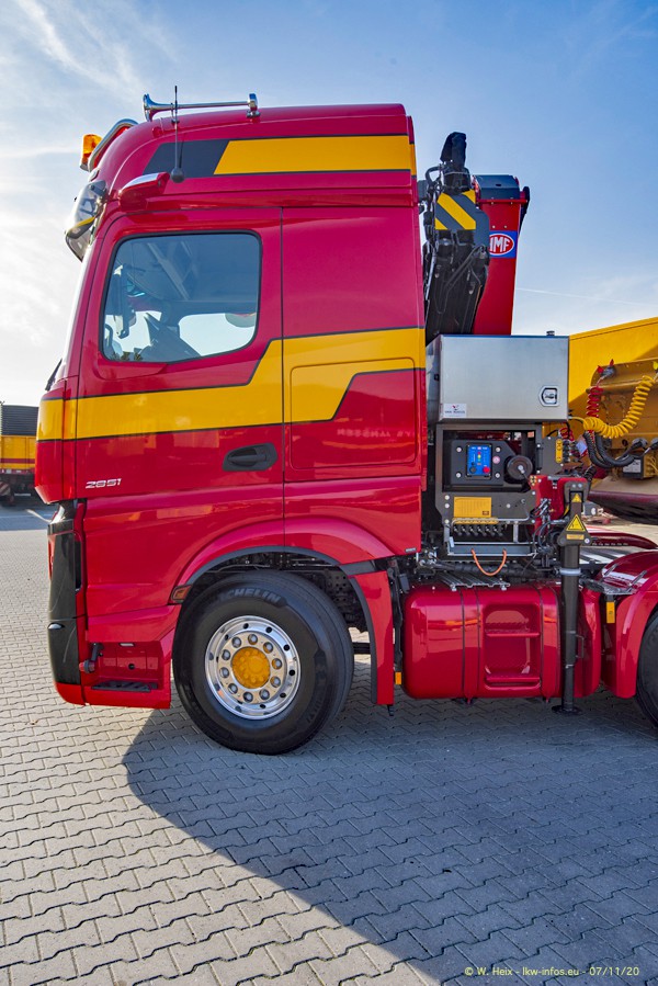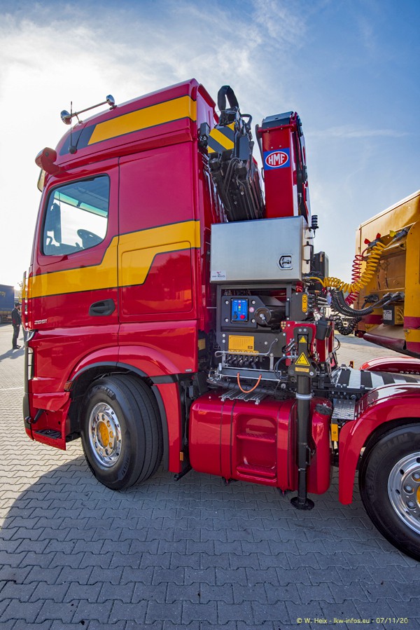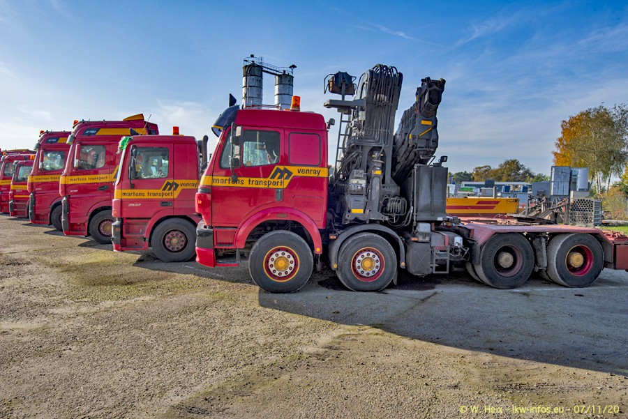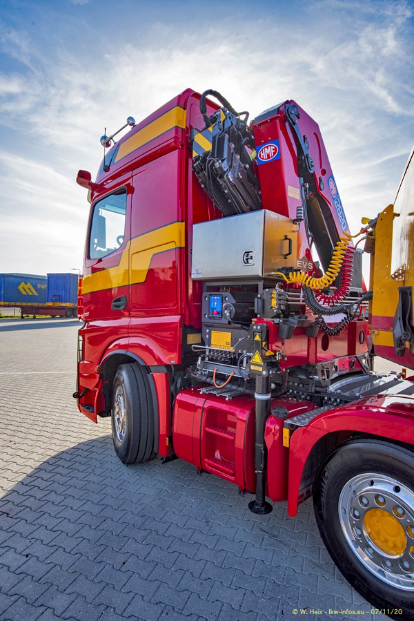 Ich war gerade erst vor einer Woche bei Martens Transport, aber der heutige Besuch hatte einen Grund: Denn am Freitag hat die Firma einen weiteren neuen Mercedes-Benz New Actros (Actros 5) bekommen. Das ist ein 2851 mt Ladekran von HMF. Die Beklebung/Beschriftung ist leider nicht ganz fertig geworden und in ca. 3 Monaten wird es für diese Zugmaschine noch einen neuen Auflieger geben, dessen Lieferzeit sich verzögert hat. Da meine Bilder letzte Woche (für mich) nicht zufriedenstellend gut waren, habe nochmal den kompletten Fuhrpark fotografiert.