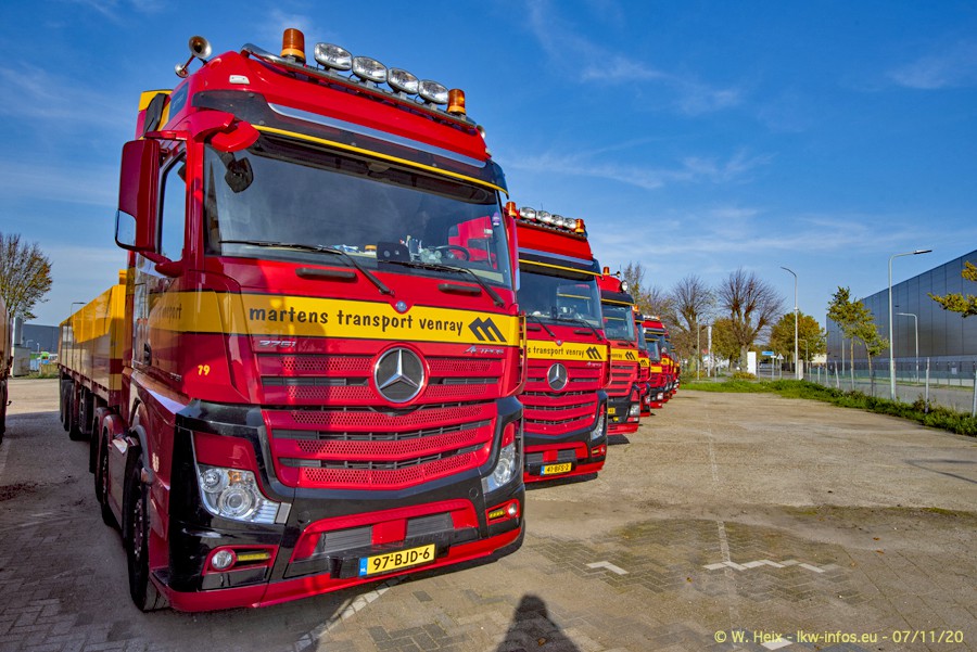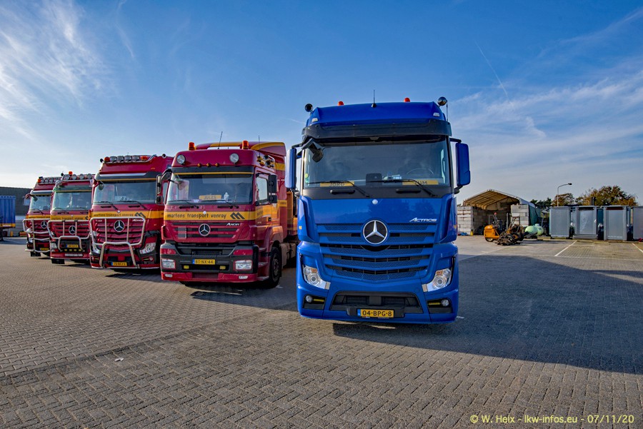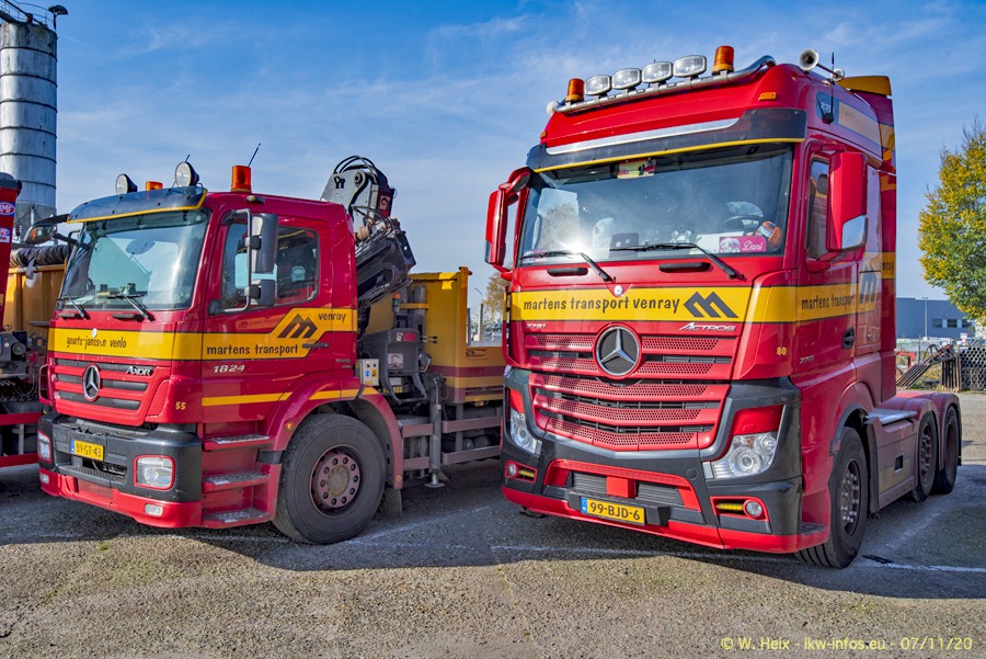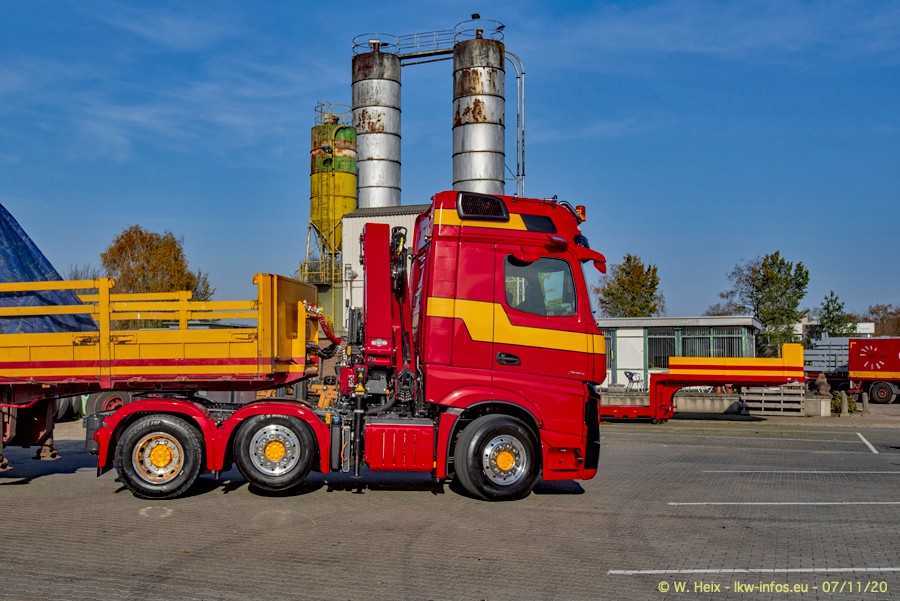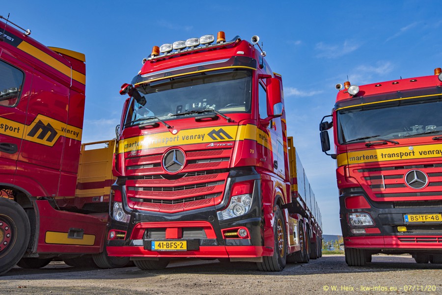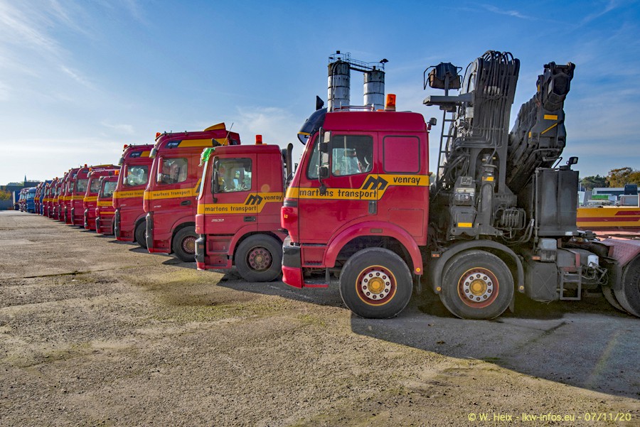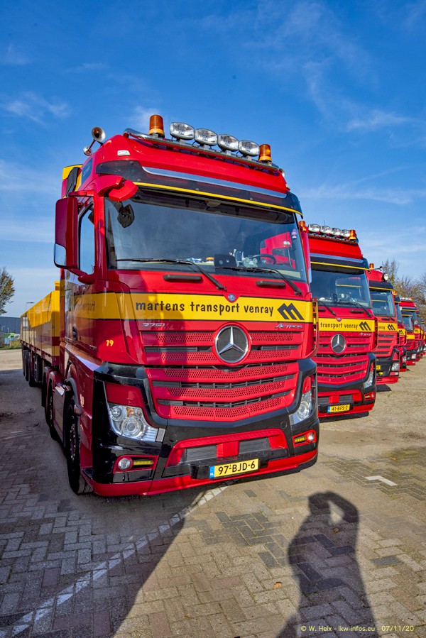 Ich war gerade erst vor einer Woche bei Martens Transport, aber der heutige Besuch hatte einen Grund: Denn am Freitag hat die Firma einen weiteren neuen Mercedes-Benz New Actros (Actros 5) bekommen. Das ist ein 2851 mt Ladekran von HMF. Die Beklebung/Beschriftung ist leider nicht ganz fertig geworden und in ca. 3 Monaten wird es für diese Zugmaschine noch einen neuen Auflieger geben, dessen Lieferzeit sich verzögert hat. Da meine Bilder letzte Woche (für mich) nicht zufriedenstellend gut waren, habe nochmal den kompletten Fuhrpark fotografiert.