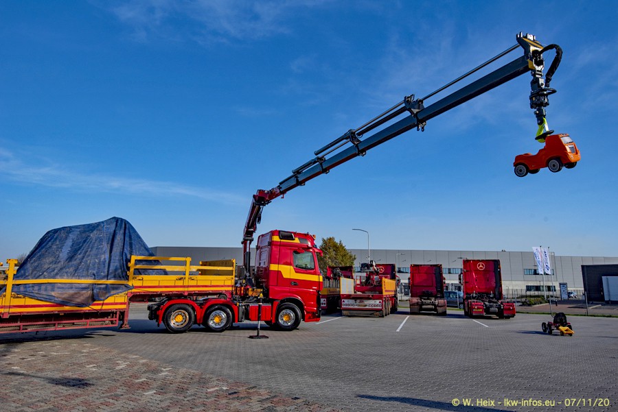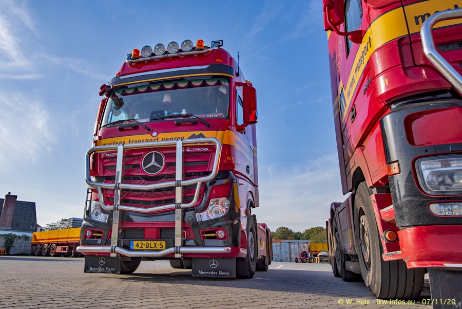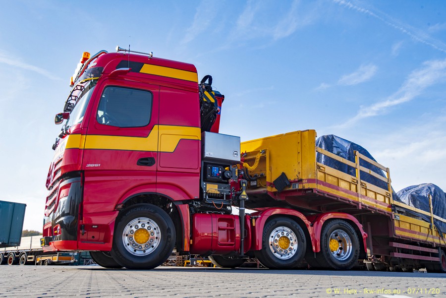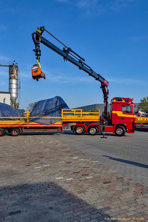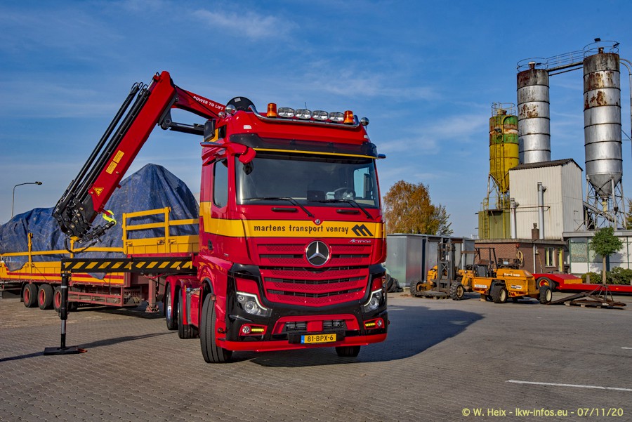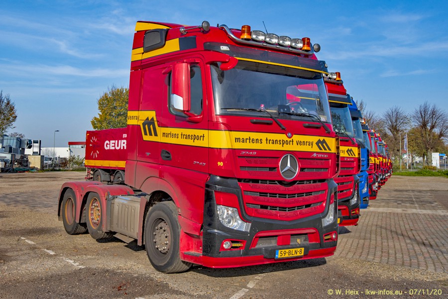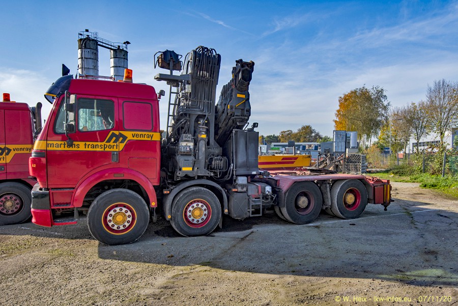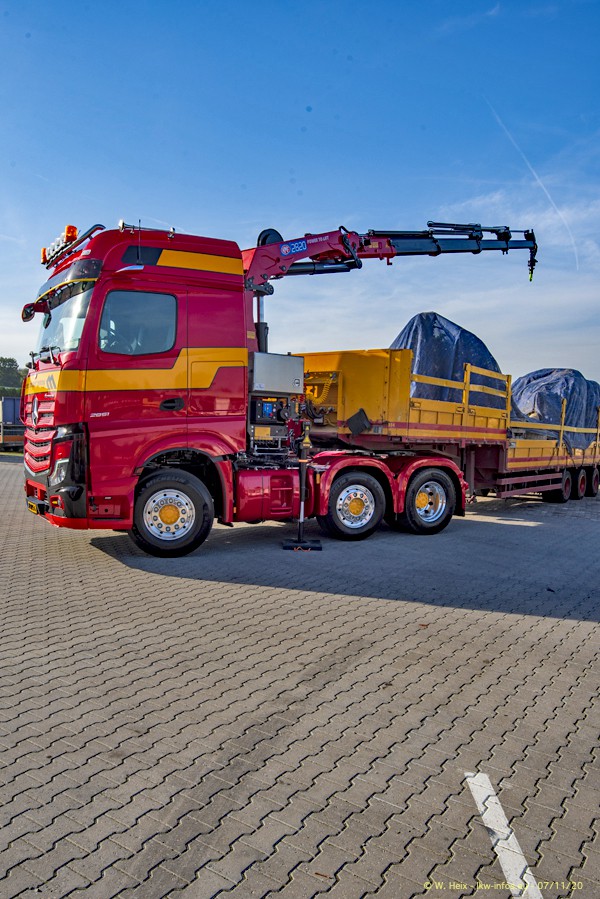 Ich war gerade erst vor einer Woche bei Martens Transport, aber der heutige Besuch hatte einen Grund: Denn am Freitag hat die Firma einen weiteren neuen Mercedes-Benz New Actros (Actros 5) bekommen. Das ist ein 2851 mt Ladekran von HMF. Die Beklebung/Beschriftung ist leider nicht ganz fertig geworden und in ca. 3 Monaten wird es für diese Zugmaschine noch einen neuen Auflieger geben, dessen Lieferzeit sich verzögert hat. Da meine Bilder letzte Woche (für mich) nicht zufriedenstellend gut waren, habe nochmal den kompletten Fuhrpark fotografiert.