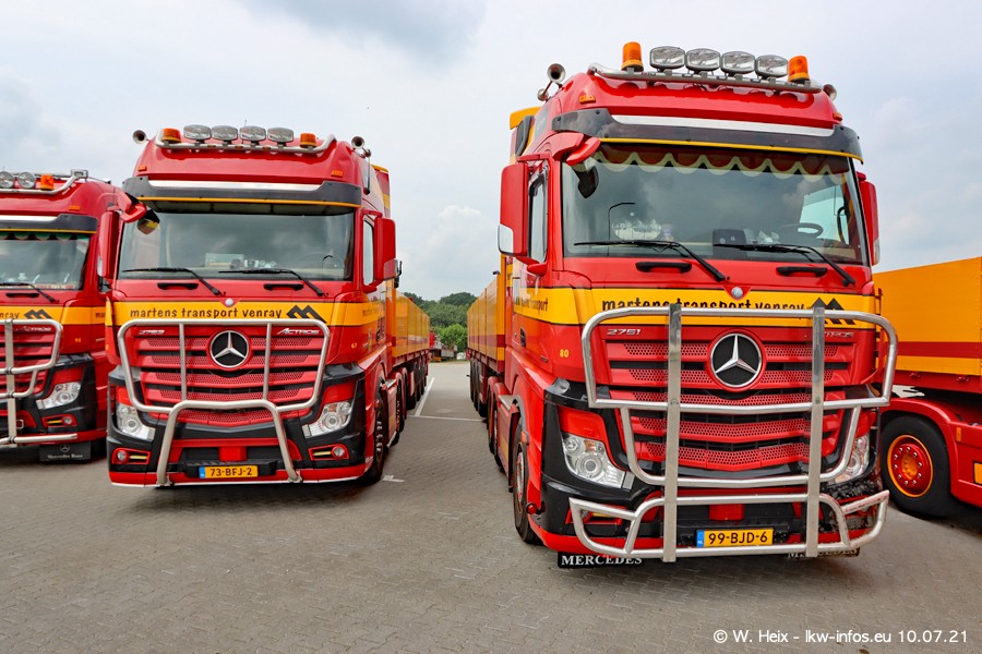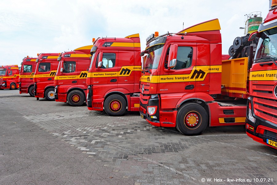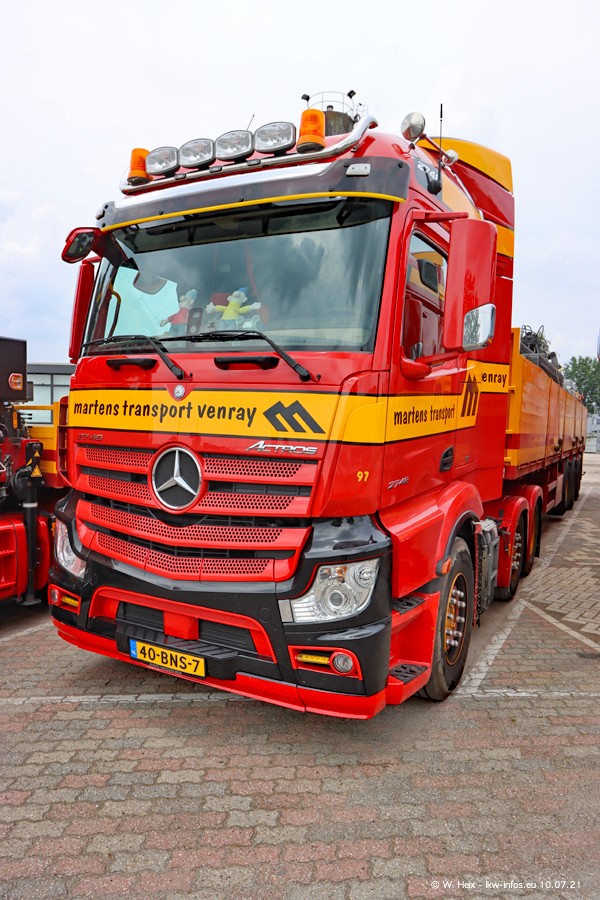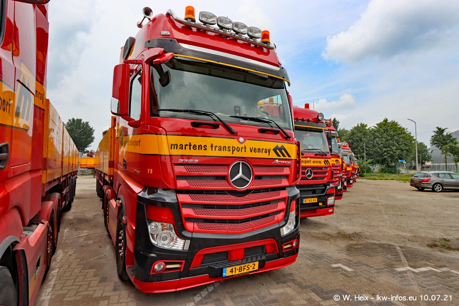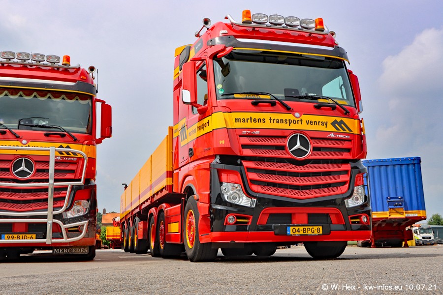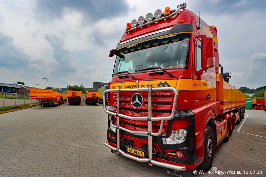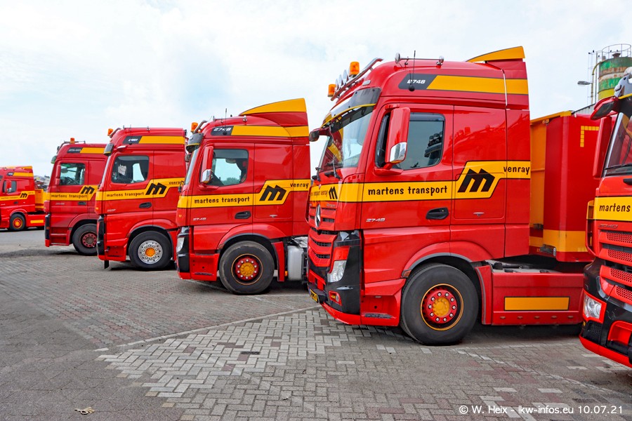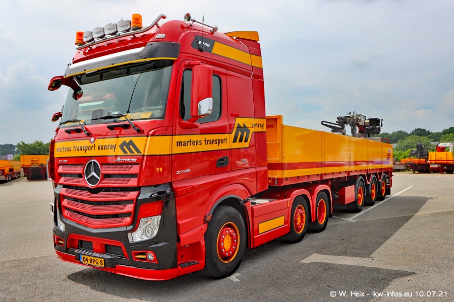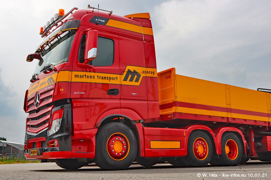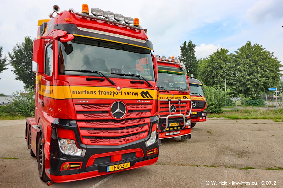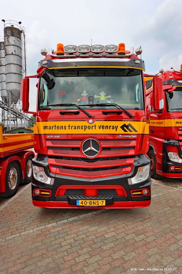 Nach dem winterlichen Besuch im Februar war ich diesmal bei schönem warmen Sommerwetter bei Martens Transport. Bis auf zwei LKW (einer unterwegs, einer in der Werkstatt) war alles zuhause. Neu ist ein weiterer Mercedes-Benz New Actros 4 (MP5) mit dem Kennezichen 49-BPR-7. Dieser kam kurz nach meinem Besuch im Februar. Das Fahrzeug wurde mit 2.000 gefahrenen Kilometern "gebraucht" gekauft und umlackiert. Der Actros, der im Januar neu war (81-BPX-6) hat nun eine kleine Pritsche erhalten und kann statt als LZV auch als Kran-LKW für kleinere Arbeiten eingesetzt werden. Dieser Umbau ist am Tag des Besuchs fertig geworden. Ansonsten ist alles bekannt, neue Fahrzeuge sind schon wieder bestellt .....