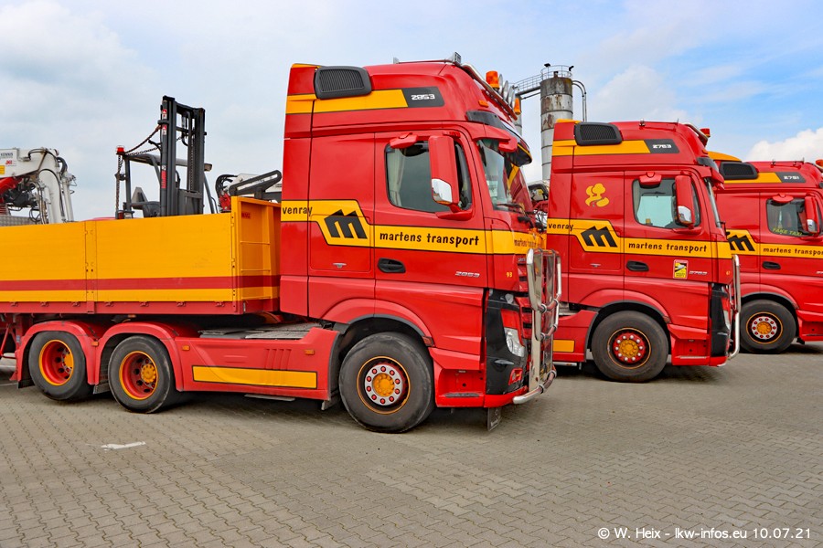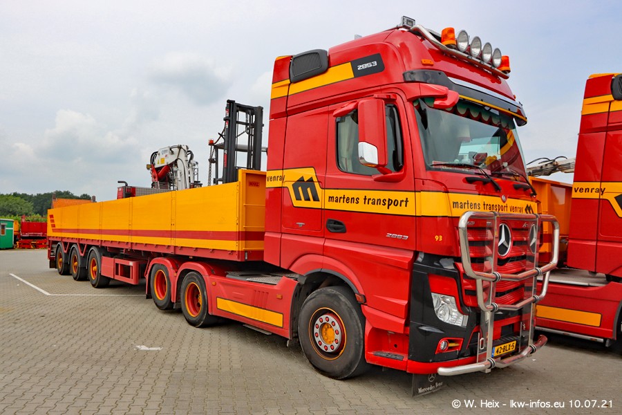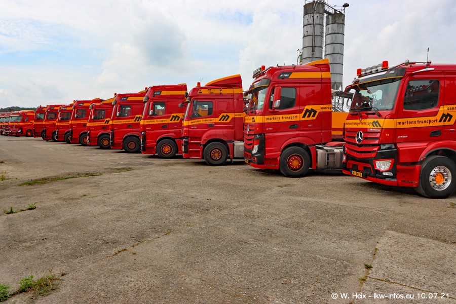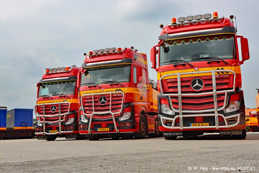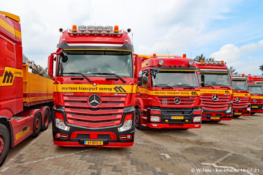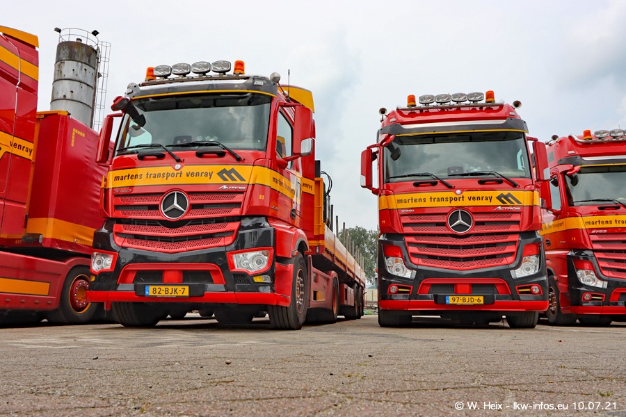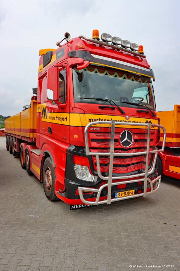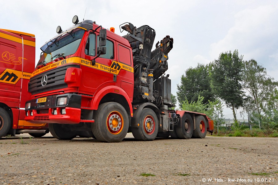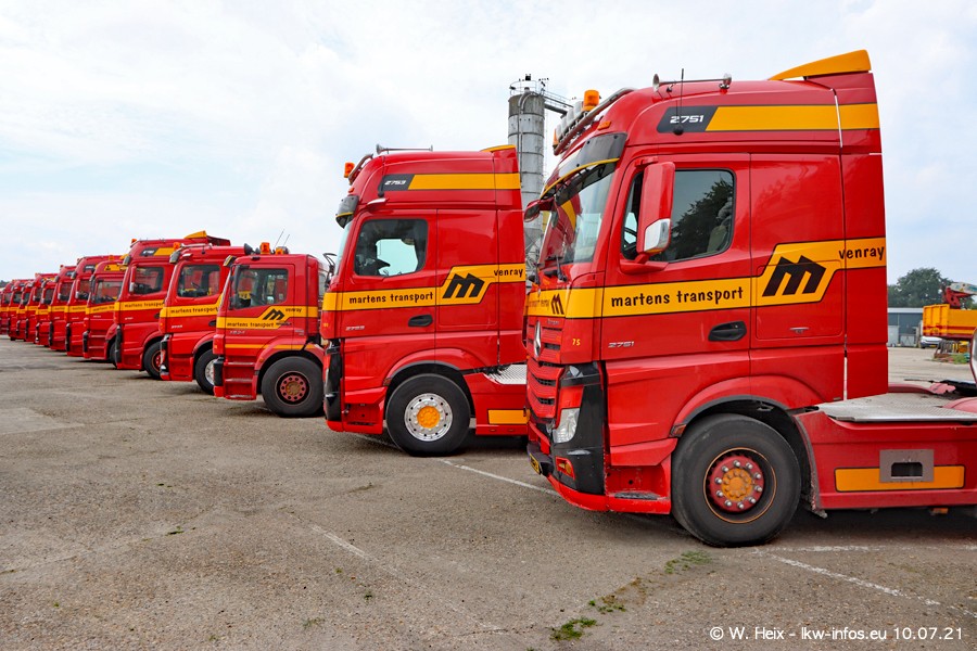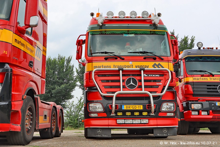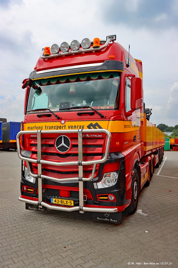 Nach dem winterlichen Besuch im Februar war ich diesmal bei schönem warmen Sommerwetter bei Martens Transport. Bis auf zwei LKW (einer unterwegs, einer in der Werkstatt) war alles zuhause. Neu ist ein weiterer Mercedes-Benz New Actros 4 (MP5) mit dem Kennezichen 49-BPR-7. Dieser kam kurz nach meinem Besuch im Februar. Das Fahrzeug wurde mit 2.000 gefahrenen Kilometern "gebraucht" gekauft und umlackiert. Der Actros, der im Januar neu war (81-BPX-6) hat nun eine kleine Pritsche erhalten und kann statt als LZV auch als Kran-LKW für kleinere Arbeiten eingesetzt werden. Dieser Umbau ist am Tag des Besuchs fertig geworden. Ansonsten ist alles bekannt, neue Fahrzeuge sind schon wieder bestellt .....