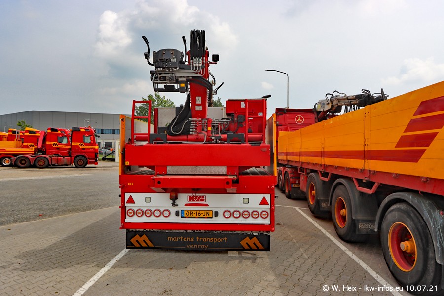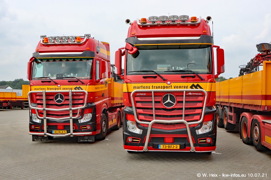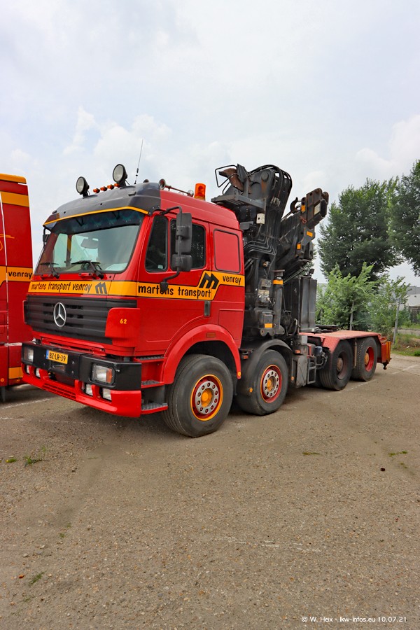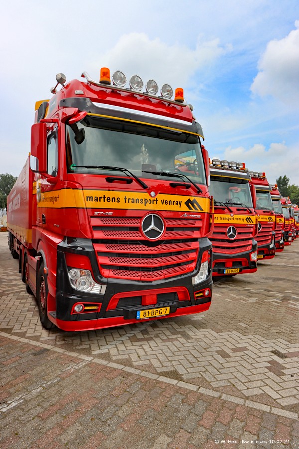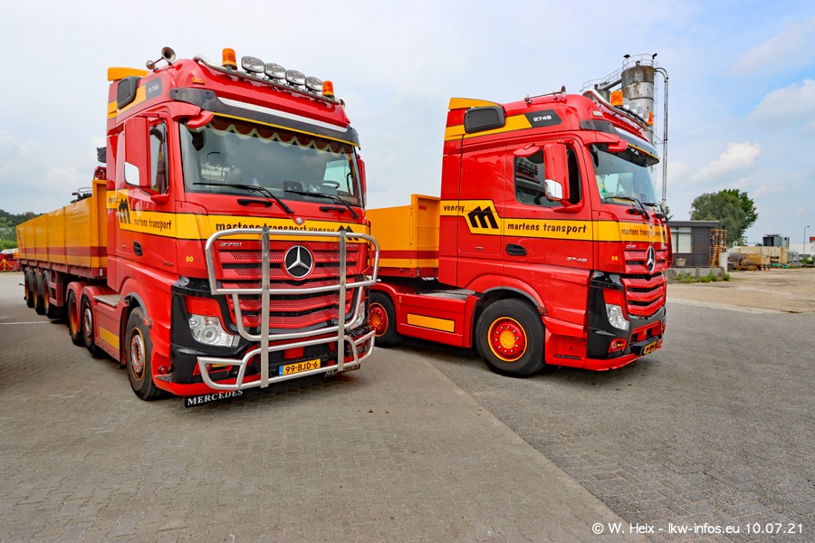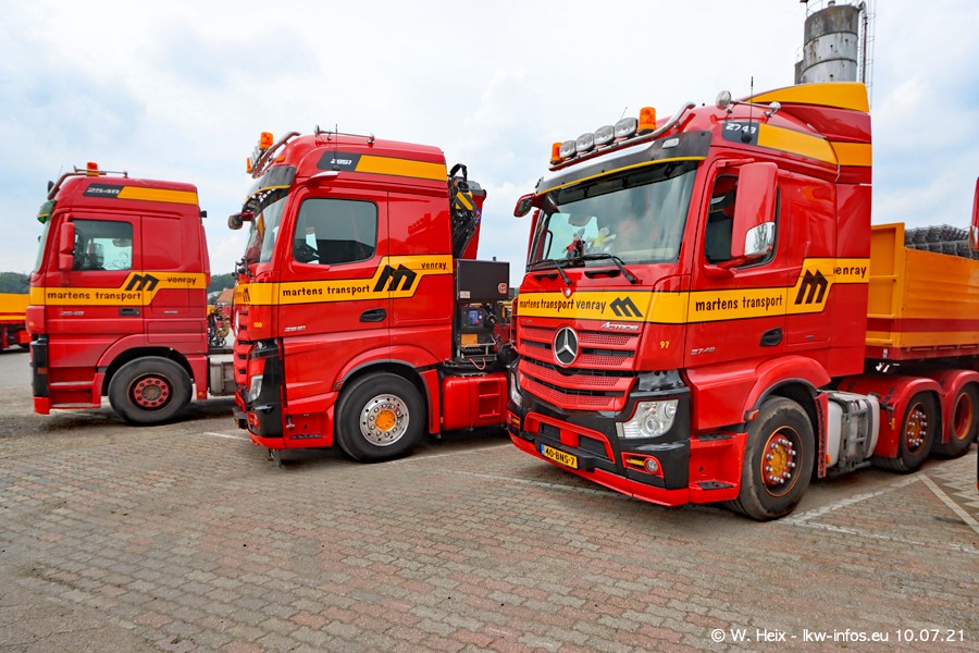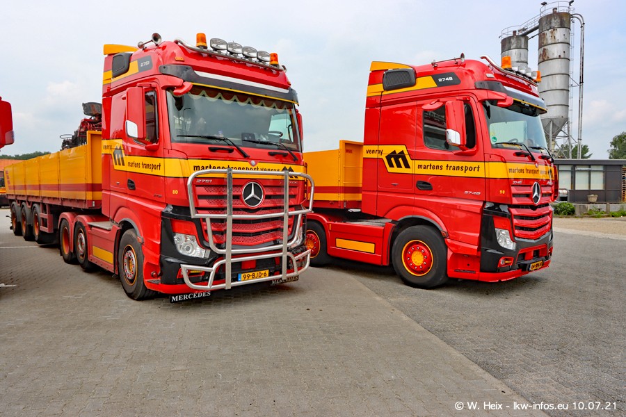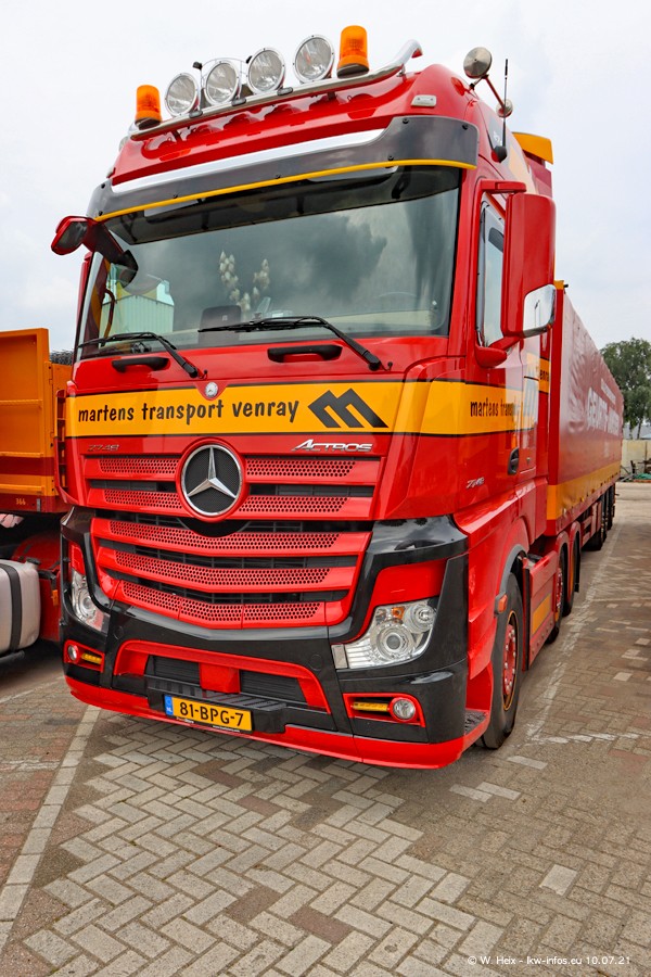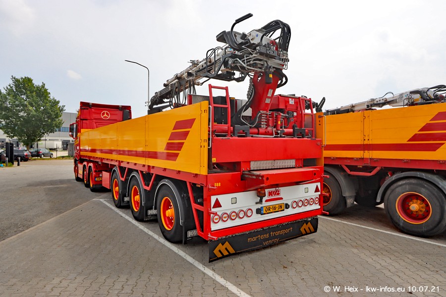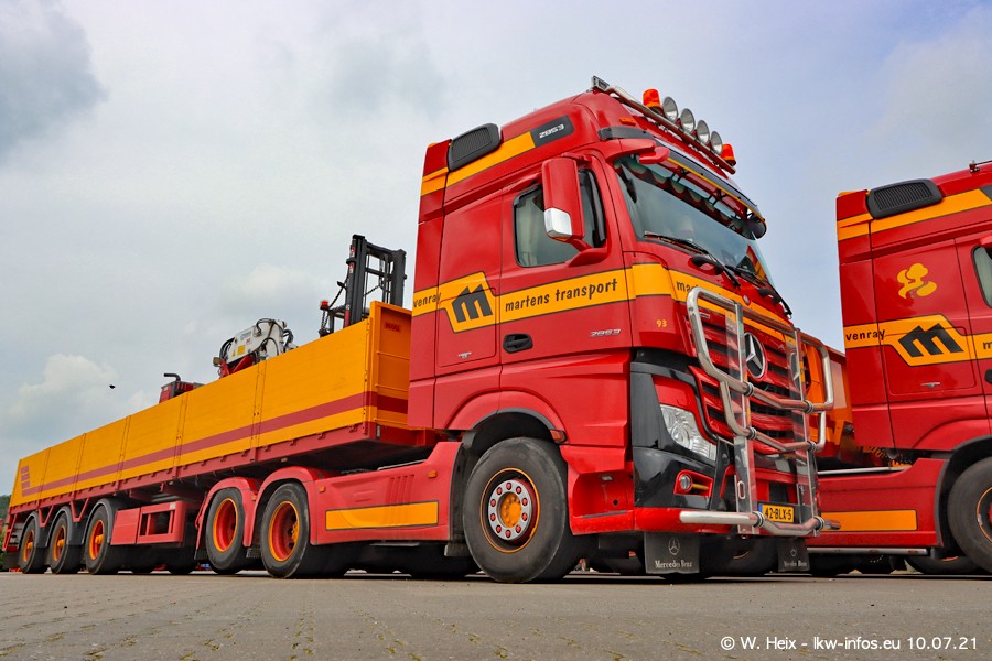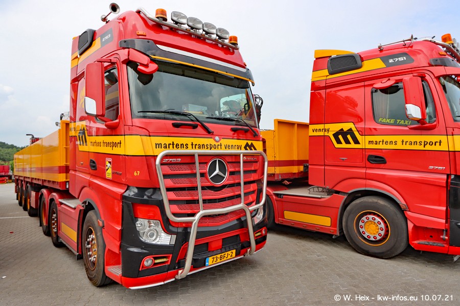 Nach dem winterlichen Besuch im Februar war ich diesmal bei schönem warmen Sommerwetter bei Martens Transport. Bis auf zwei LKW (einer unterwegs, einer in der Werkstatt) war alles zuhause. Neu ist ein weiterer Mercedes-Benz New Actros 4 (MP5) mit dem Kennezichen 49-BPR-7. Dieser kam kurz nach meinem Besuch im Februar. Das Fahrzeug wurde mit 2.000 gefahrenen Kilometern "gebraucht" gekauft und umlackiert. Der Actros, der im Januar neu war (81-BPX-6) hat nun eine kleine Pritsche erhalten und kann statt als LZV auch als Kran-LKW für kleinere Arbeiten eingesetzt werden. Dieser Umbau ist am Tag des Besuchs fertig geworden. Ansonsten ist alles bekannt, neue Fahrzeuge sind schon wieder bestellt .....