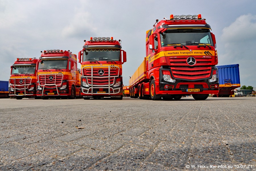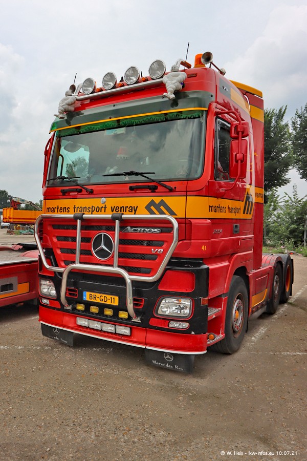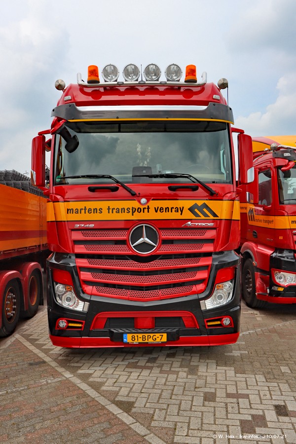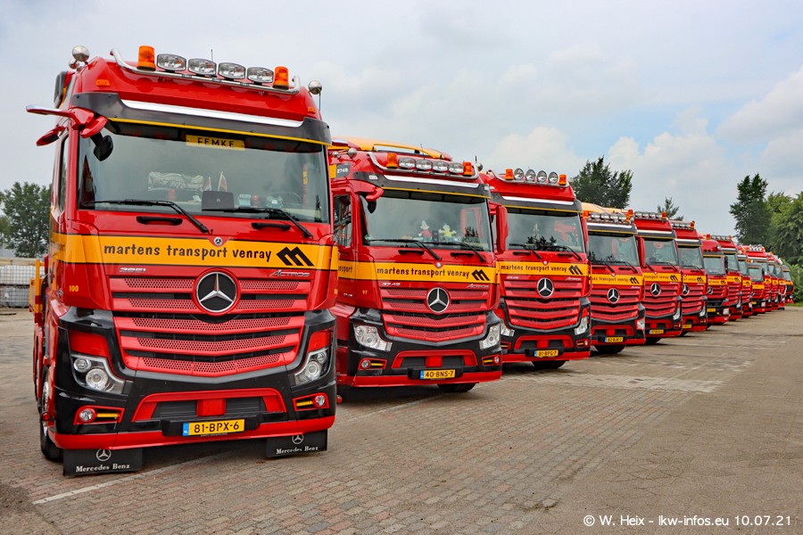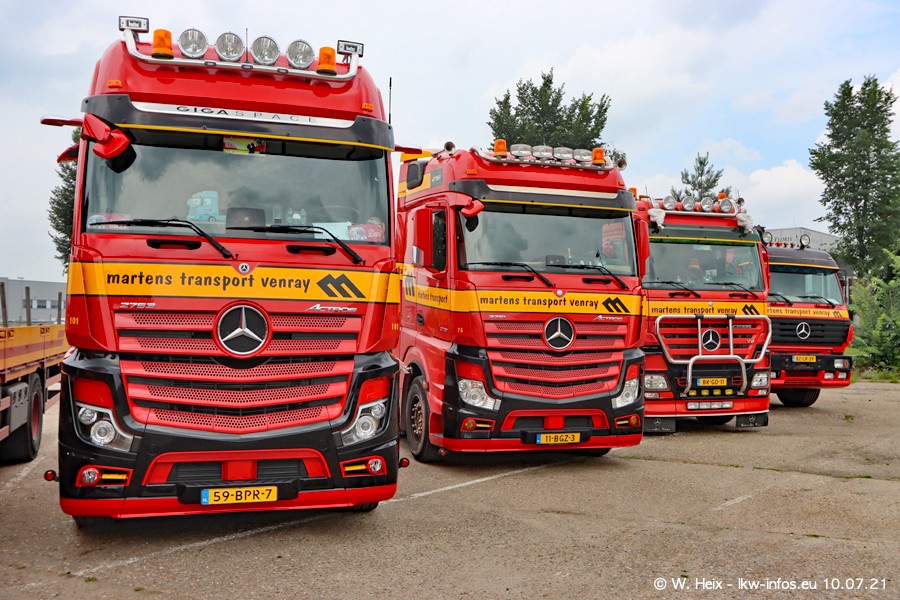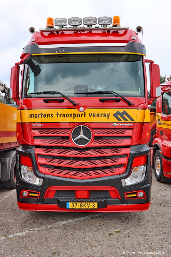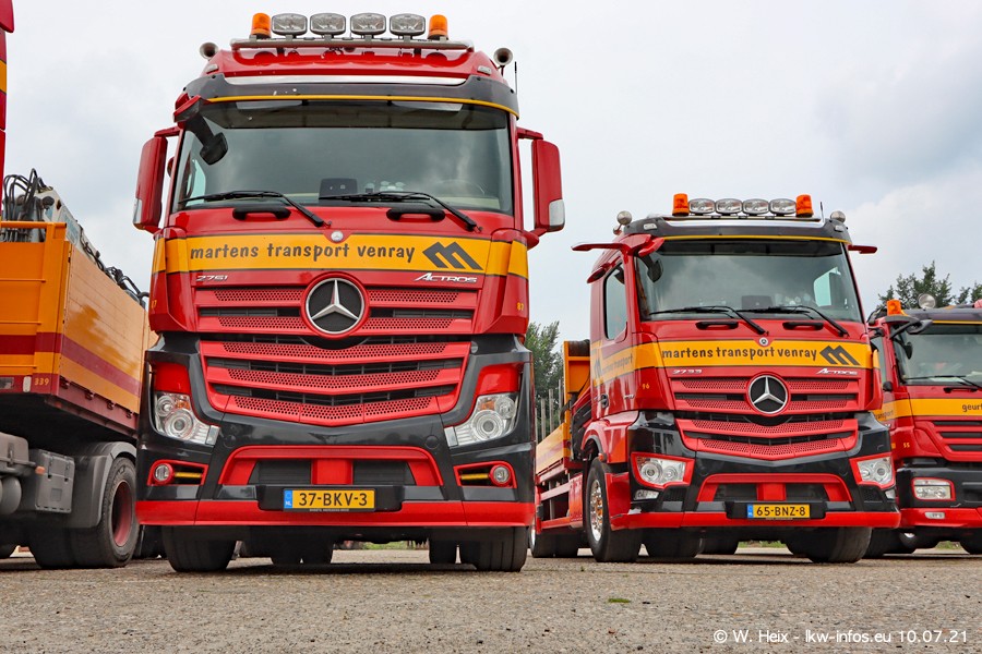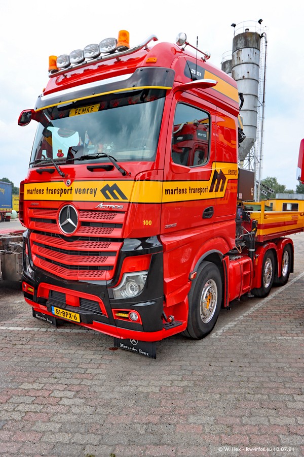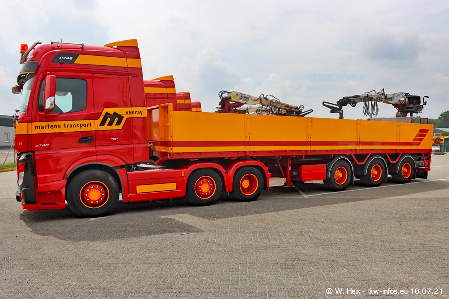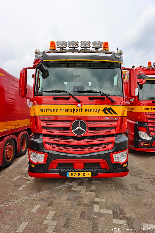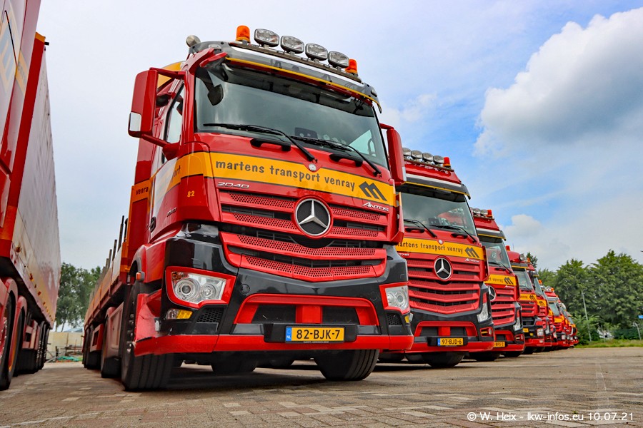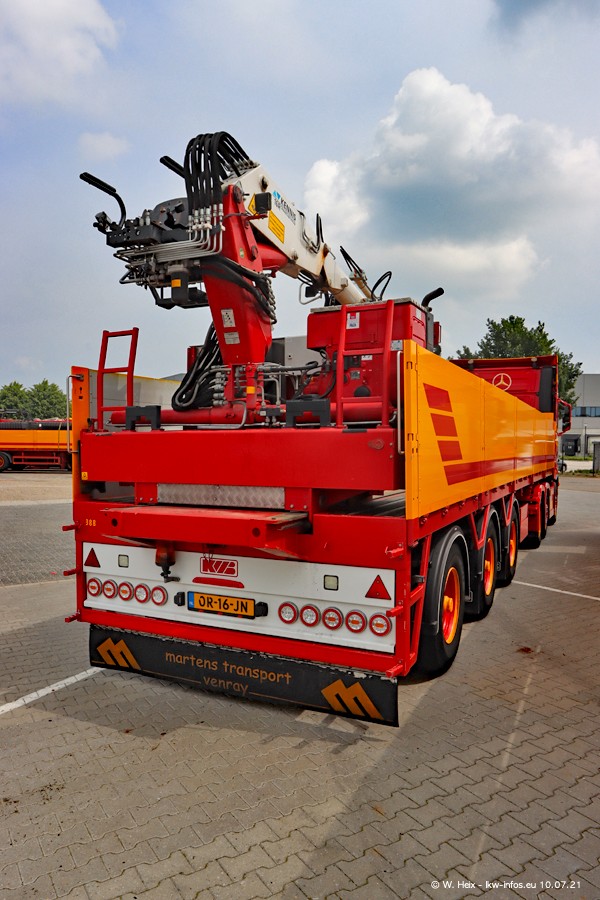 Nach dem winterlichen Besuch im Februar war ich diesmal bei schönem warmen Sommerwetter bei Martens Transport. Bis auf zwei LKW (einer unterwegs, einer in der Werkstatt) war alles zuhause. Neu ist ein weiterer Mercedes-Benz New Actros 4 (MP5) mit dem Kennezichen 49-BPR-7. Dieser kam kurz nach meinem Besuch im Februar. Das Fahrzeug wurde mit 2.000 gefahrenen Kilometern "gebraucht" gekauft und umlackiert. Der Actros, der im Januar neu war (81-BPX-6) hat nun eine kleine Pritsche erhalten und kann statt als LZV auch als Kran-LKW für kleinere Arbeiten eingesetzt werden. Dieser Umbau ist am Tag des Besuchs fertig geworden. Ansonsten ist alles bekannt, neue Fahrzeuge sind schon wieder bestellt .....