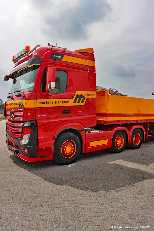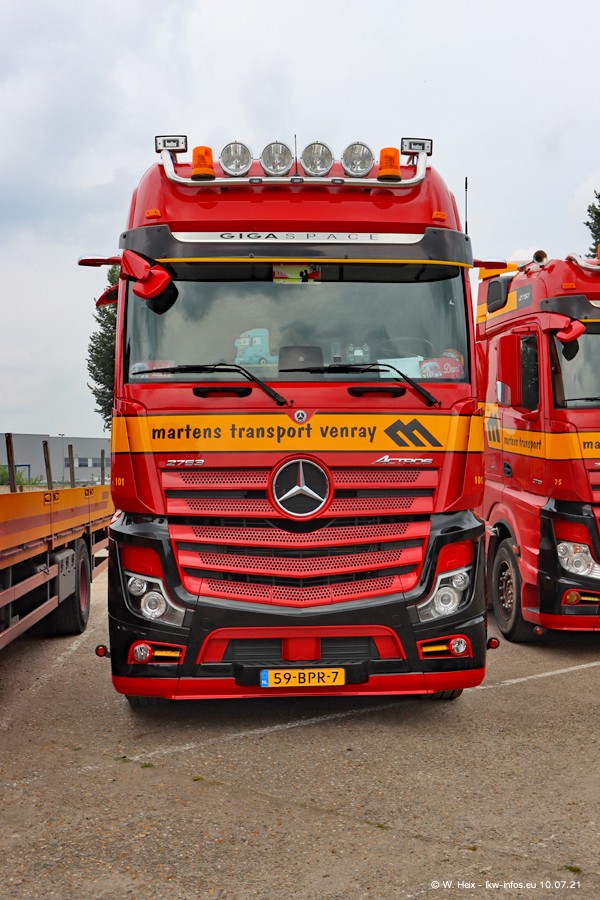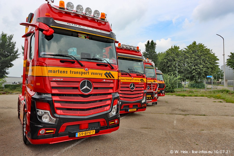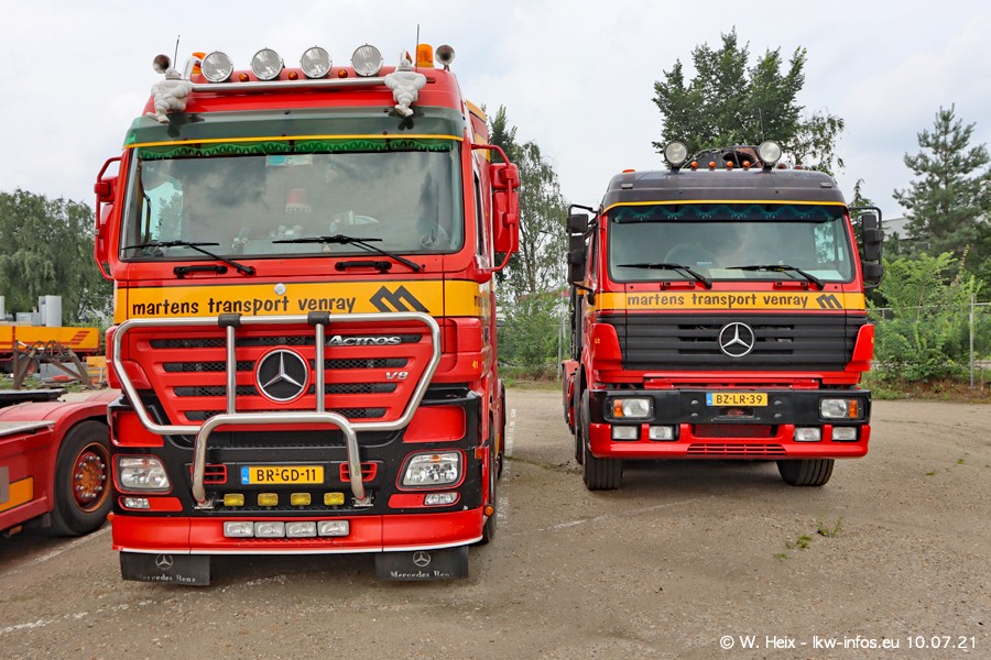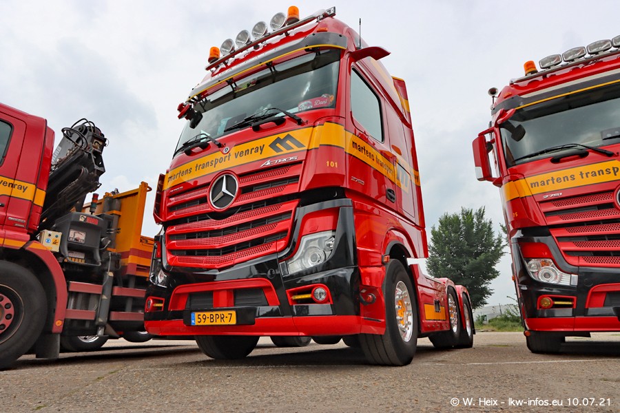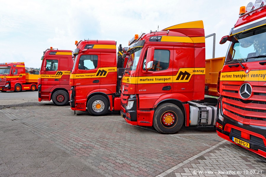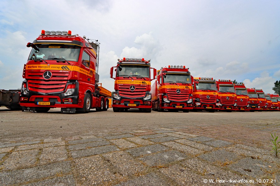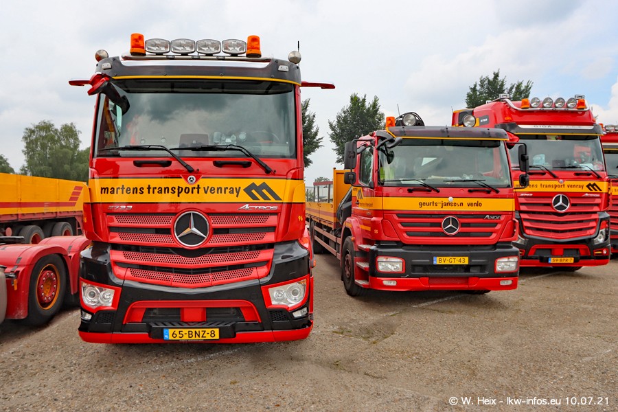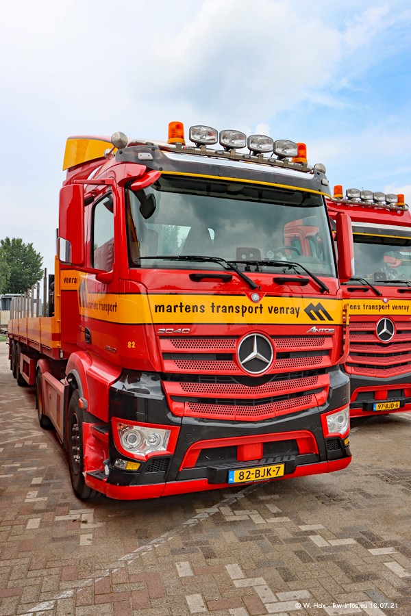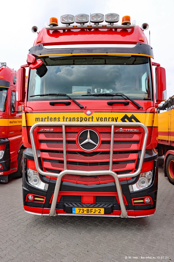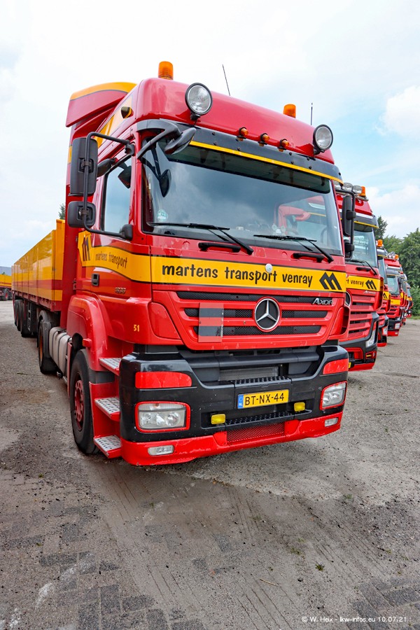 Nach dem winterlichen Besuch im Februar war ich diesmal bei schönem warmen Sommerwetter bei Martens Transport. Bis auf zwei LKW (einer unterwegs, einer in der Werkstatt) war alles zuhause. Neu ist ein weiterer Mercedes-Benz New Actros 4 (MP5) mit dem Kennezichen 49-BPR-7. Dieser kam kurz nach meinem Besuch im Februar. Das Fahrzeug wurde mit 2.000 gefahrenen Kilometern "gebraucht" gekauft und umlackiert. Der Actros, der im Januar neu war (81-BPX-6) hat nun eine kleine Pritsche erhalten und kann statt als LZV auch als Kran-LKW für kleinere Arbeiten eingesetzt werden. Dieser Umbau ist am Tag des Besuchs fertig geworden. Ansonsten ist alles bekannt, neue Fahrzeuge sind schon wieder bestellt .....