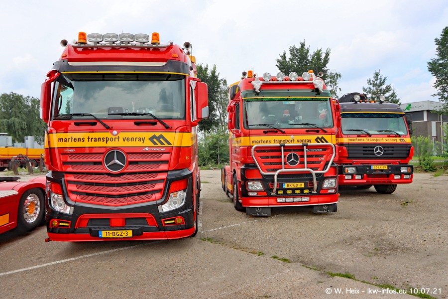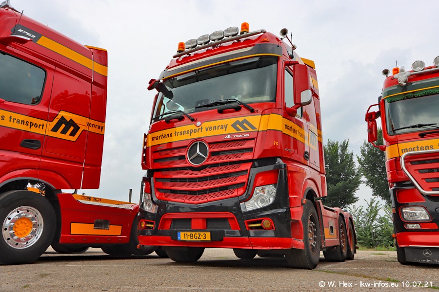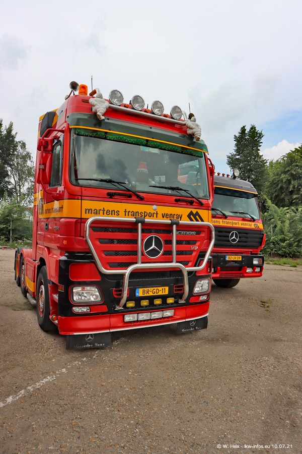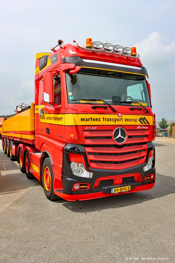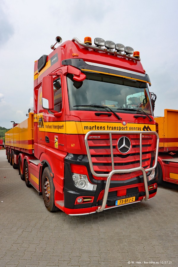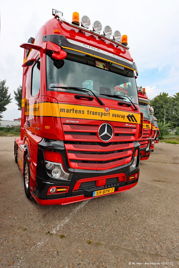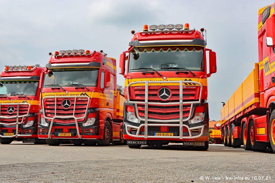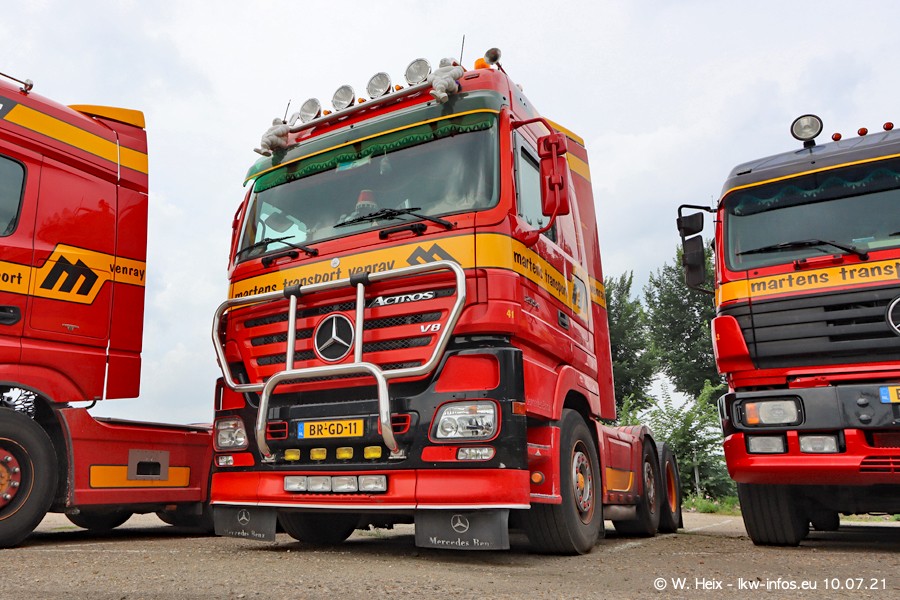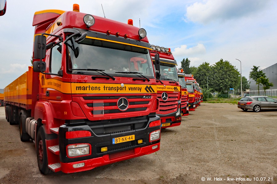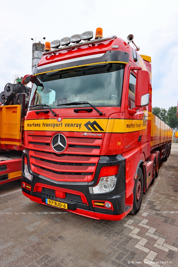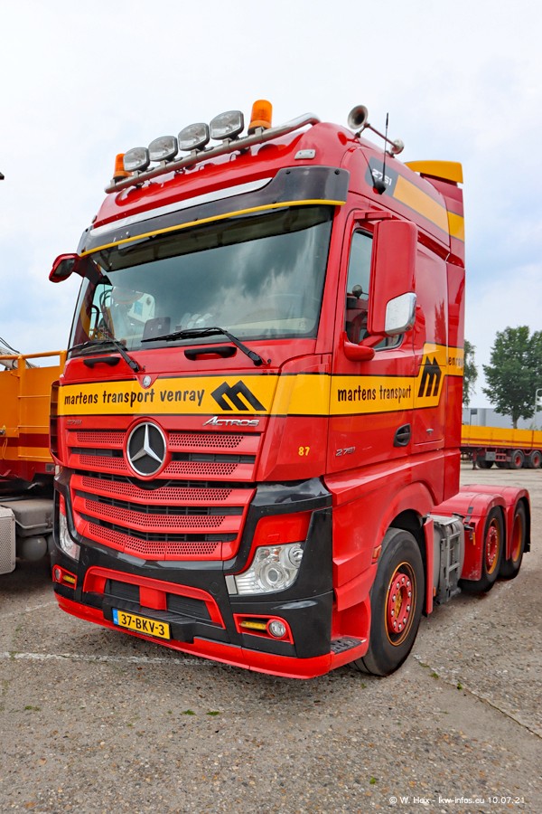 Nach dem winterlichen Besuch im Februar war ich diesmal bei schönem warmen Sommerwetter bei Martens Transport. Bis auf zwei LKW (einer unterwegs, einer in der Werkstatt) war alles zuhause. Neu ist ein weiterer Mercedes-Benz New Actros 4 (MP5) mit dem Kennezichen 49-BPR-7. Dieser kam kurz nach meinem Besuch im Februar. Das Fahrzeug wurde mit 2.000 gefahrenen Kilometern "gebraucht" gekauft und umlackiert. Der Actros, der im Januar neu war (81-BPX-6) hat nun eine kleine Pritsche erhalten und kann statt als LZV auch als Kran-LKW für kleinere Arbeiten eingesetzt werden. Dieser Umbau ist am Tag des Besuchs fertig geworden. Ansonsten ist alles bekannt, neue Fahrzeuge sind schon wieder bestellt .....