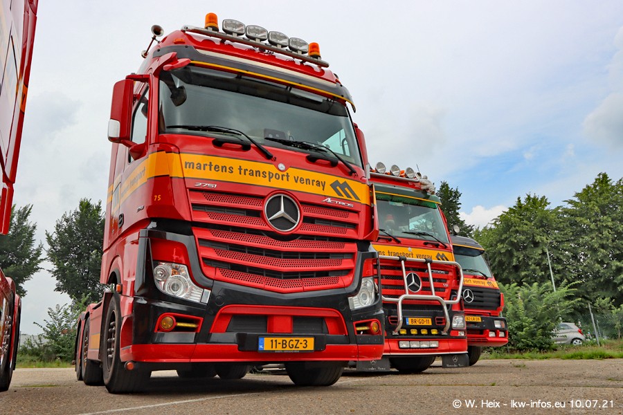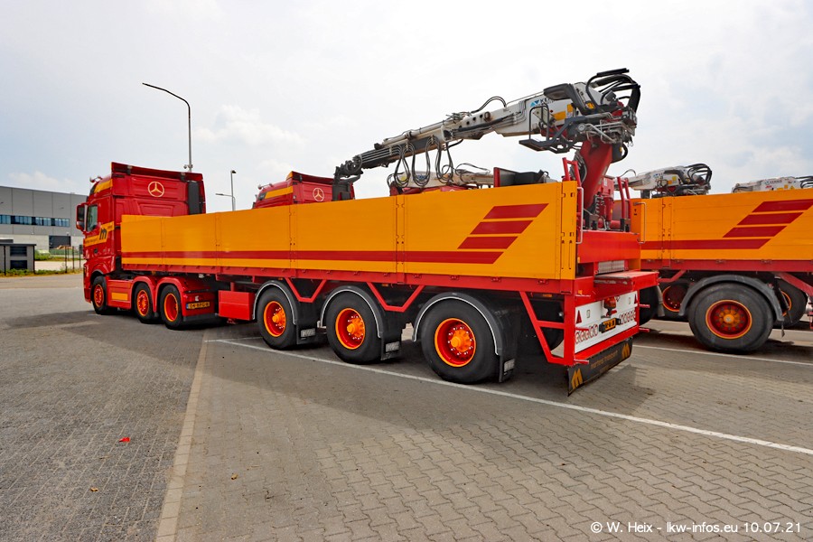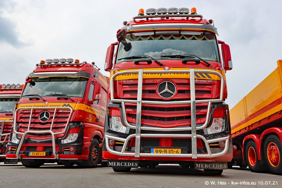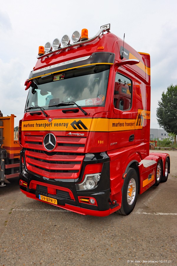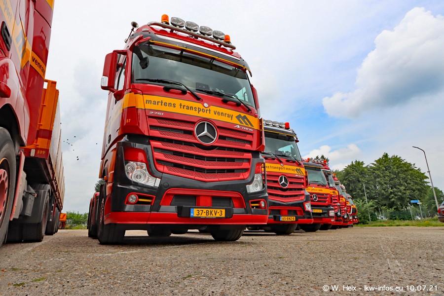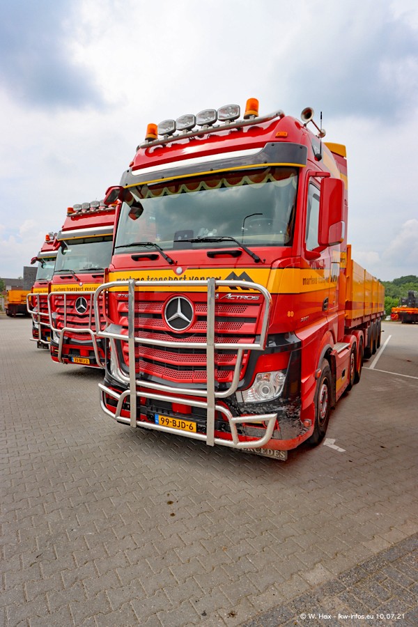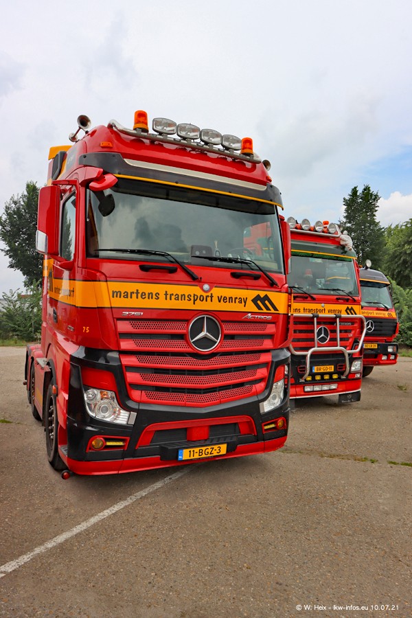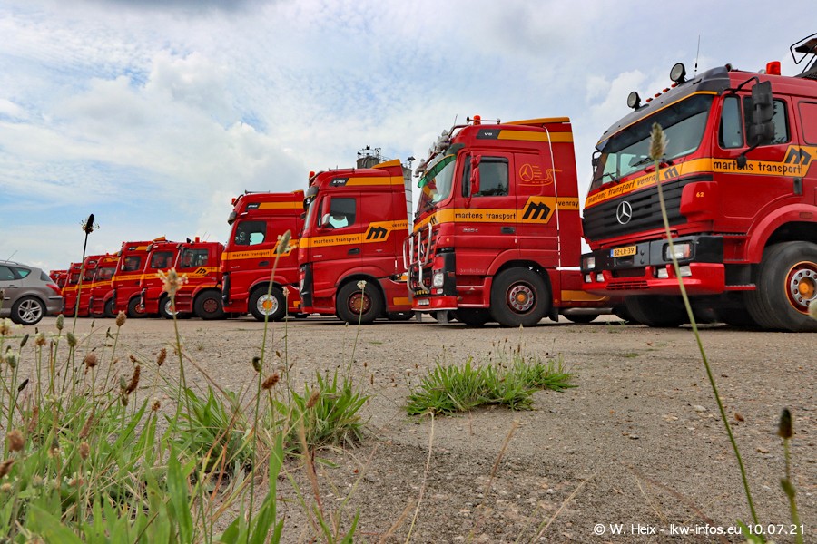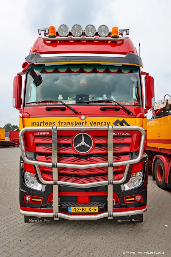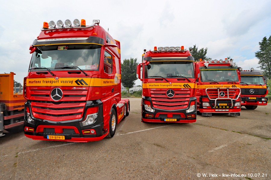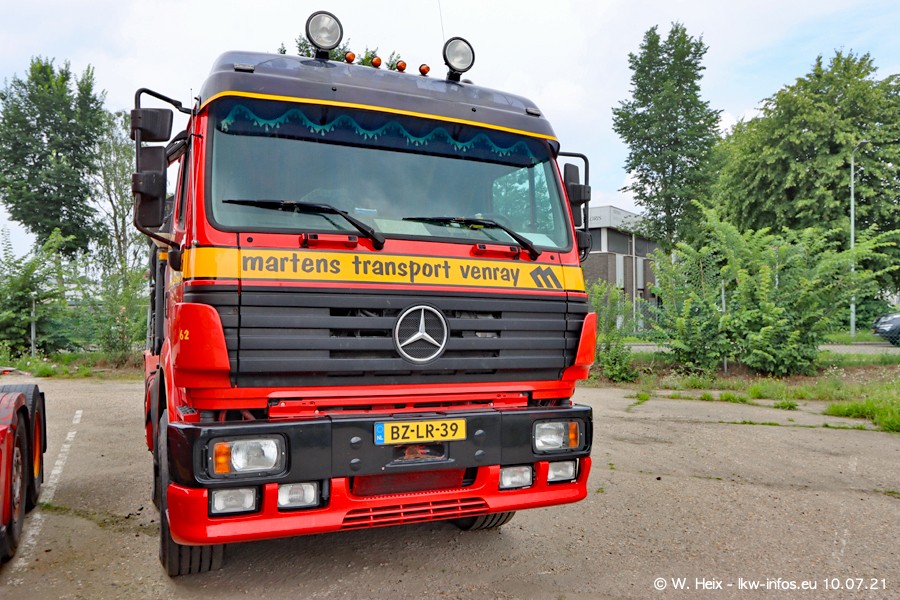 Nach dem winterlichen Besuch im Februar war ich diesmal bei schönem warmen Sommerwetter bei Martens Transport. Bis auf zwei LKW (einer unterwegs, einer in der Werkstatt) war alles zuhause. Neu ist ein weiterer Mercedes-Benz New Actros 4 (MP5) mit dem Kennezichen 49-BPR-7. Dieser kam kurz nach meinem Besuch im Februar. Das Fahrzeug wurde mit 2.000 gefahrenen Kilometern "gebraucht" gekauft und umlackiert. Der Actros, der im Januar neu war (81-BPX-6) hat nun eine kleine Pritsche erhalten und kann statt als LZV auch als Kran-LKW für kleinere Arbeiten eingesetzt werden. Dieser Umbau ist am Tag des Besuchs fertig geworden. Ansonsten ist alles bekannt, neue Fahrzeuge sind schon wieder bestellt .....