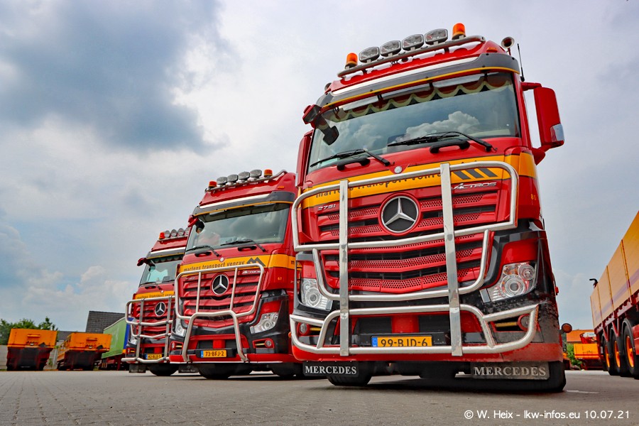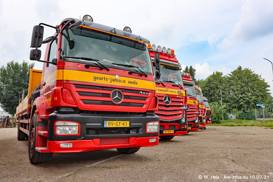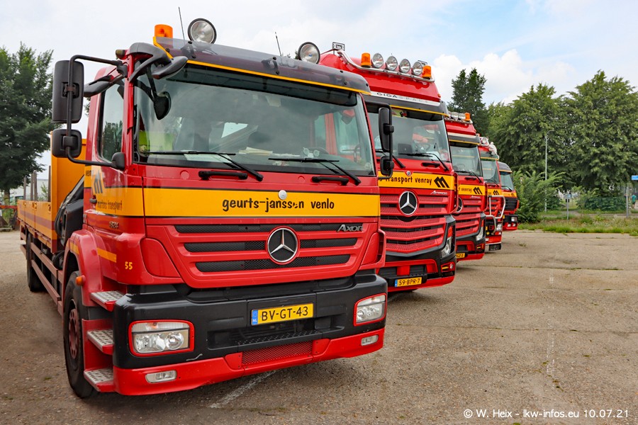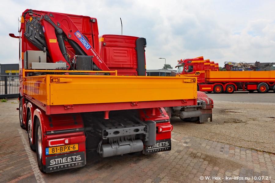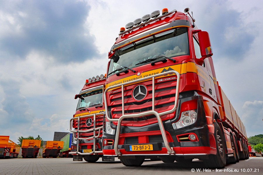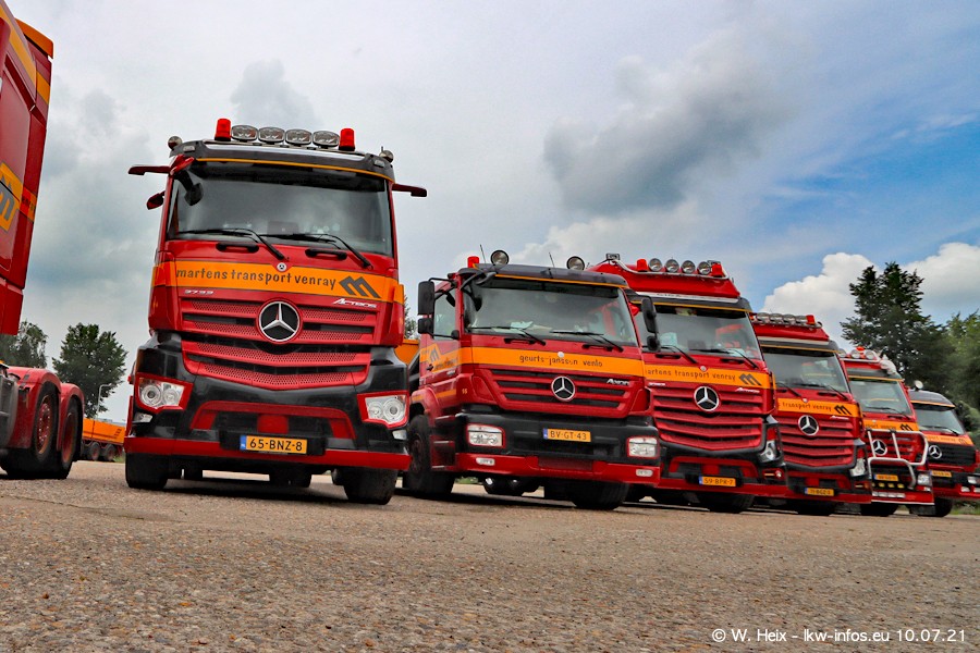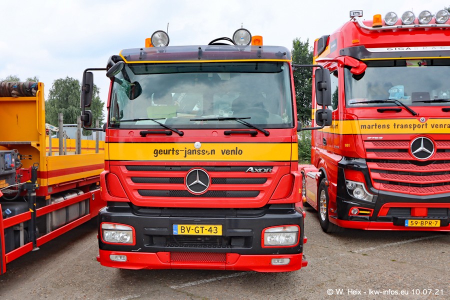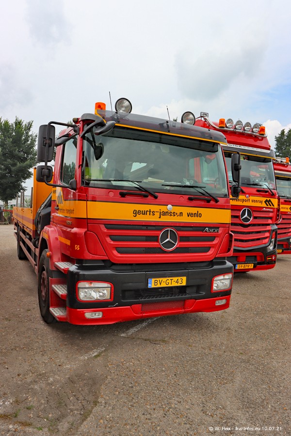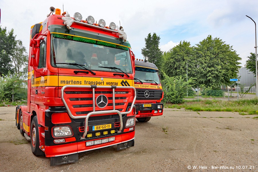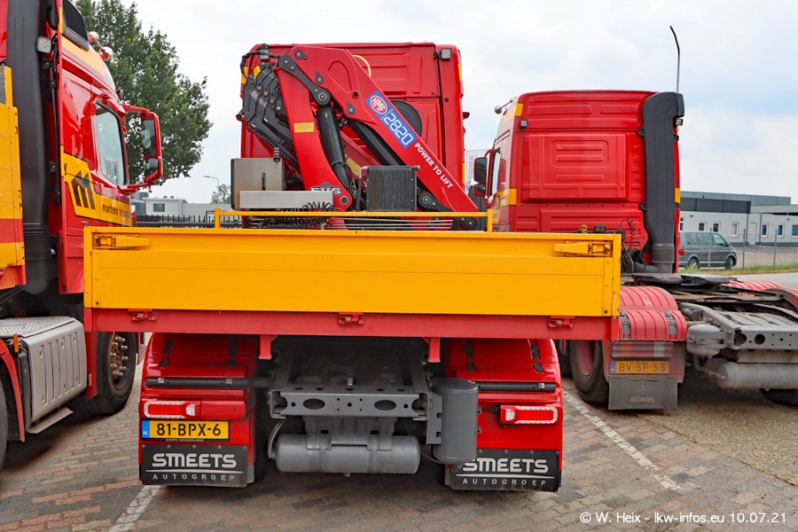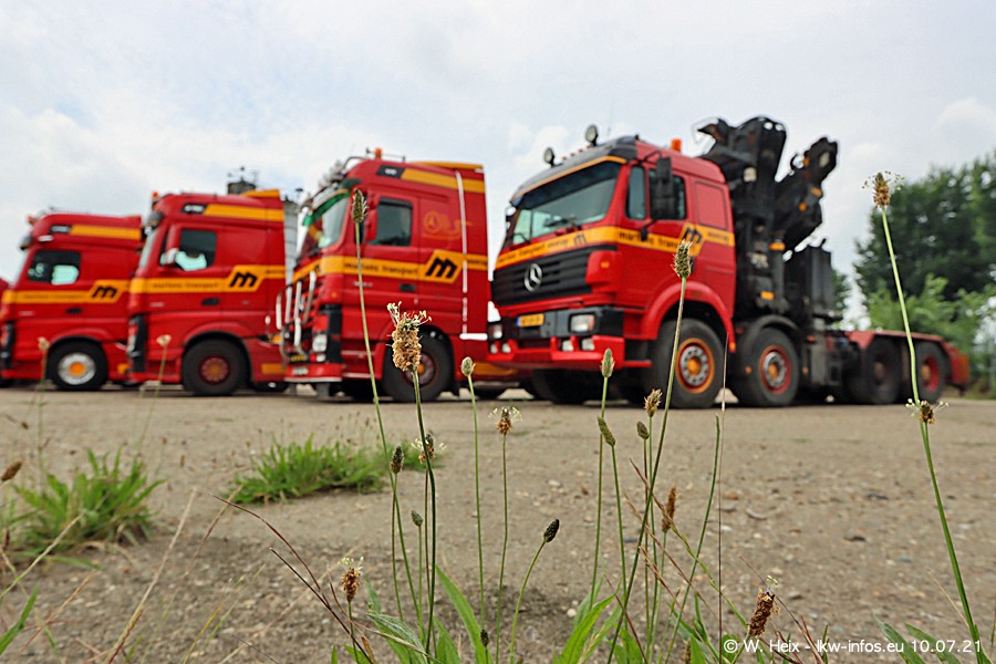 Nach dem winterlichen Besuch im Februar war ich diesmal bei schönem warmen Sommerwetter bei Martens Transport. Bis auf zwei LKW (einer unterwegs, einer in der Werkstatt) war alles zuhause. Neu ist ein weiterer Mercedes-Benz New Actros 4 (MP5) mit dem Kennezichen 49-BPR-7. Dieser kam kurz nach meinem Besuch im Februar. Das Fahrzeug wurde mit 2.000 gefahrenen Kilometern "gebraucht" gekauft und umlackiert. Der Actros, der im Januar neu war (81-BPX-6) hat nun eine kleine Pritsche erhalten und kann statt als LZV auch als Kran-LKW für kleinere Arbeiten eingesetzt werden. Dieser Umbau ist am Tag des Besuchs fertig geworden. Ansonsten ist alles bekannt, neue Fahrzeuge sind schon wieder bestellt .....