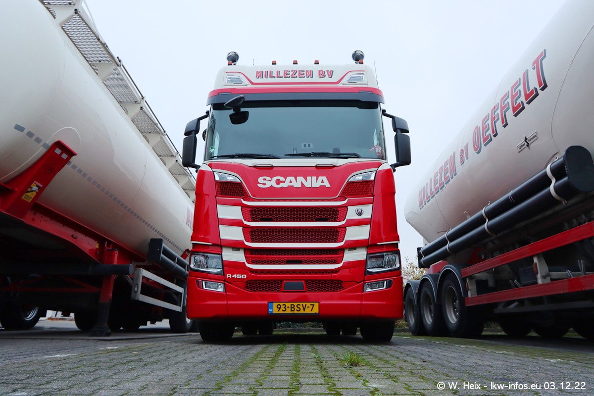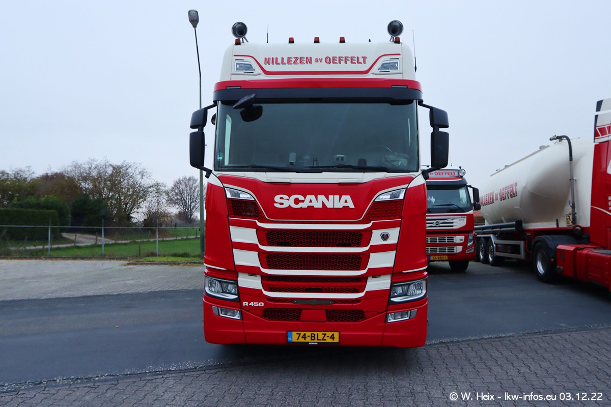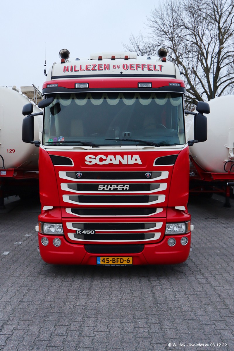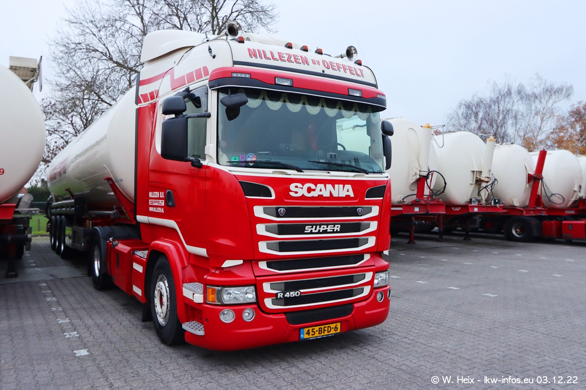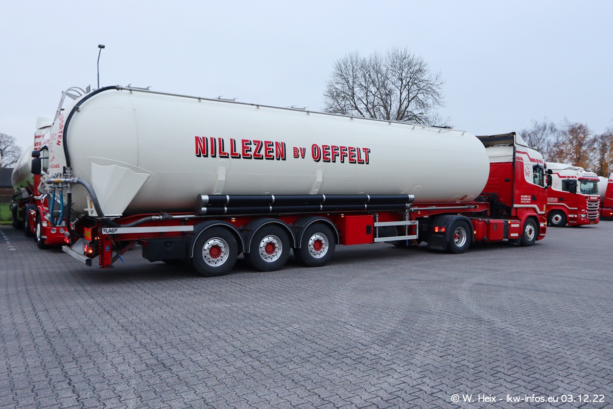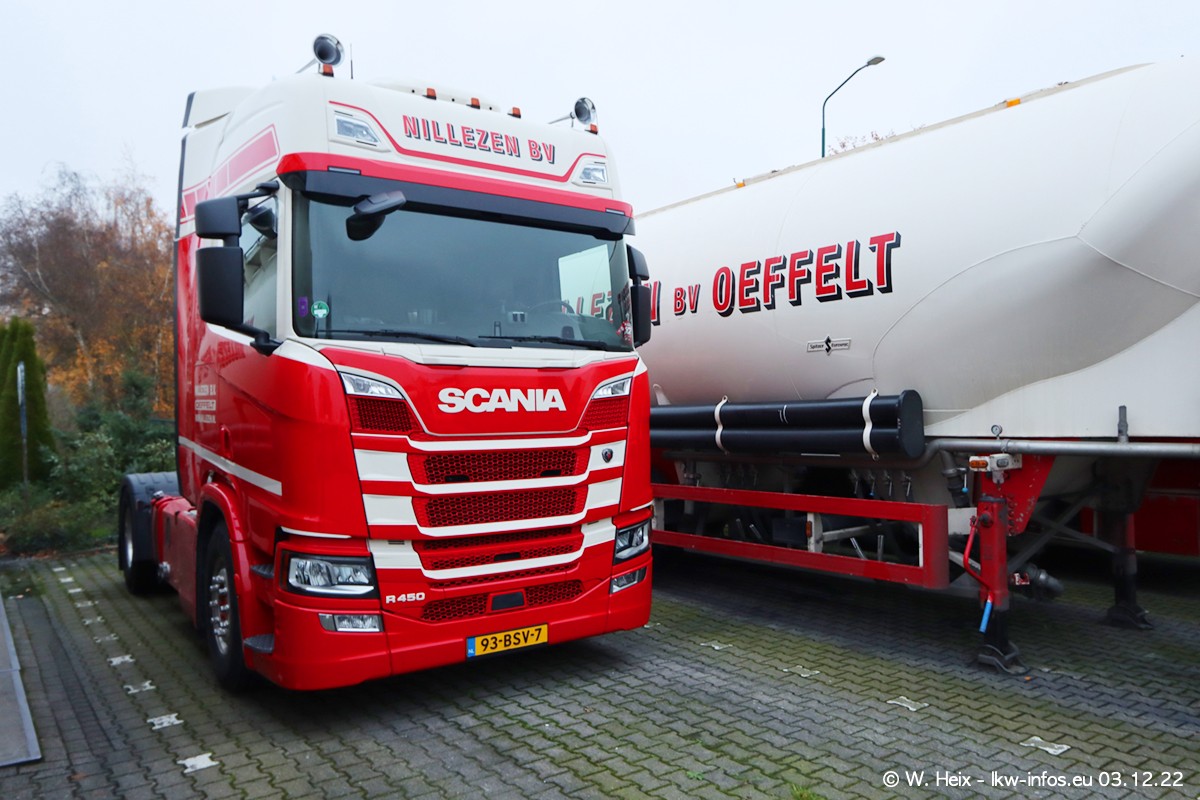 Nillezen bekomnt in den nächsten Wochen/Monaten insgesamt sieben neue SCANIA R 450 NextGen. Den ersten konnte ich bereits beim letzten Besuch fotografieren. Dazu kommen zehn neue Siloauflieger von Feldbinder. Den ersten konnte ich heute fotografieren. Alle neuen Auflieger werden an der neuen Beschriftung zu erkennen sein. Das Design ist leicht geändert, der Ortsname" Oeffelt" entfällt. Anfang nächten Jahres werde ich sicher mehr von den neuen Fahrzeugen fotografireren.