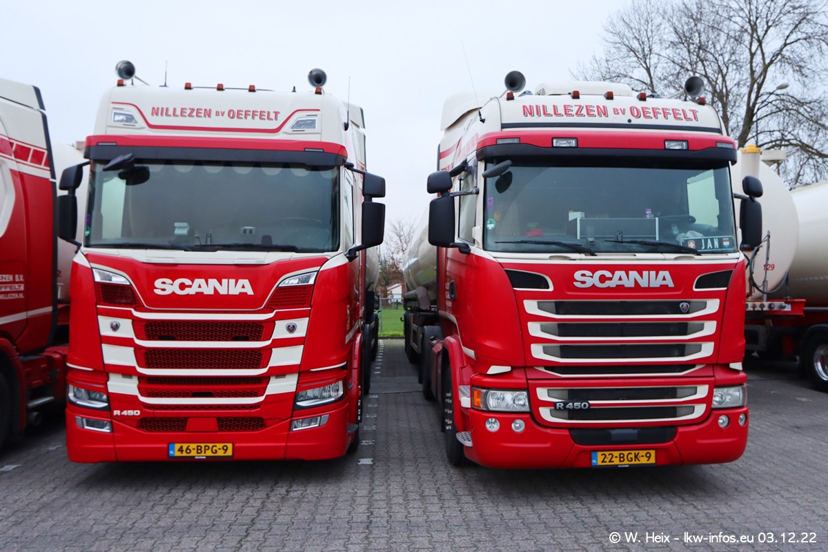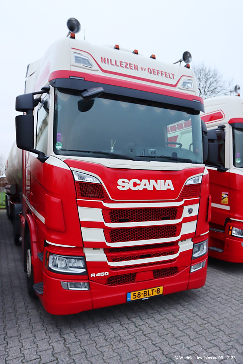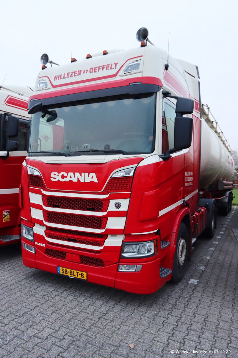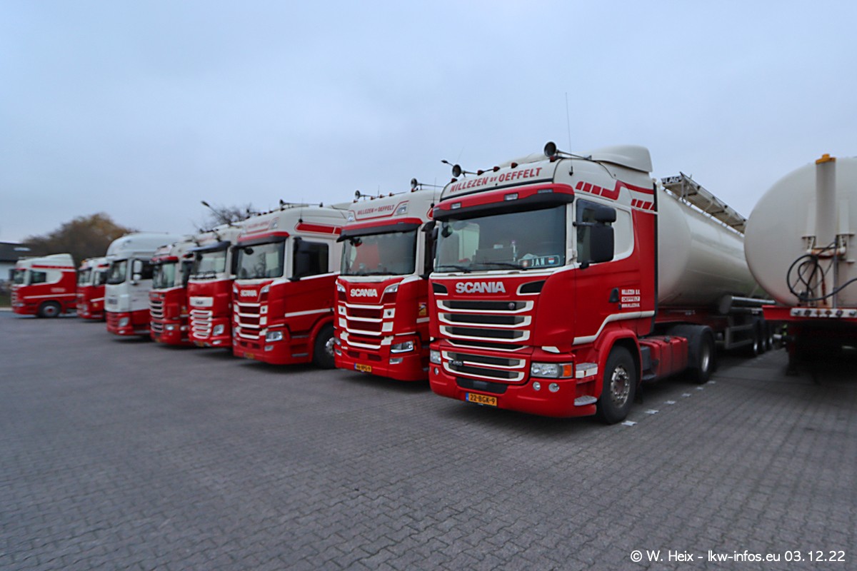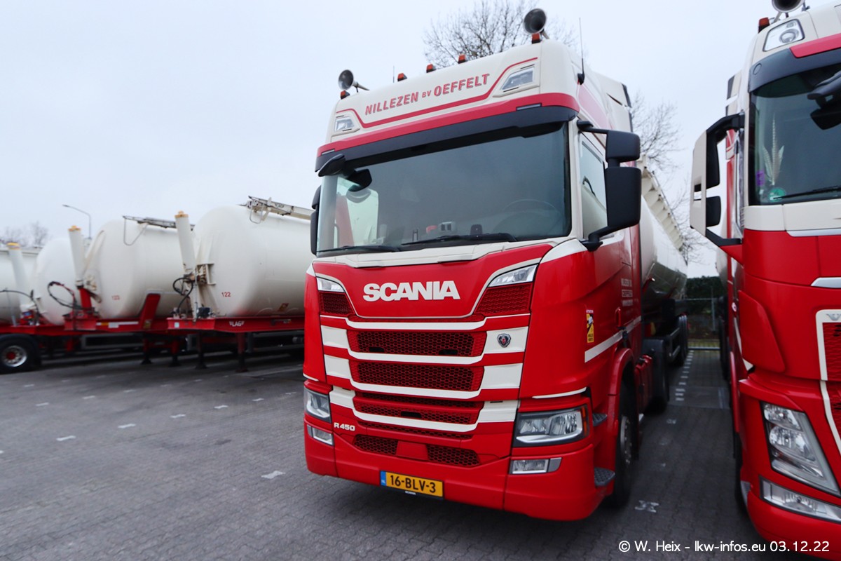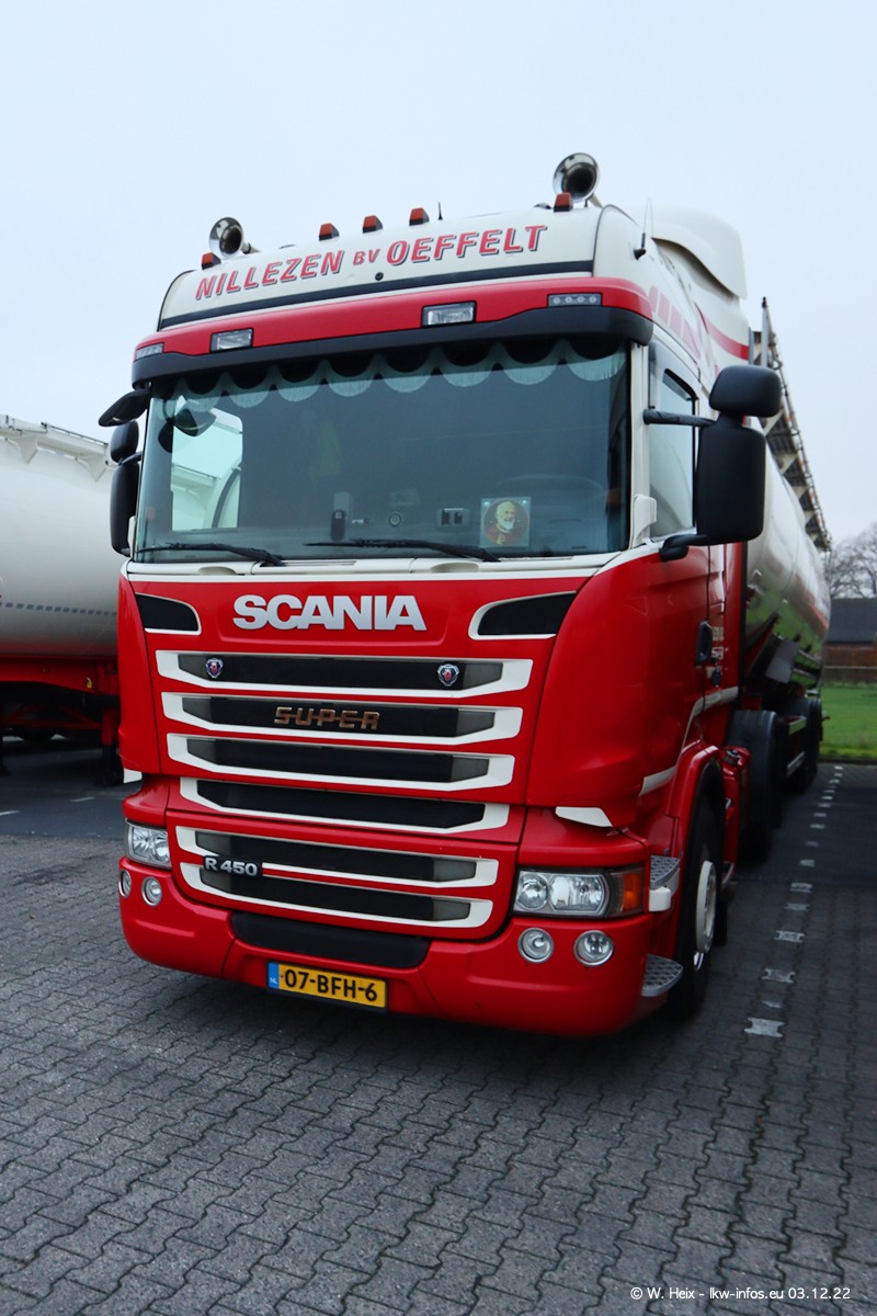 Nillezen bekomnt in den nächsten Wochen/Monaten insgesamt sieben neue SCANIA R 450 NextGen. Den ersten konnte ich bereits beim letzten Besuch fotografieren. Dazu kommen zehn neue Siloauflieger von Feldbinder. Den ersten konnte ich heute fotografieren. Alle neuen Auflieger werden an der neuen Beschriftung zu erkennen sein. Das Design ist leicht geändert, der Ortsname" Oeffelt" entfällt. Anfang nächten Jahres werde ich sicher mehr von den neuen Fahrzeugen fotografireren.