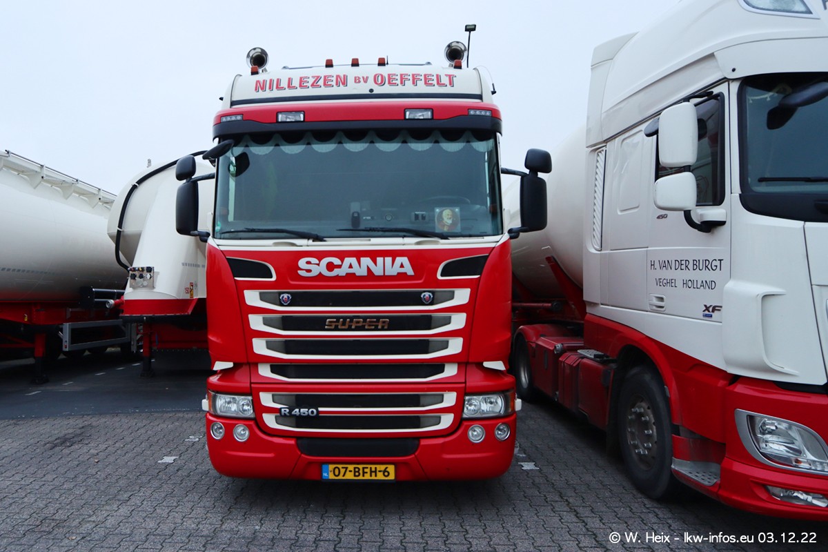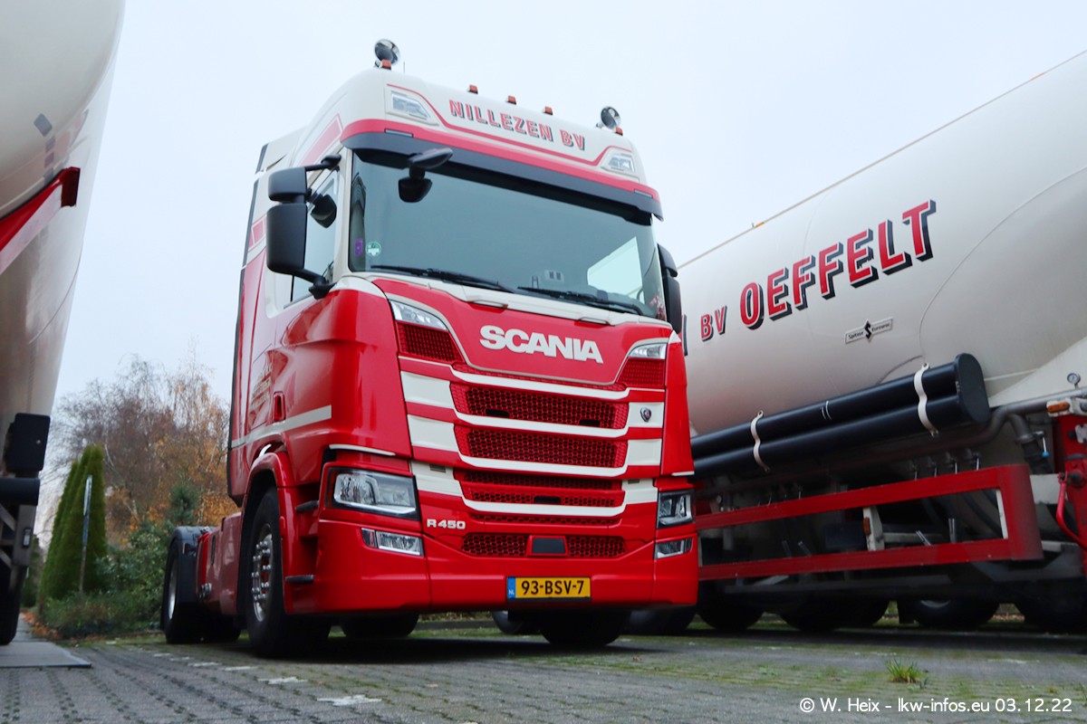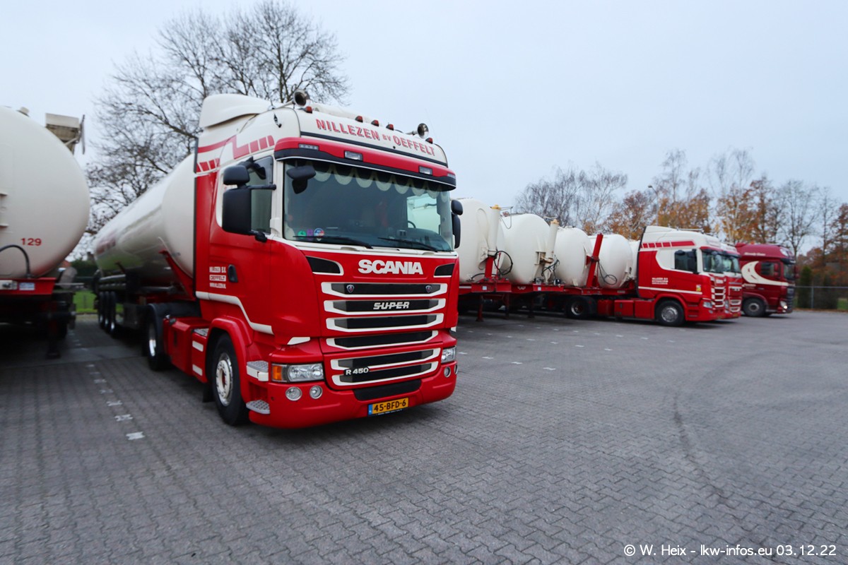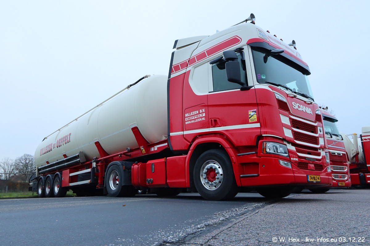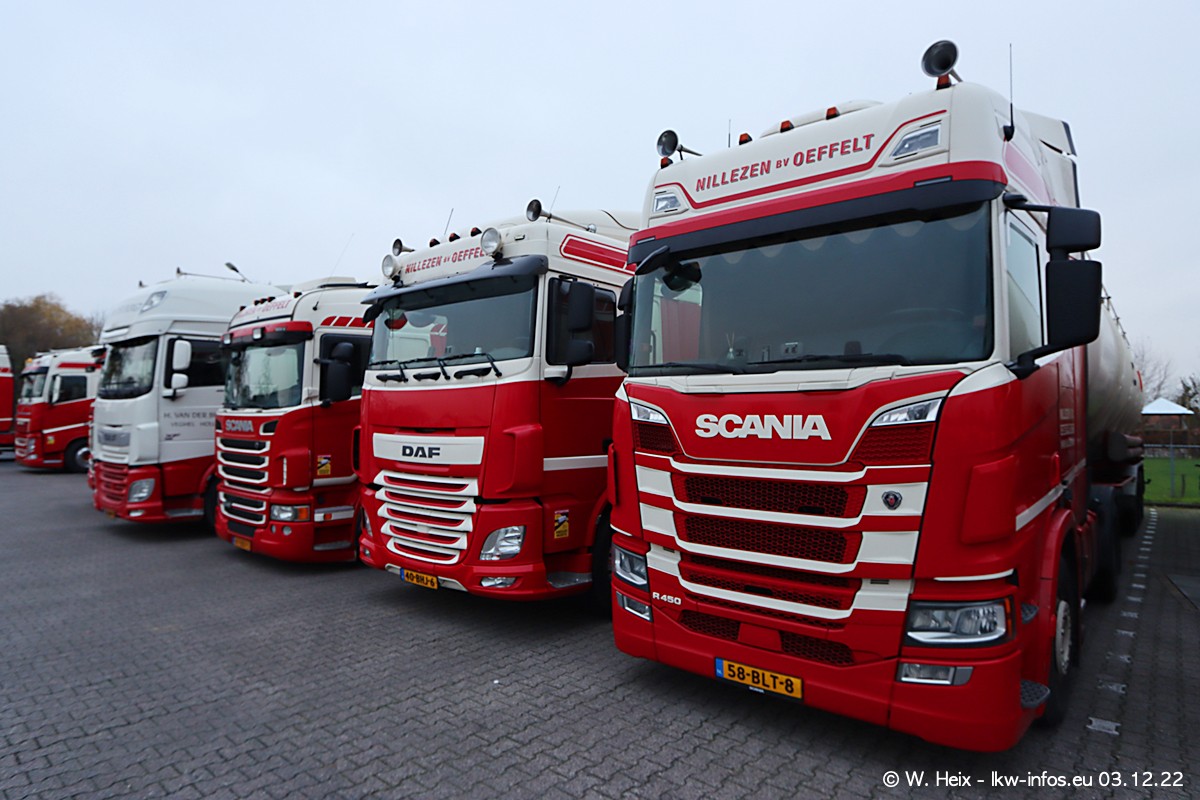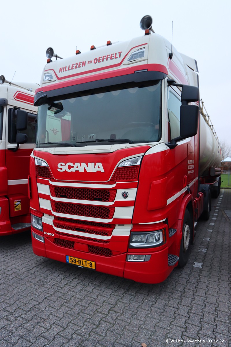 Nillezen bekomnt in den nächsten Wochen/Monaten insgesamt sieben neue SCANIA R 450 NextGen. Den ersten konnte ich bereits beim letzten Besuch fotografieren. Dazu kommen zehn neue Siloauflieger von Feldbinder. Den ersten konnte ich heute fotografieren. Alle neuen Auflieger werden an der neuen Beschriftung zu erkennen sein. Das Design ist leicht geändert, der Ortsname" Oeffelt" entfällt. Anfang nächten Jahres werde ich sicher mehr von den neuen Fahrzeugen fotografireren.