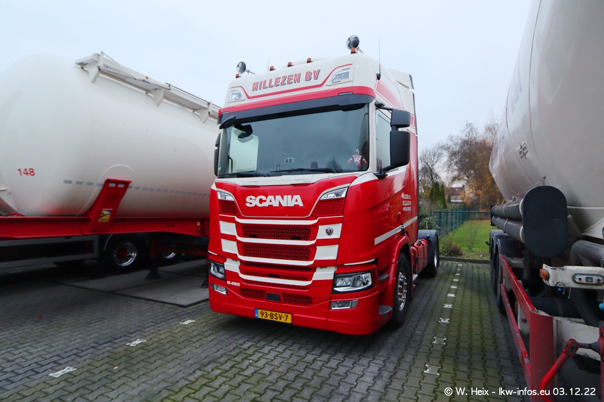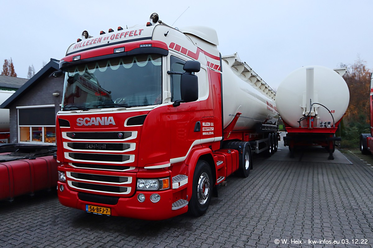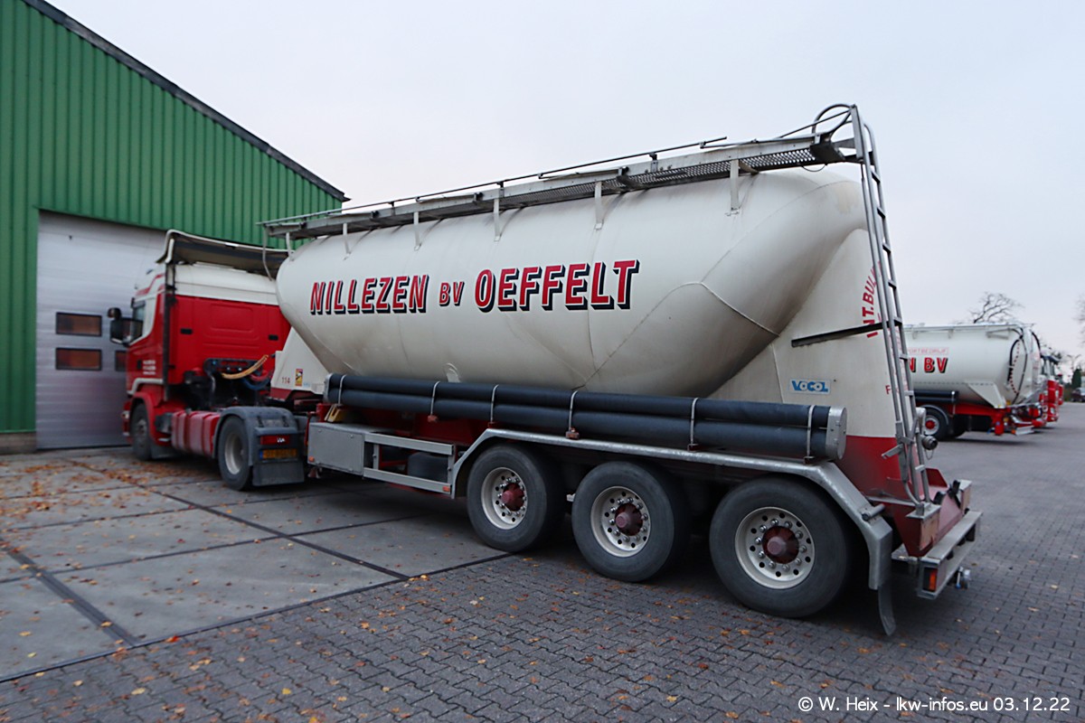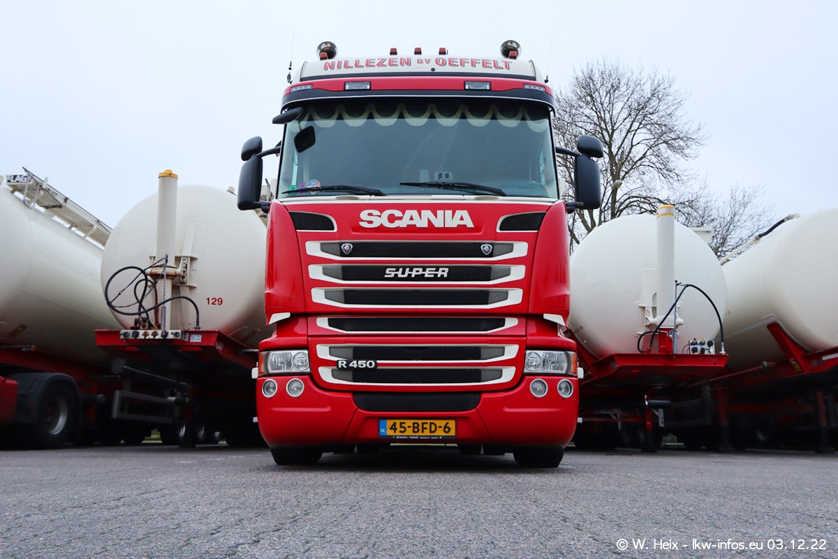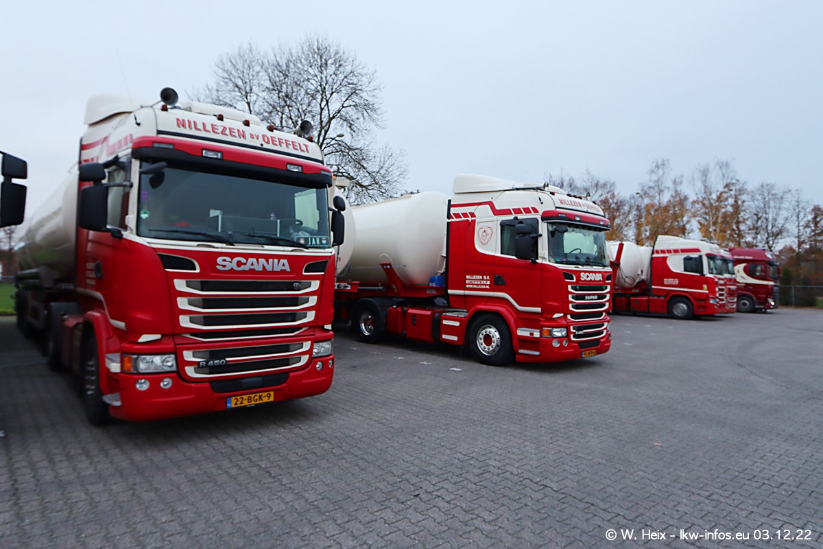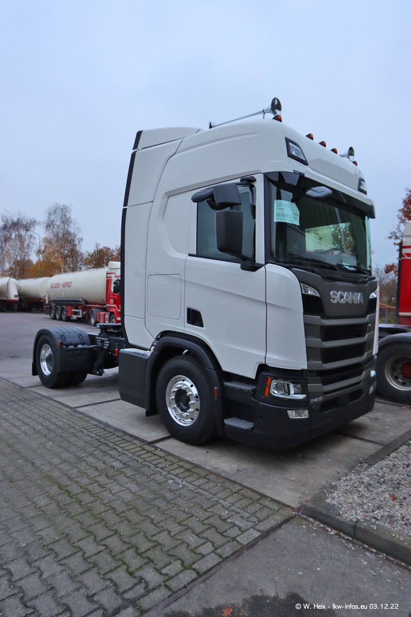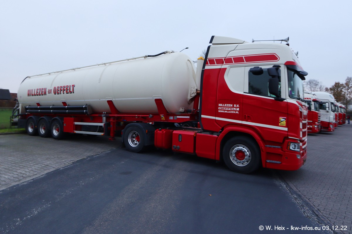 Nillezen bekomnt in den nächsten Wochen/Monaten insgesamt sieben neue SCANIA R 450 NextGen. Den ersten konnte ich bereits beim letzten Besuch fotografieren. Dazu kommen zehn neue Siloauflieger von Feldbinder. Den ersten konnte ich heute fotografieren. Alle neuen Auflieger werden an der neuen Beschriftung zu erkennen sein. Das Design ist leicht geändert, der Ortsname" Oeffelt" entfällt. Anfang nächten Jahres werde ich sicher mehr von den neuen Fahrzeugen fotografireren.
